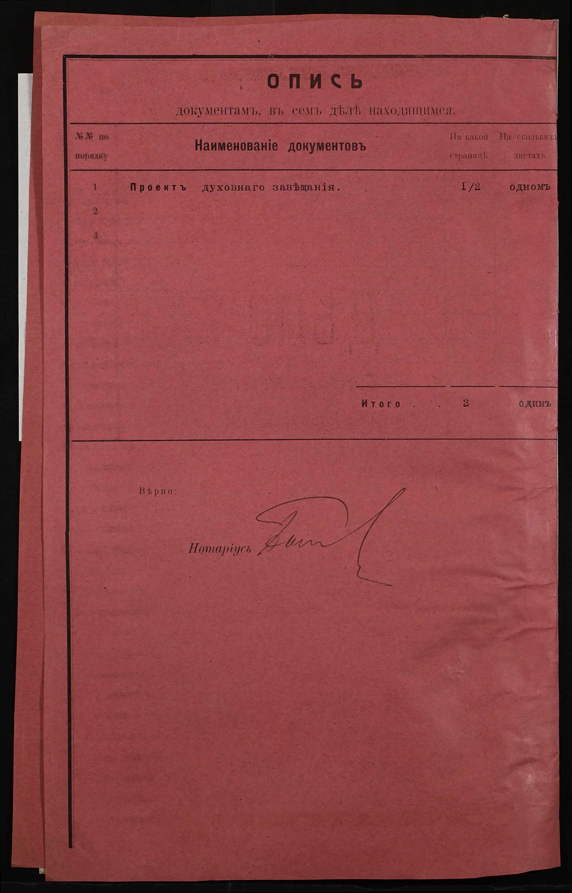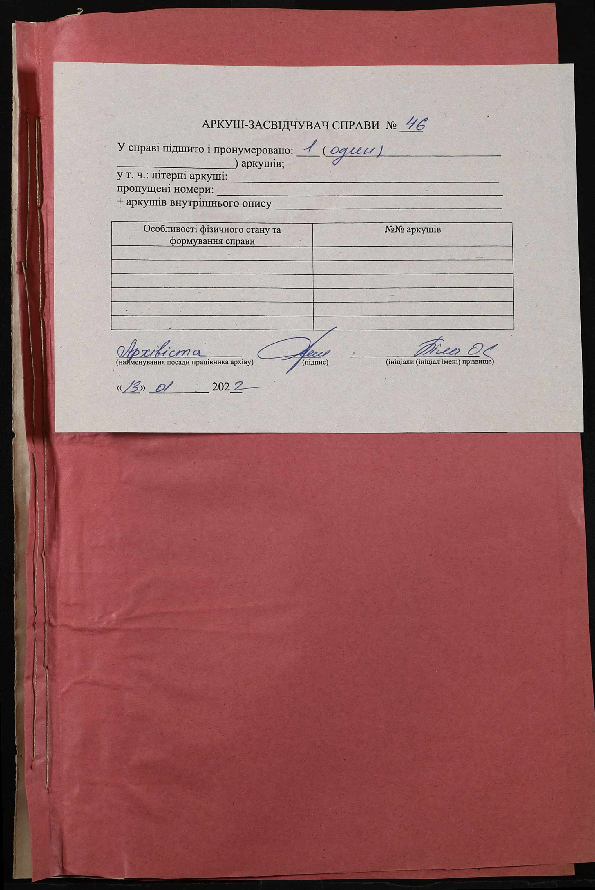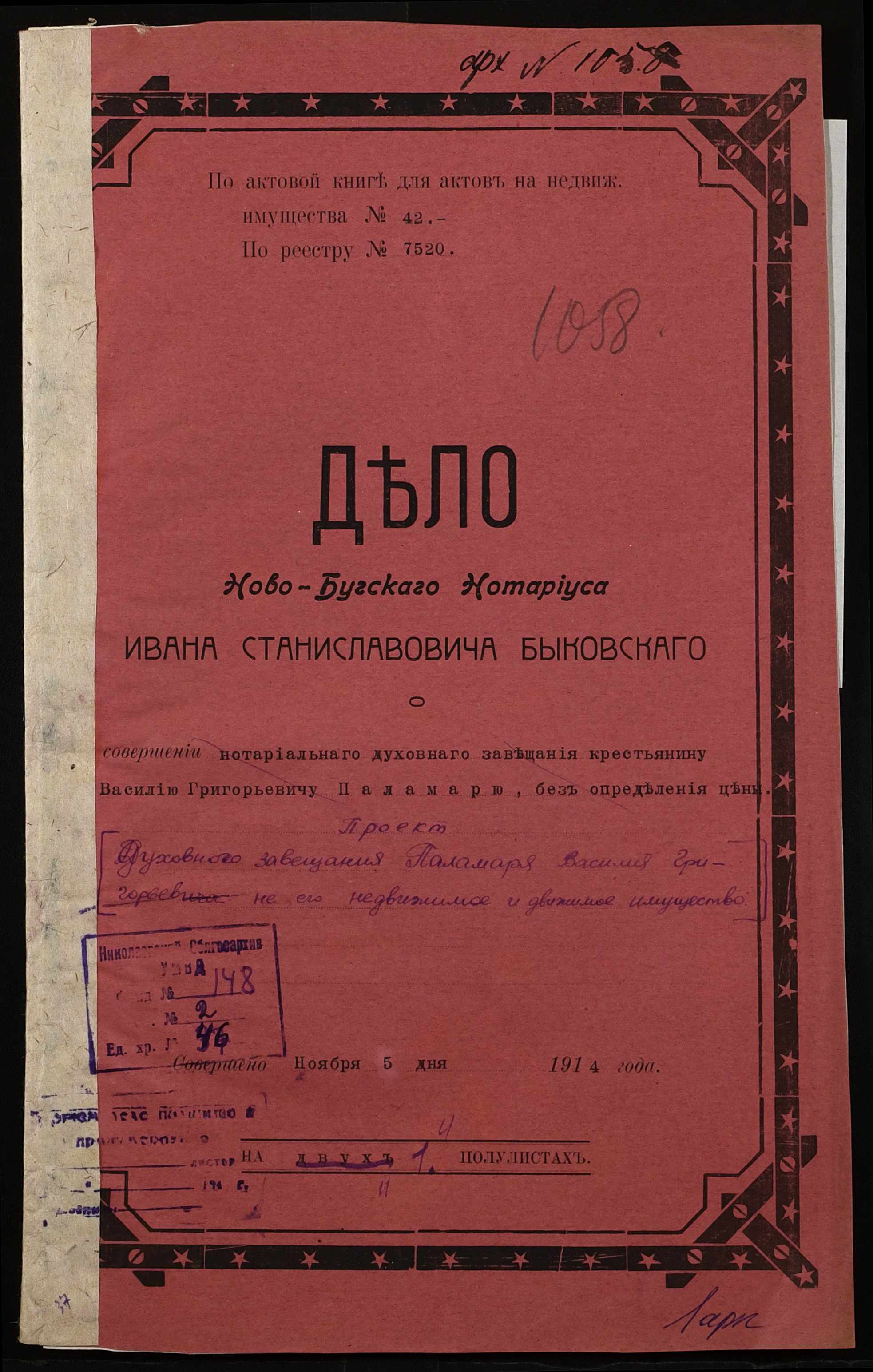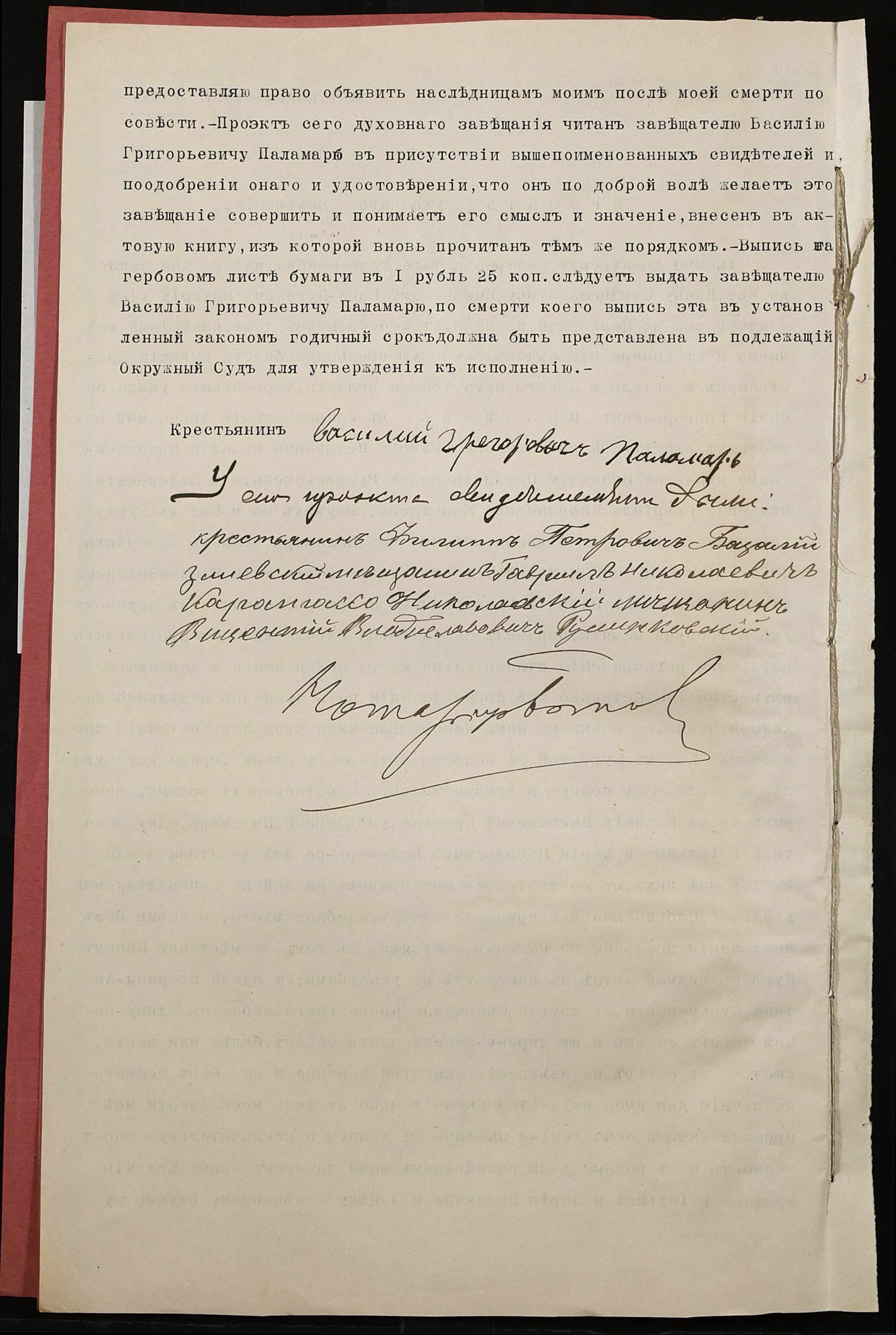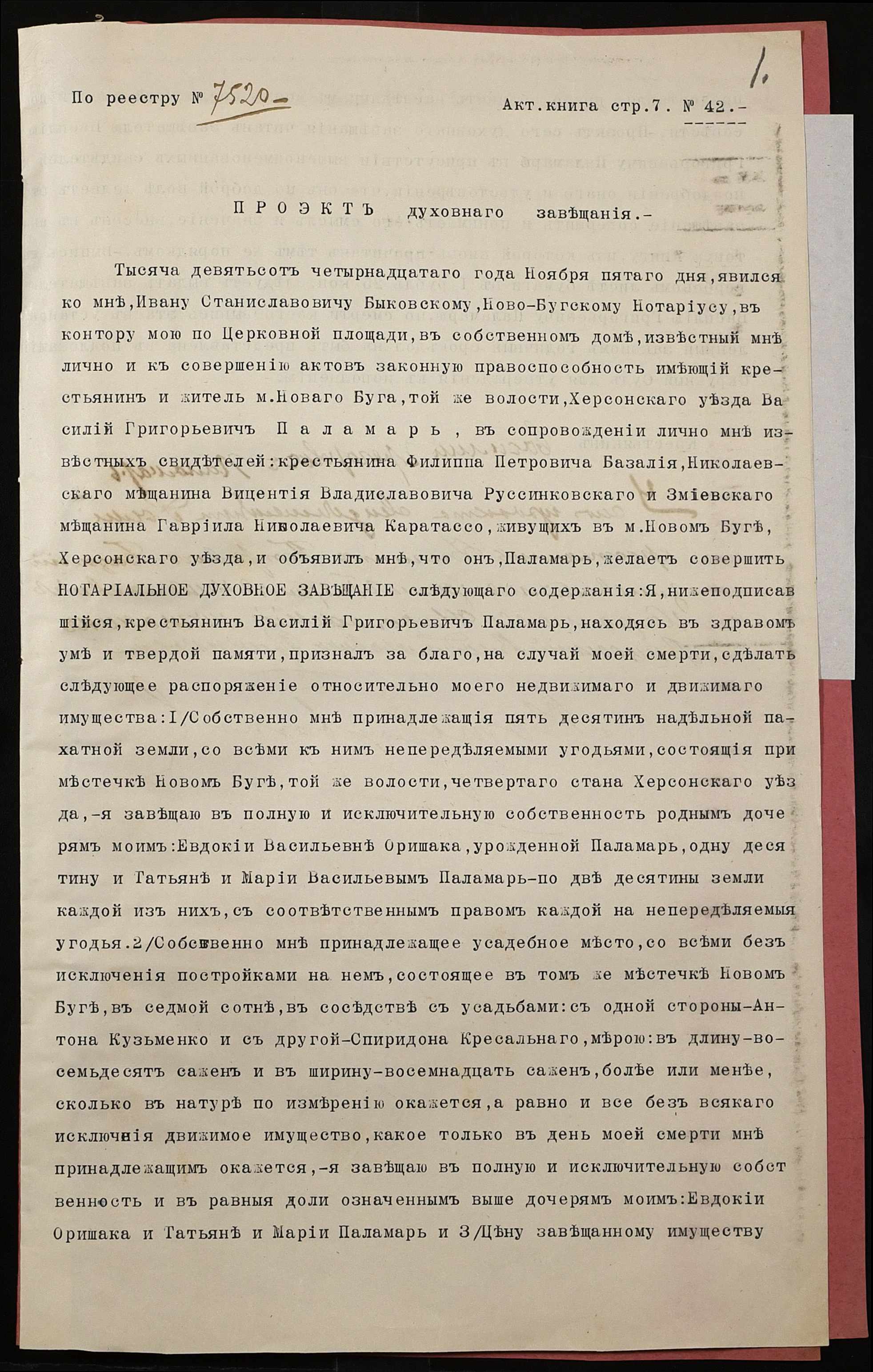 • • • • Справа № 46 “Проєкт духівниці на рухоме і нерухоме майно Паламаря Василя Григоровича (Василия Григорьевича)”