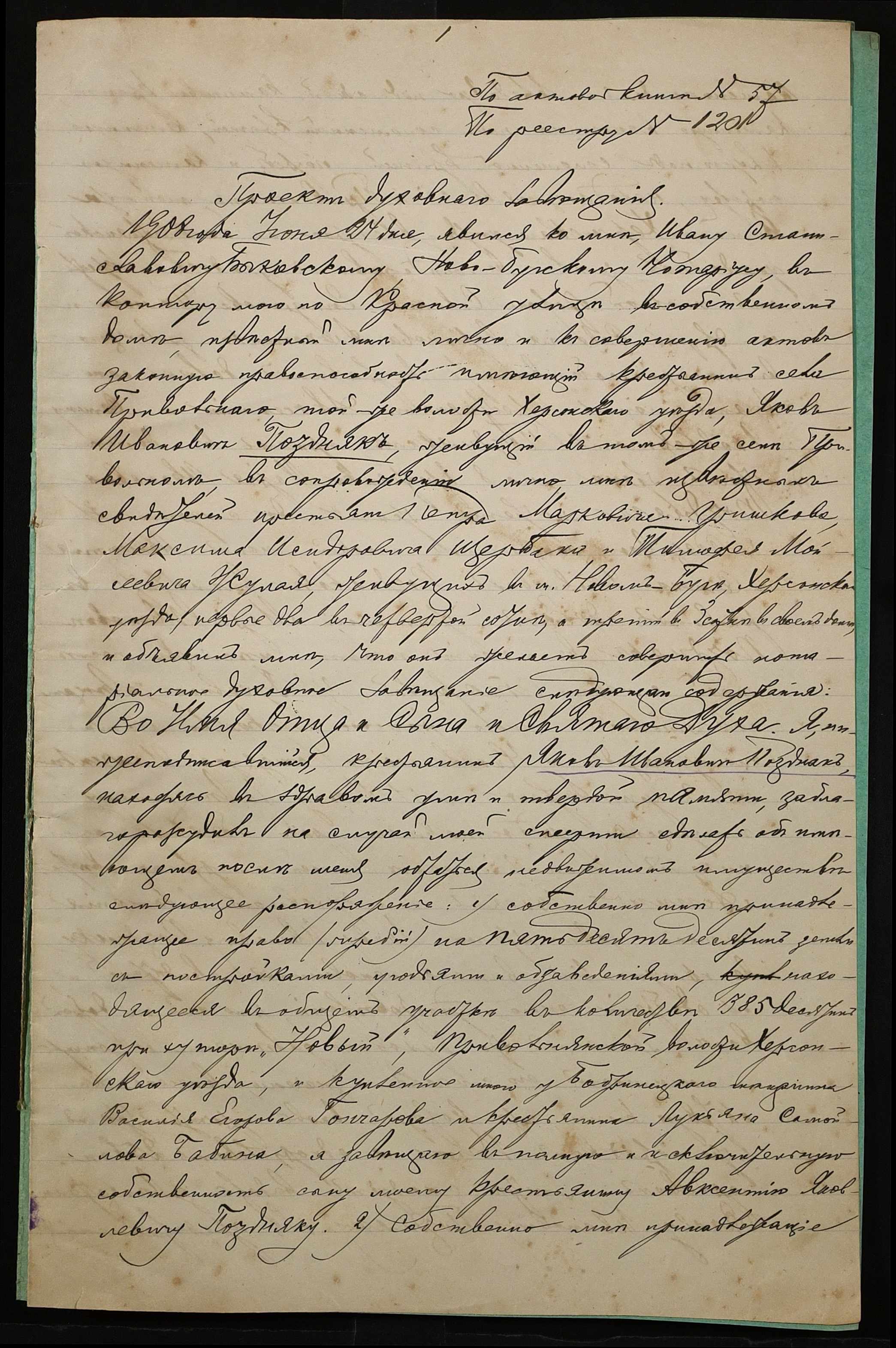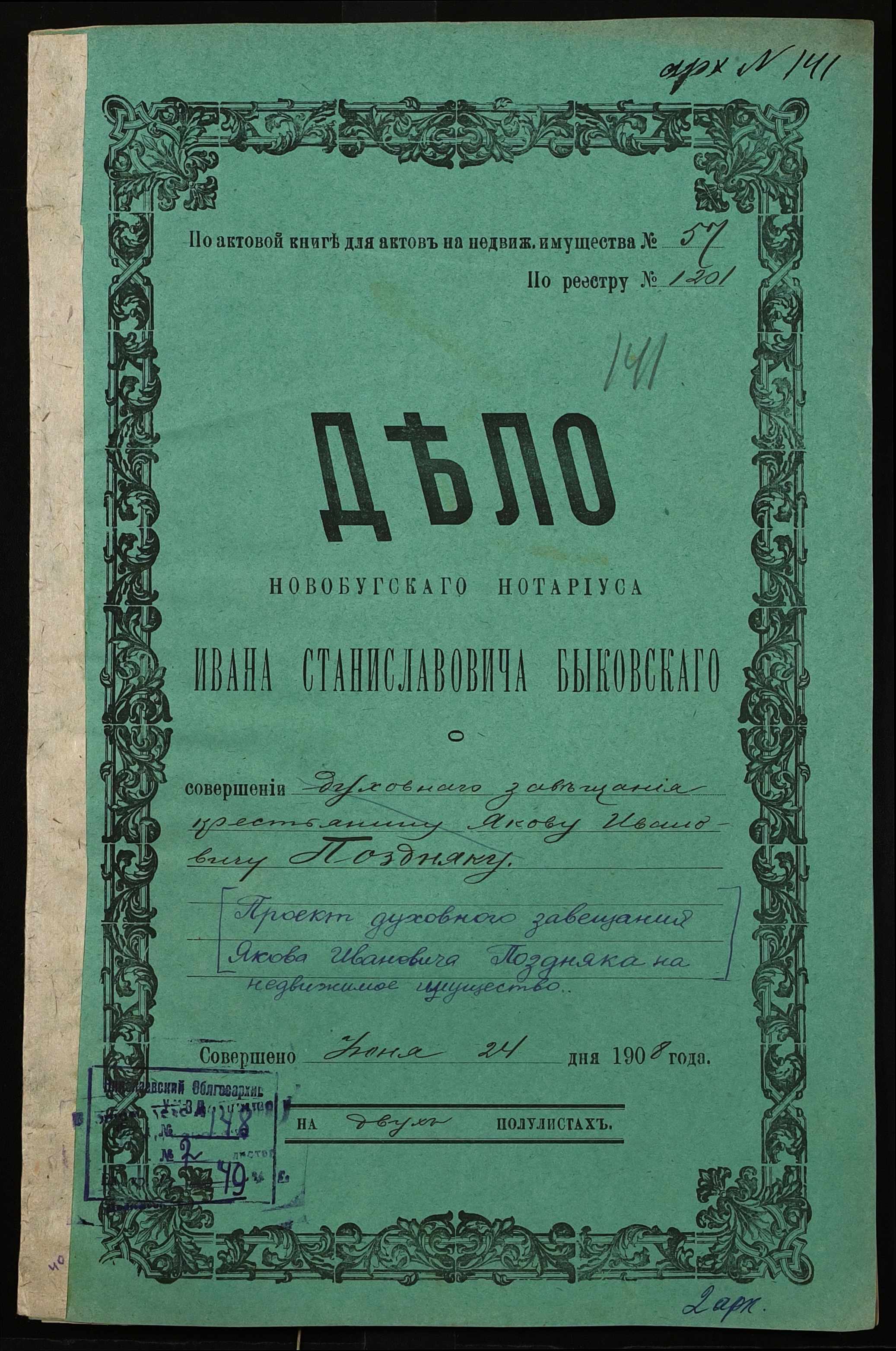 • • • • Справа № 49 “Проєкт духівниці на нерухоме майно Поздняка Якова Івановича (Ивановича)”