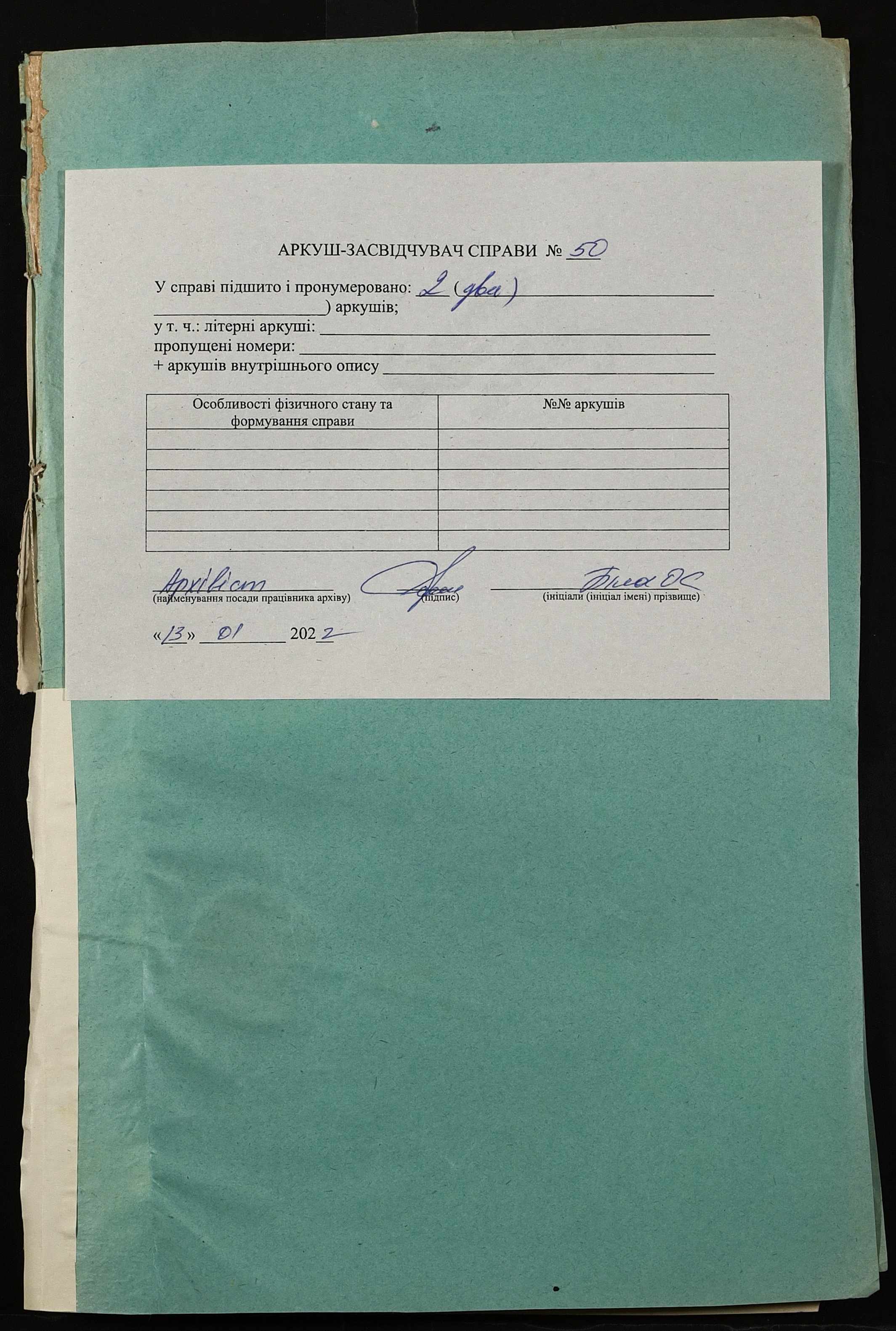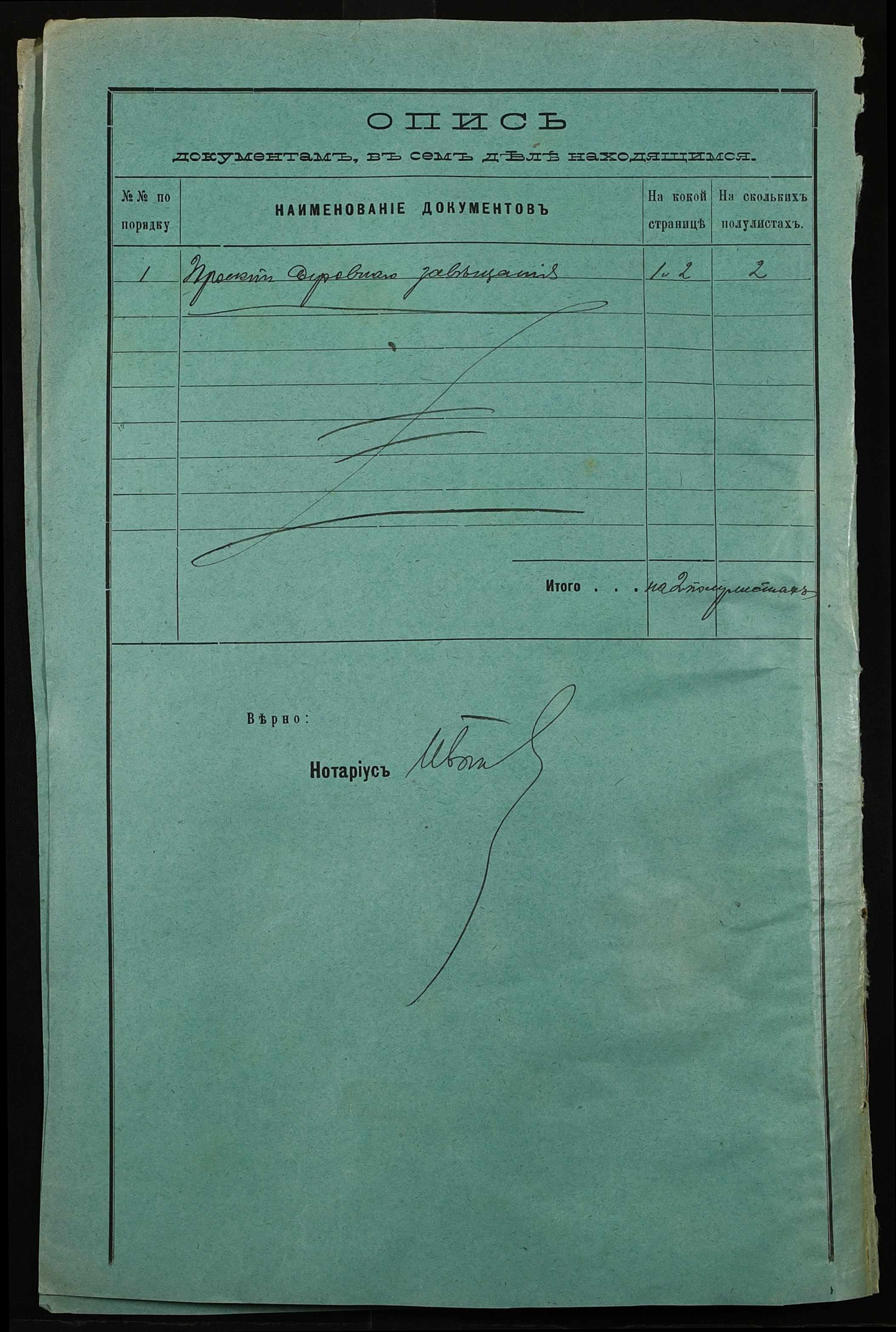• • • • Справа № 50 “Проєкт духівниці на нерухоме майно Польщина Дмитра (Дмитрия) Михайловича”