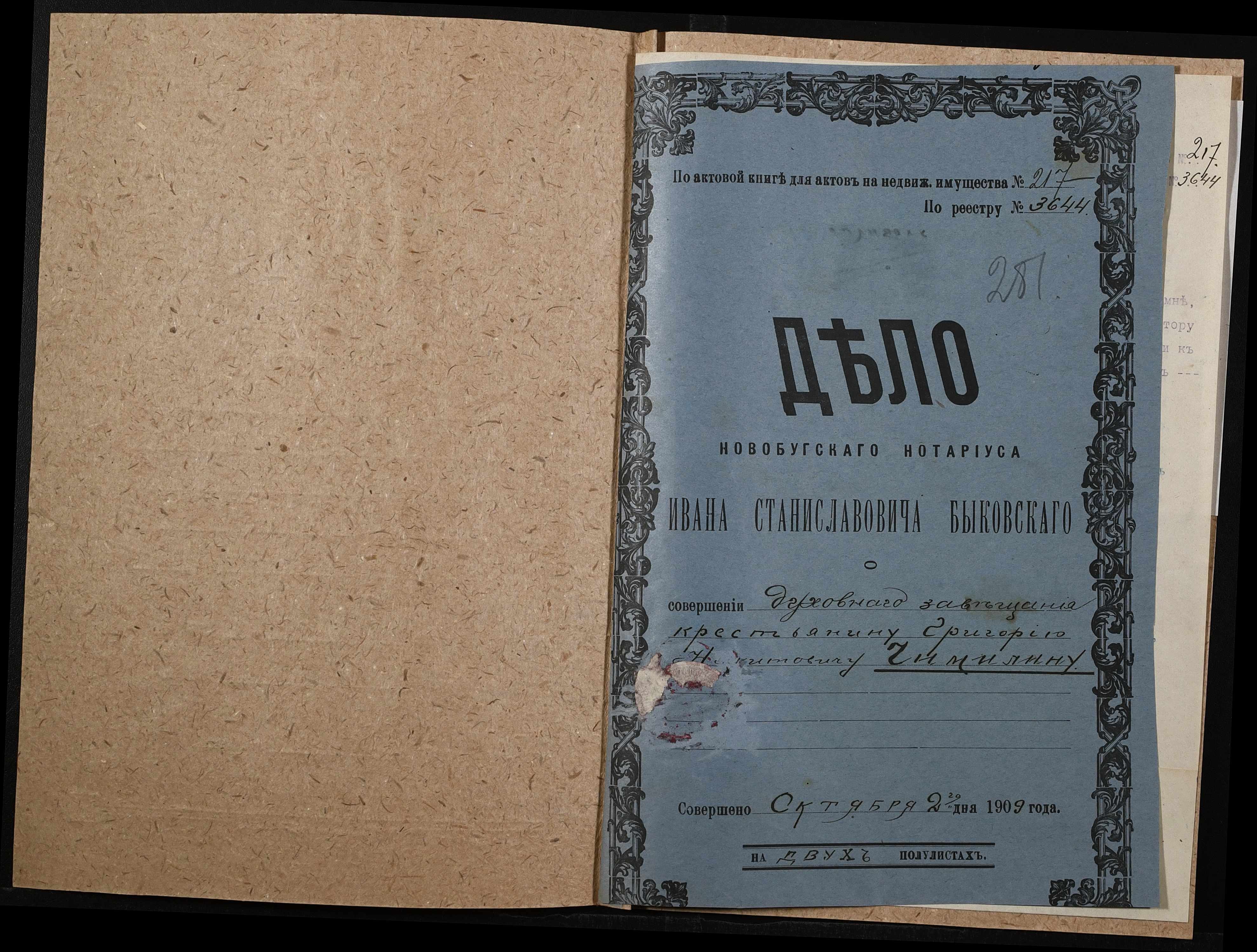 ◦ ◦ Фонд № 148 “Контора новобузького нотаріуса Биковського Івана Станіславовича”