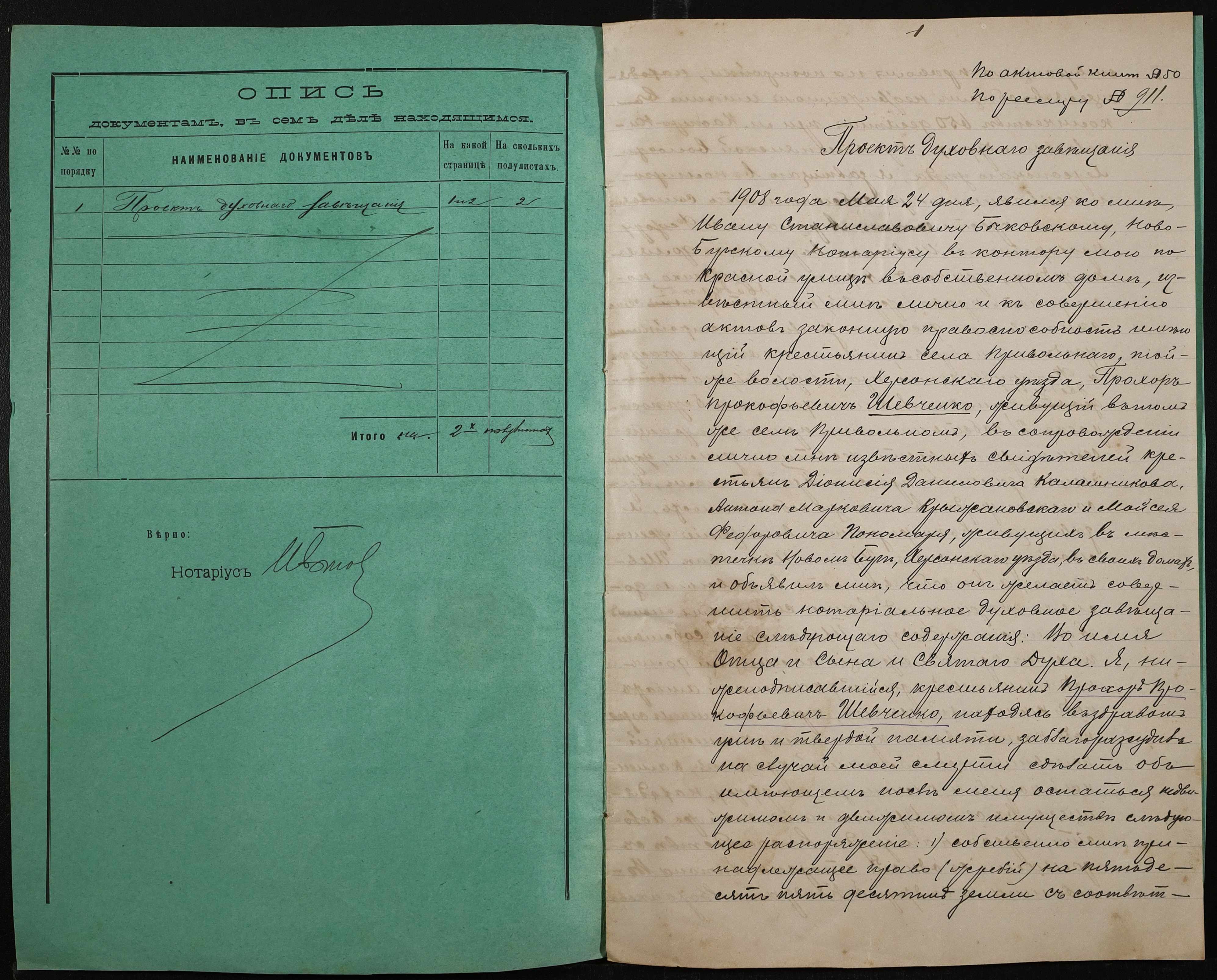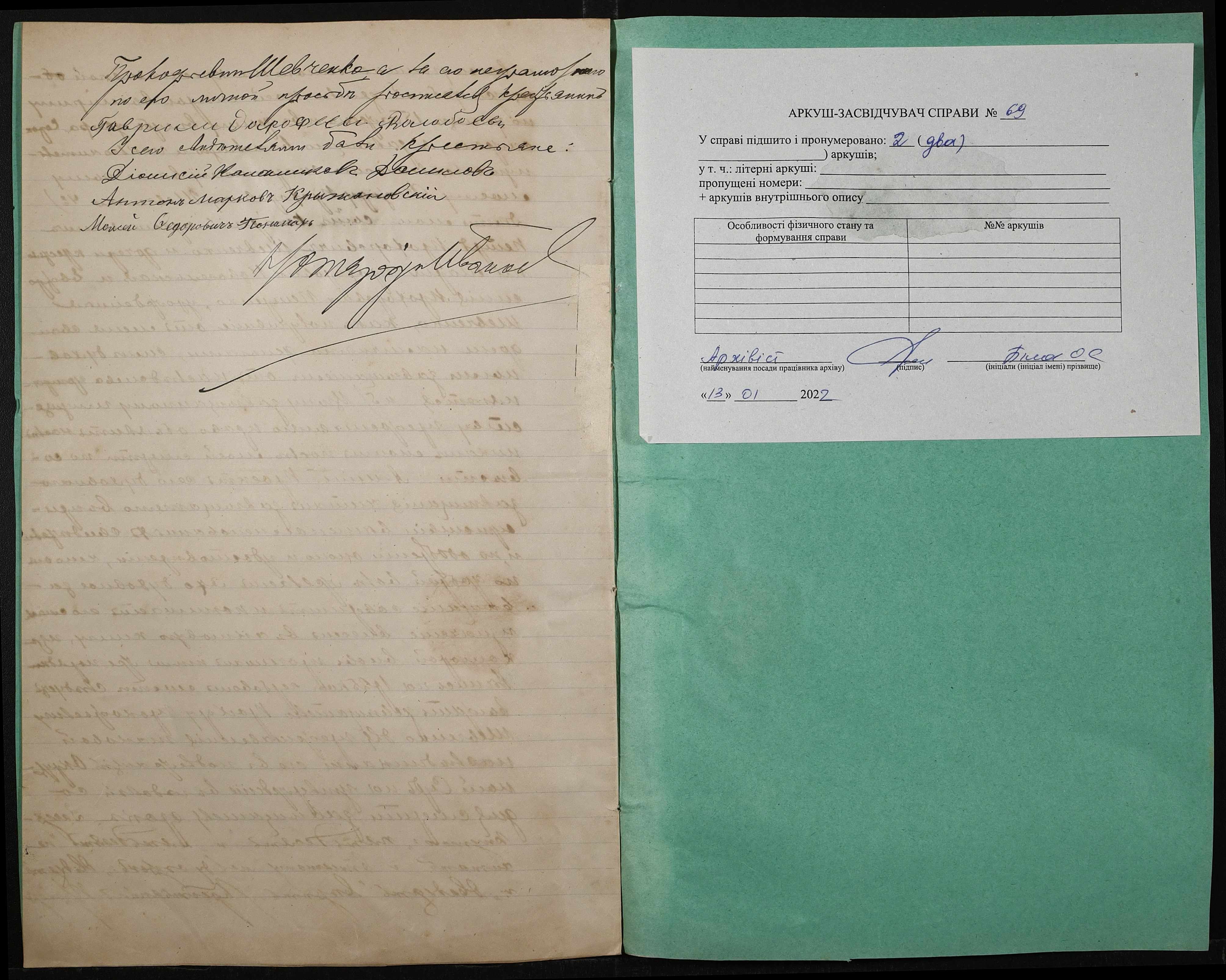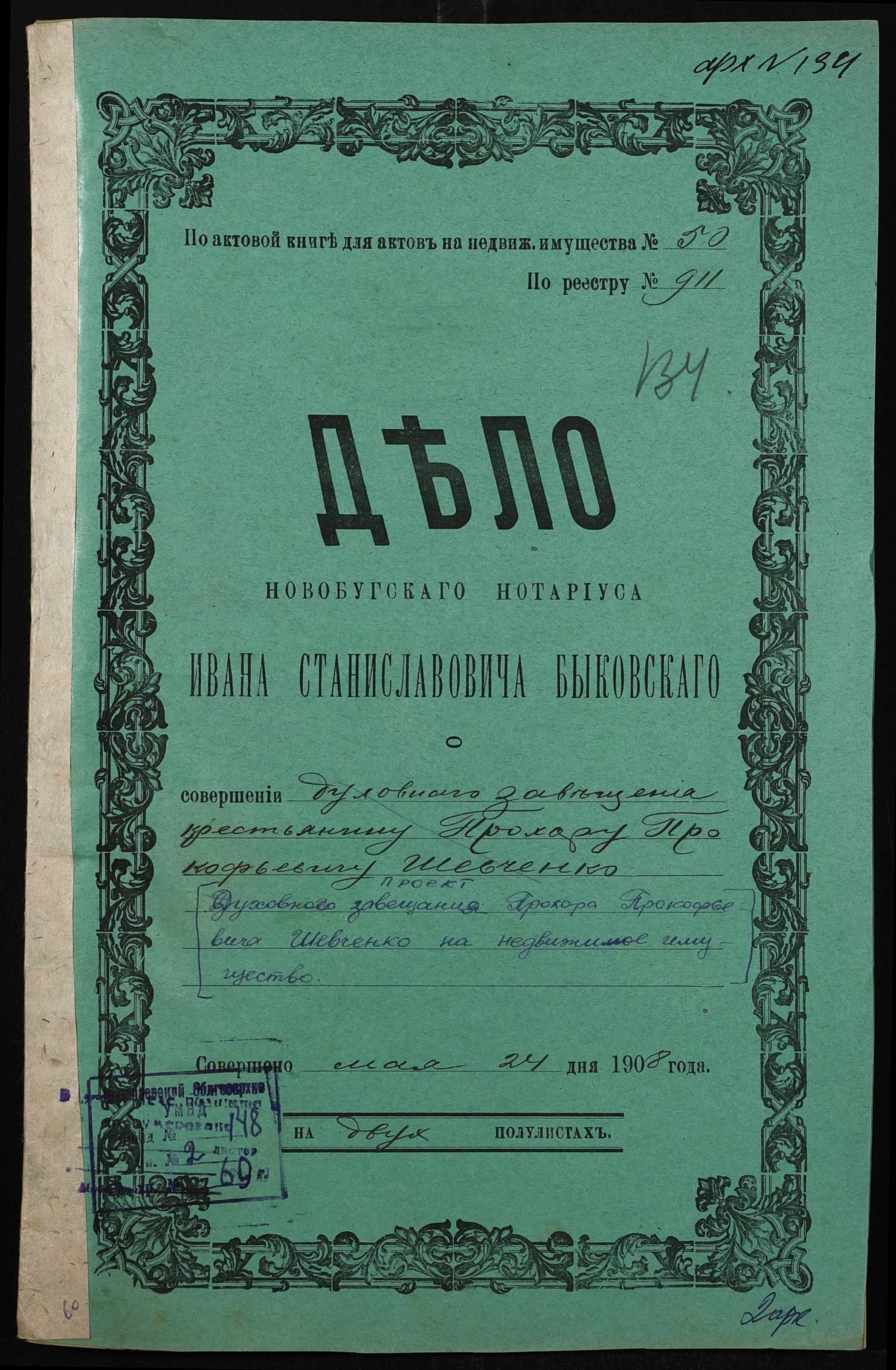• • • • Справа № 69 “Проєкт духівниці на нерухоме майно Шевченка Прохора Прокоповича (Шевченко Прохора Прокофьевича)”