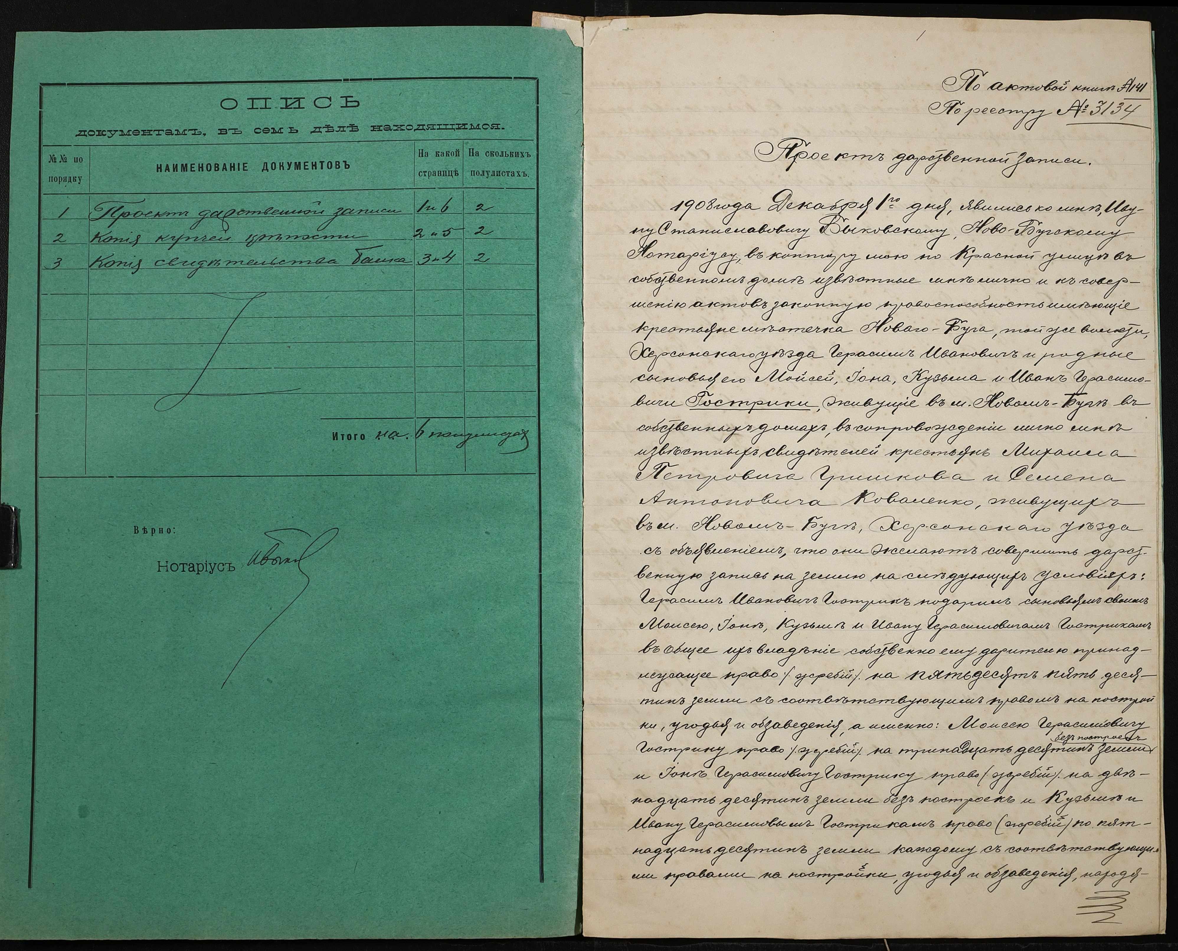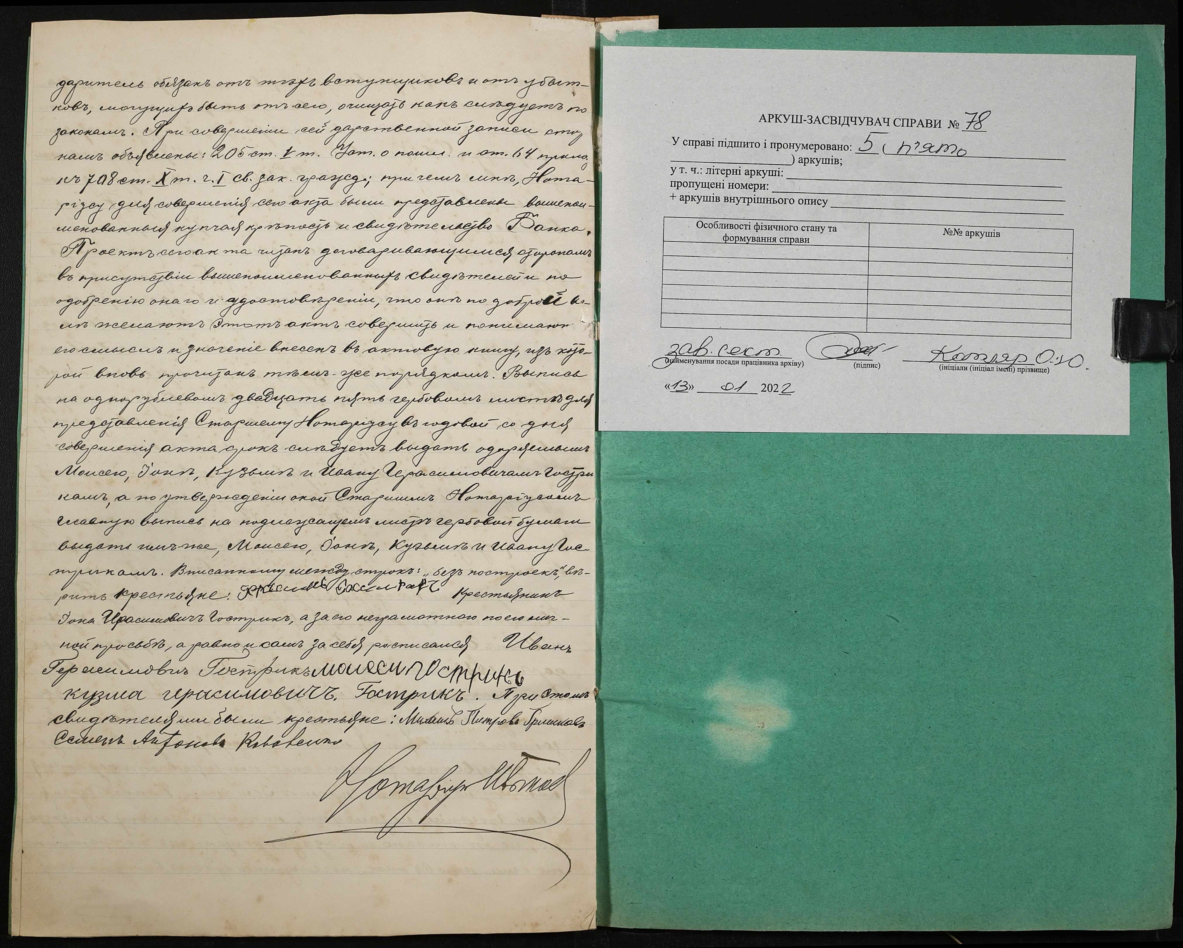 • • • • Справа № 78 “Справа про вчинення дарчої на землю з правом на забудову, передану Гостриком Герасимом Івановичем (Ивановичем) у власність його синів, Гострика Мойсея (Моисея), Гострика Йони (Ионы), Гострика Кузьми (Кузьмы) і Гострика Івана (Ивана)”