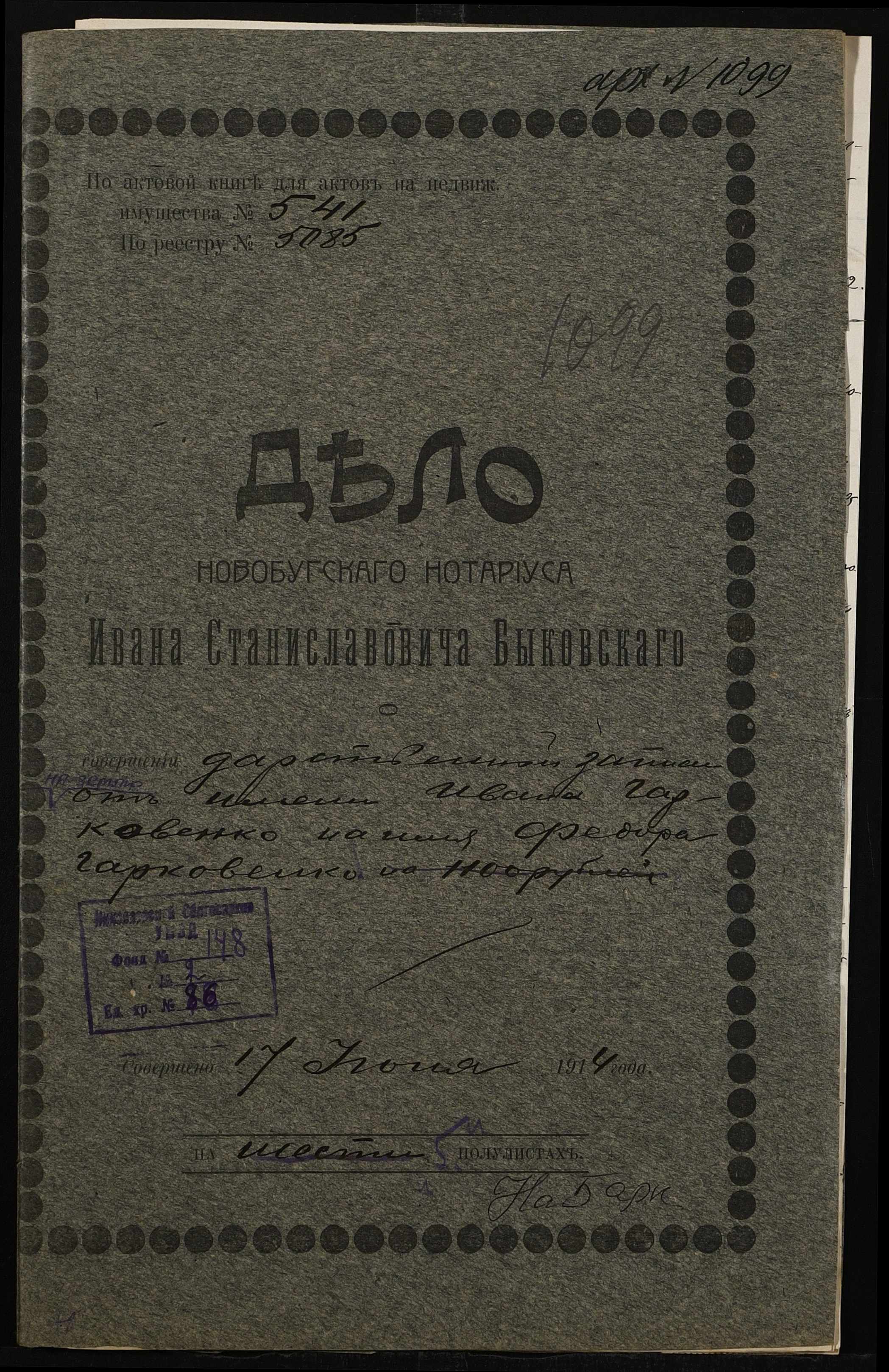 ◦ ◦ Фонд № 148 “Контора новобузького нотаріуса Биковського Івана Станіславовича”