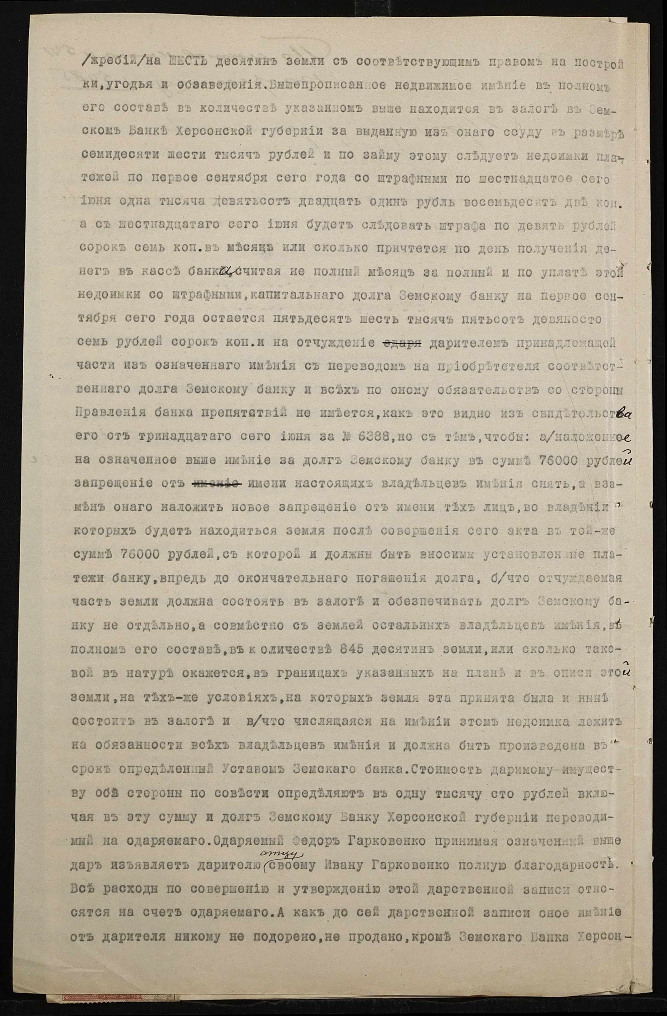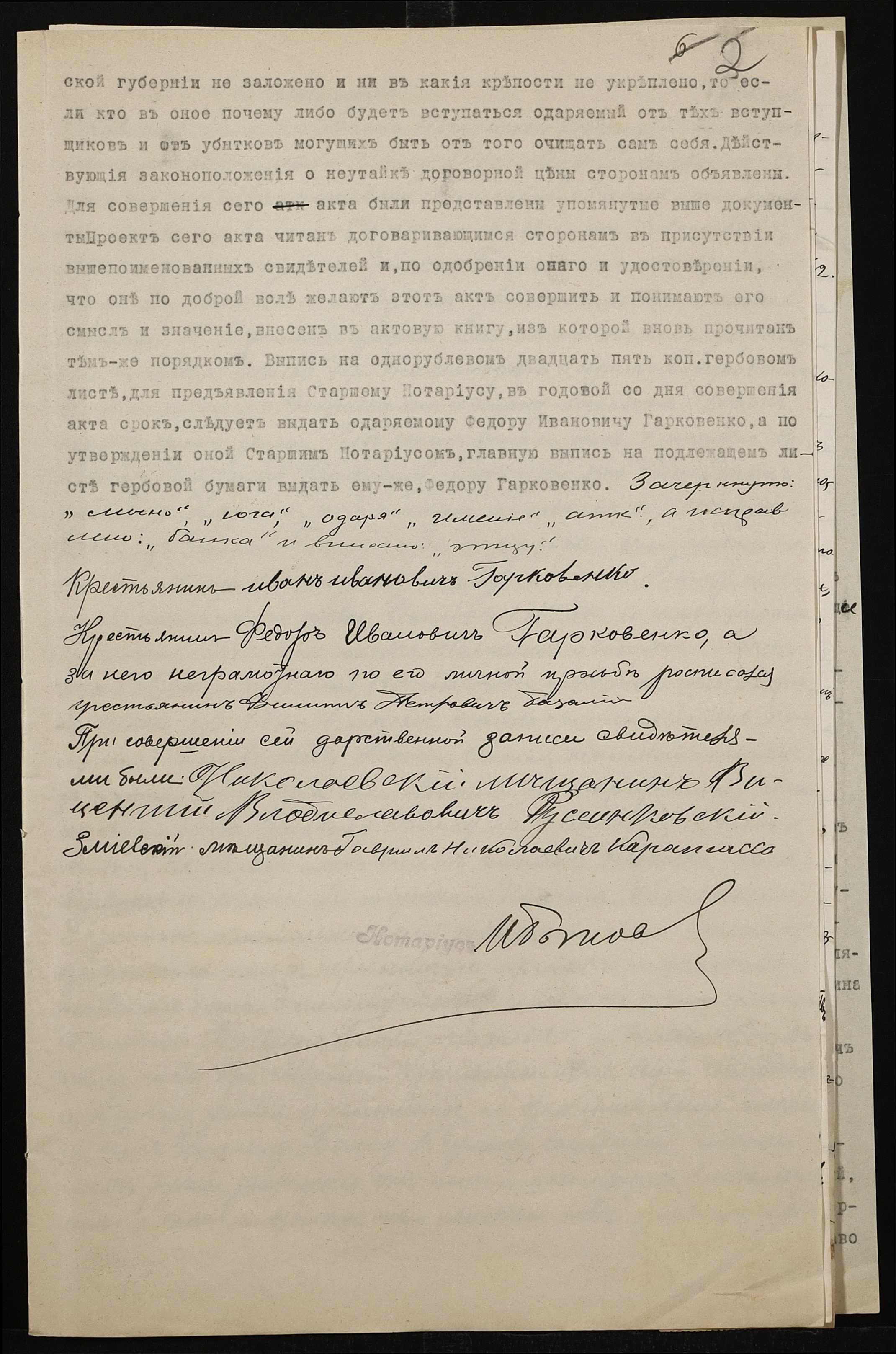 • • • • Справа № 86 “Справа про вчинення дарчої на землю, передану Гарковенком Іваном (Гарковенко Иваном) у власність Гарковенка (Гарковенко) Федора”