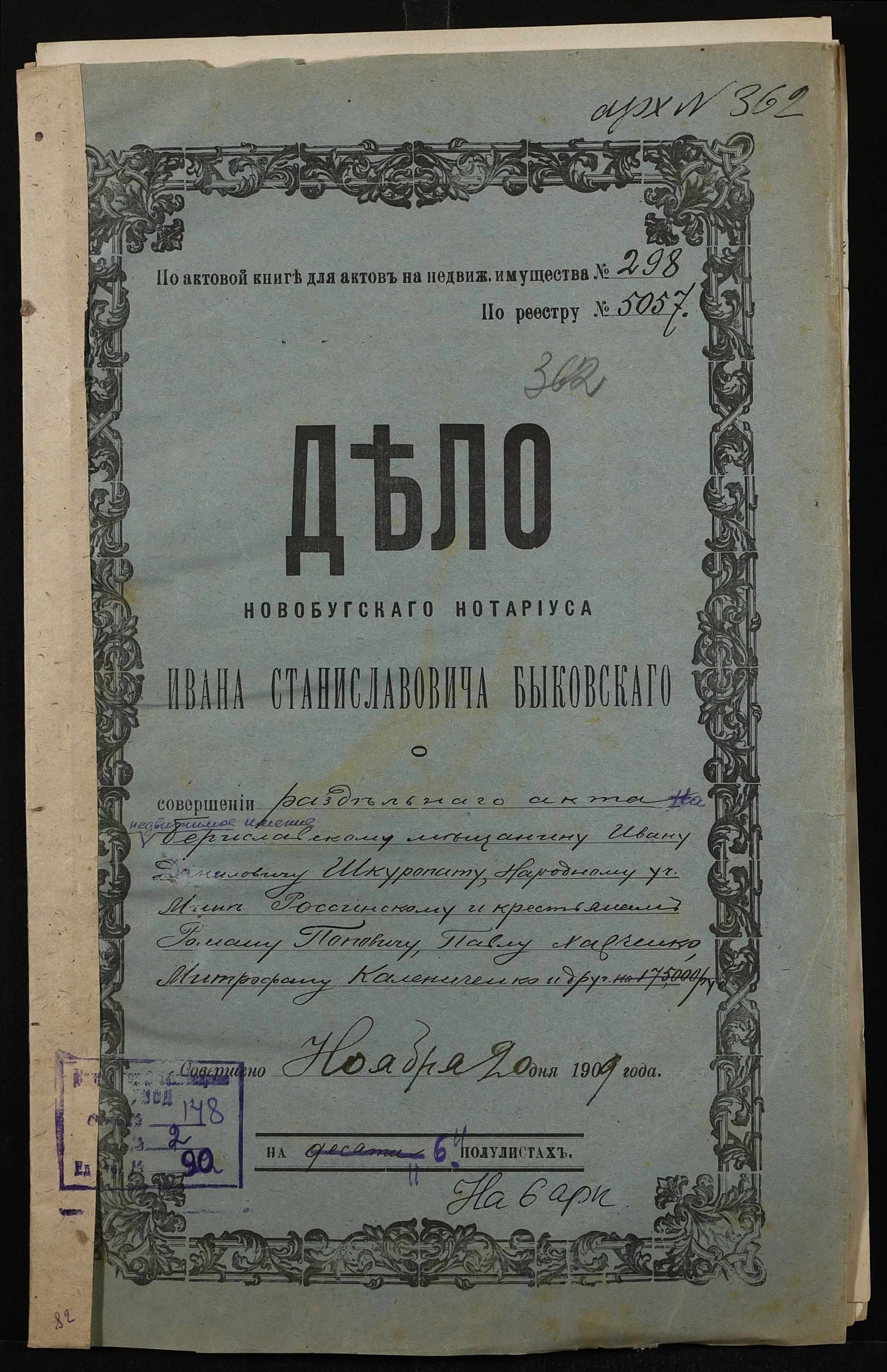 ◦ ◦ Фонд № 148 “Контора новобузького нотаріуса Биковського Івана Станіславовича”