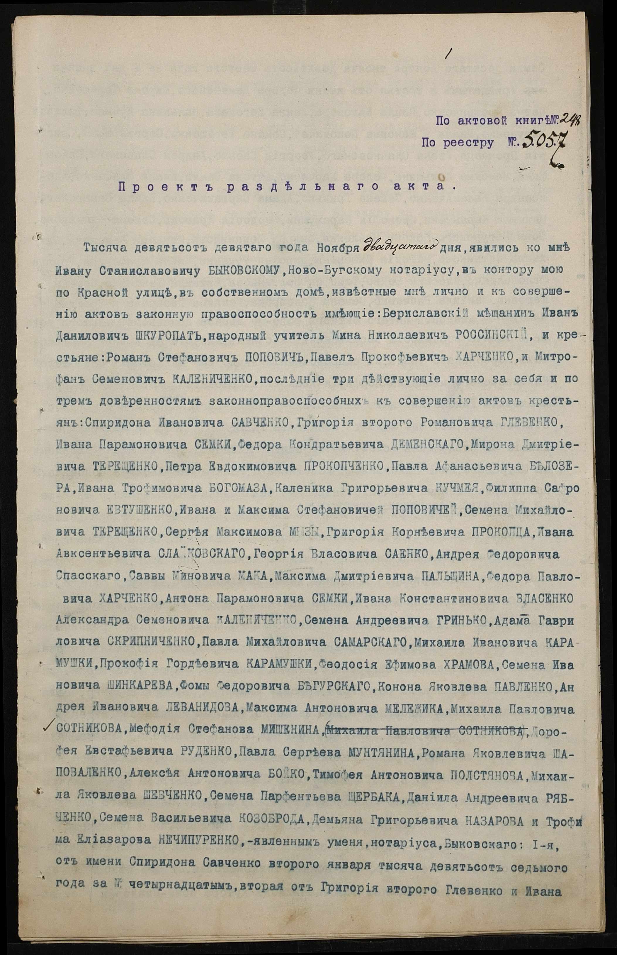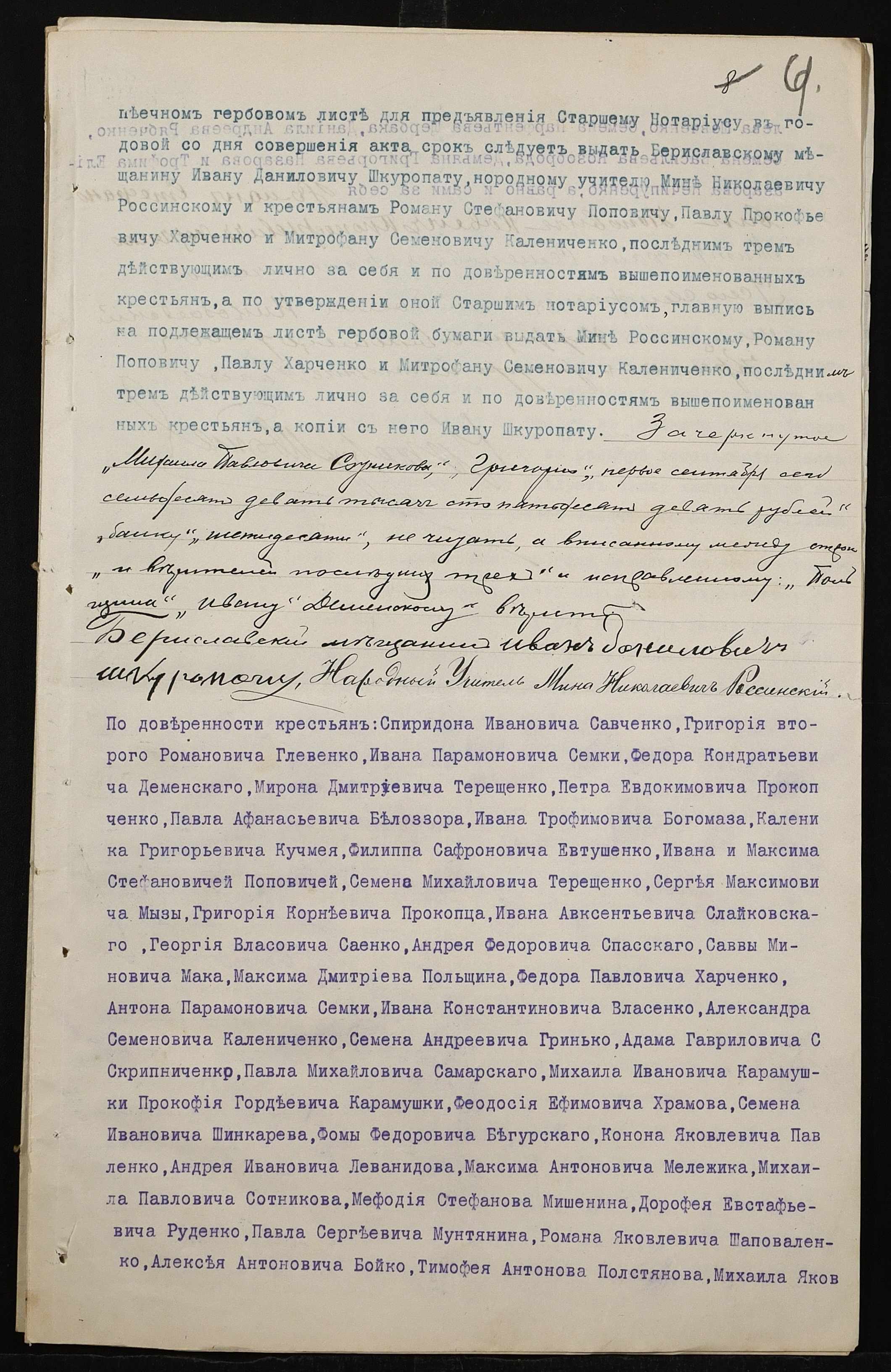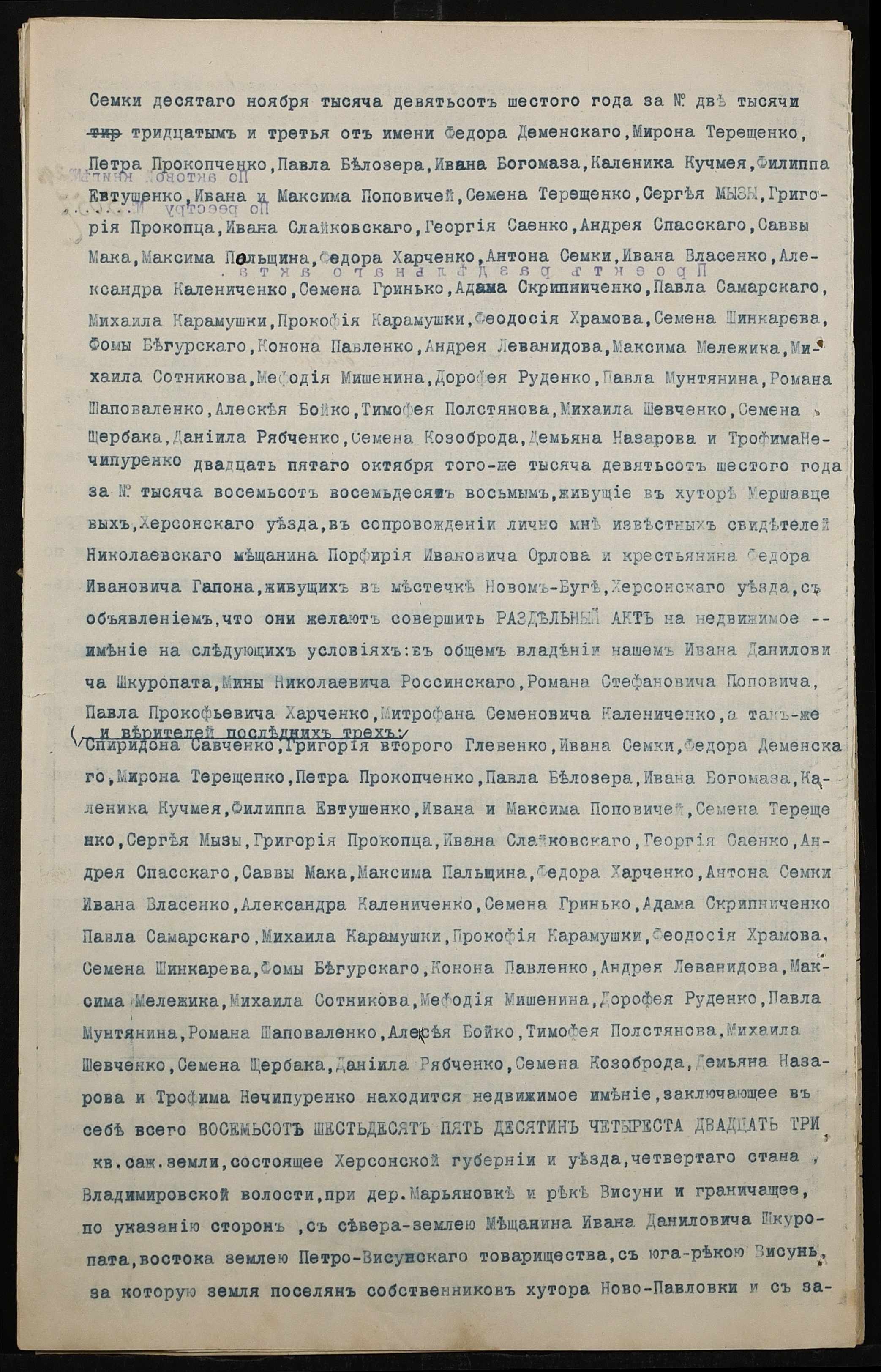 • • • • Справа № 90 “Справа про вчинення роздільного акту на нерухоме майно, що належить бериславському міщанину Шкуропату Івану (Ивану) Даниловичу, народному вчителю Россинському Мині Миколайовичу (Россинскому Мине Николаевичу) і селянам Поповичу Роману Стефановичу, Харченку (Харченко) Павлу Прокоповичу (Прокофьевичу) і Калениченку (Калениченко) Митрофану Семеновичу”