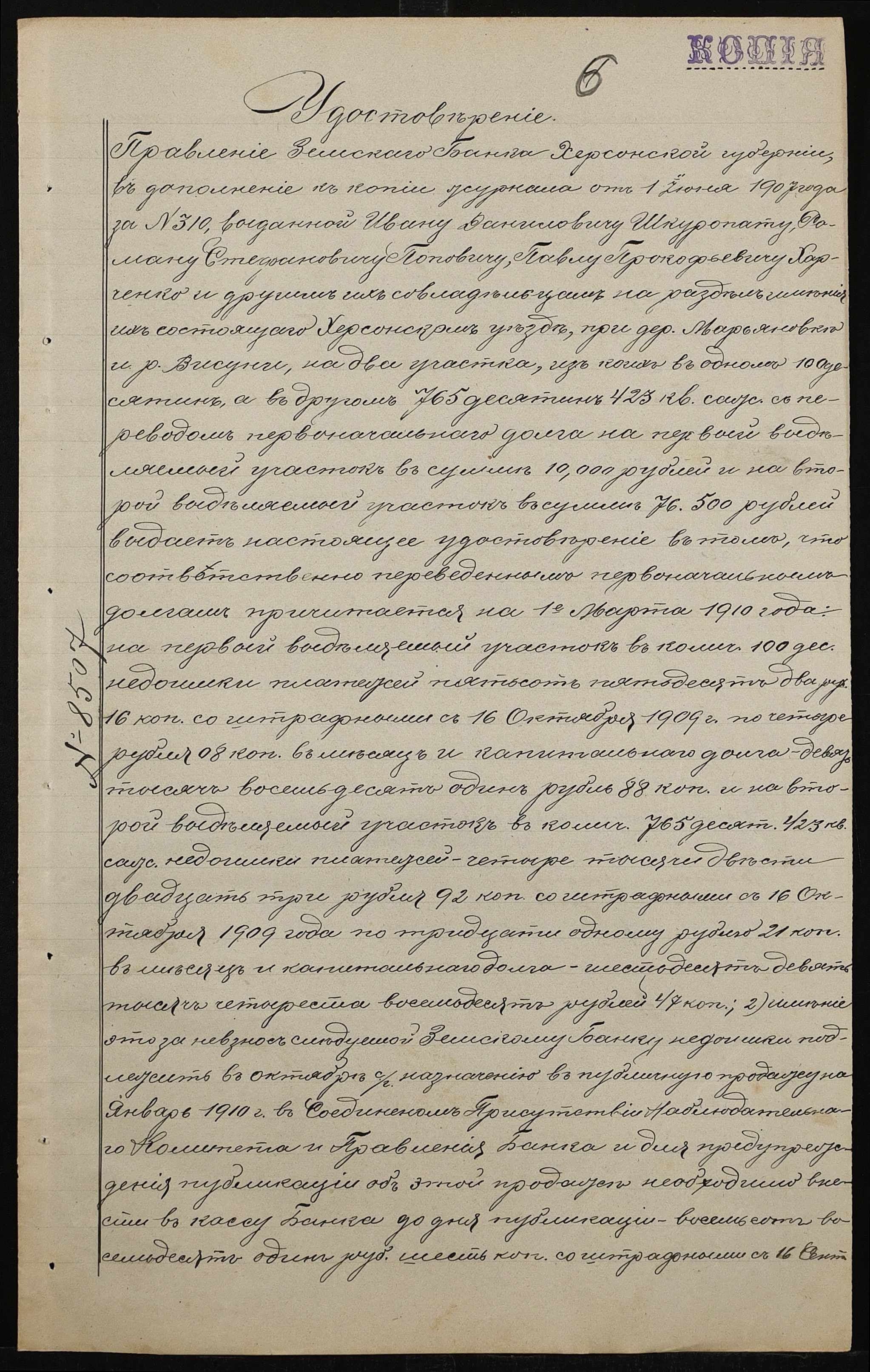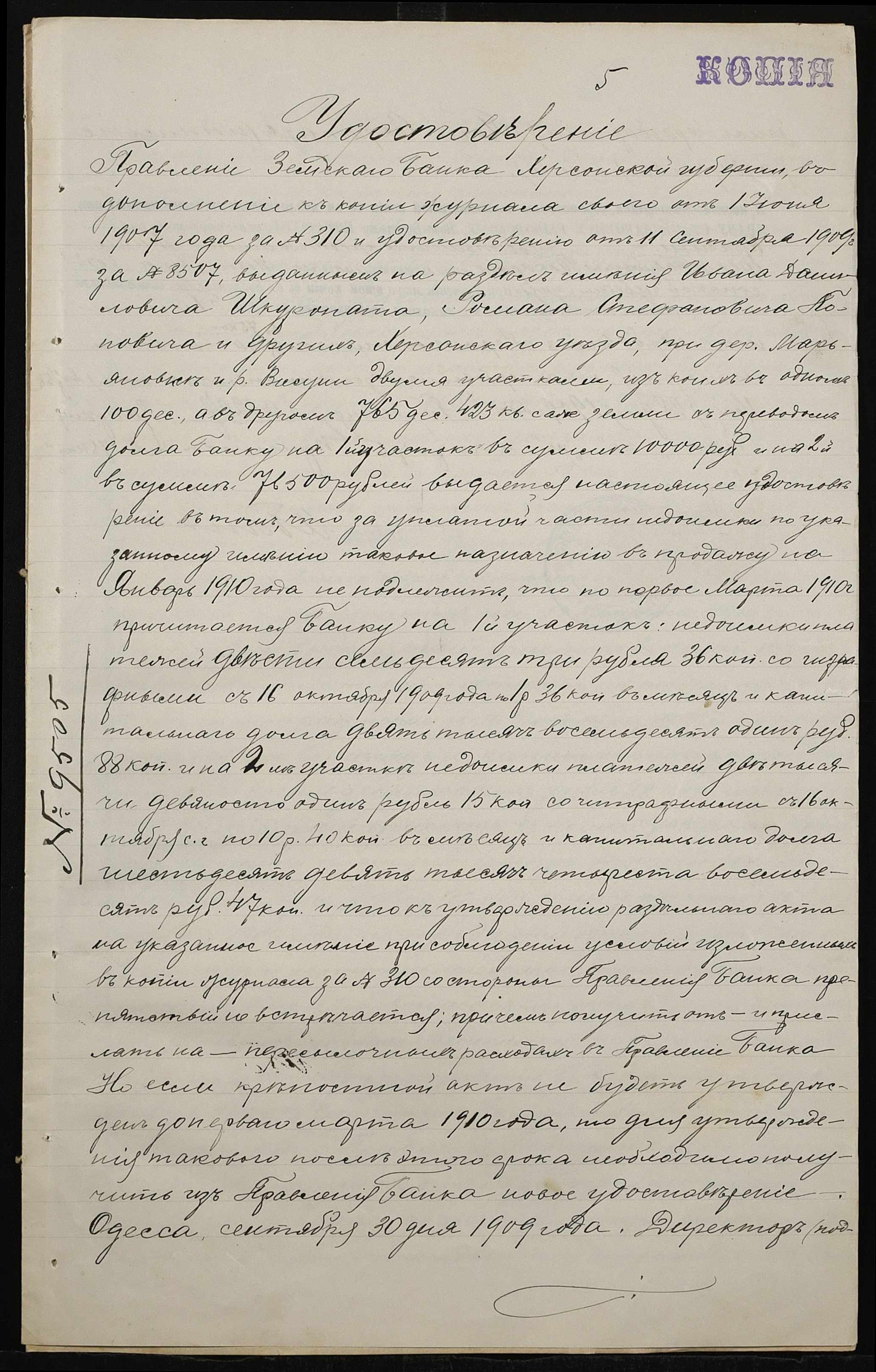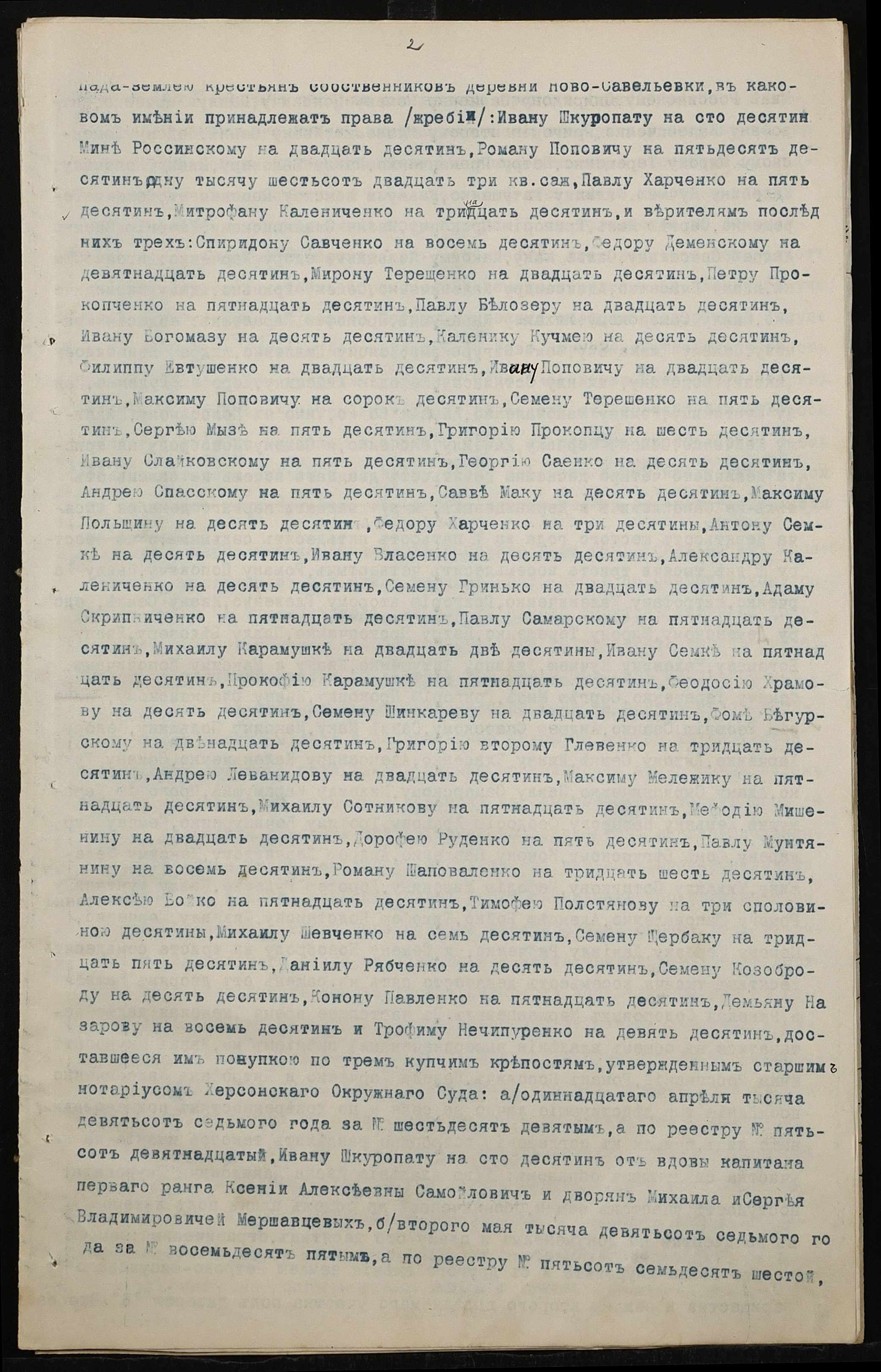 • • • • Справа № 90 “Справа про вчинення роздільного акту на нерухоме майно, що належить бериславському міщанину Шкуропату Івану (Ивану) Даниловичу, народному вчителю Россинському Мині Миколайовичу (Россинскому Мине Николаевичу) і селянам Поповичу Роману Стефановичу, Харченку (Харченко) Павлу Прокоповичу (Прокофьевичу) і Калениченку (Калениченко) Митрофану Семеновичу”