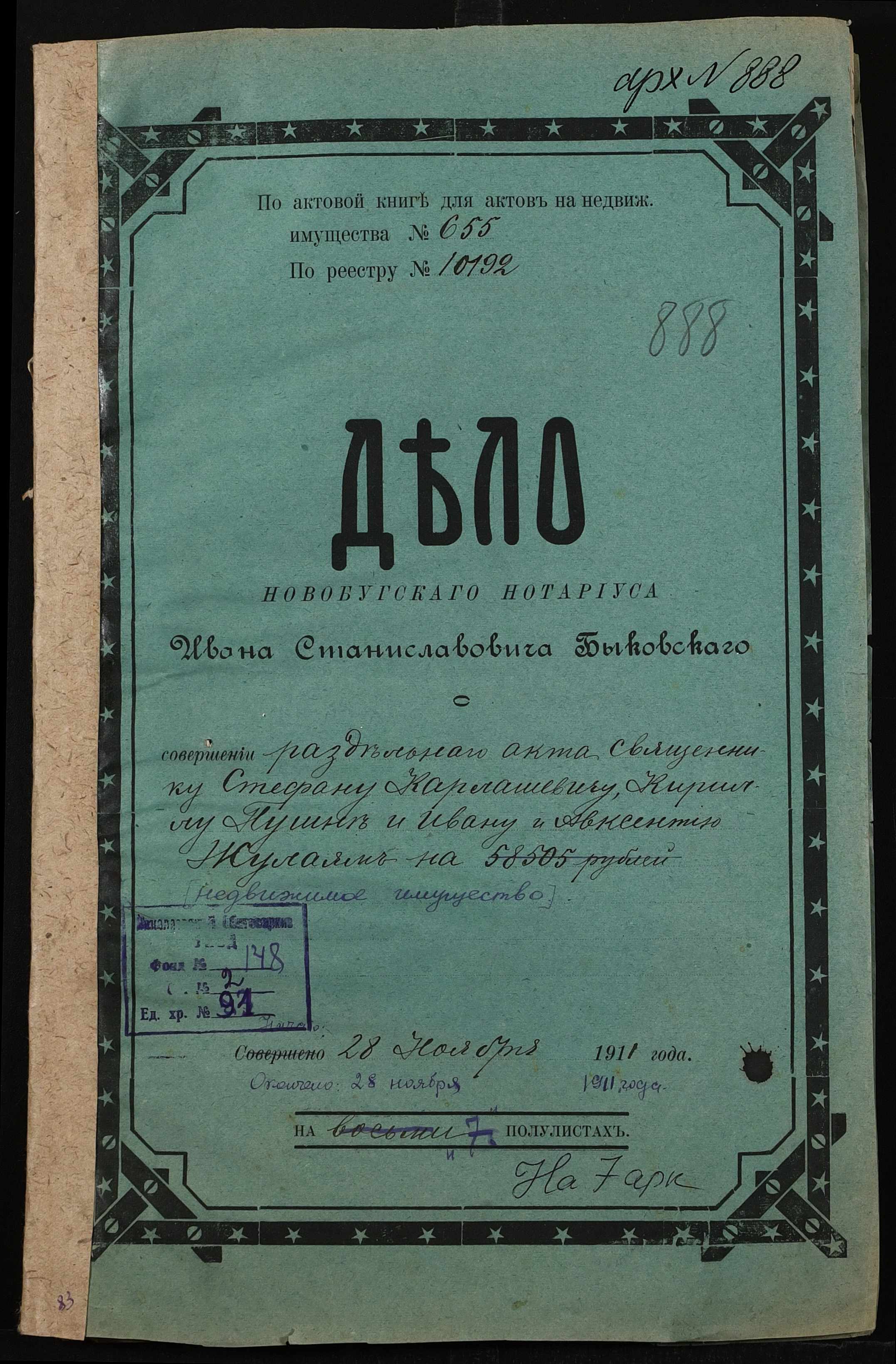 ◦ ◦ Фонд № 148 “Контора новобузького нотаріуса Биковського Івана Станіславовича”