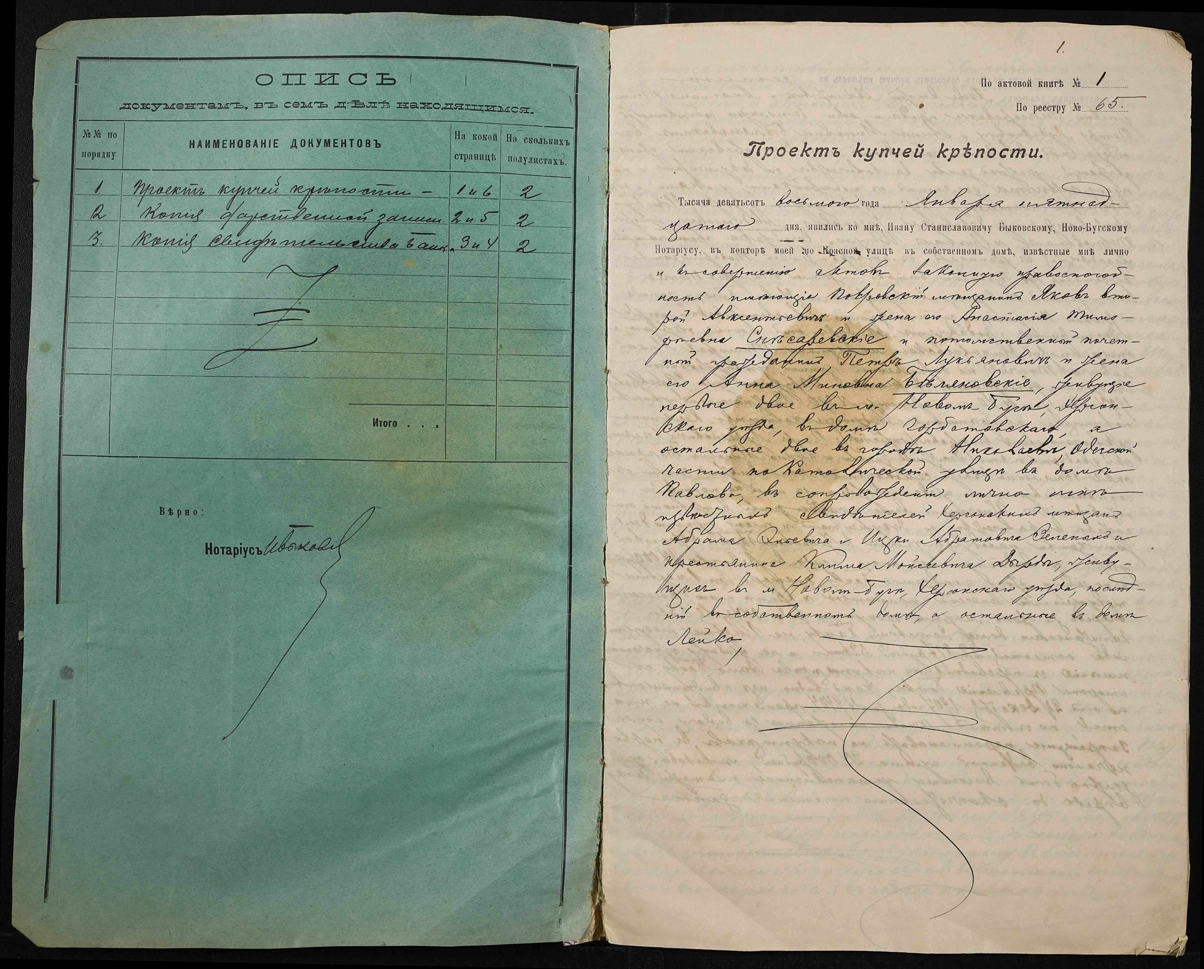 ◦ ◦ Фонд № 148 “Контора новобузького нотаріуса Биковського Івана Станіславовича”