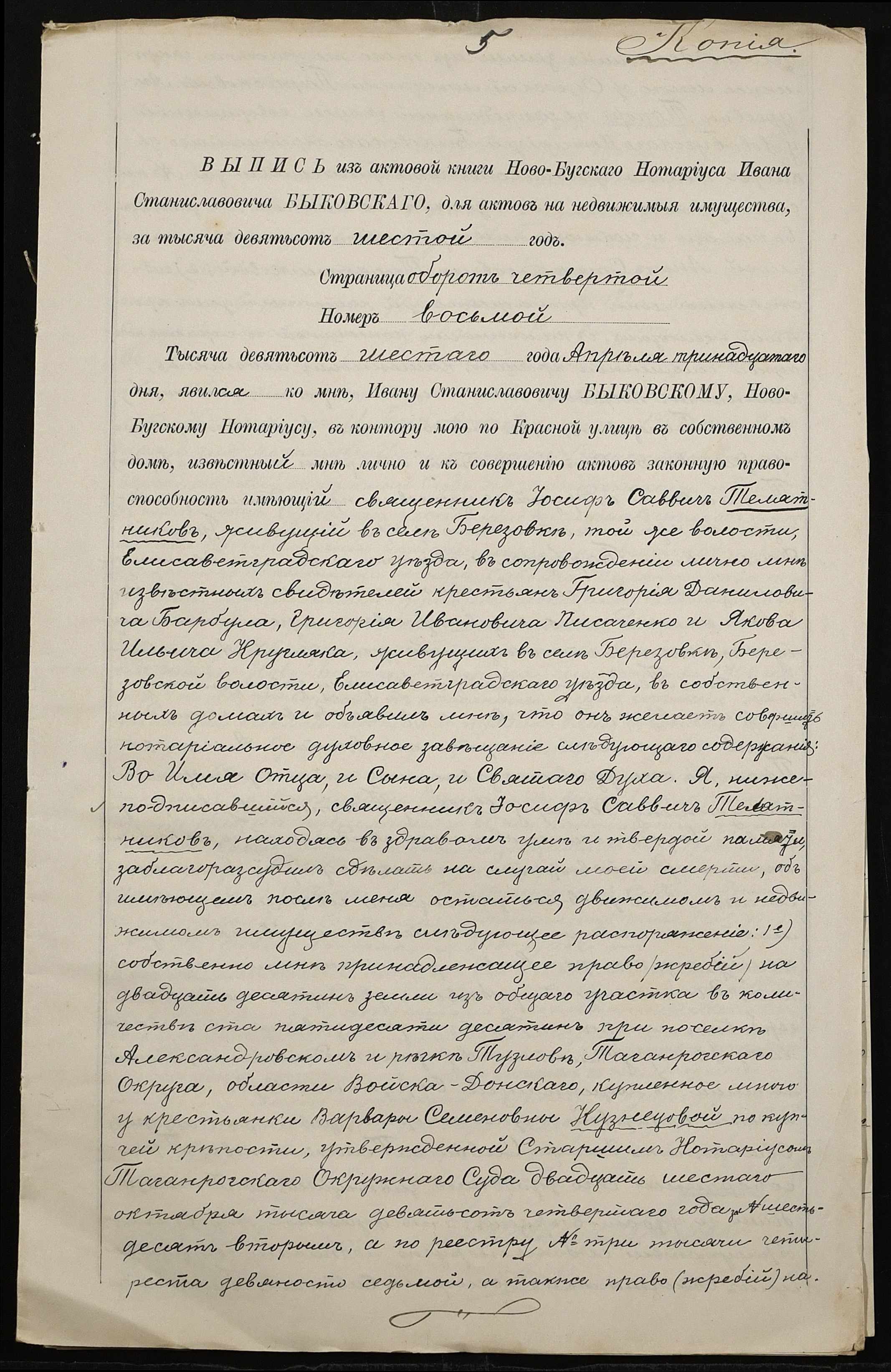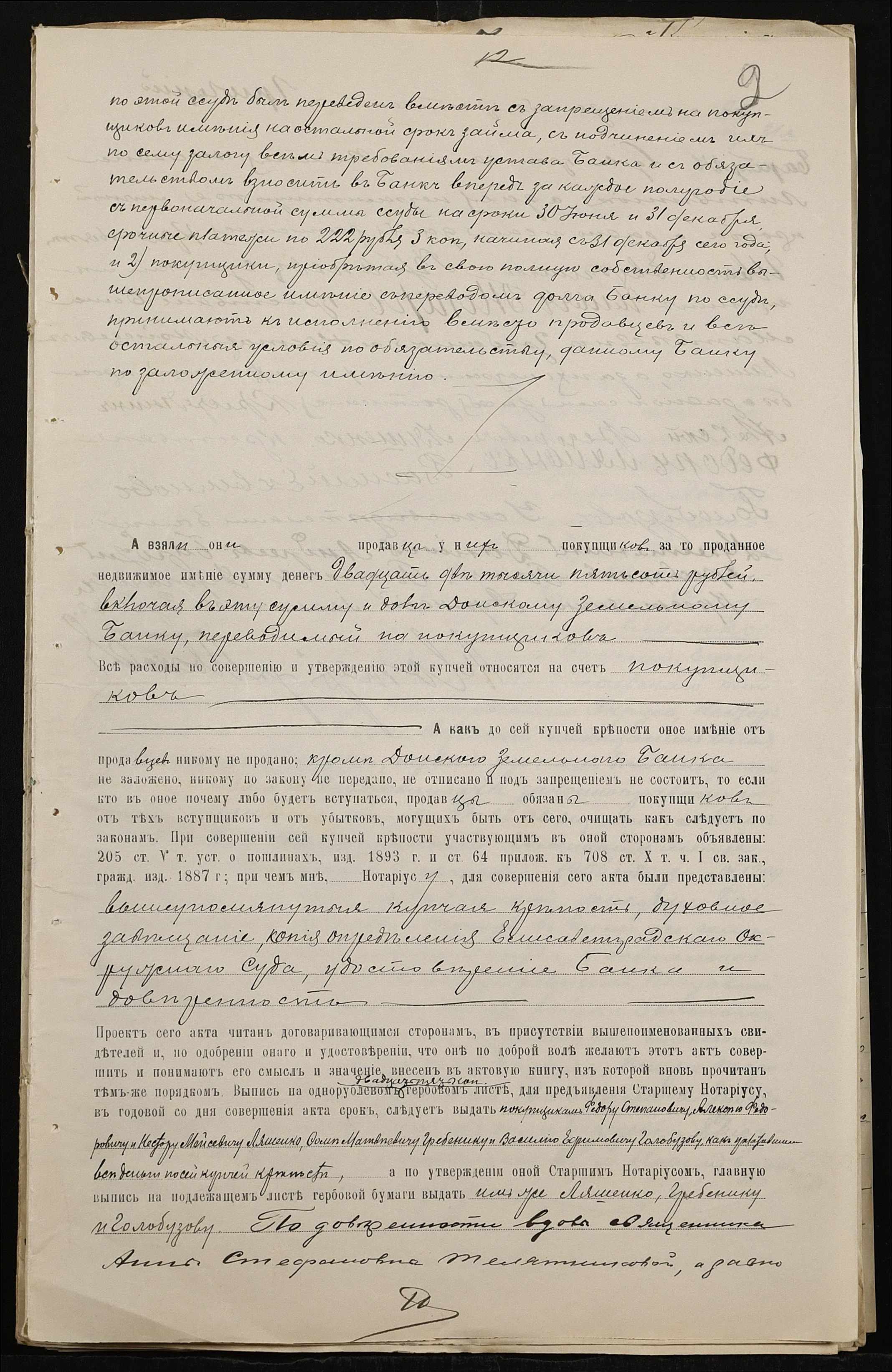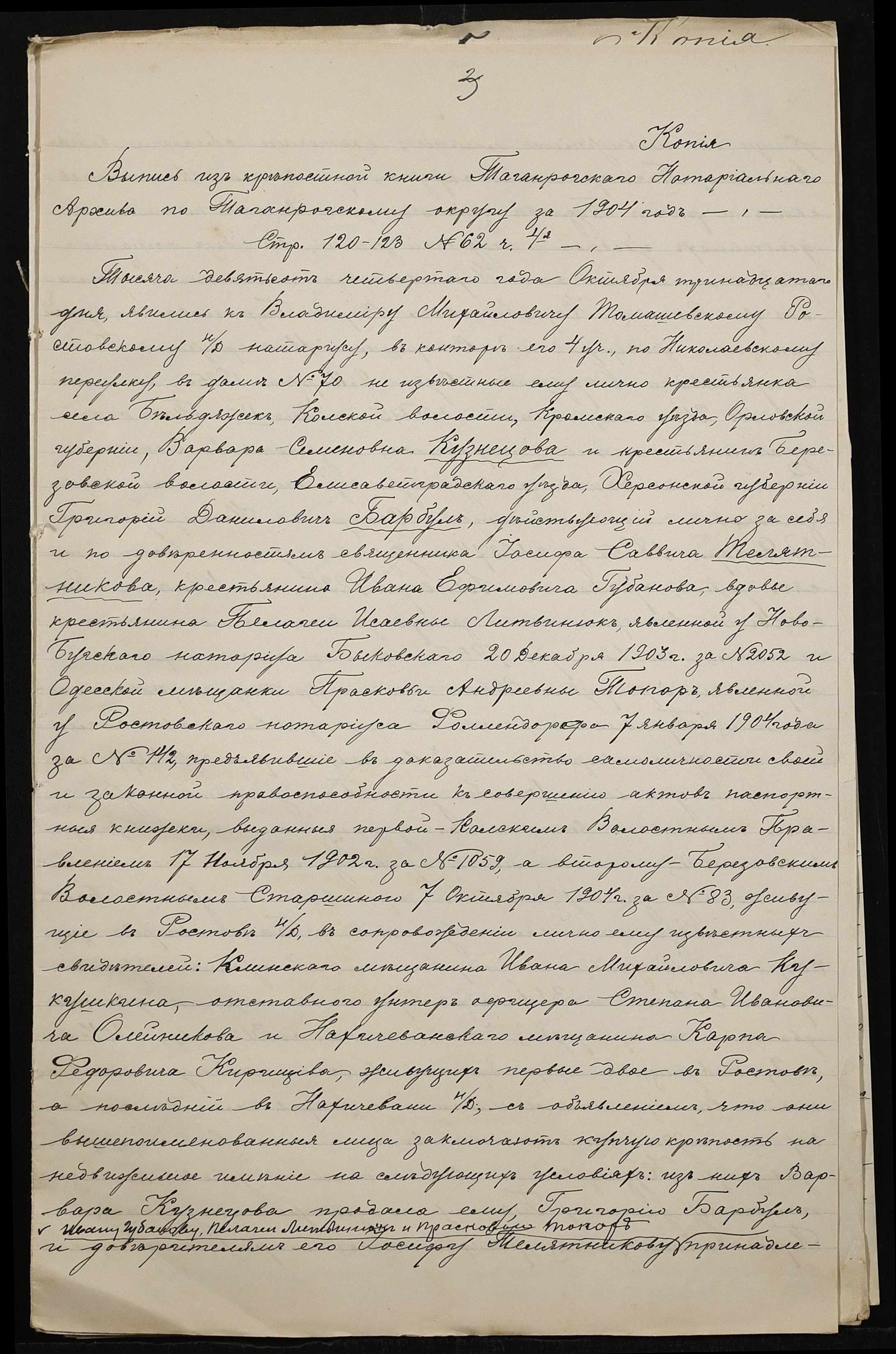 • • • • Справа № 101 “Справа про вчинення купчої про продаж землі селянином Барбулом Григорієм (Григорием) Даниловичем на користь селян Ляшенка (Ляшенко) Федора, Ляшенка (Ляшенко) Нестора, Гребеника Хоми (Фомы) і Галабузова Василя (Василия)”