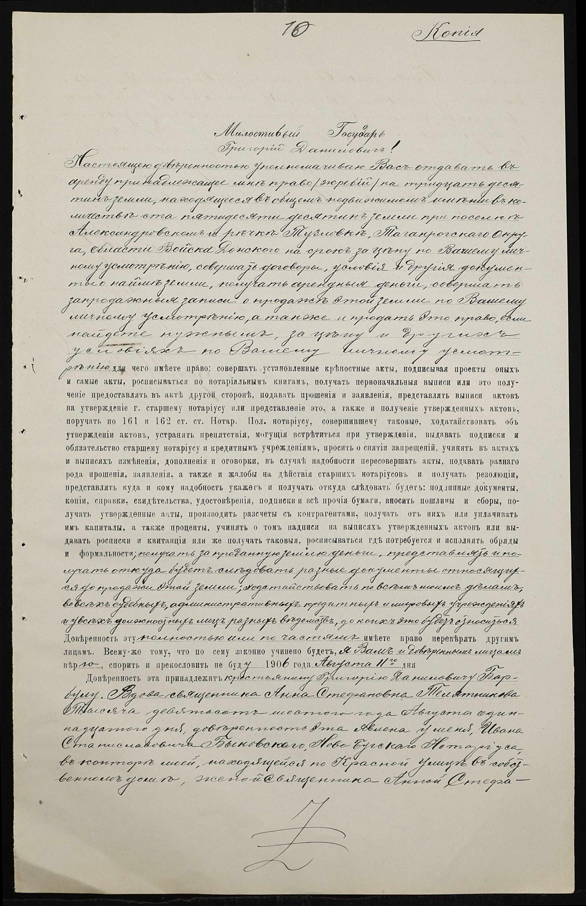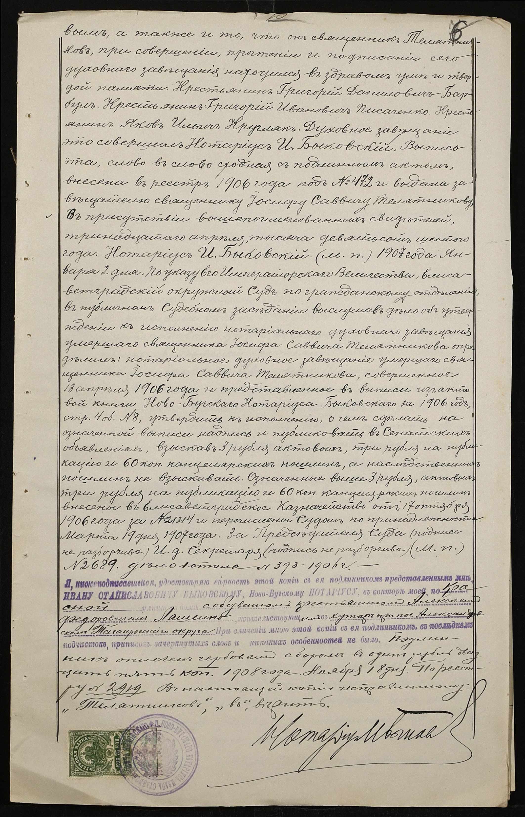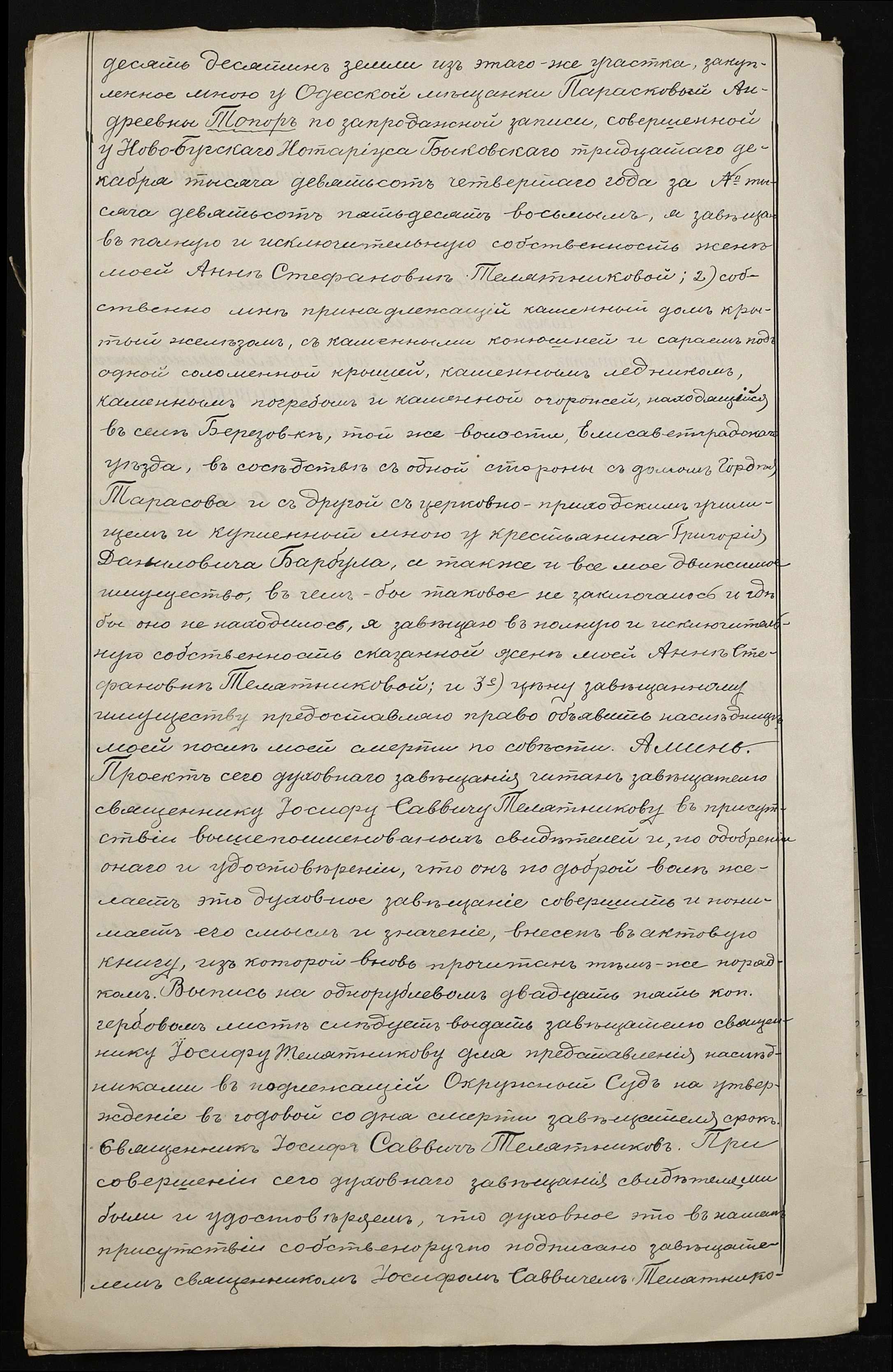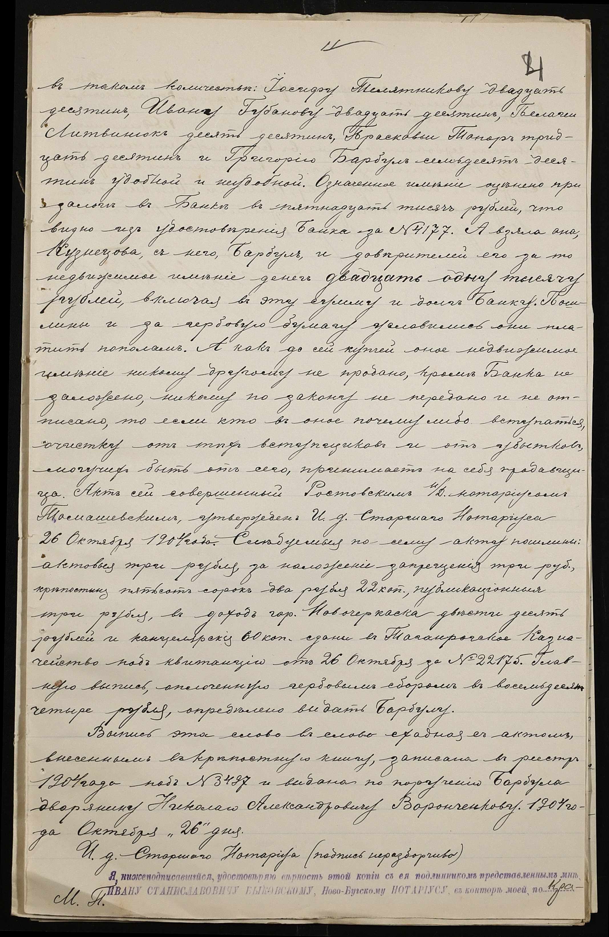 • • • • Справа № 101 “Справа про вчинення купчої про продаж землі селянином Барбулом Григорієм (Григорием) Даниловичем на користь селян Ляшенка (Ляшенко) Федора, Ляшенка (Ляшенко) Нестора, Гребеника Хоми (Фомы) і Галабузова Василя (Василия)”