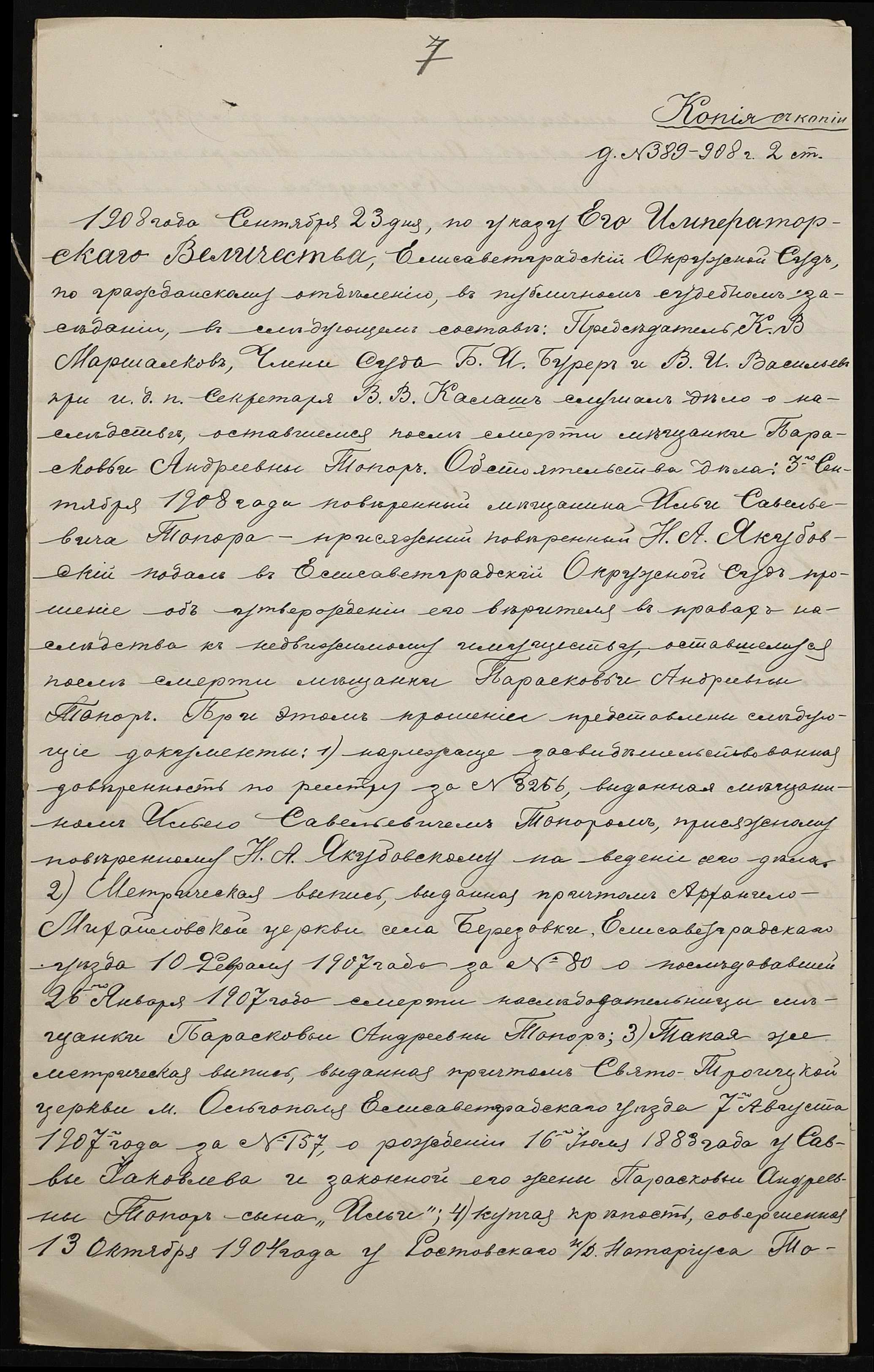 ◦ ◦ ◦ Опис № 2 справ постійного зберігання за 1898, 1904, 1907–1915 роки