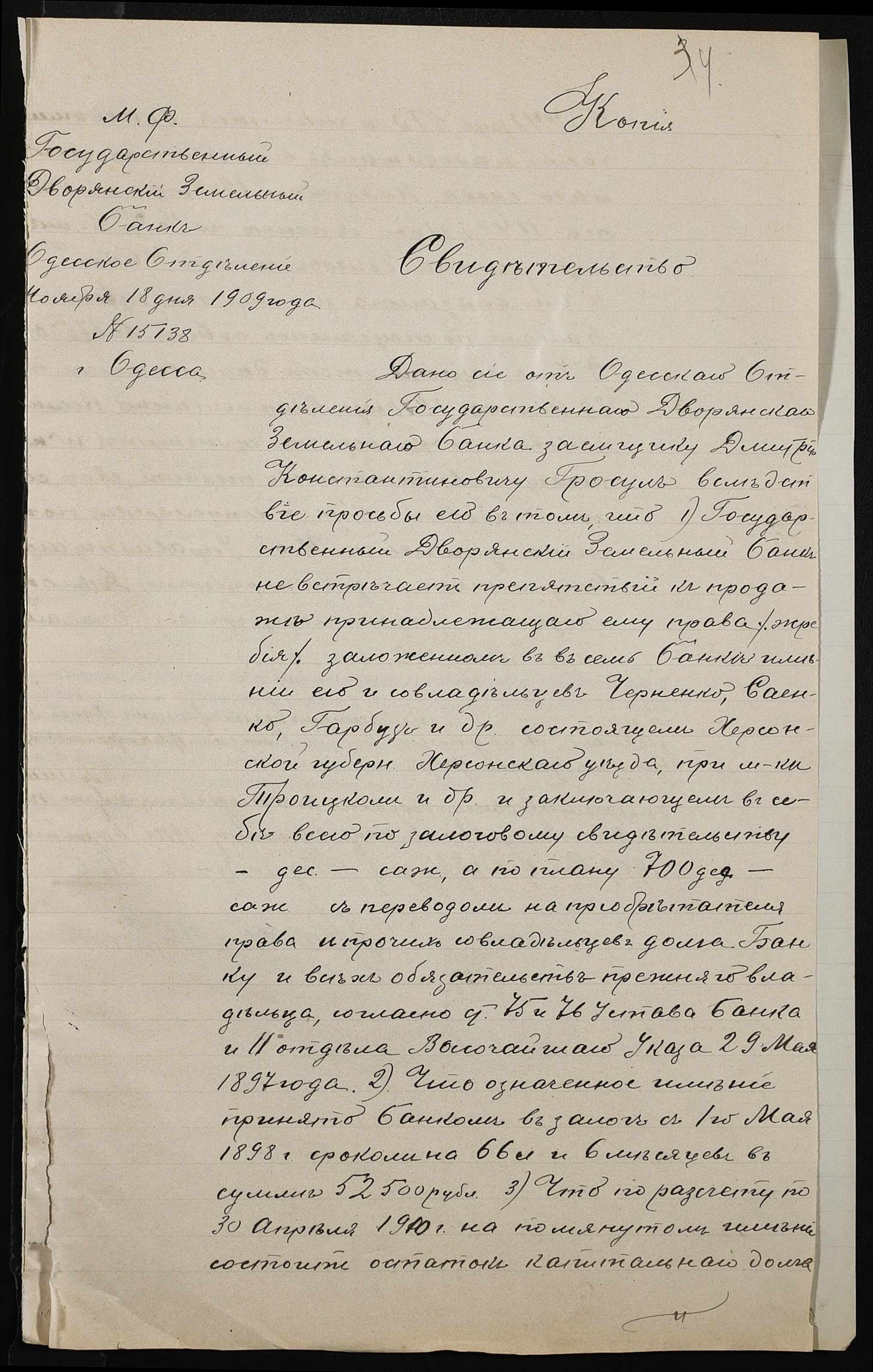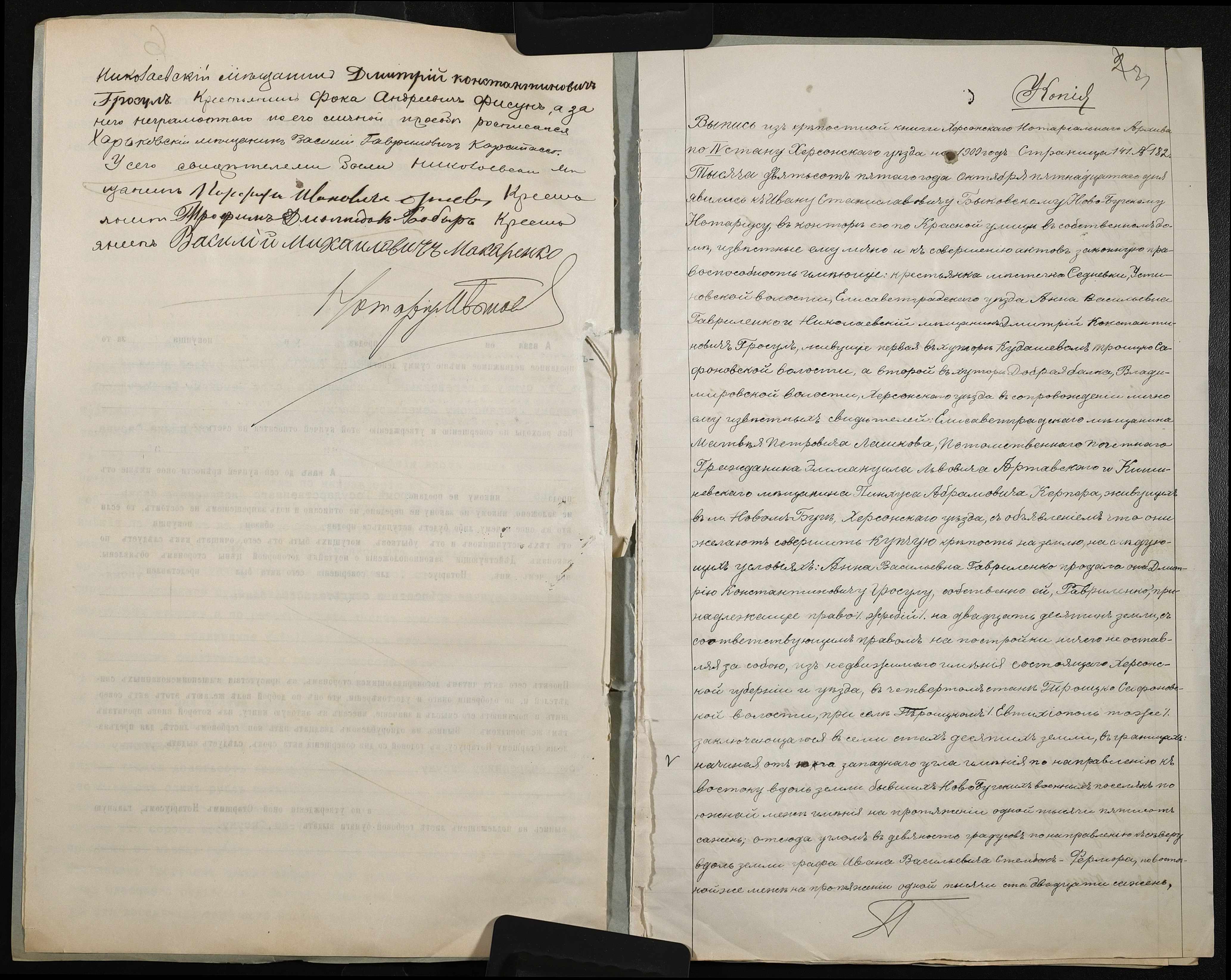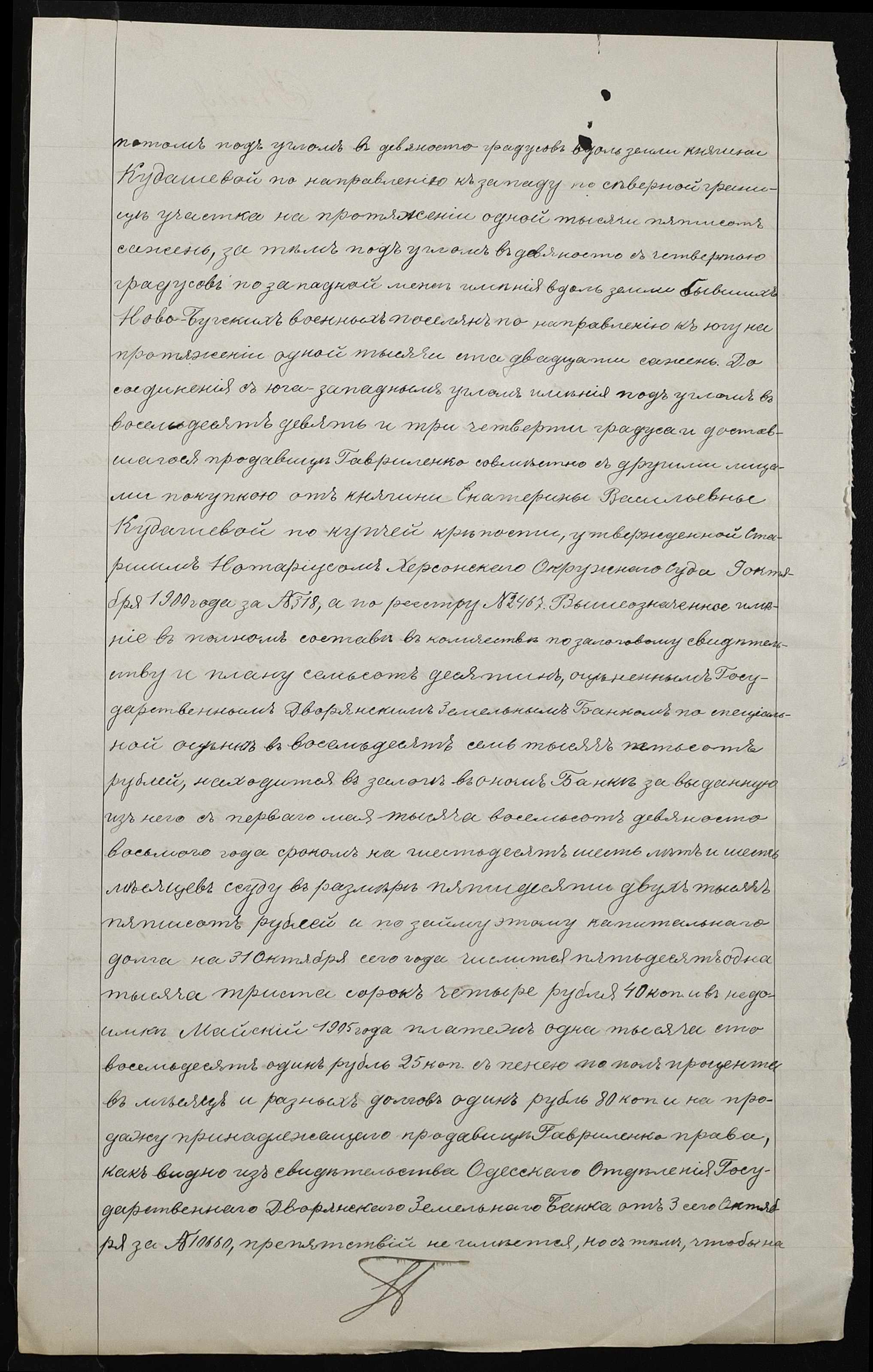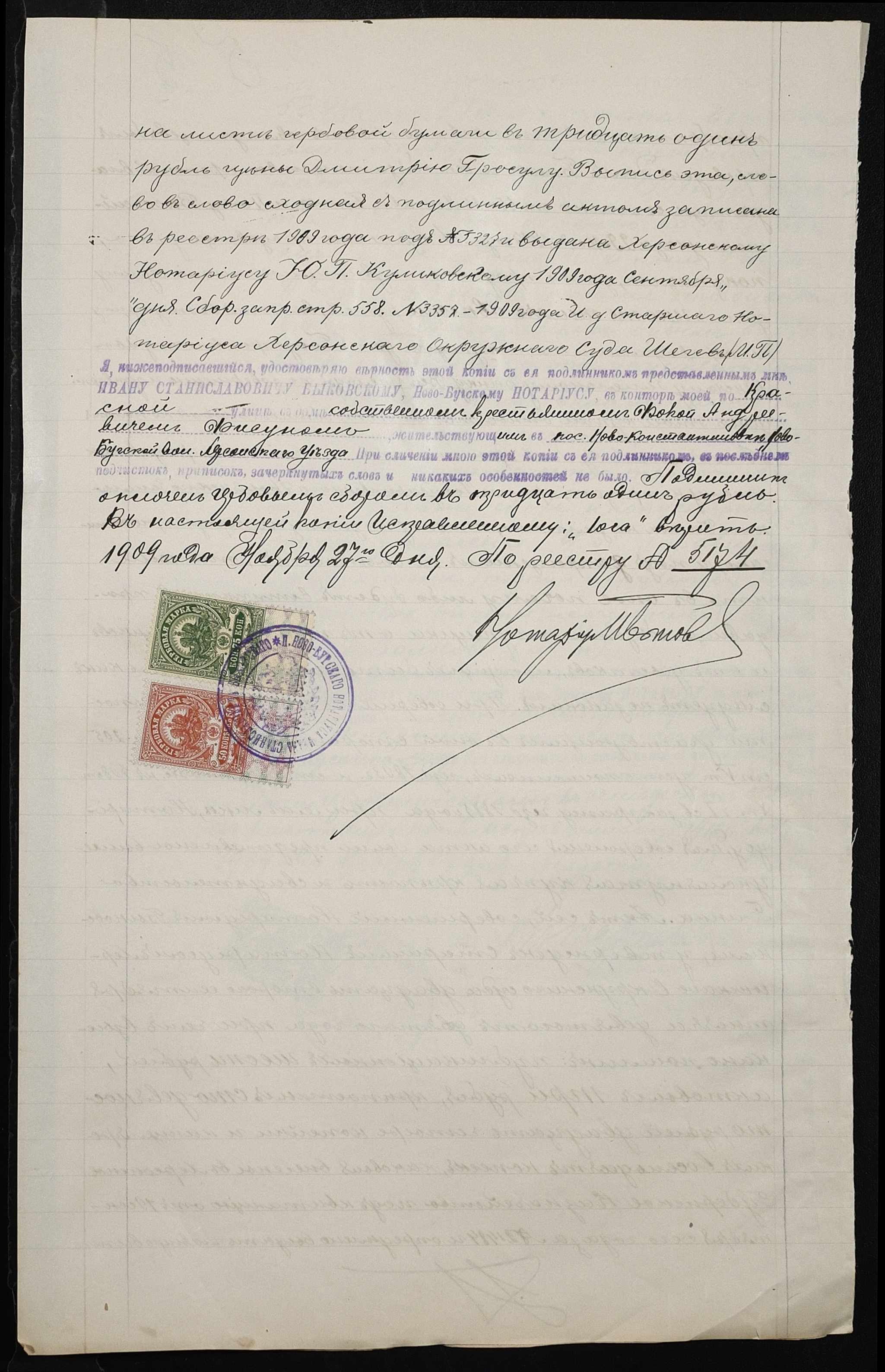 • • • • Справа № 105 “Справа про вчинення купчої про продаж нерухомого майна міщанином Гросулом Дмитром Костянтиновичем (Дмитрием Константиновичем) на користь селянина Фісуна (Фисуна) Фоки Андрійовича (Андреевича)”