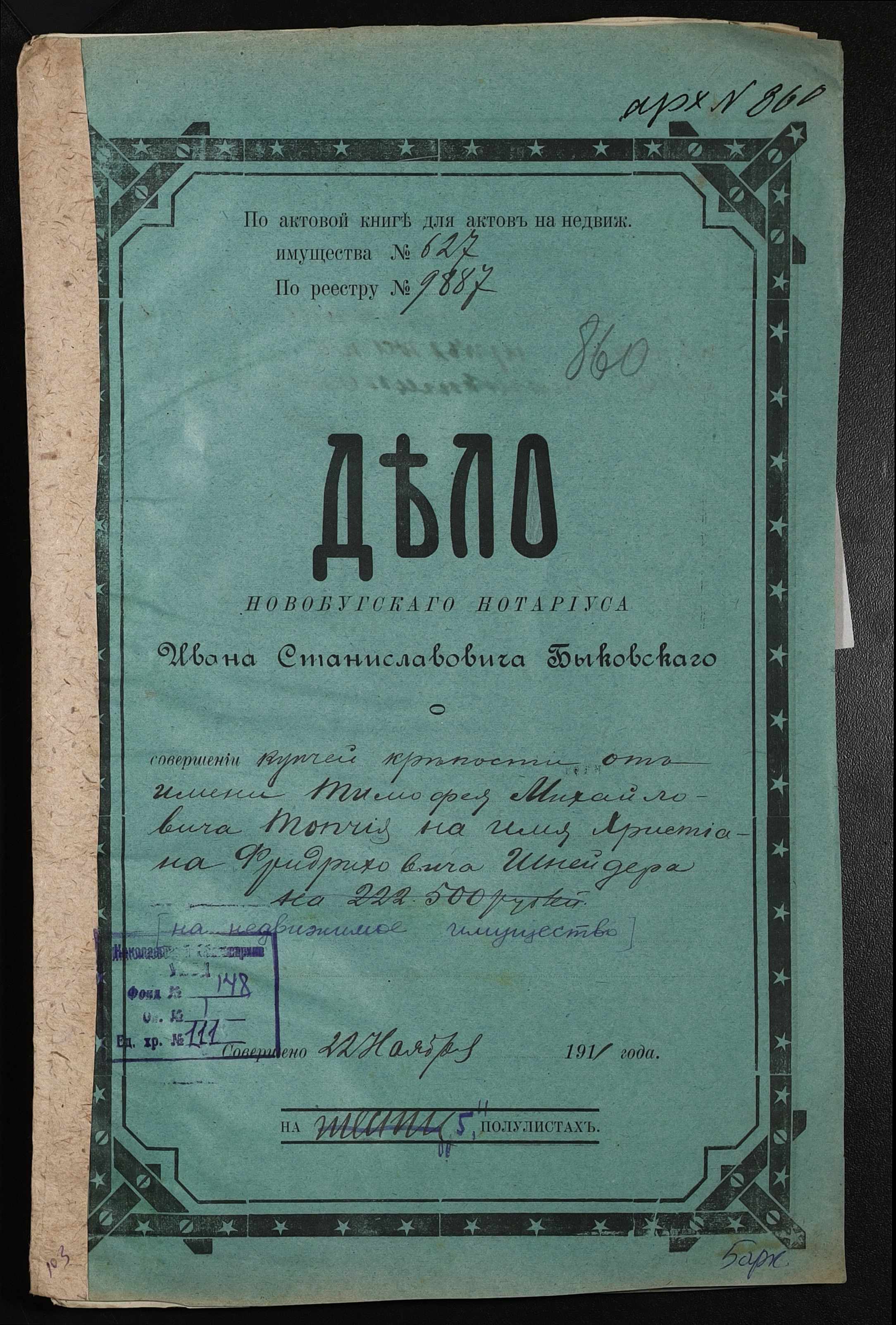◦ ◦ Фонд № 148 “Контора новобузького нотаріуса Биковського Івана Станіславовича”