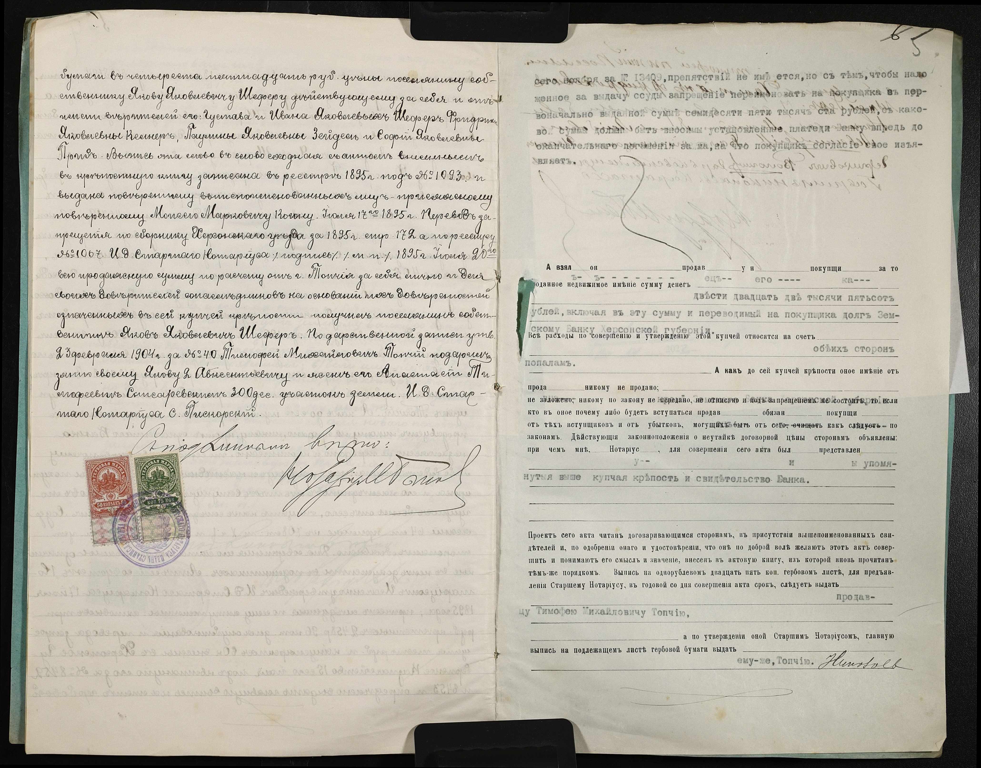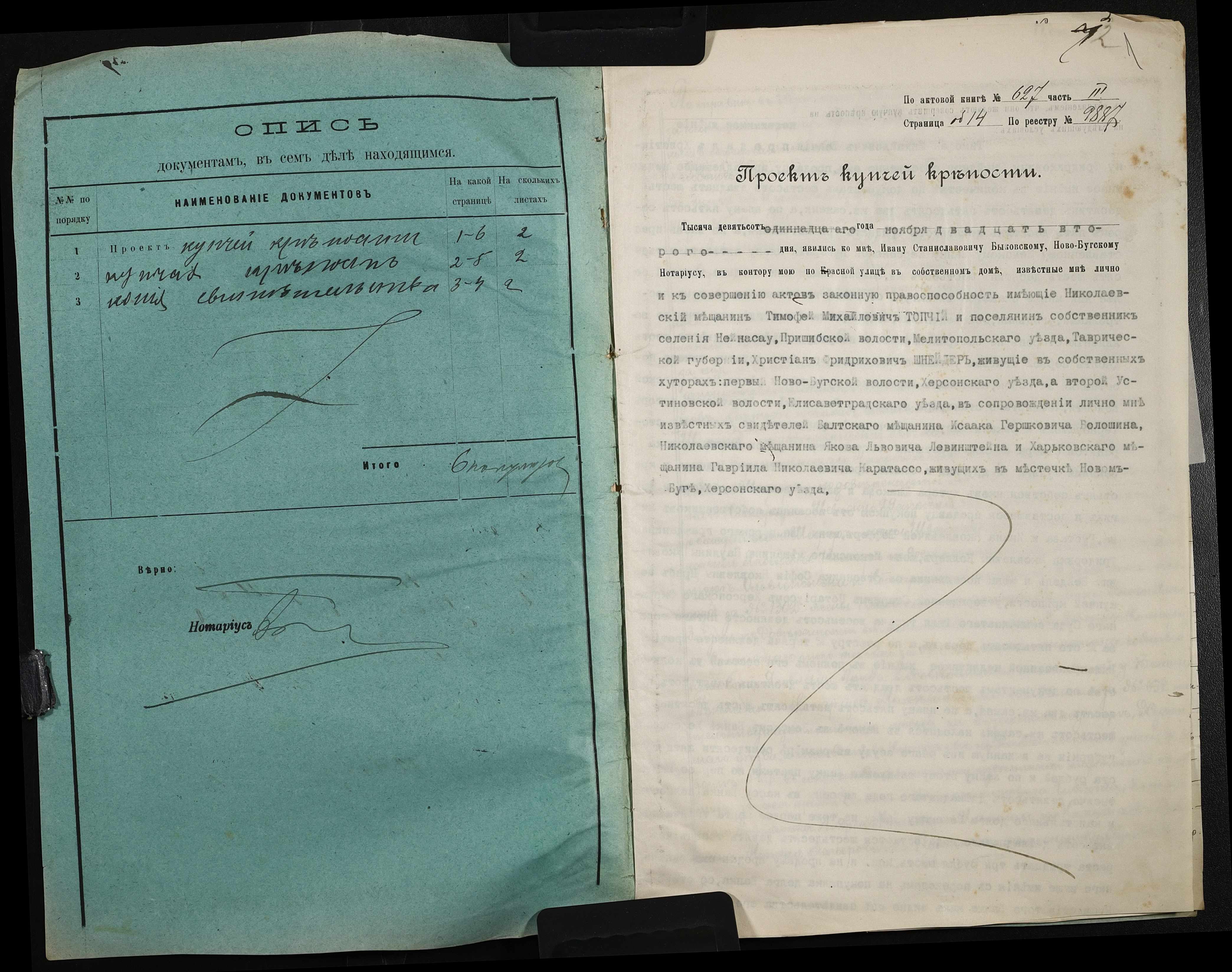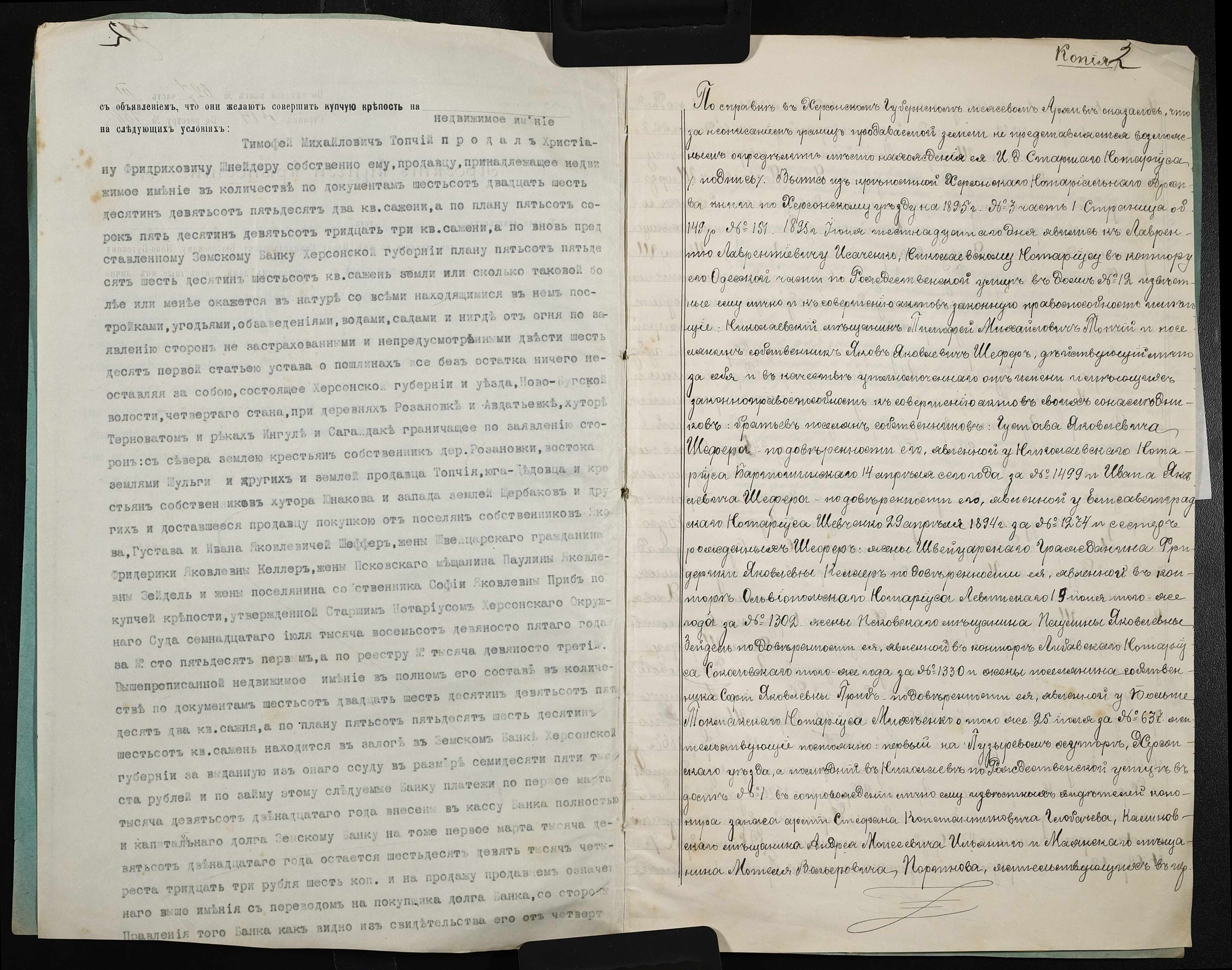 • • • • Справа № 111 “Справа про вчинення купчої про продаж нерухомого майна міщанином Топчієм Тимофієм (Топчием Тимофеем) Михайловичем на користь селянина-власника Шнейдера Християна Фрідріховича (Христина Фридриховича)”