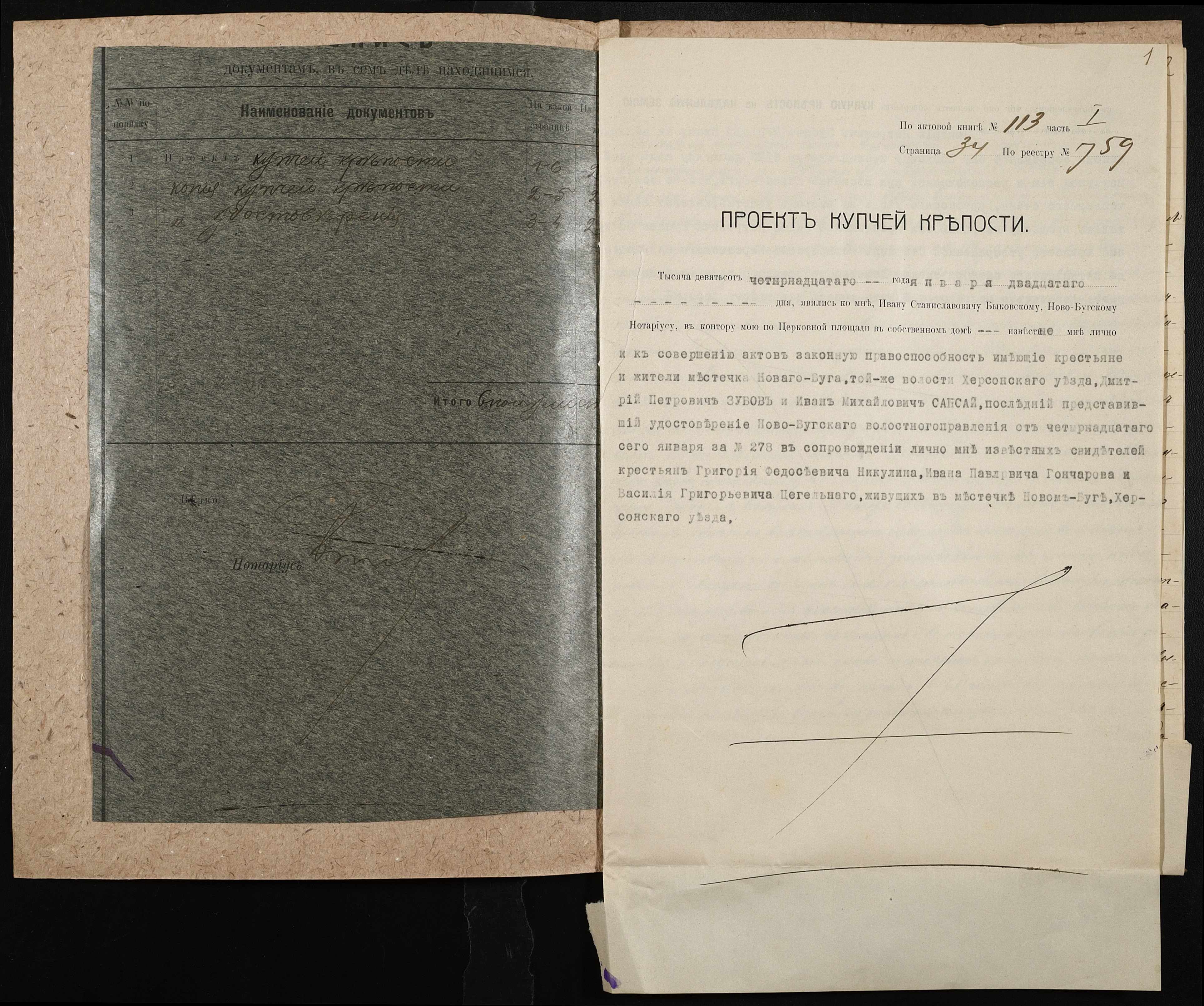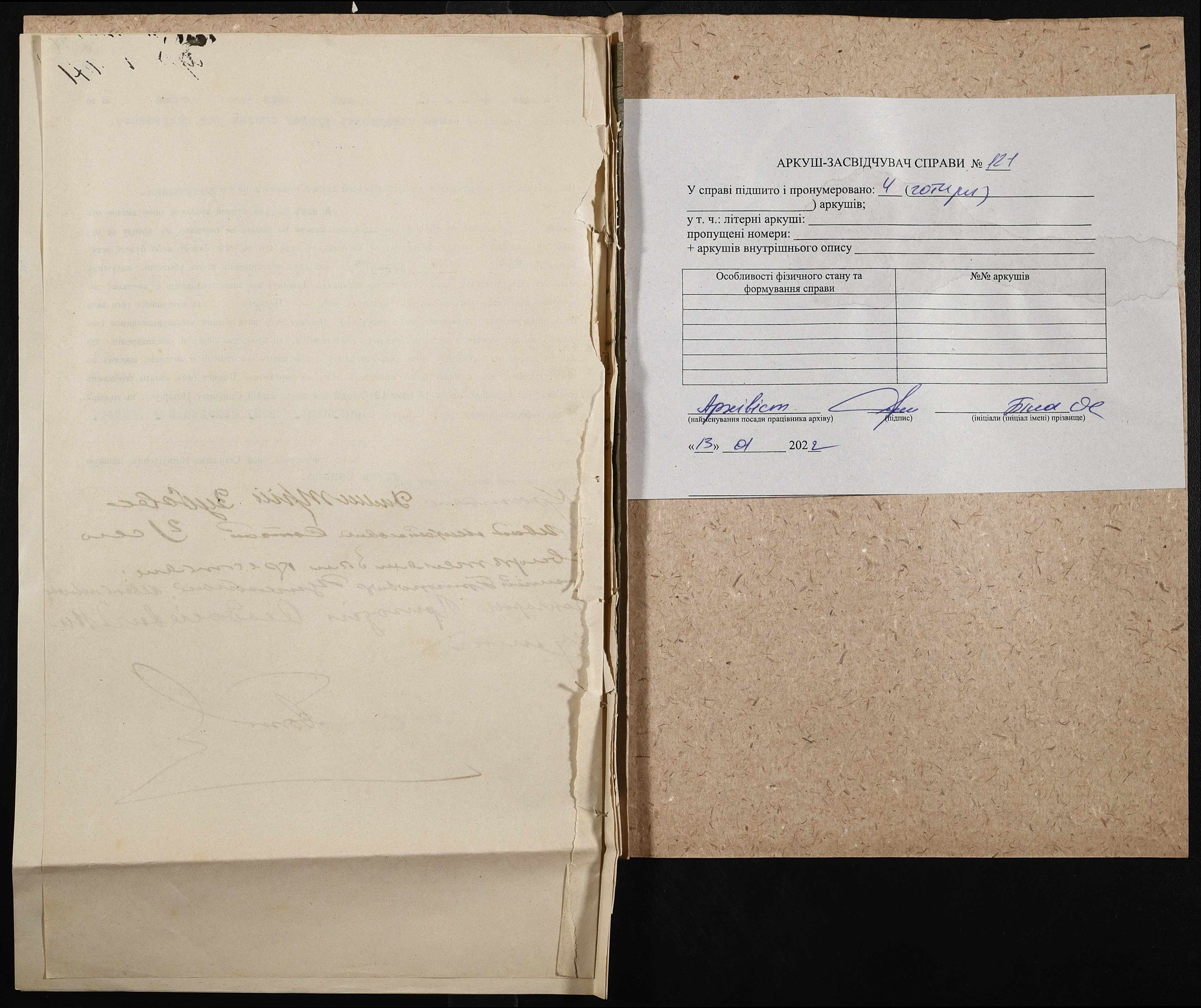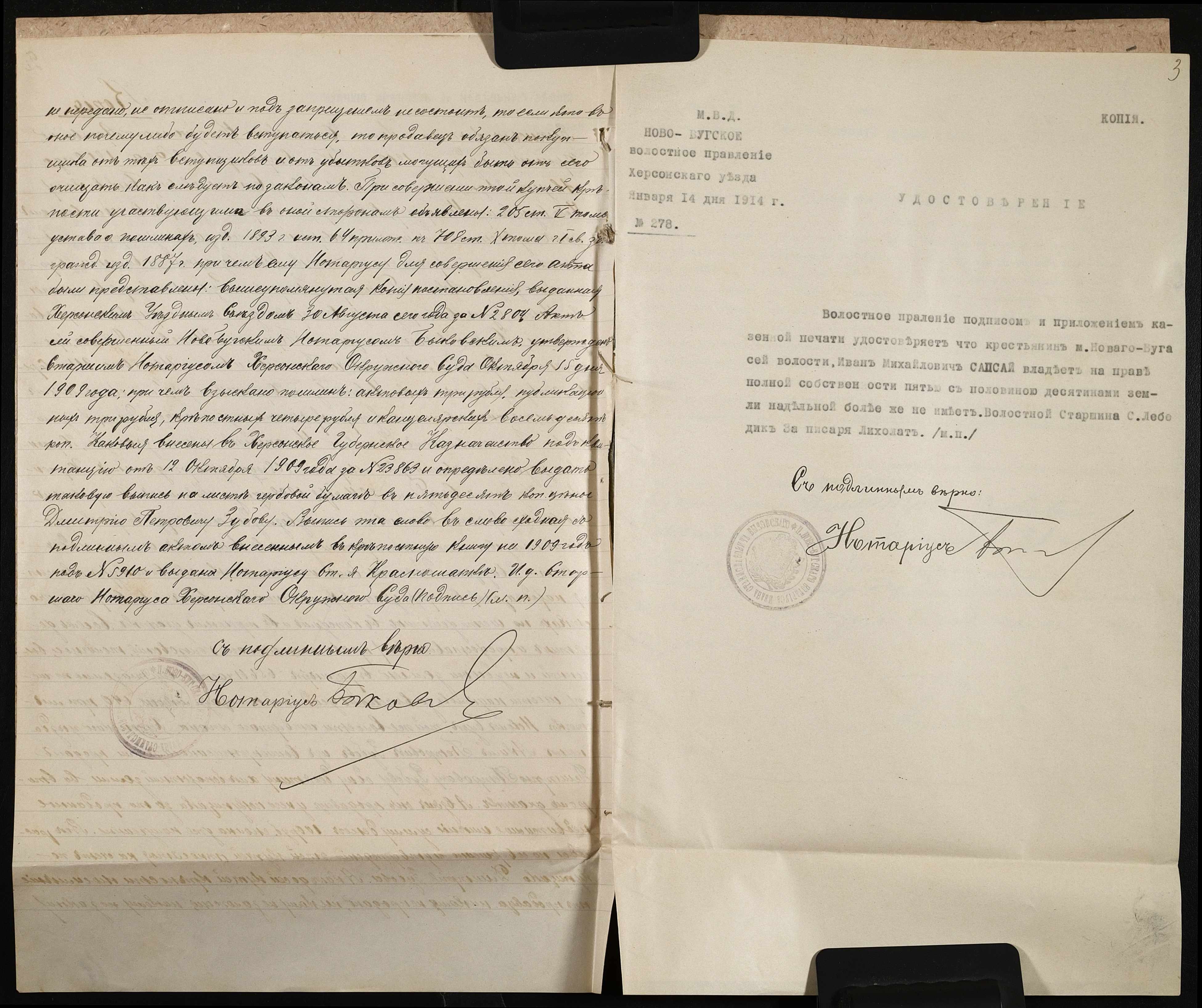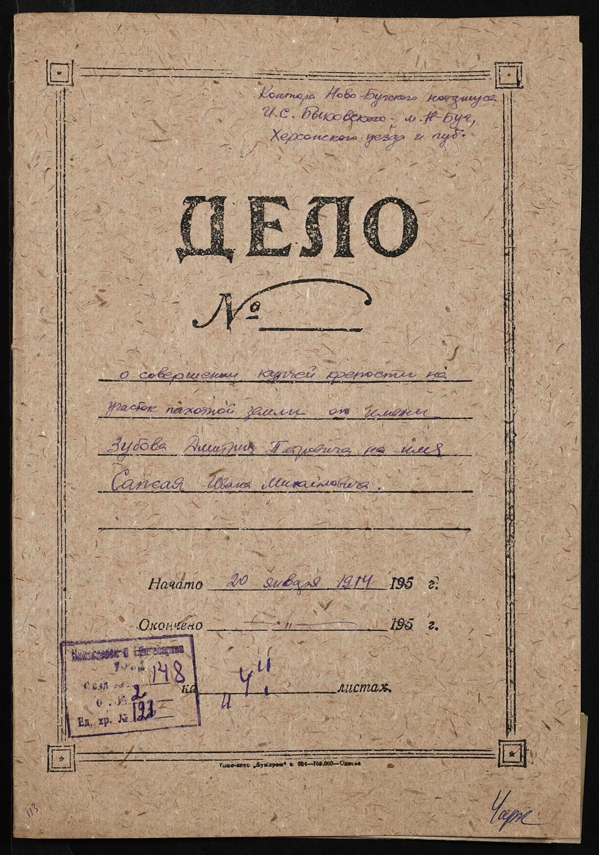• • • • Справа № 121 “Справа про вчинення купчої про продаж землі селянином Зубовим Дмитром (Зубовым Дмитрием) Петровичем на користь селянина Сапсая Івана (Ивана) Михайловича”