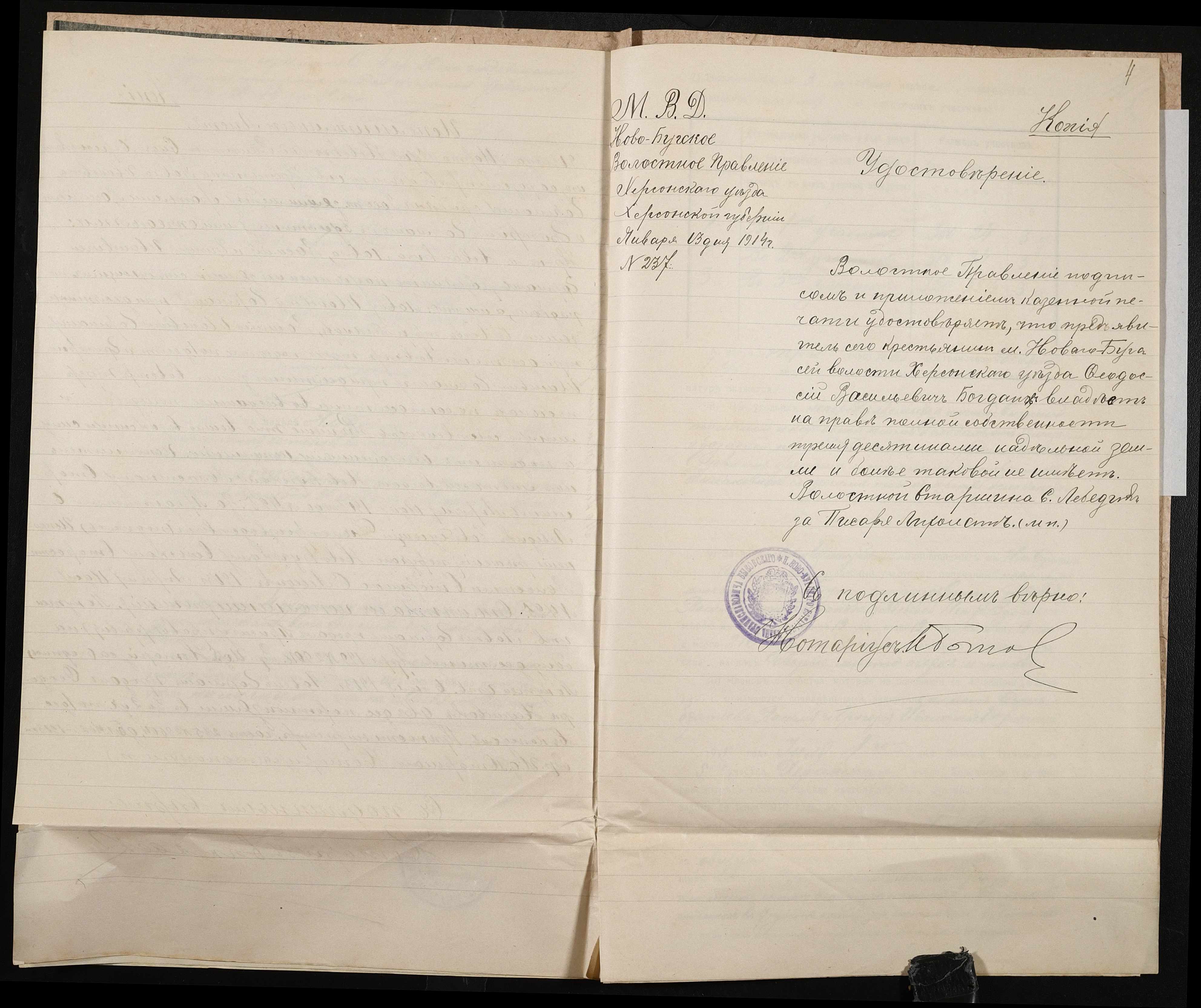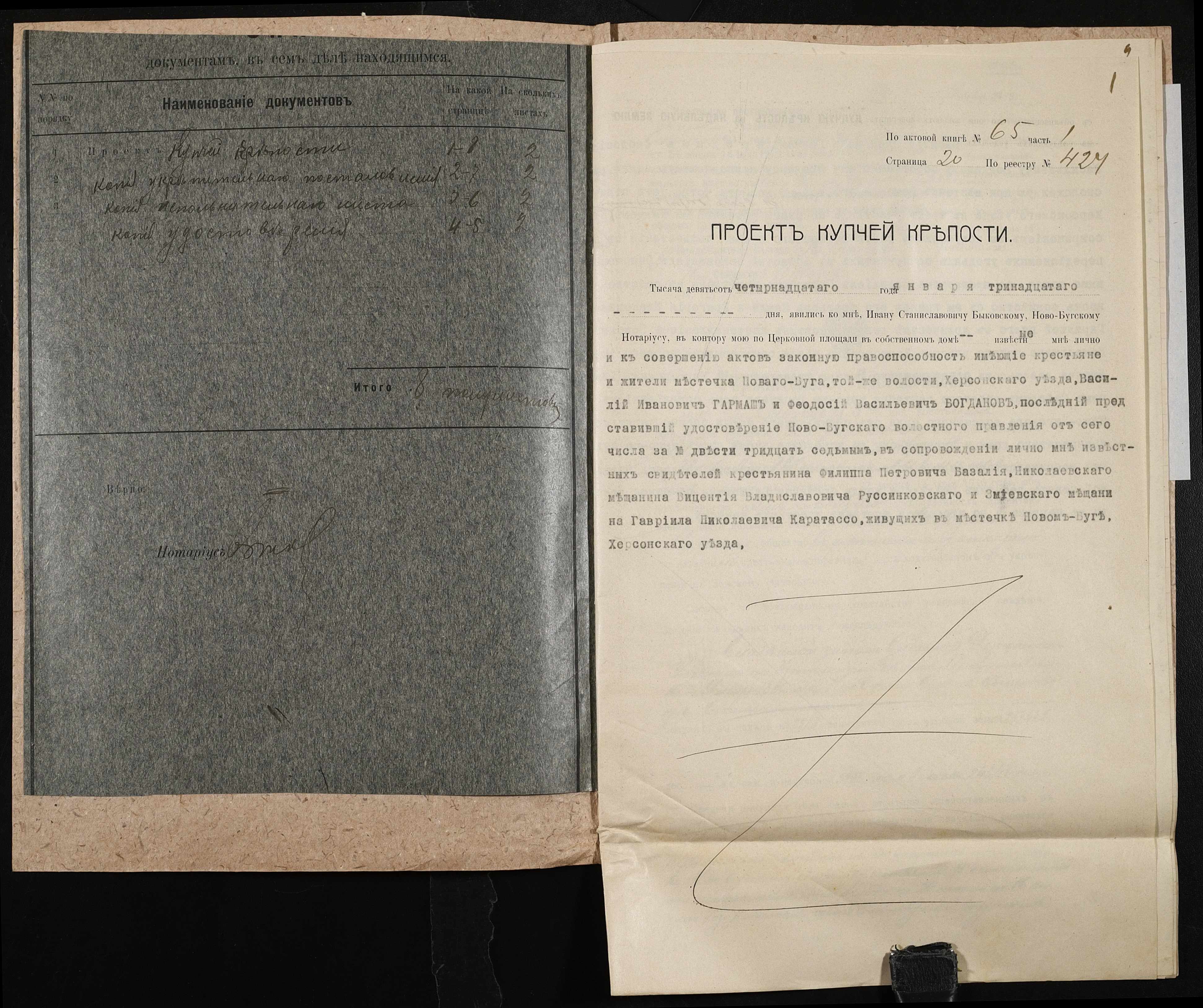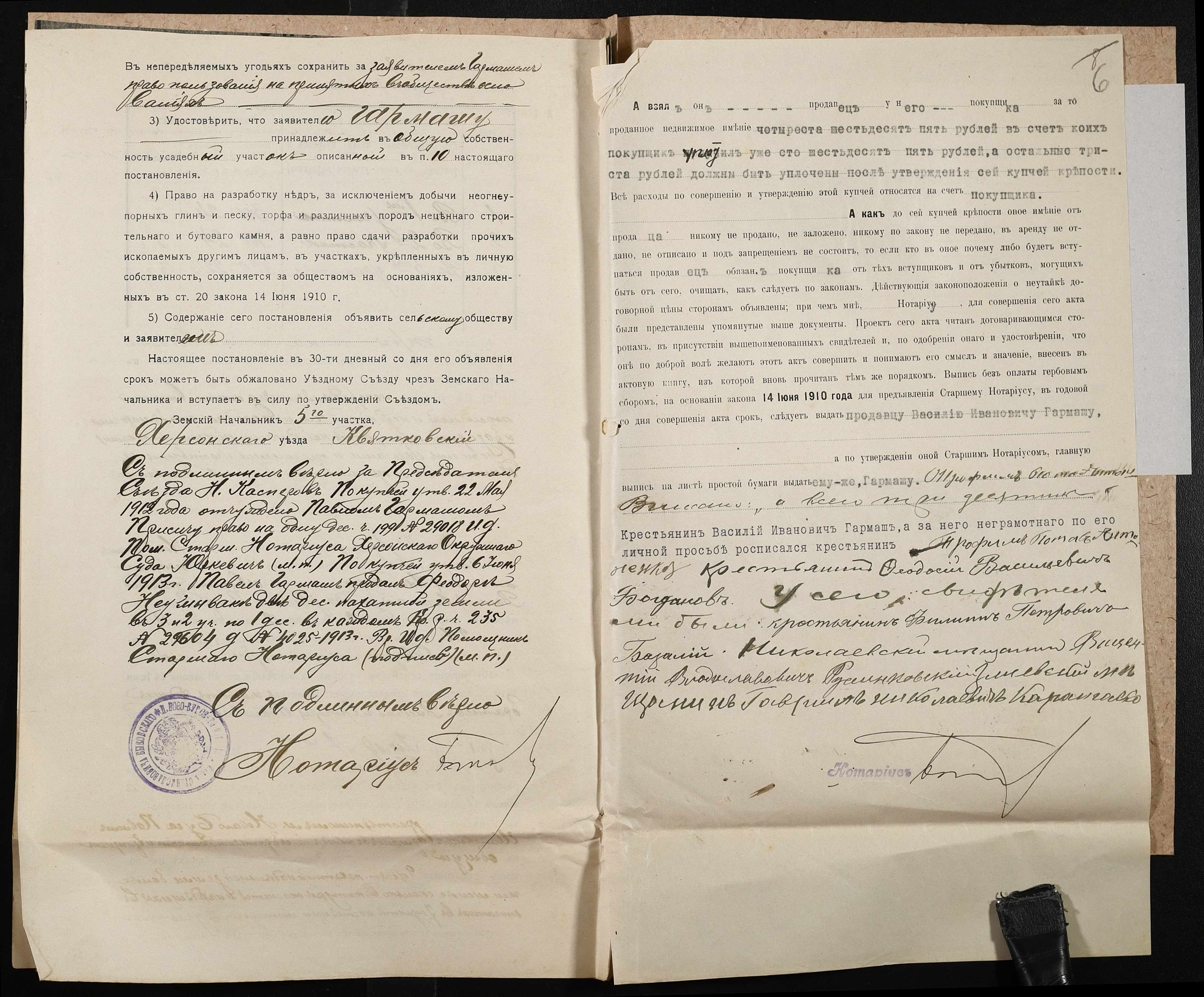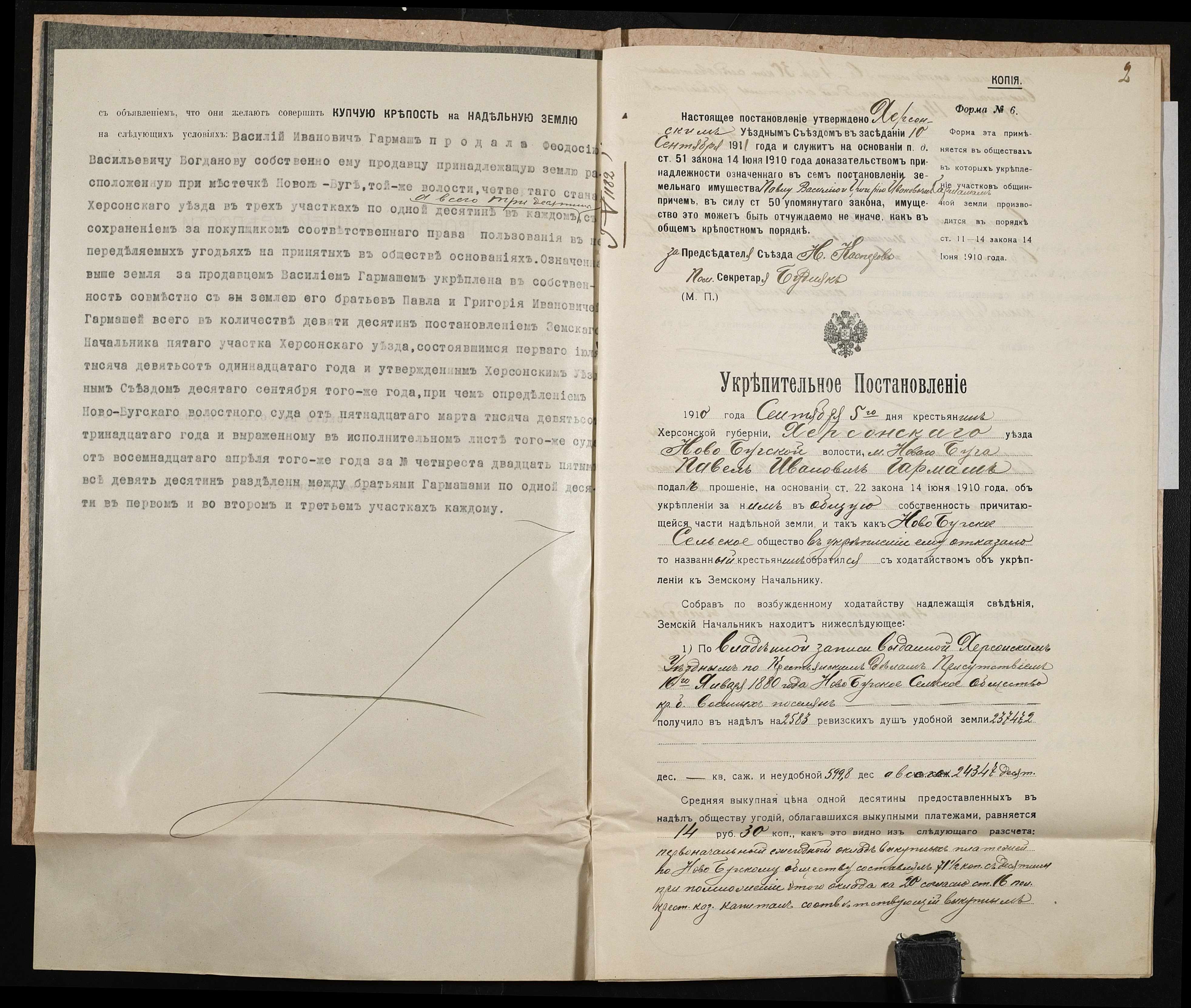 • • • • Справа № 125 “Справа про вчинення купчої про продаж землі селянином Гармашем Василем Івановичем (Василием Ивановичем) на користь селянина Богданова Феодосія Васильовича (Феодосия Васильевича)”