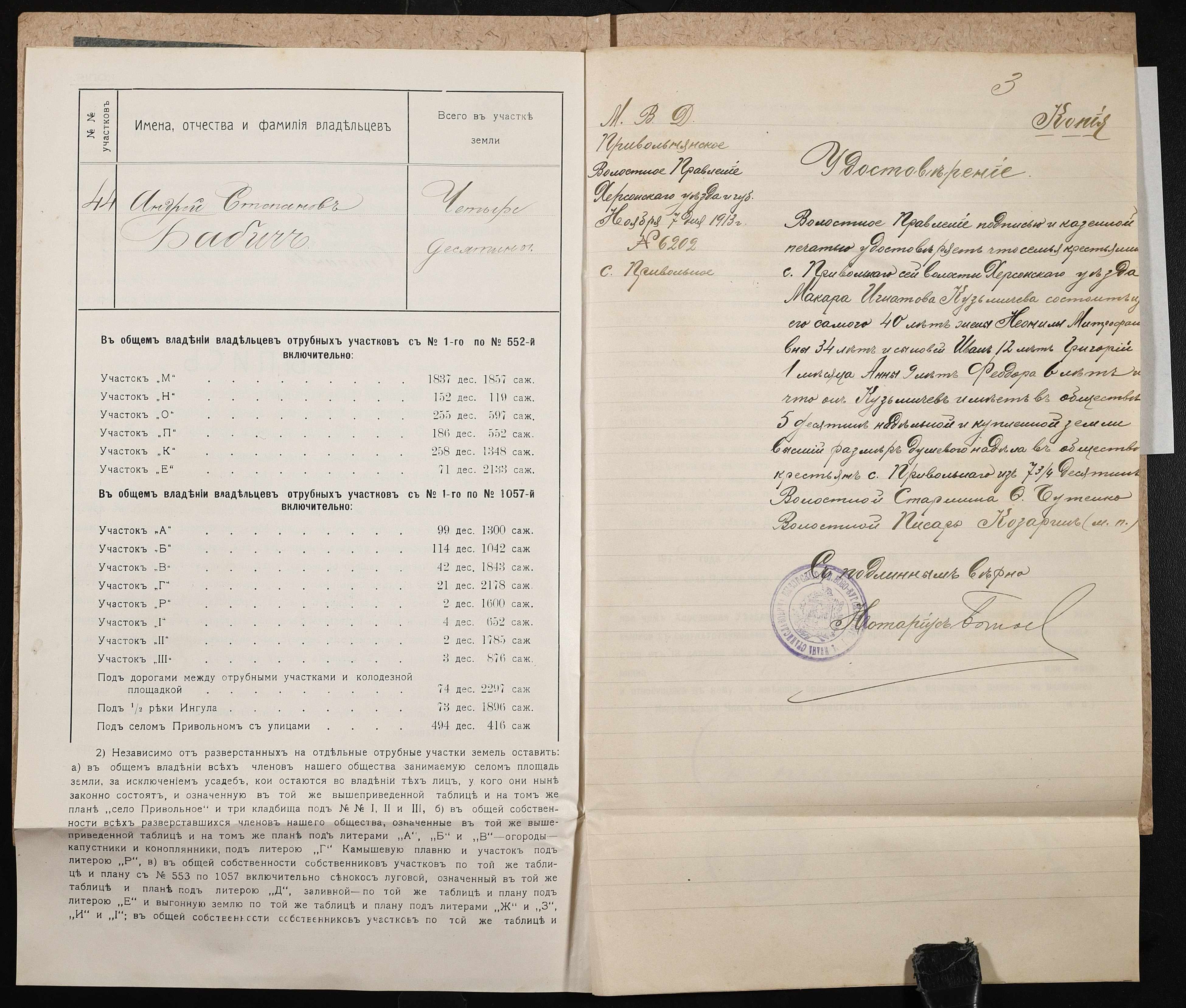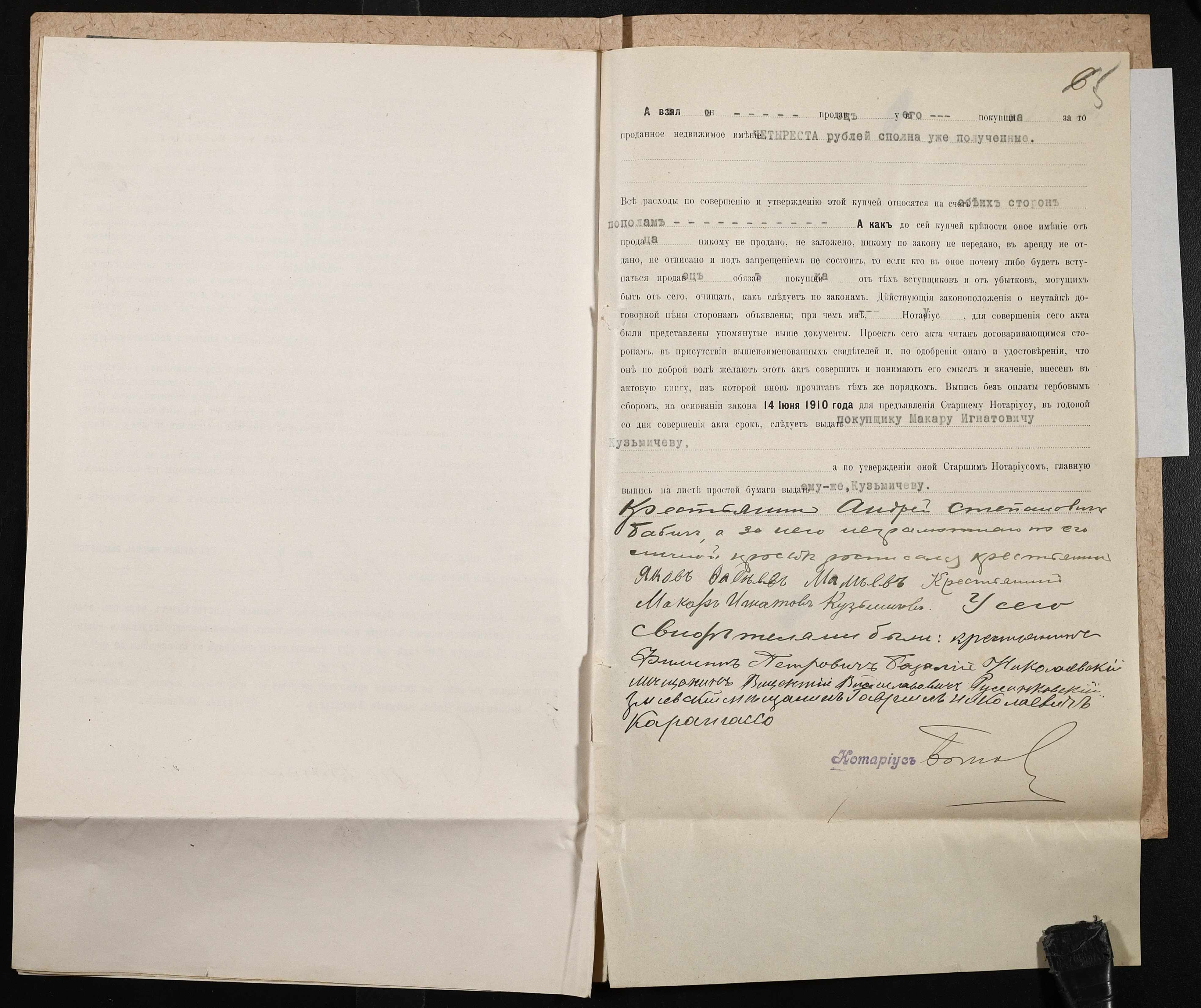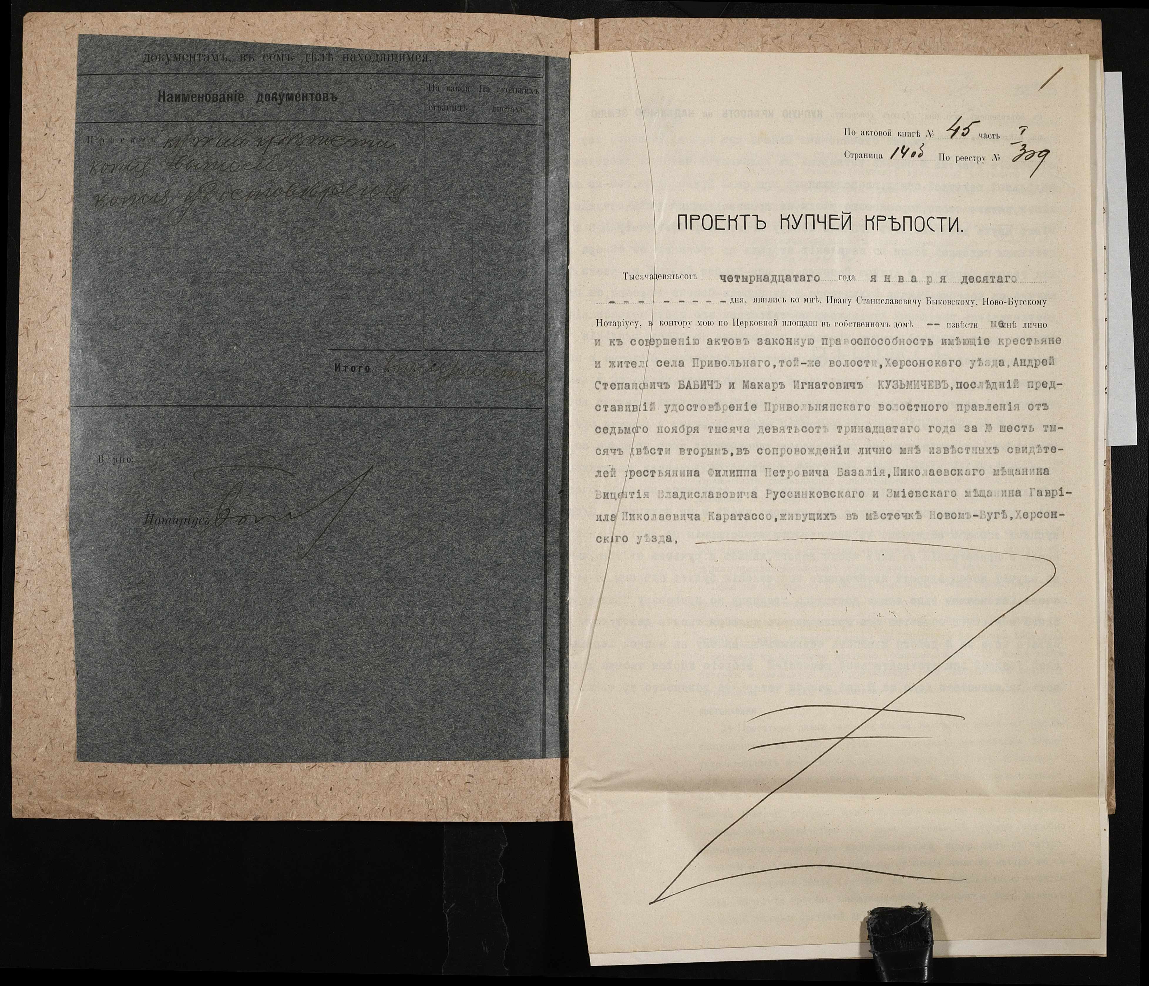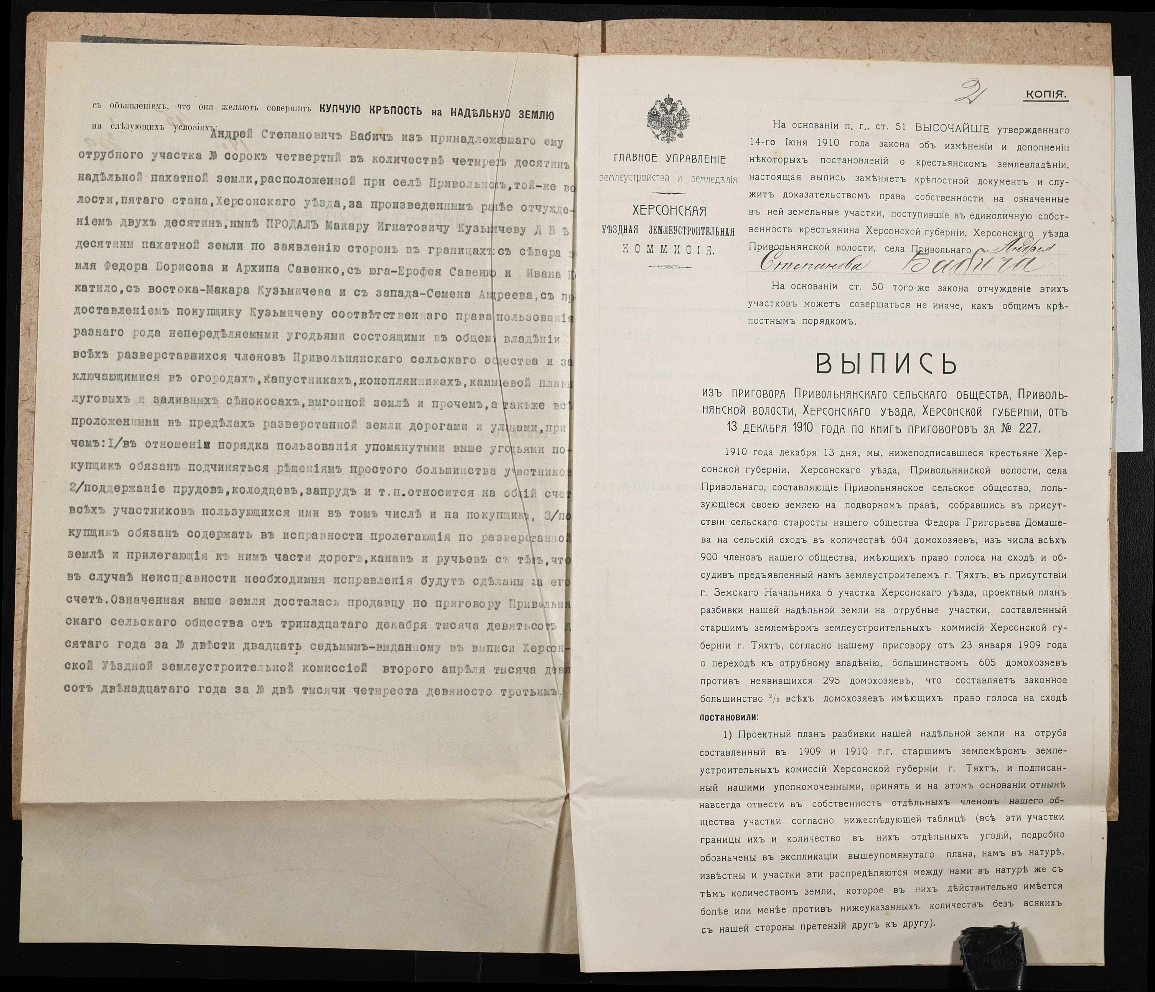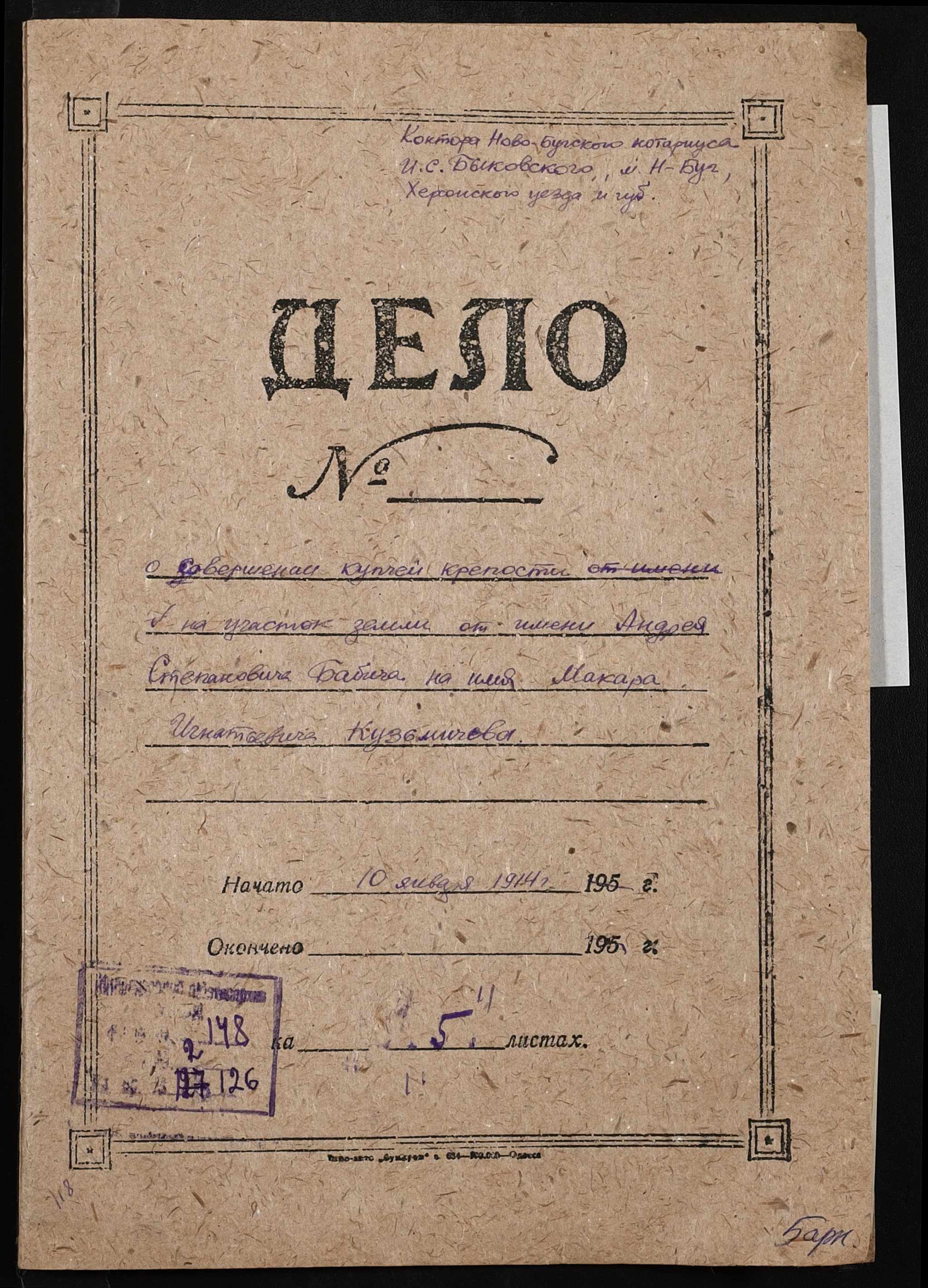• • • • Справа № 126 “Справа про вчинення купчої про продаж землі селянином Бабичем Андрієм (Андреем) Степановичем на користь селянина Кузьмичова(Кузьмичева) Макара Гнатовича (Игнатовича)”