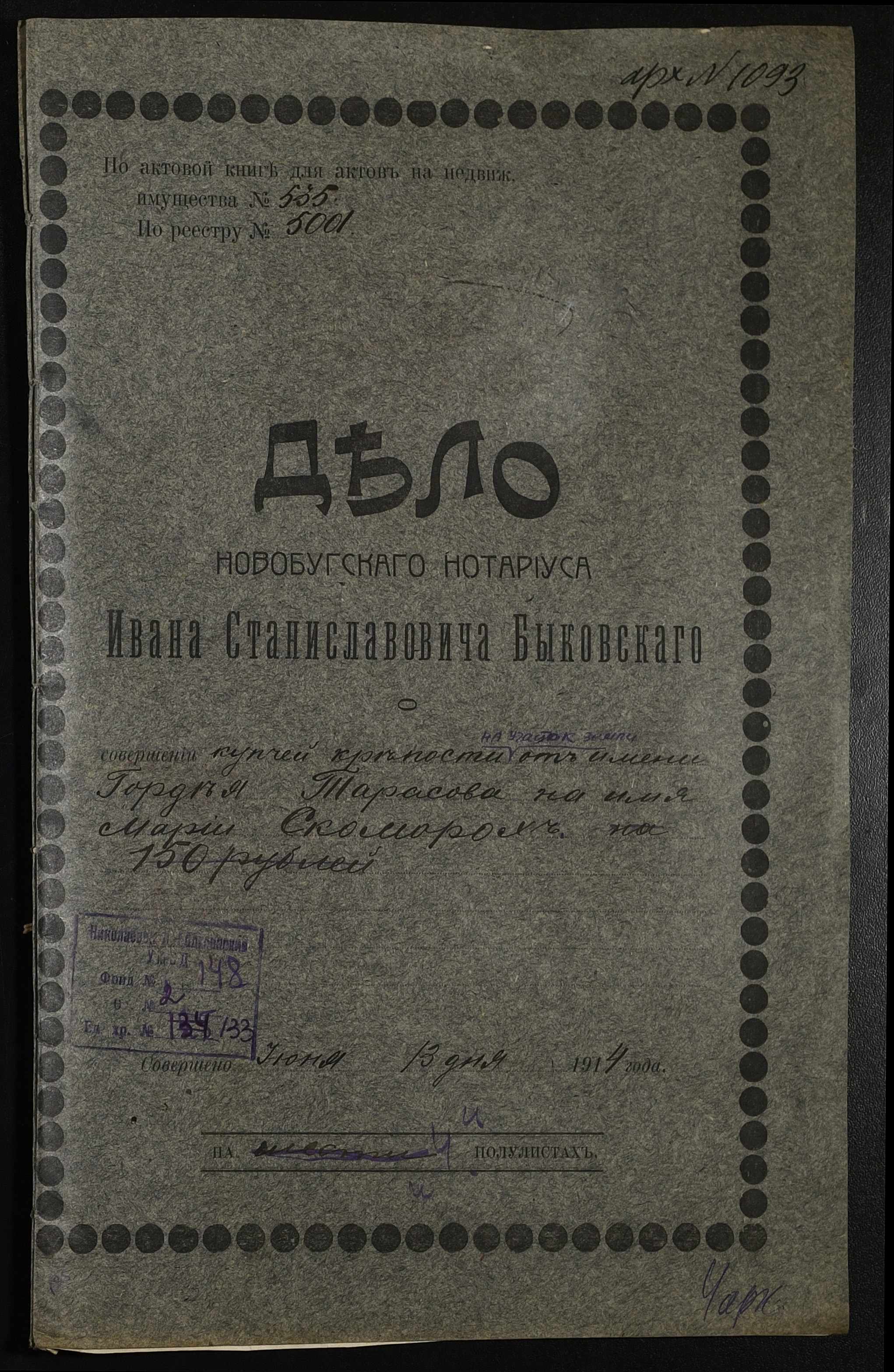 ◦ ◦ Фонд № 148 “Контора новобузького нотаріуса Биковського Івана Станіславовича”