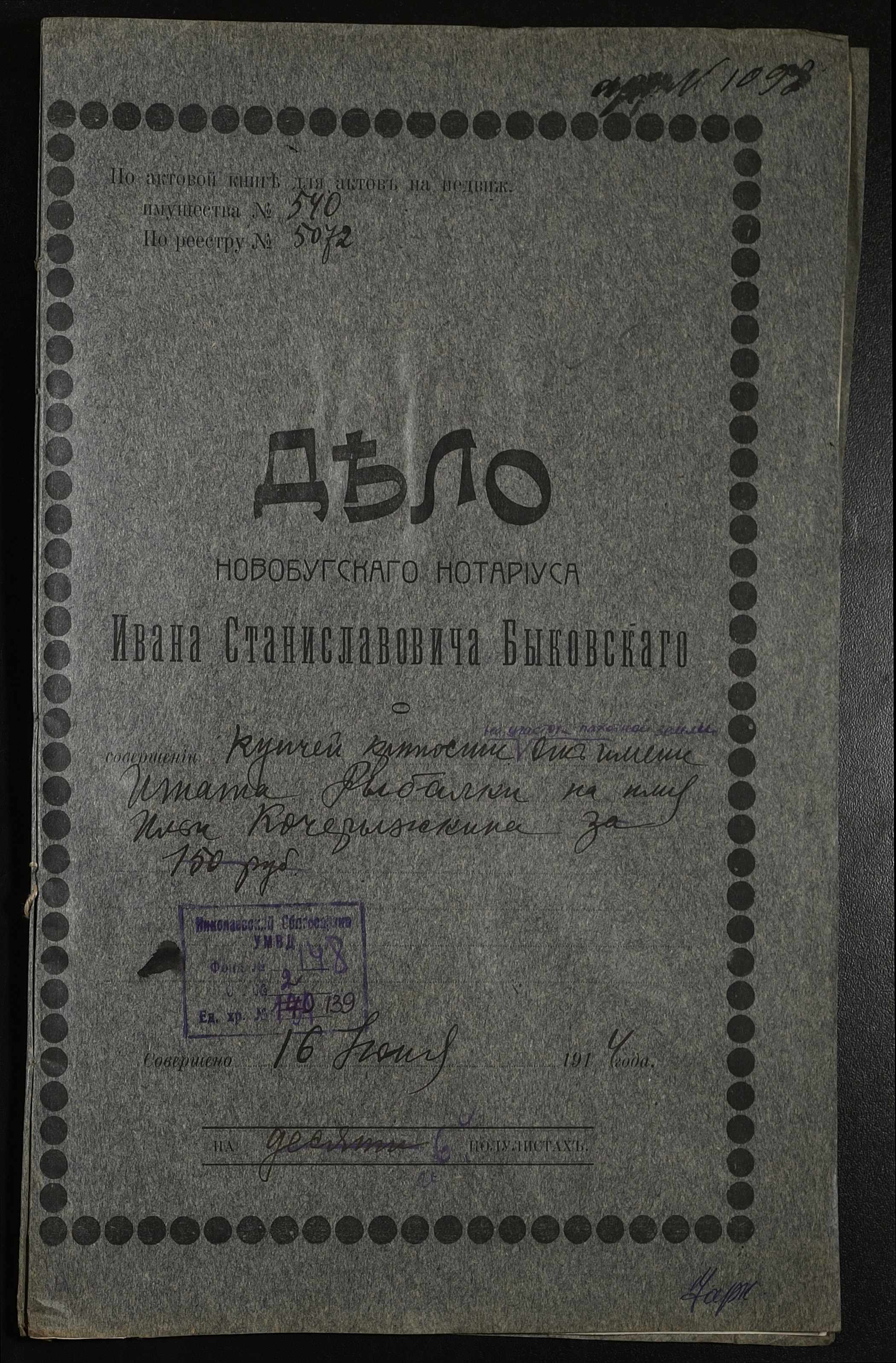 ◦ ◦ Фонд № 148 “Контора новобузького нотаріуса Биковського Івана Станіславовича”