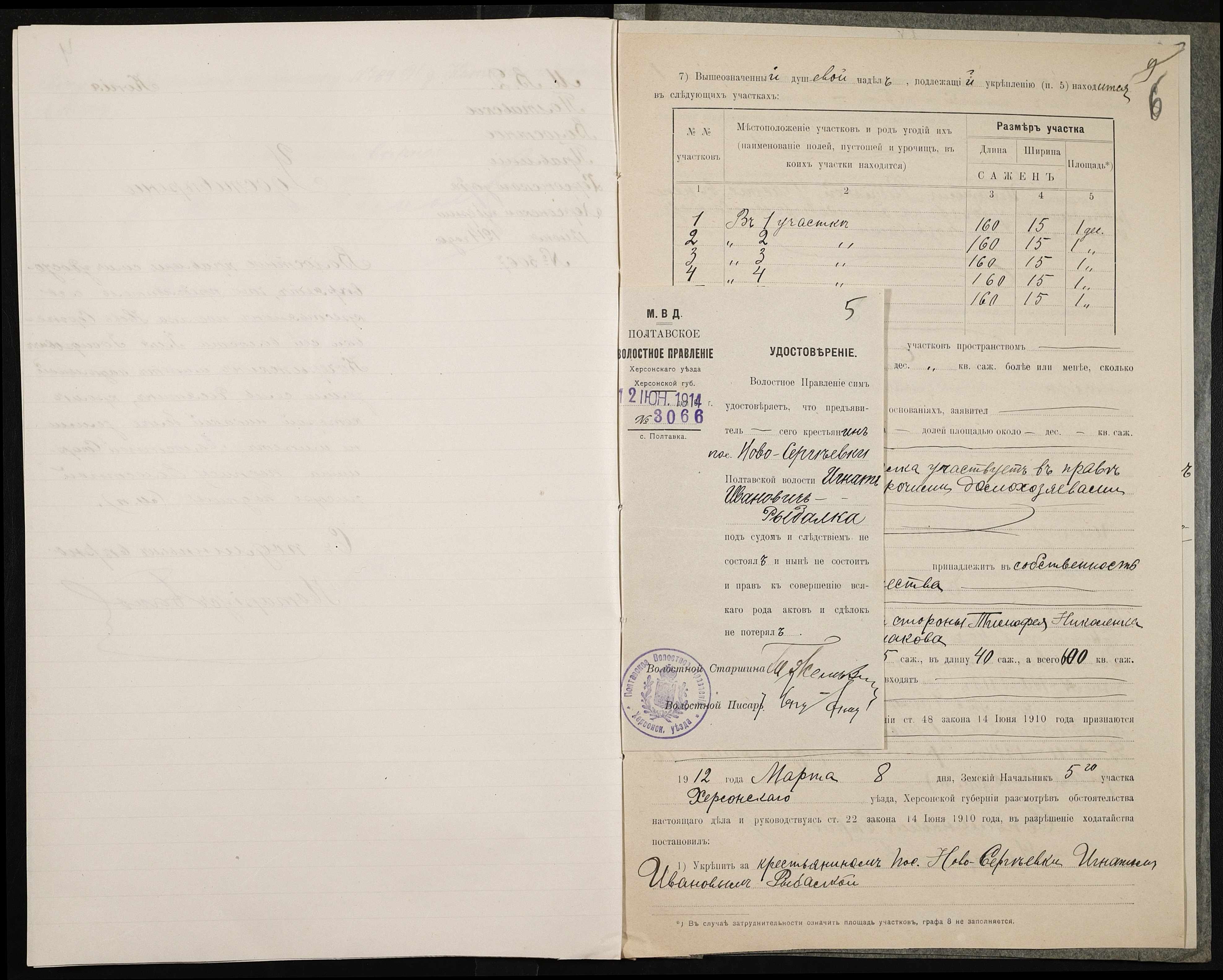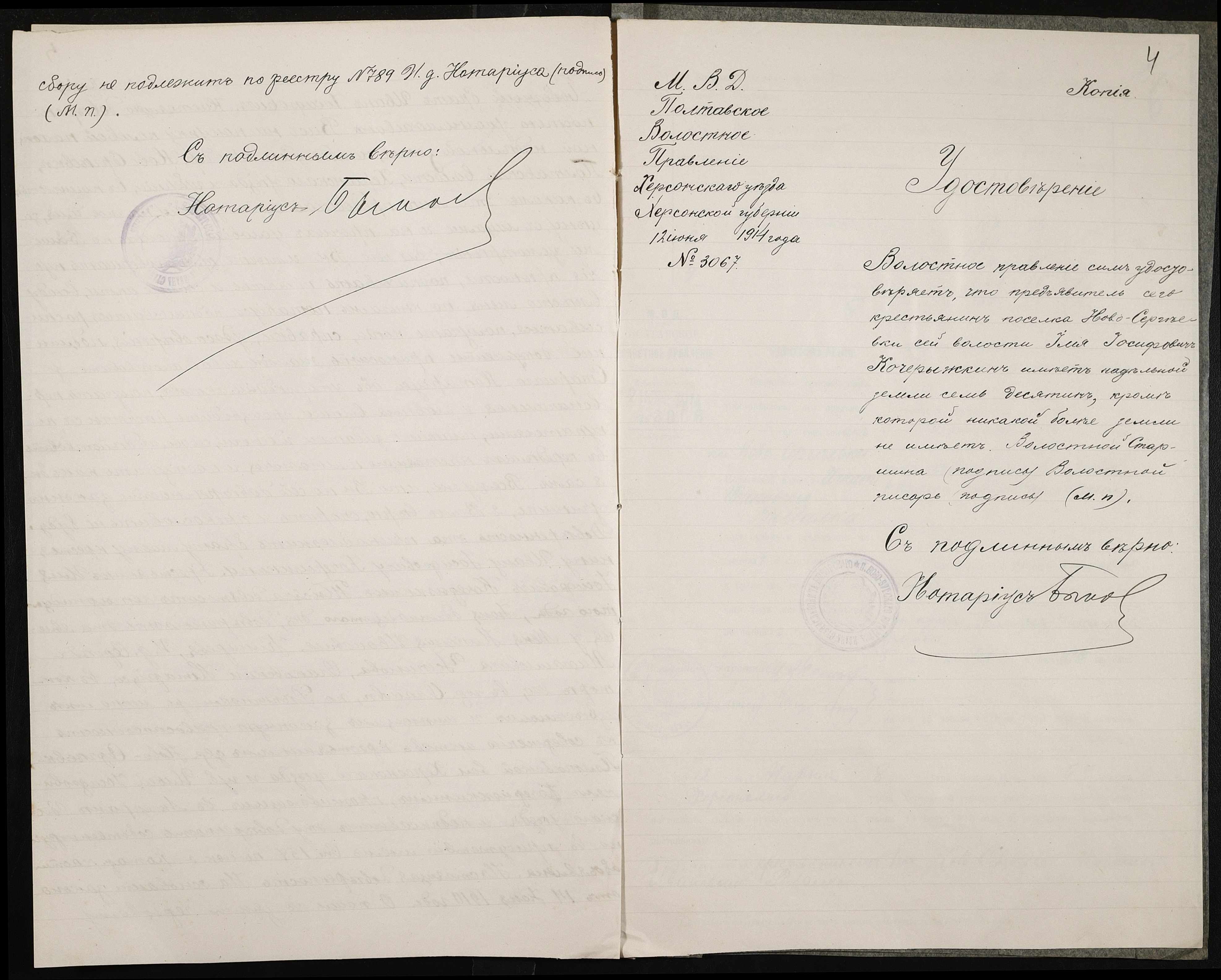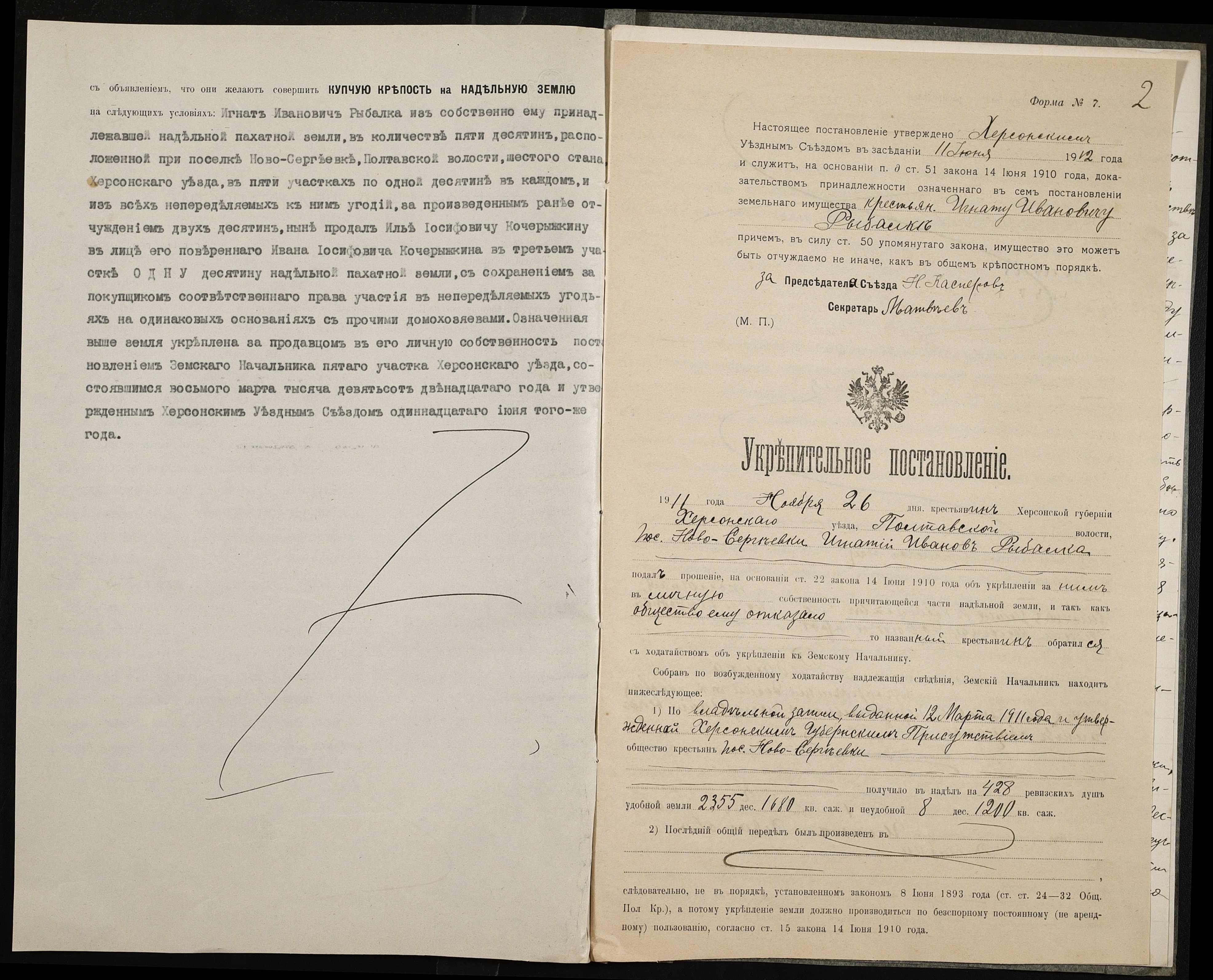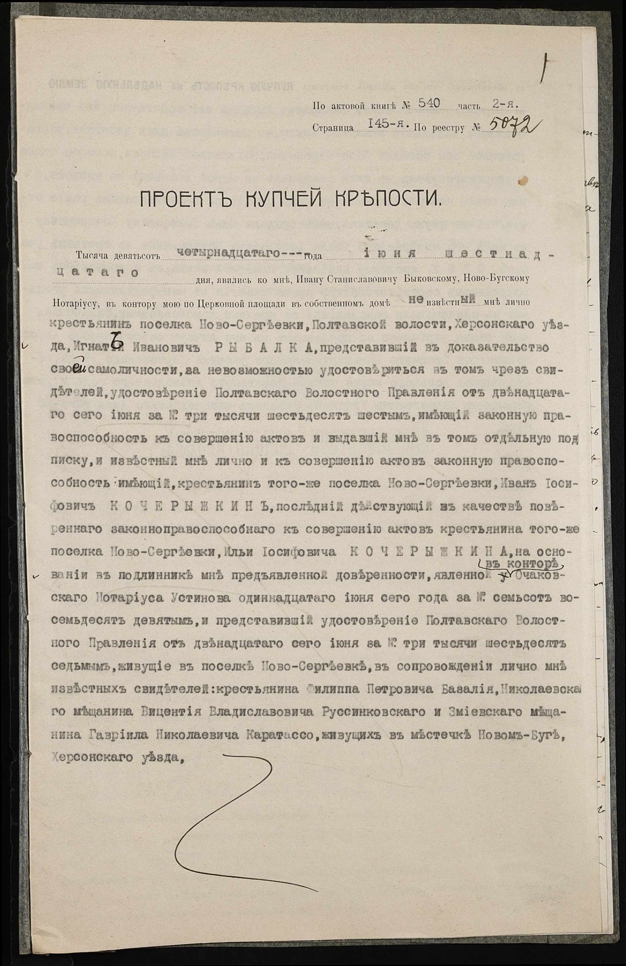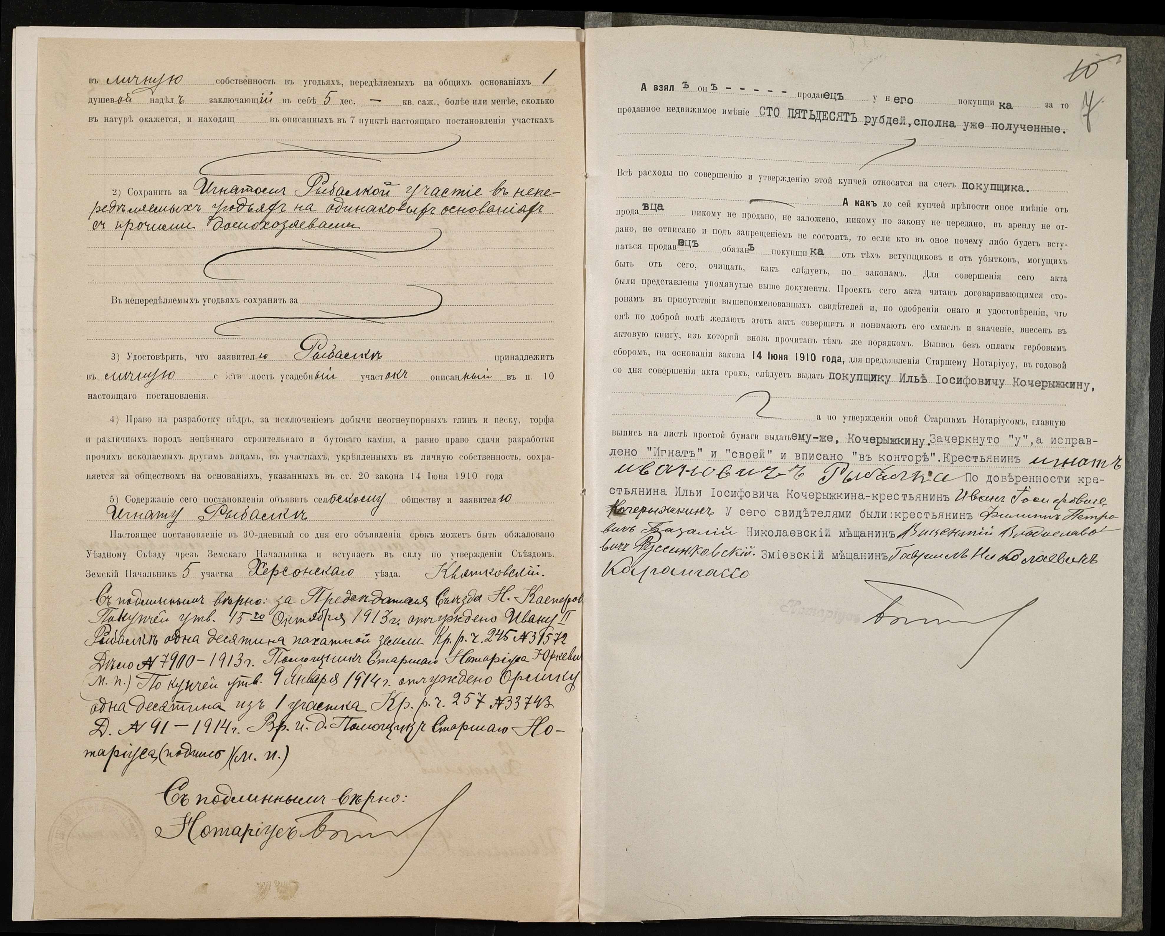 • • • • Справа № 139 “Справа про вчинення купчої про продаж землі селянином Рибалкою Гнатом (Рыбалкой Игнатом) на користь селянина Кочерижкіна Іллі (Кочерыжкина Ильи)”