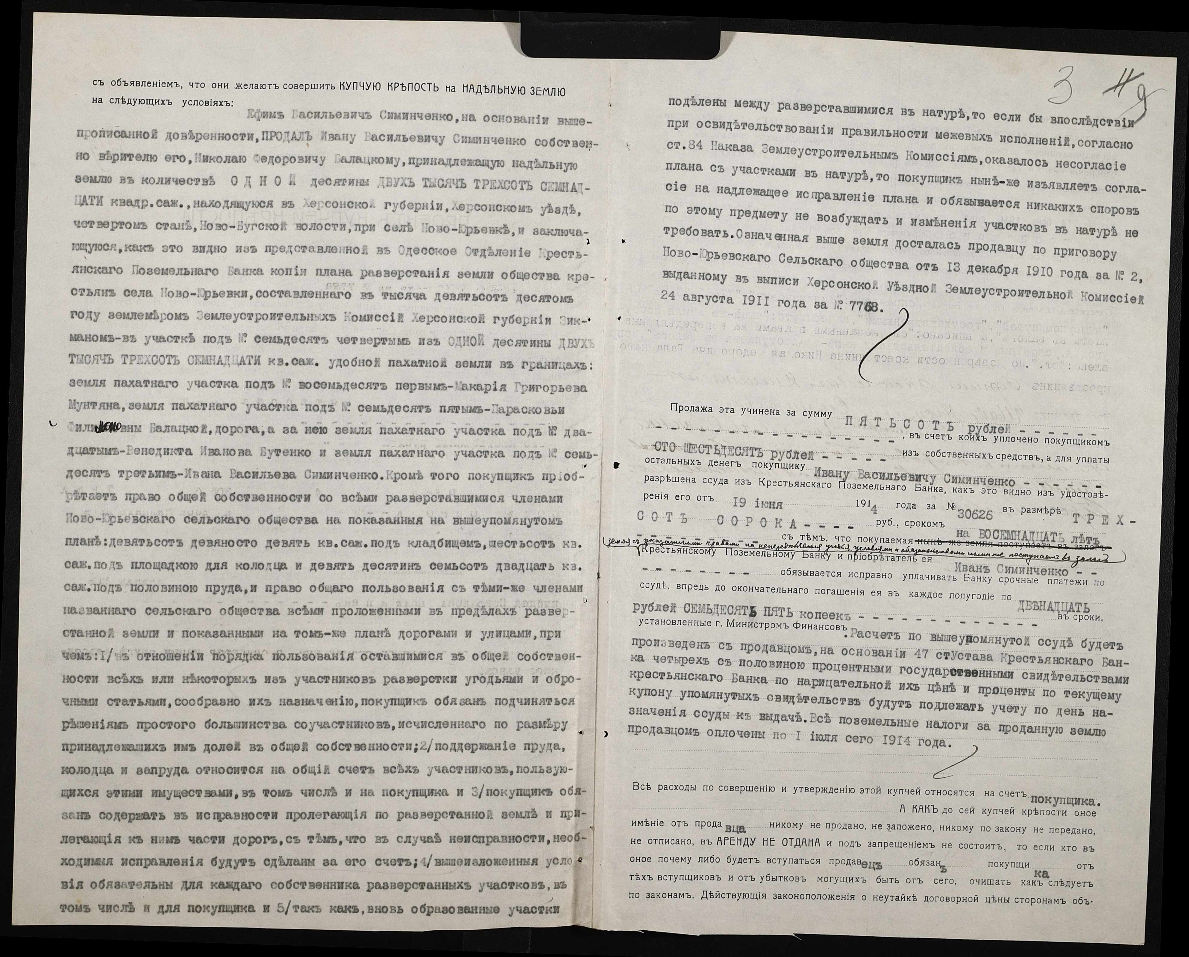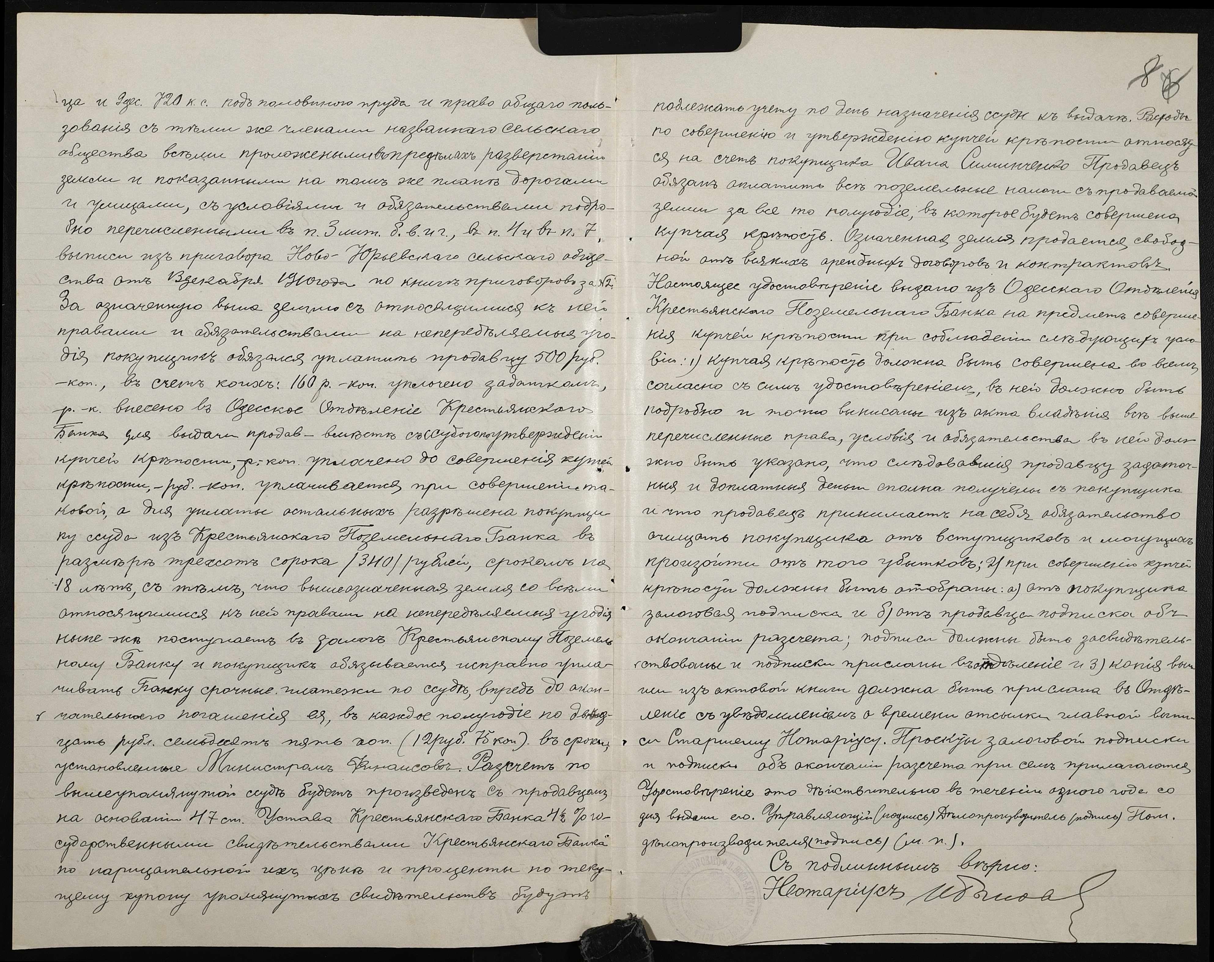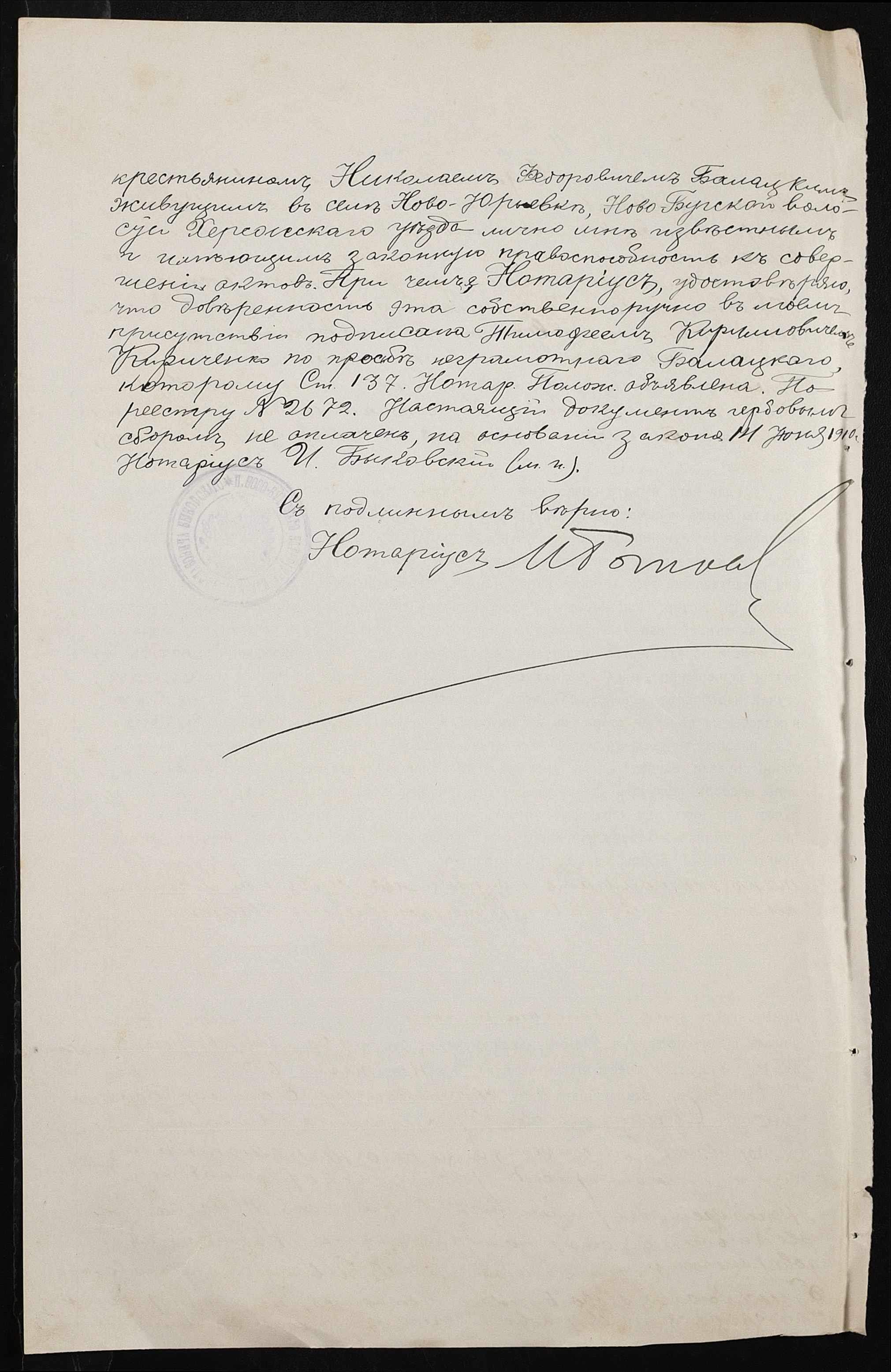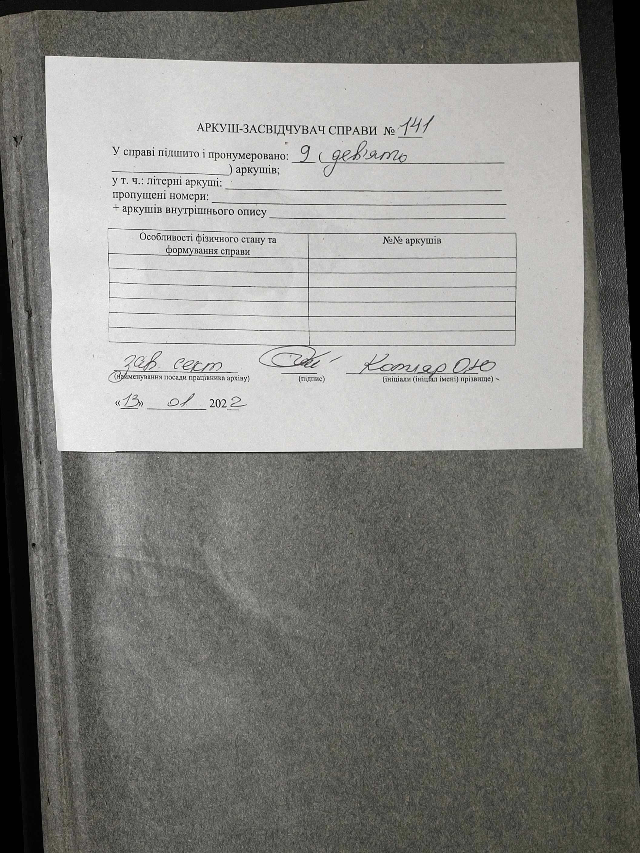 • • • • Справа № 141 “Справа про вчинення купчої про продаж землі селянином Балацьким Миколою (Балацким Николаем) на користь селянина Сімінченка Івана (Симинченко Ивана)”