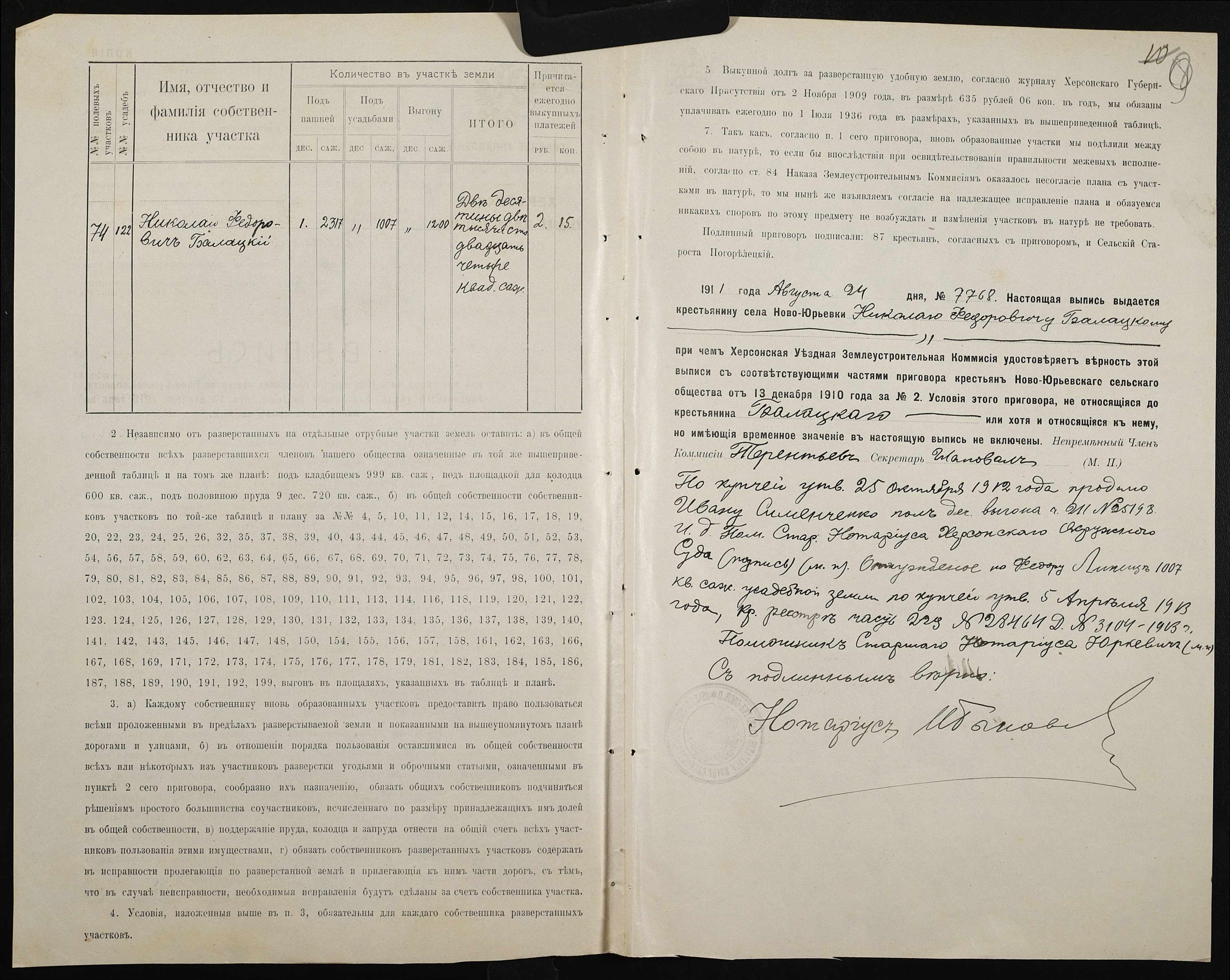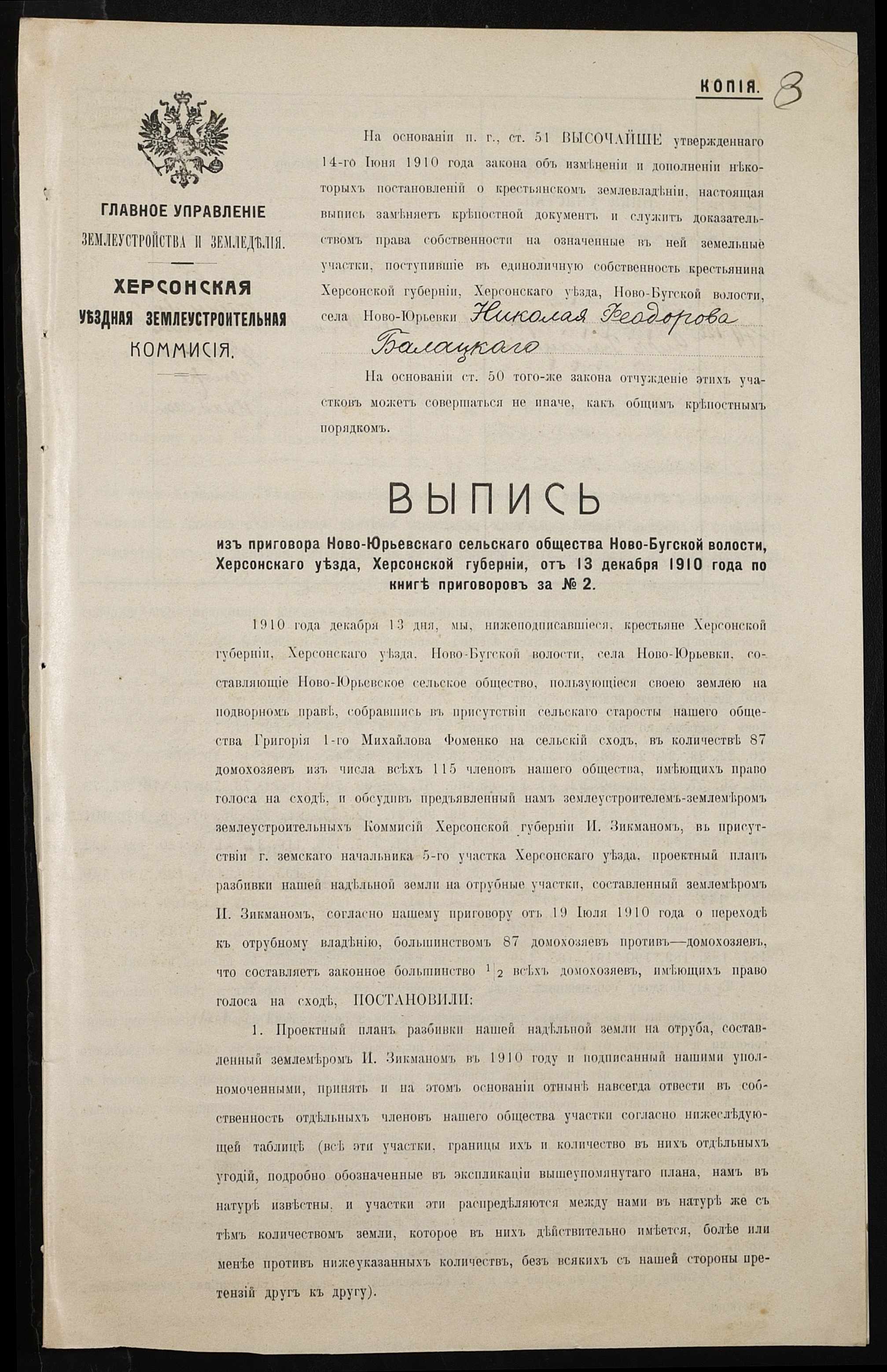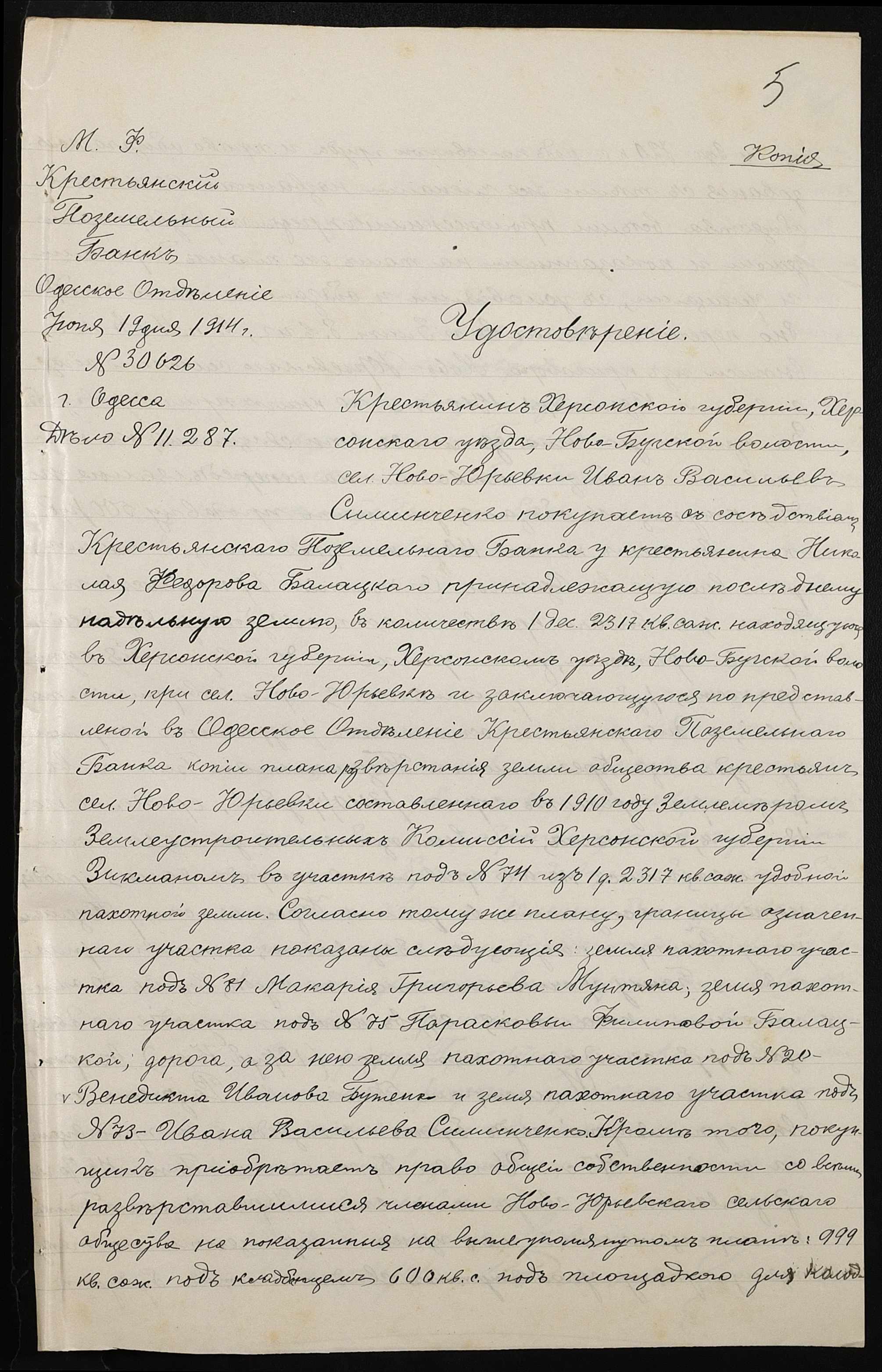 • • • • Справа № 141 “Справа про вчинення купчої про продаж землі селянином Балацьким Миколою (Балацким Николаем) на користь селянина Сімінченка Івана (Симинченко Ивана)”