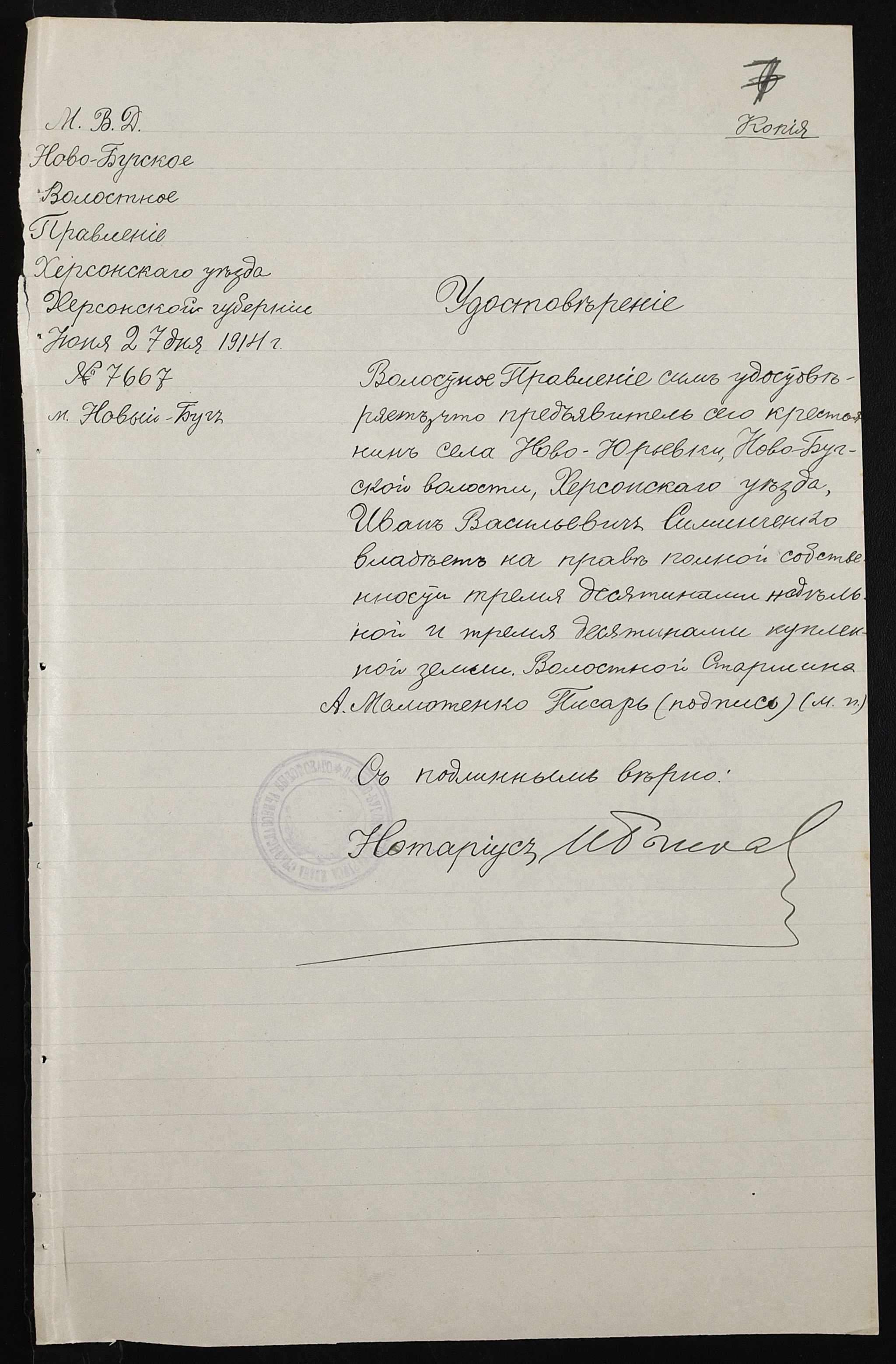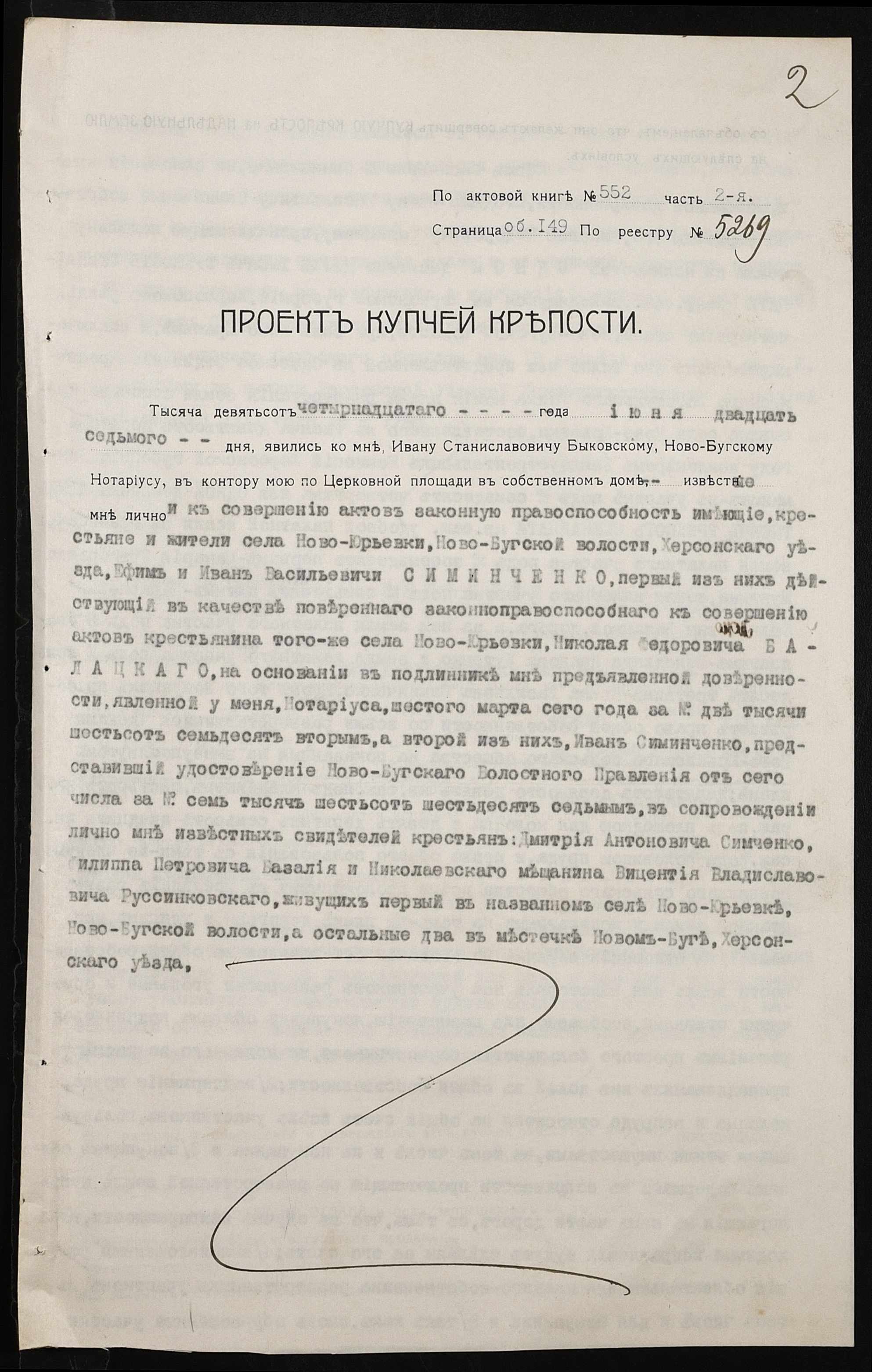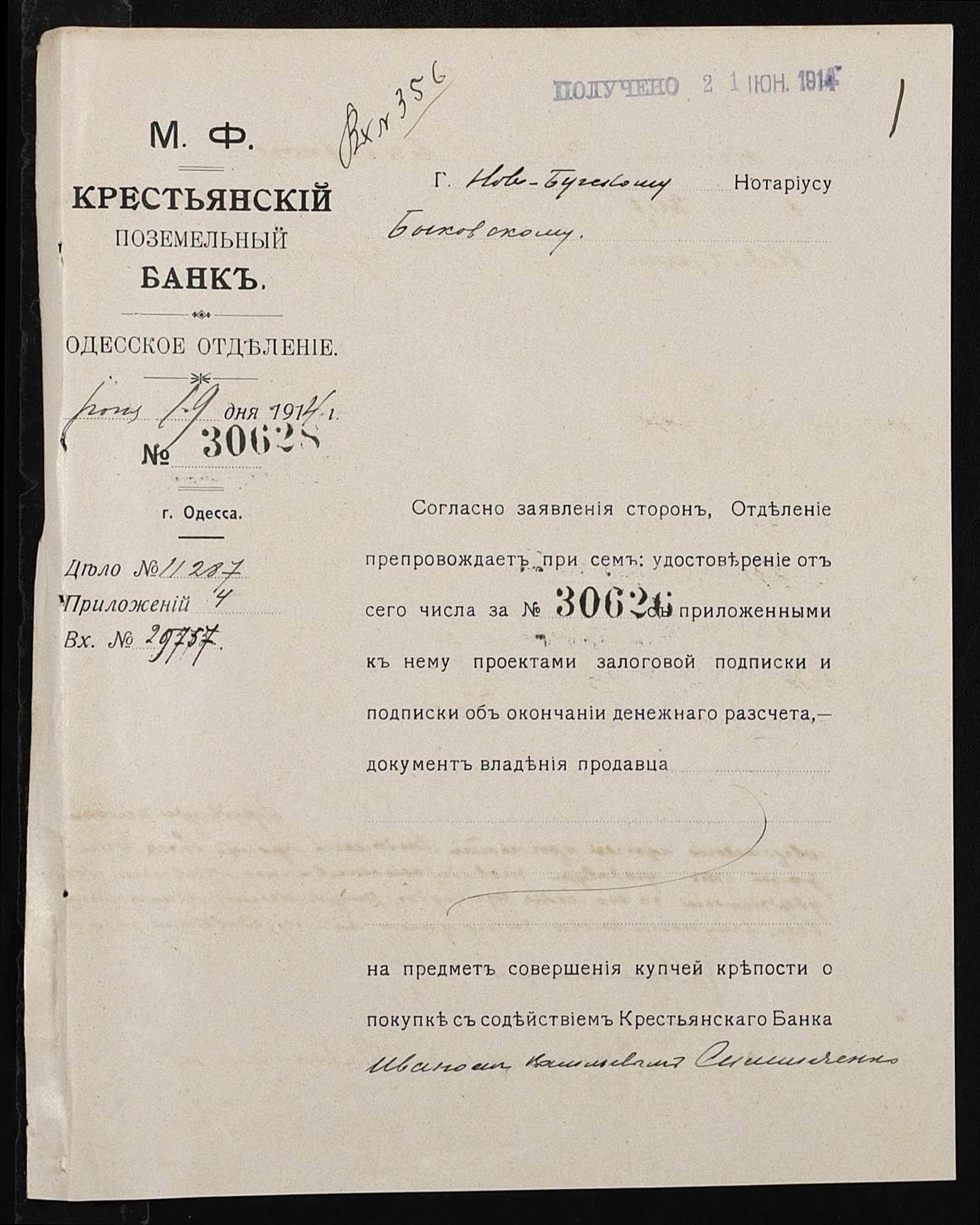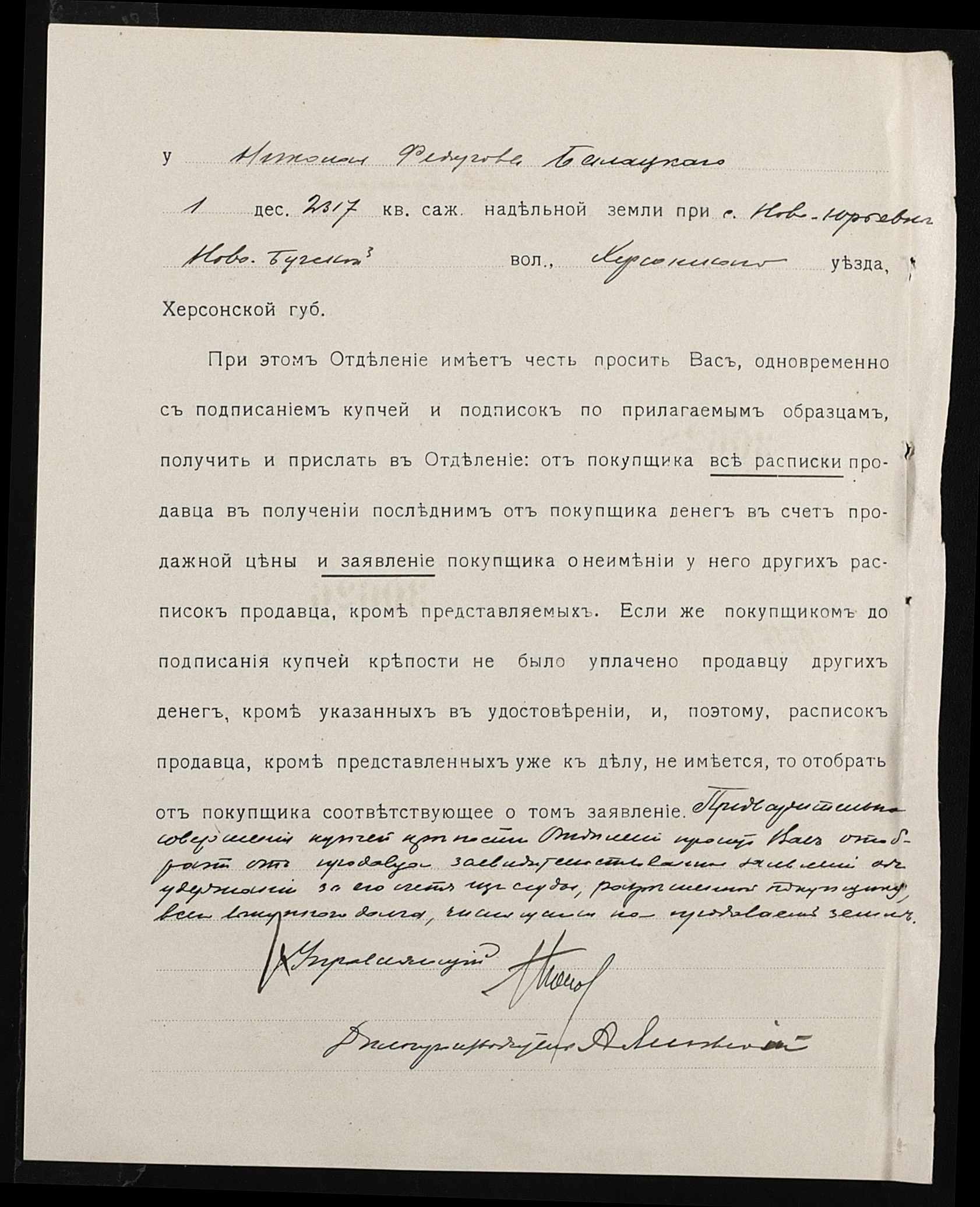 • • • • Справа № 141 “Справа про вчинення купчої про продаж землі селянином Балацьким Миколою (Балацким Николаем) на користь селянина Сімінченка Івана (Симинченко Ивана)”