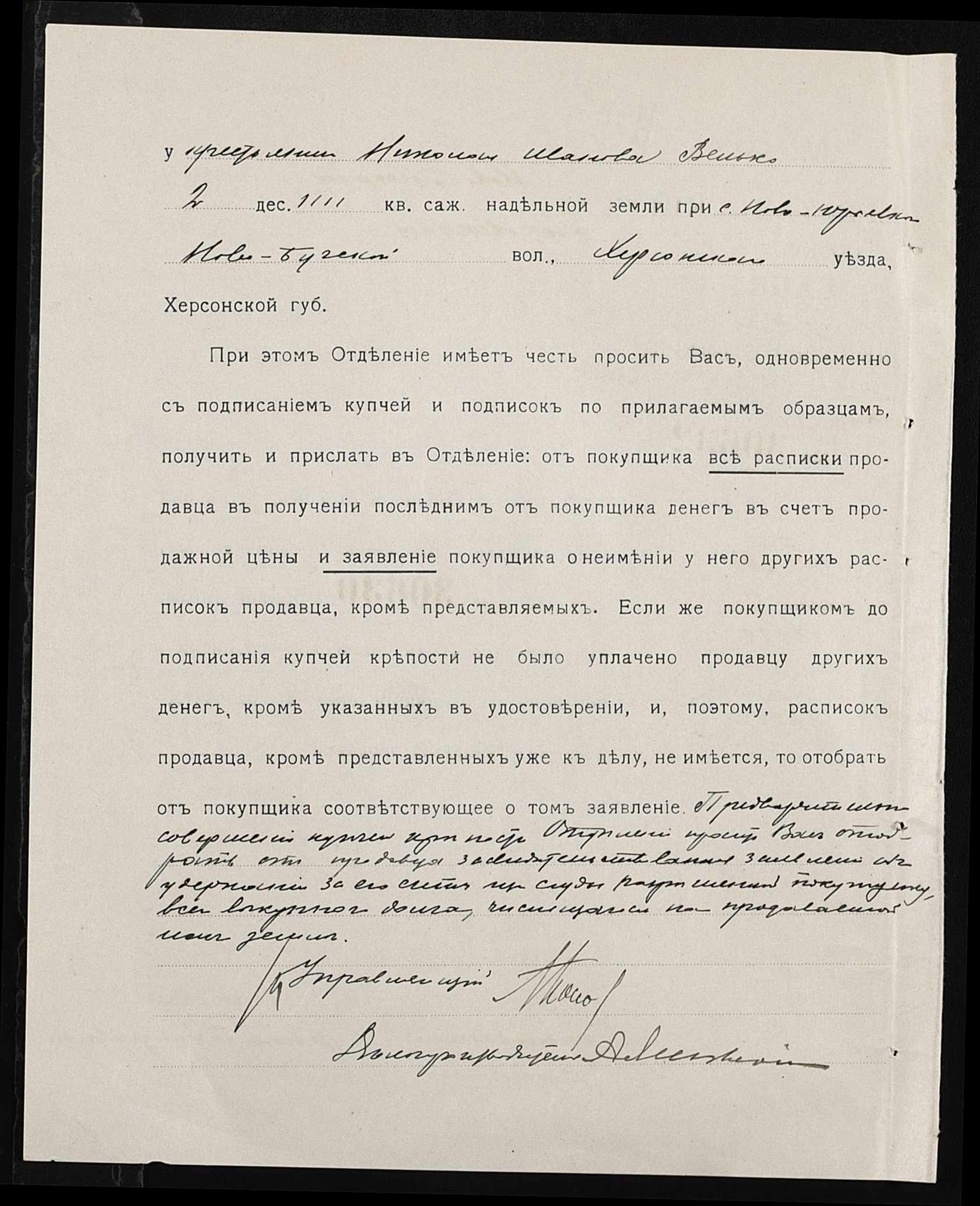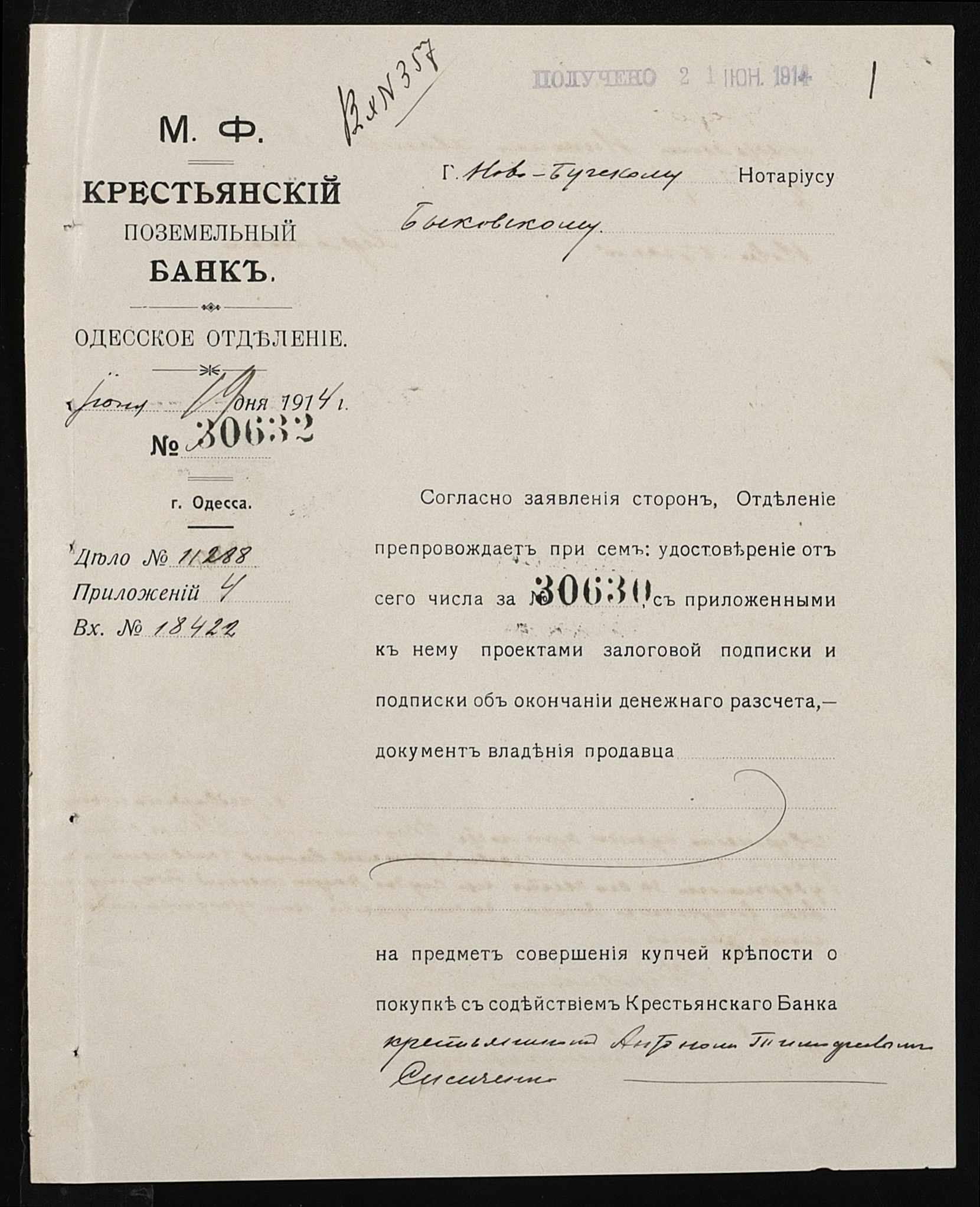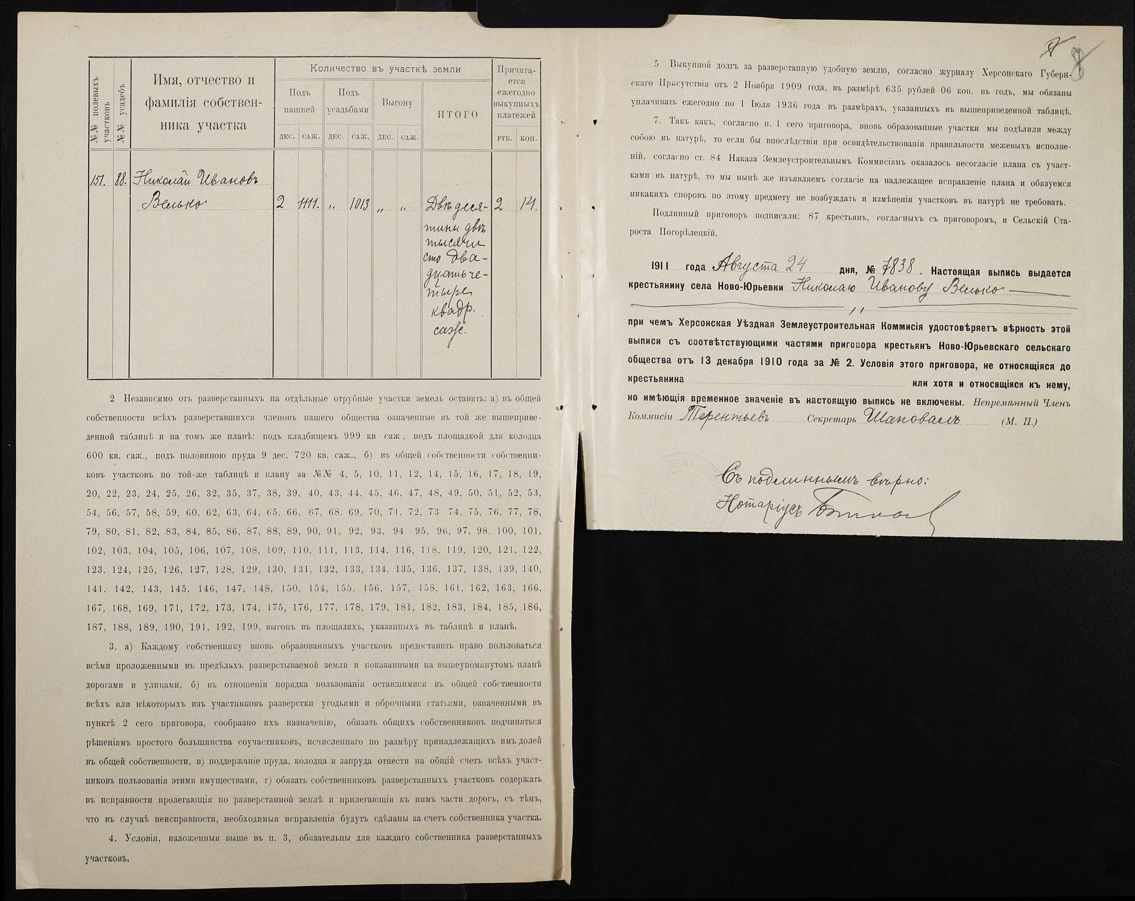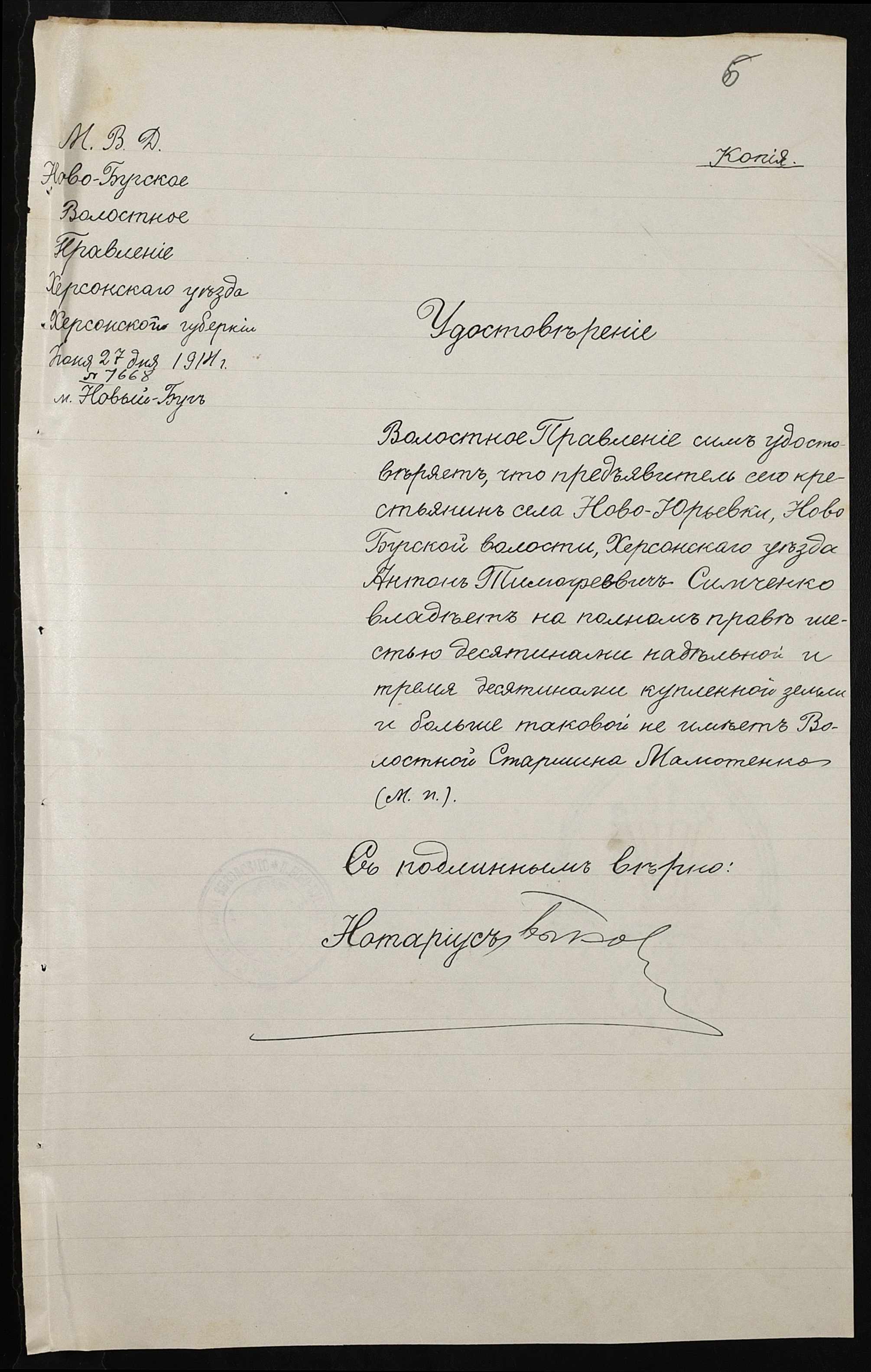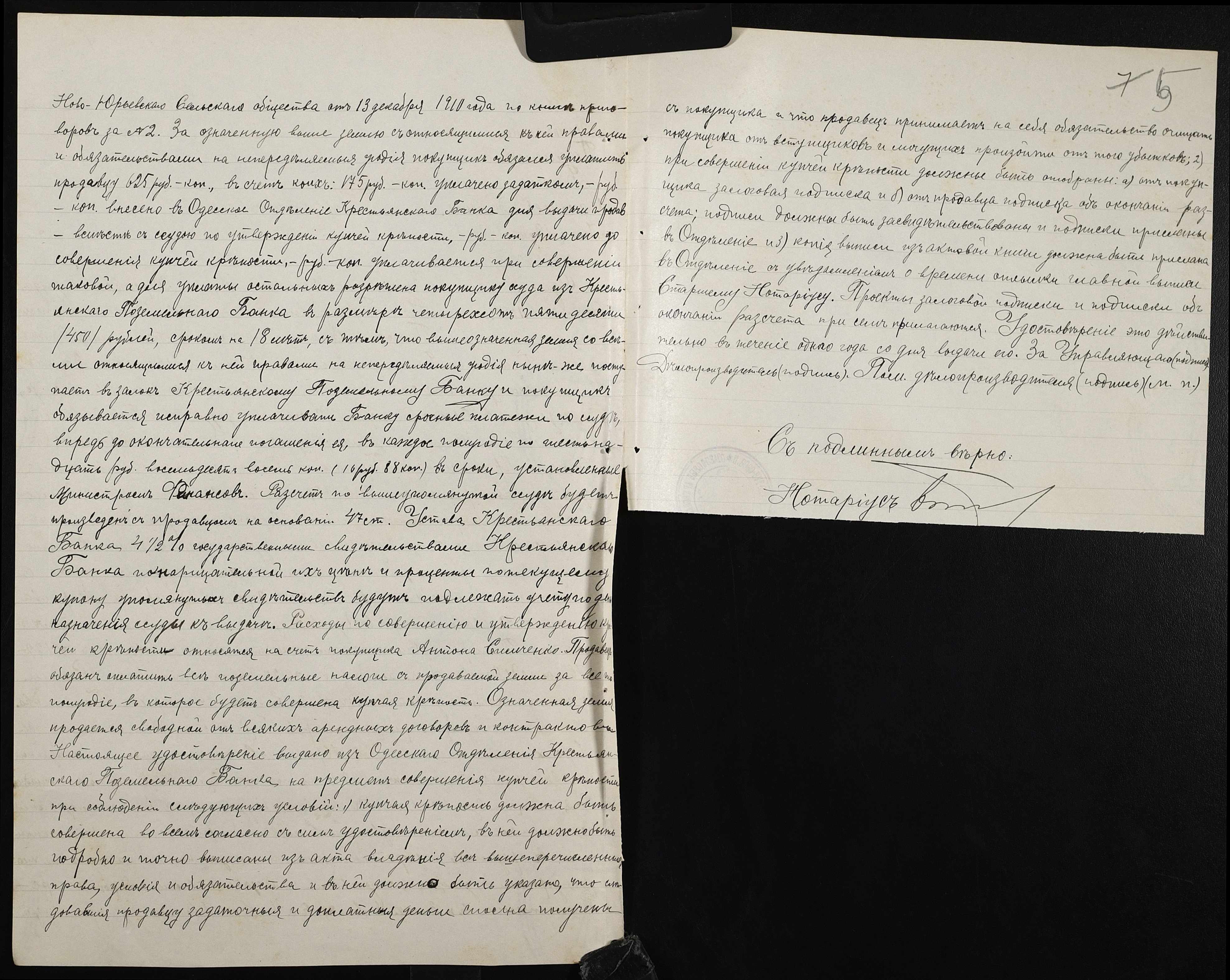 • • • • Справа № 142 “Справа про вчинення купчої про продаж землі селянином Вельком Миколою (Велько Николаем) на користь селянина Сімченка (Симченко) Антона”