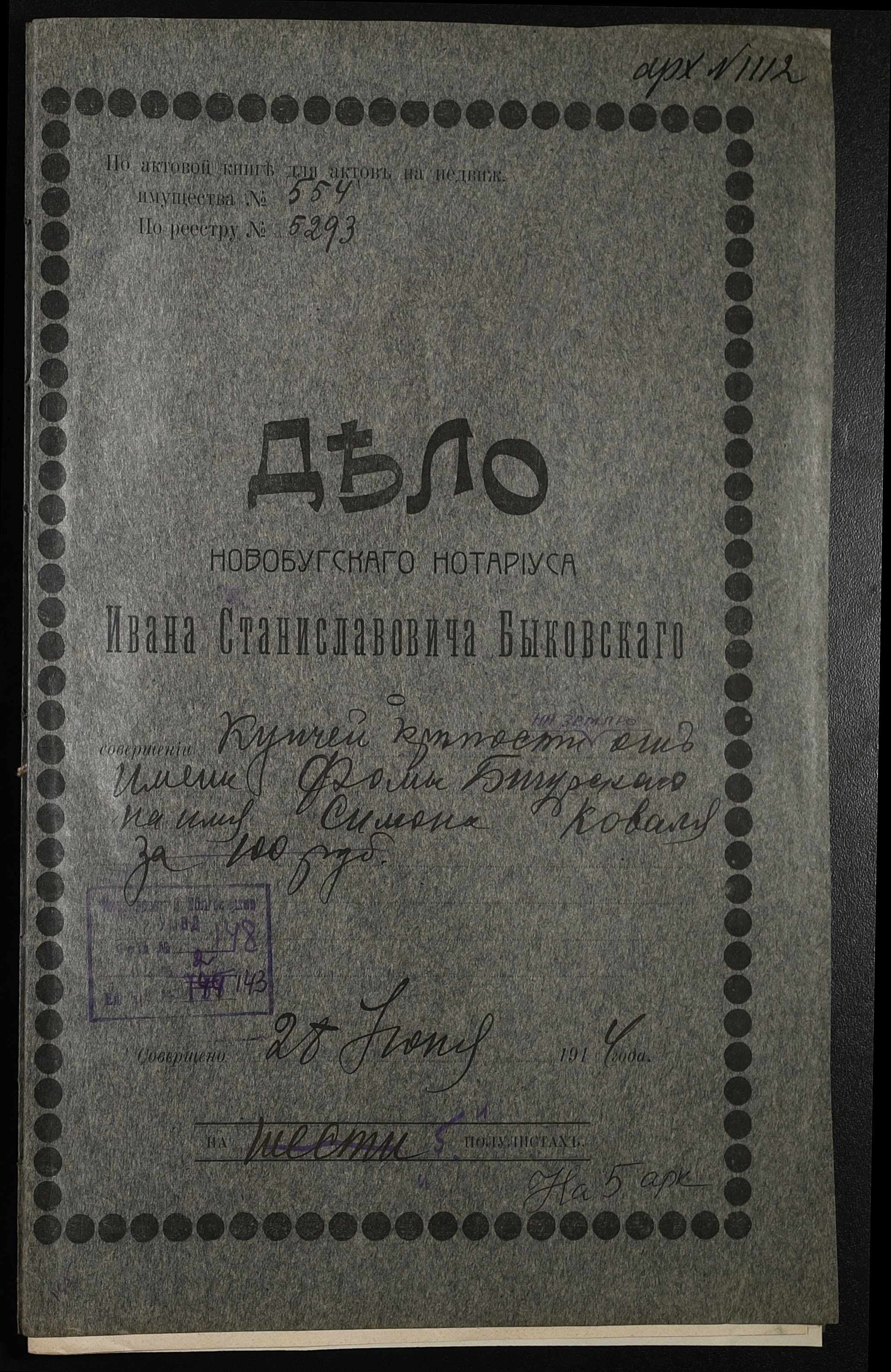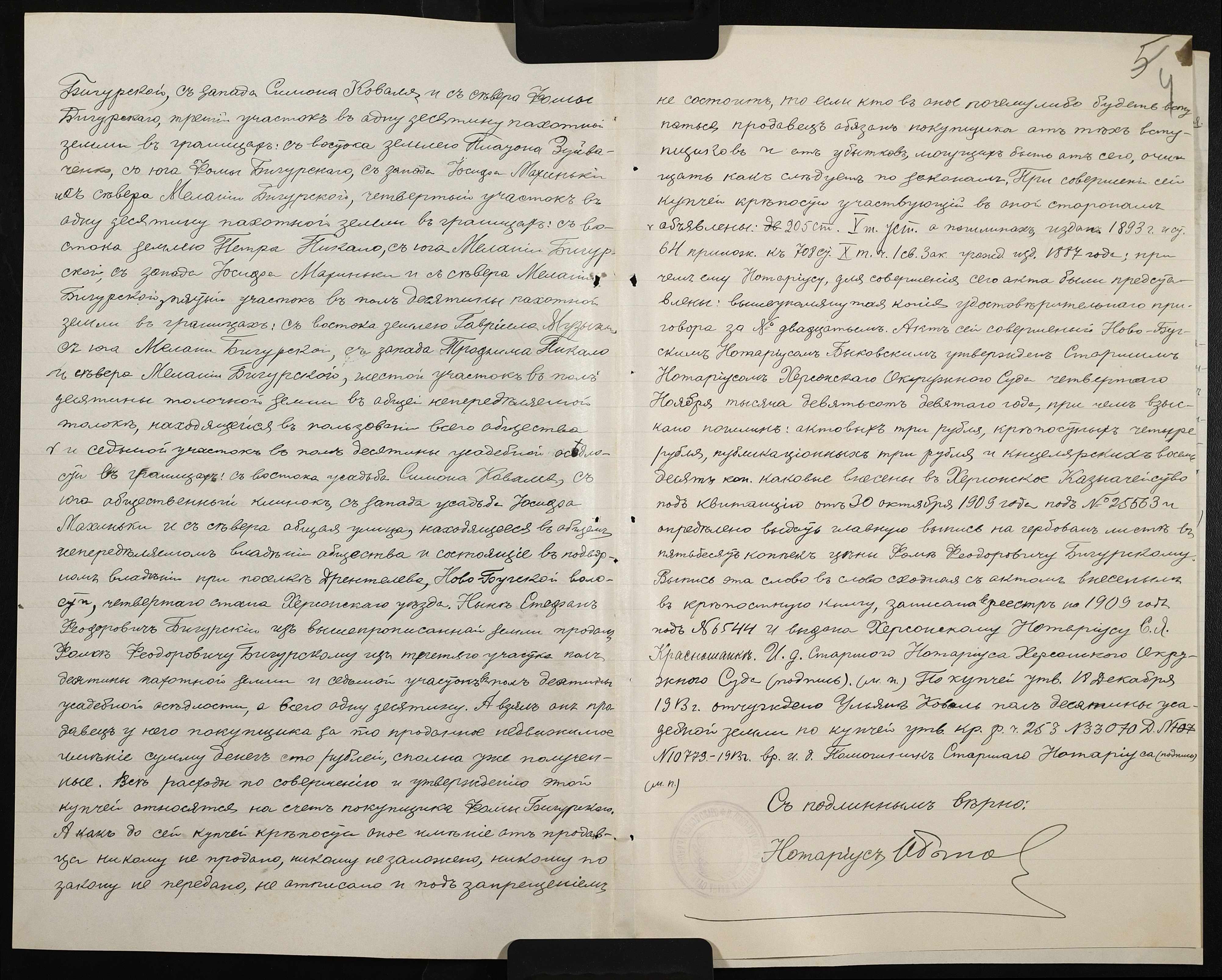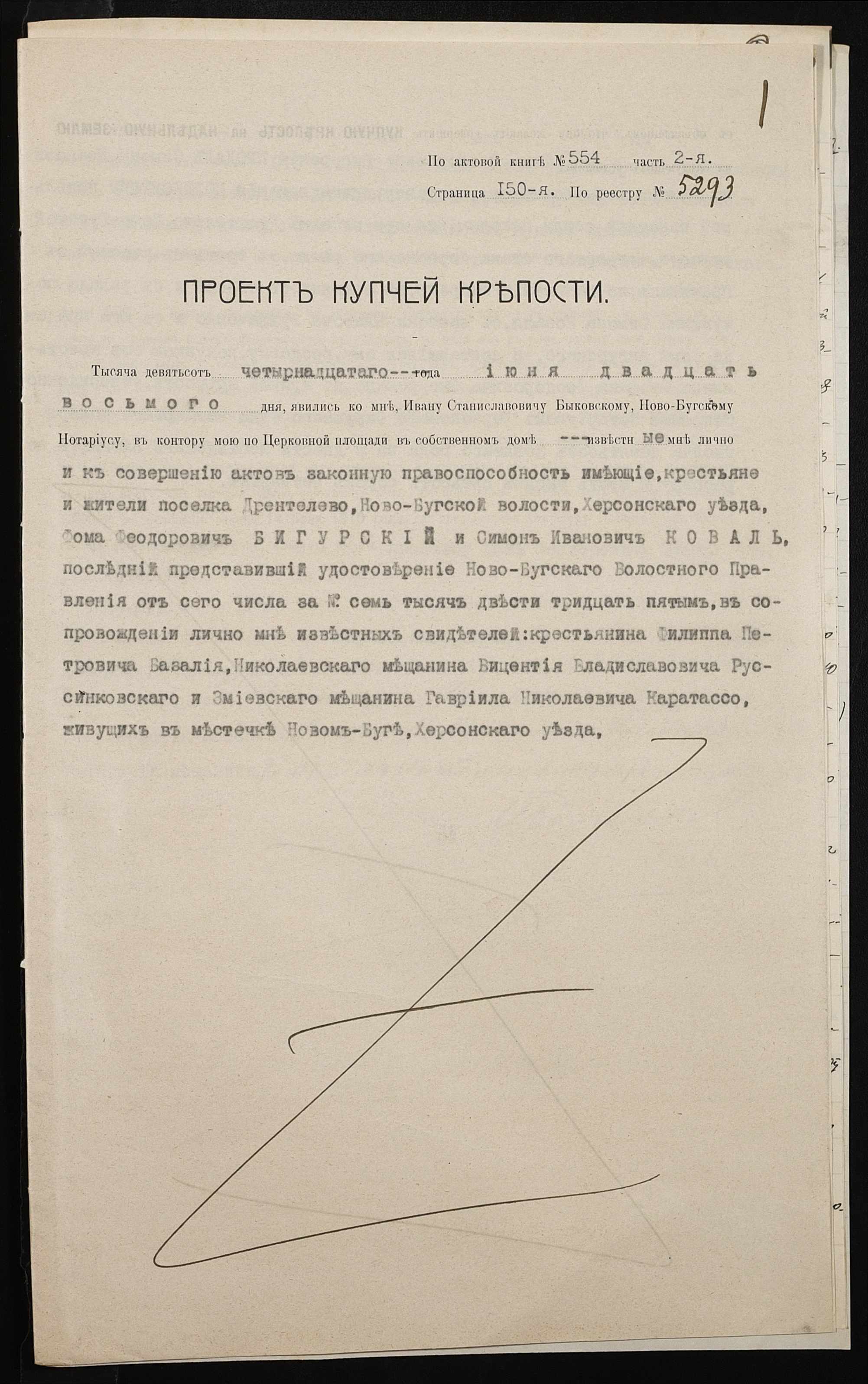 • • • • Справа № 143 “Справа про вчинення купчої про продаж землі селянином Бігурським Хомою (Бигурским Фомой) на користь селянина Коваля Симона”