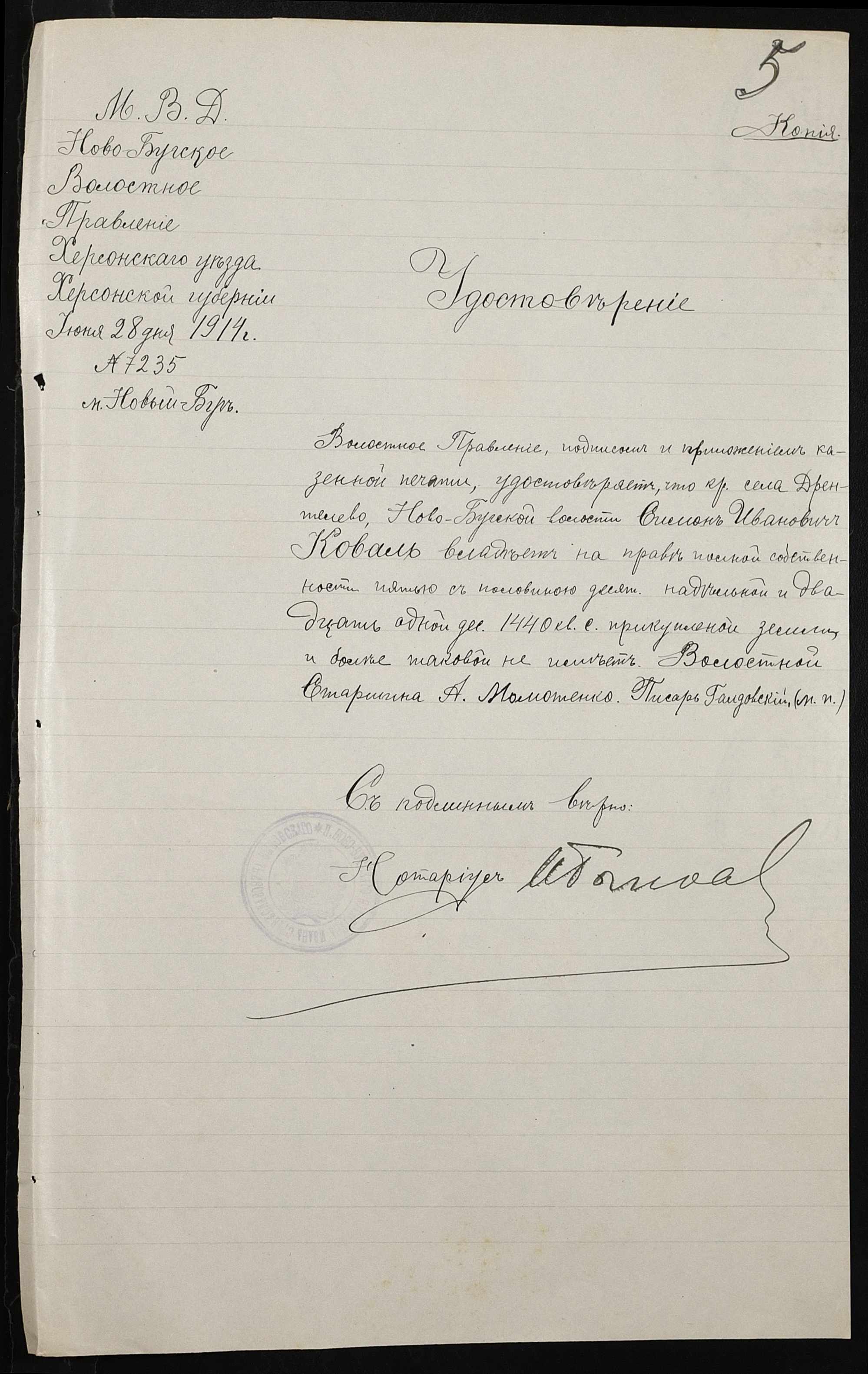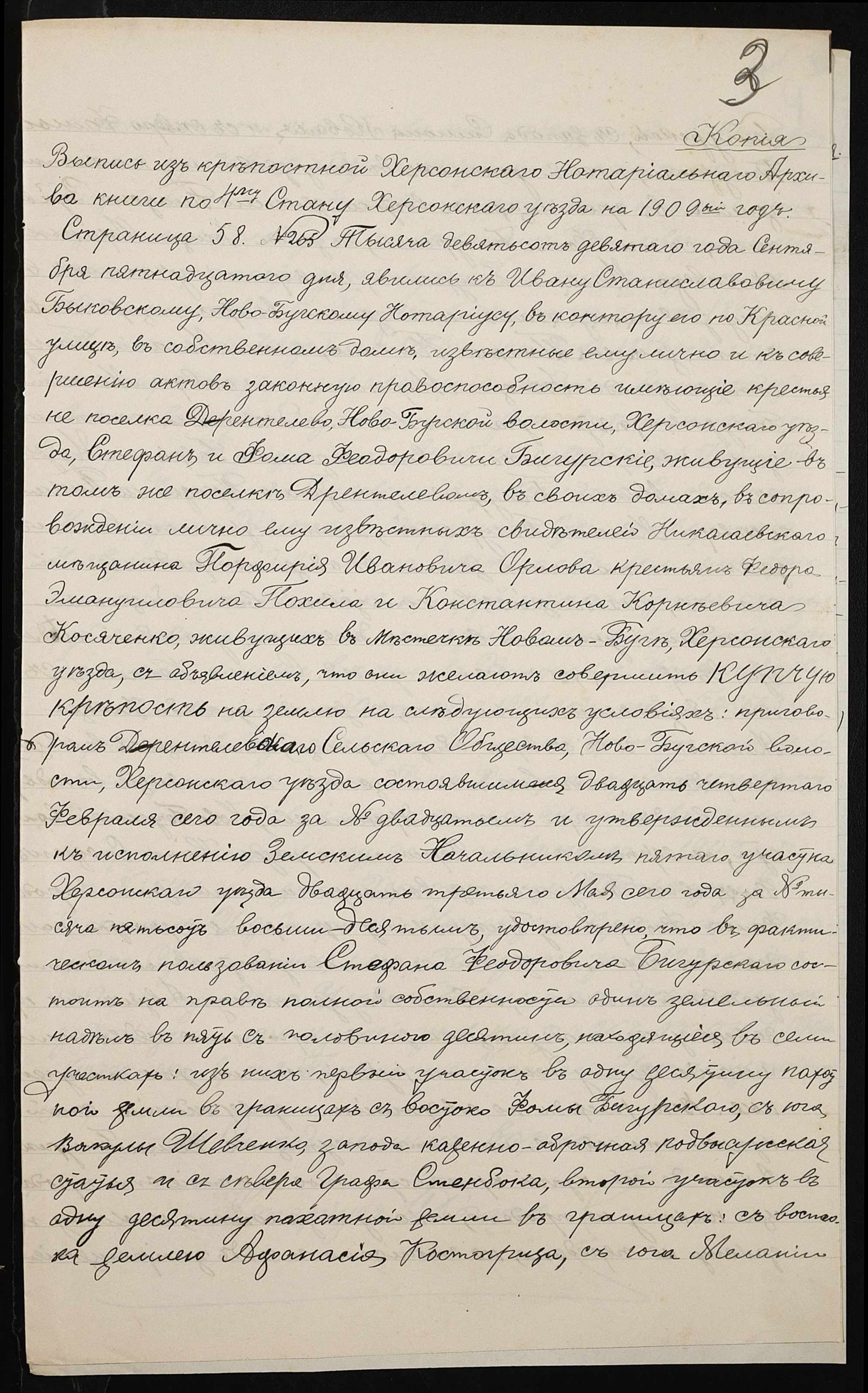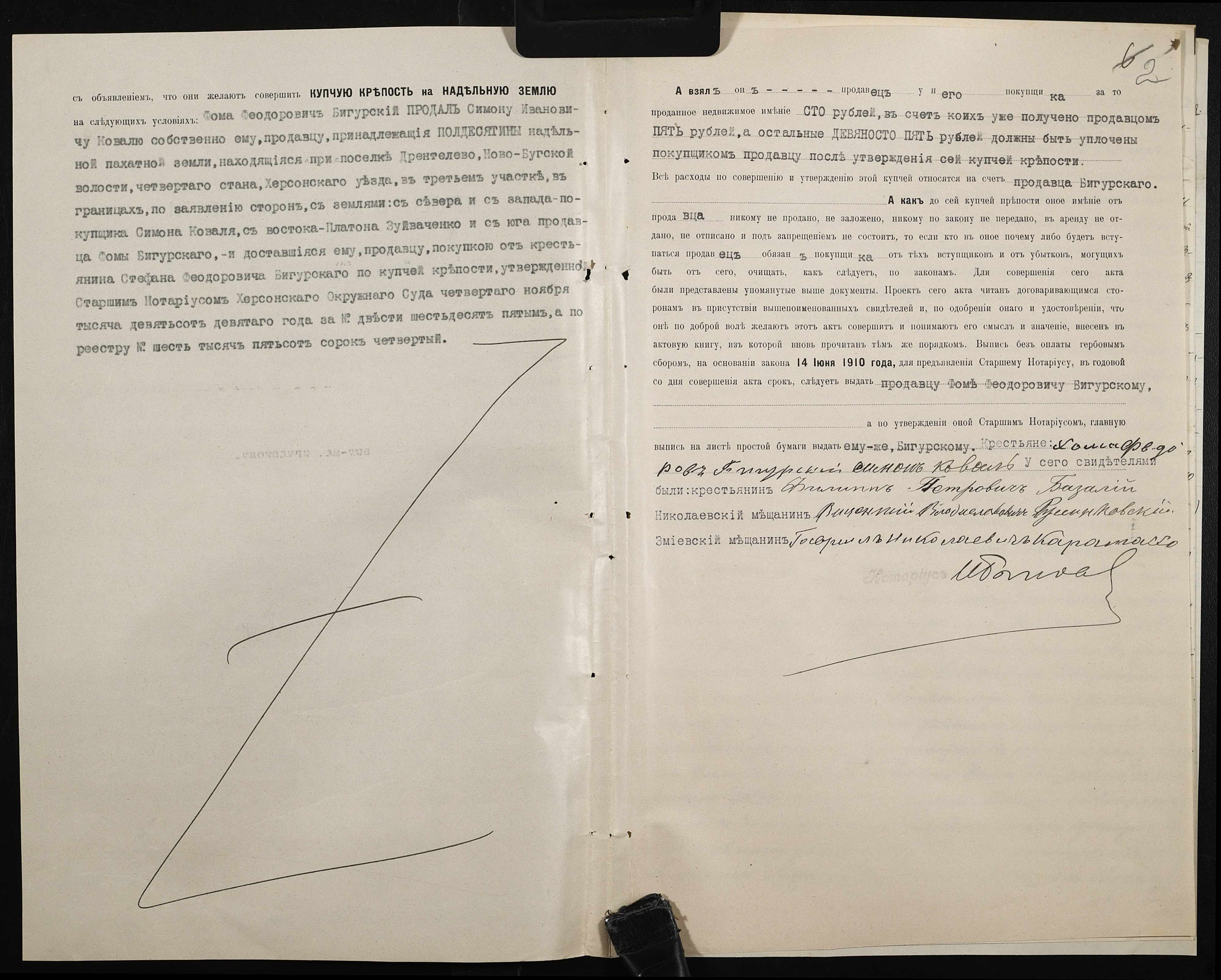 • • • • Справа № 143 “Справа про вчинення купчої про продаж землі селянином Бігурським Хомою (Бигурским Фомой) на користь селянина Коваля Симона”