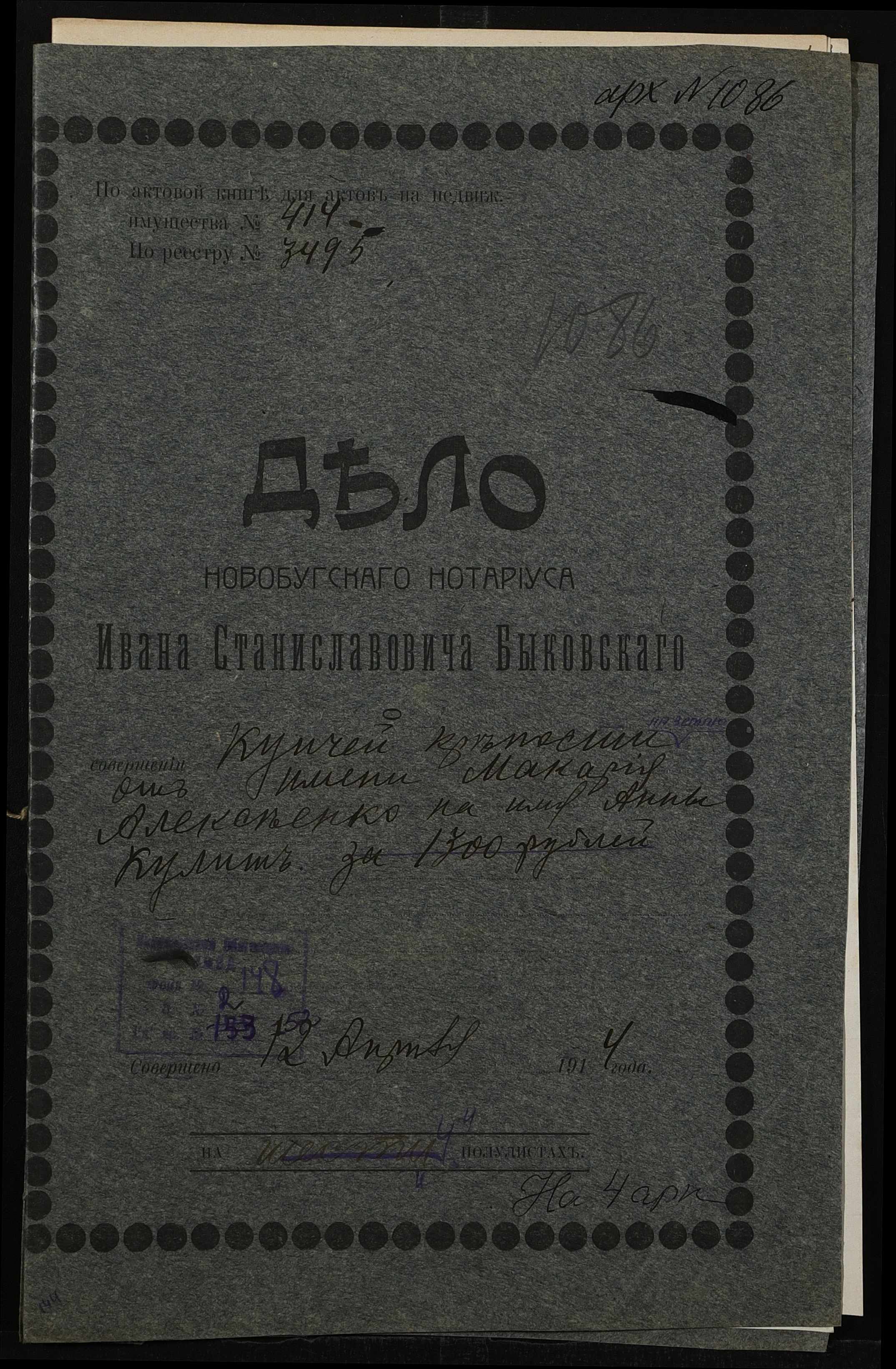 ◦ ◦ Фонд № 148 “Контора новобузького нотаріуса Биковського Івана Станіславовича”