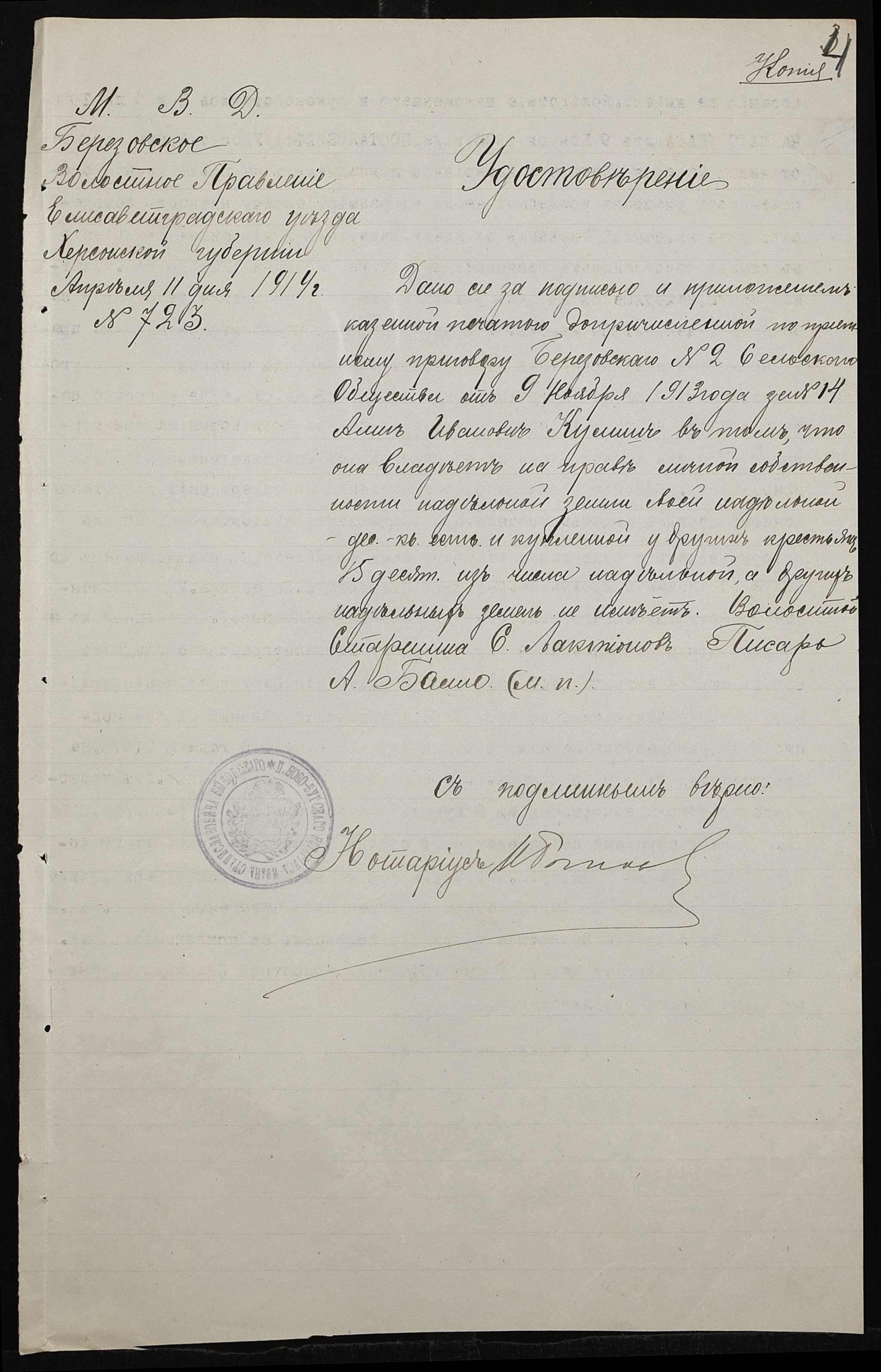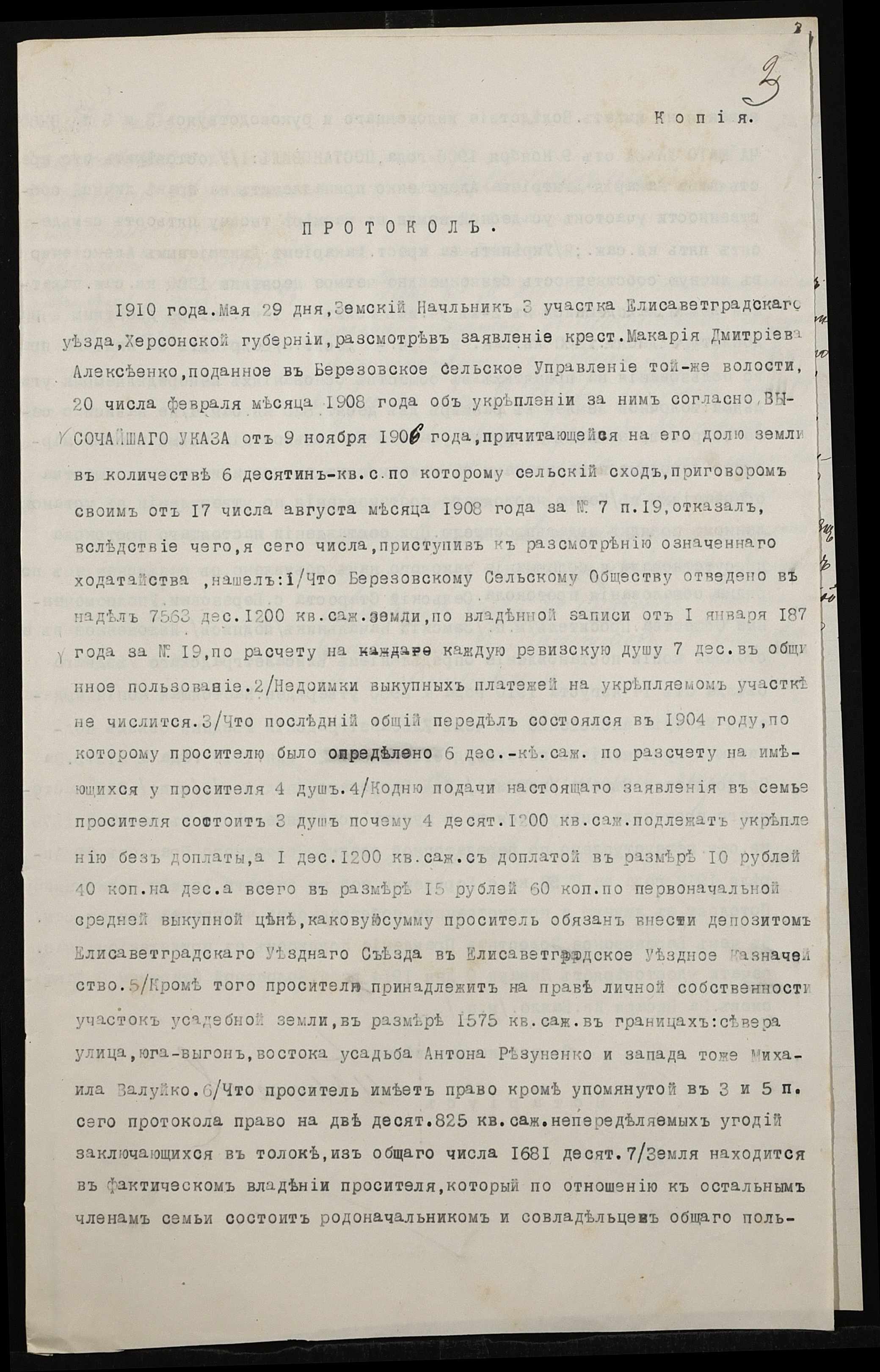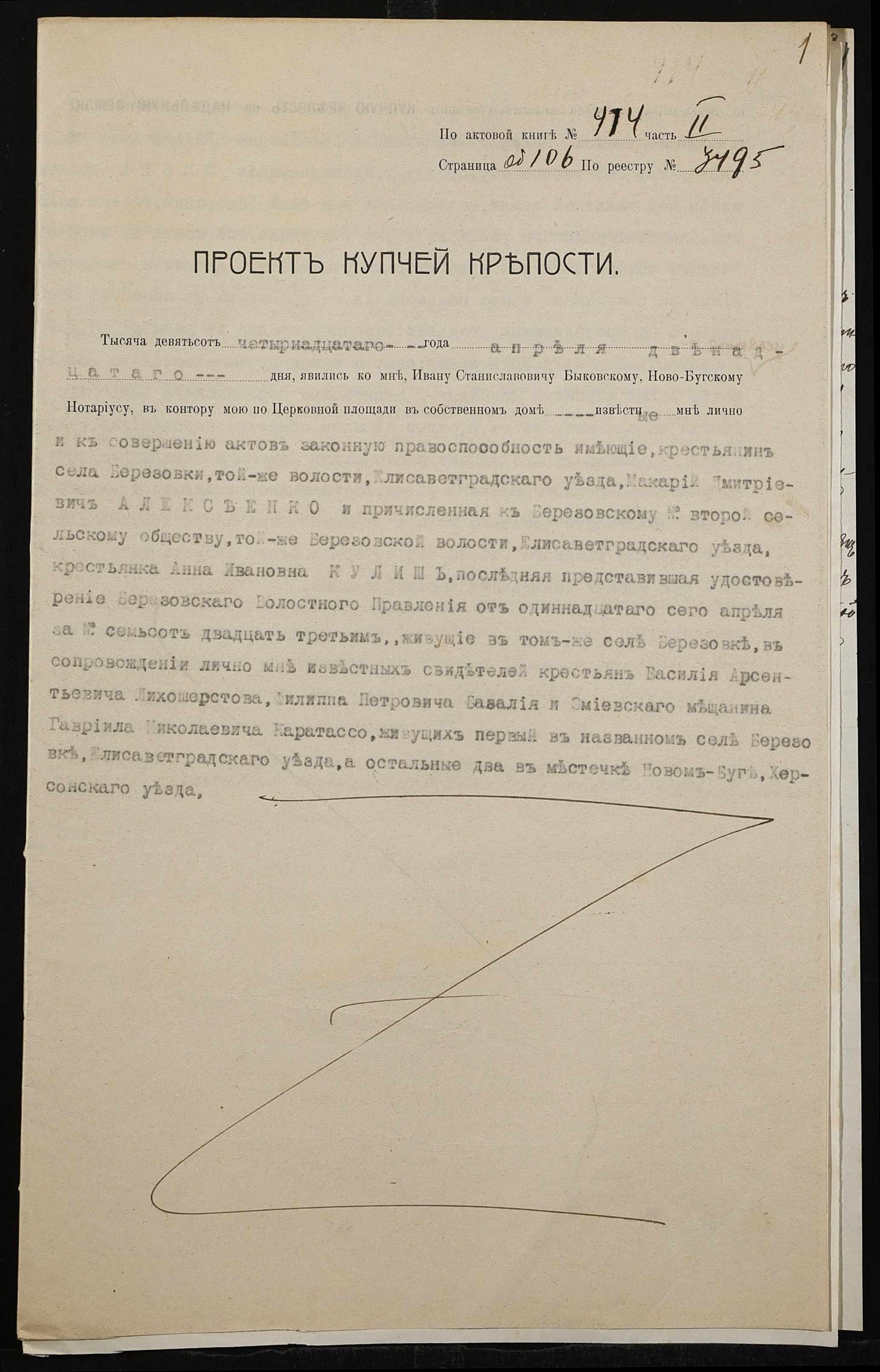 • • • • Справа № 152 “Справа про вчинення купчої про продаж землі селянином Алексєєнком Макарієм (Алексеенко Макарием) на користь селянки Куліш Ганни (Кулиш Анны)”