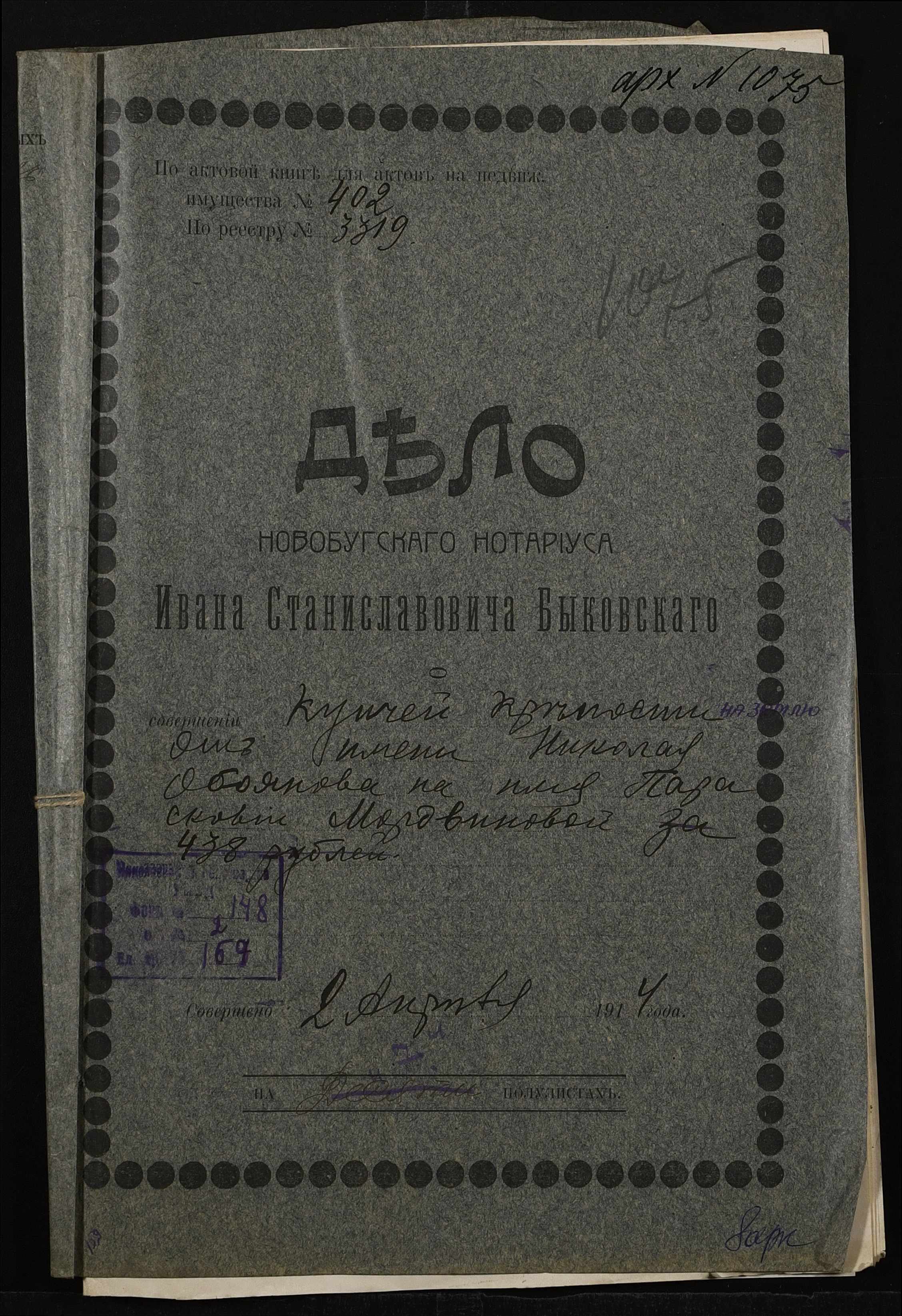 ◦ ◦ Фонд № 148 “Контора новобузького нотаріуса Биковського Івана Станіславовича”