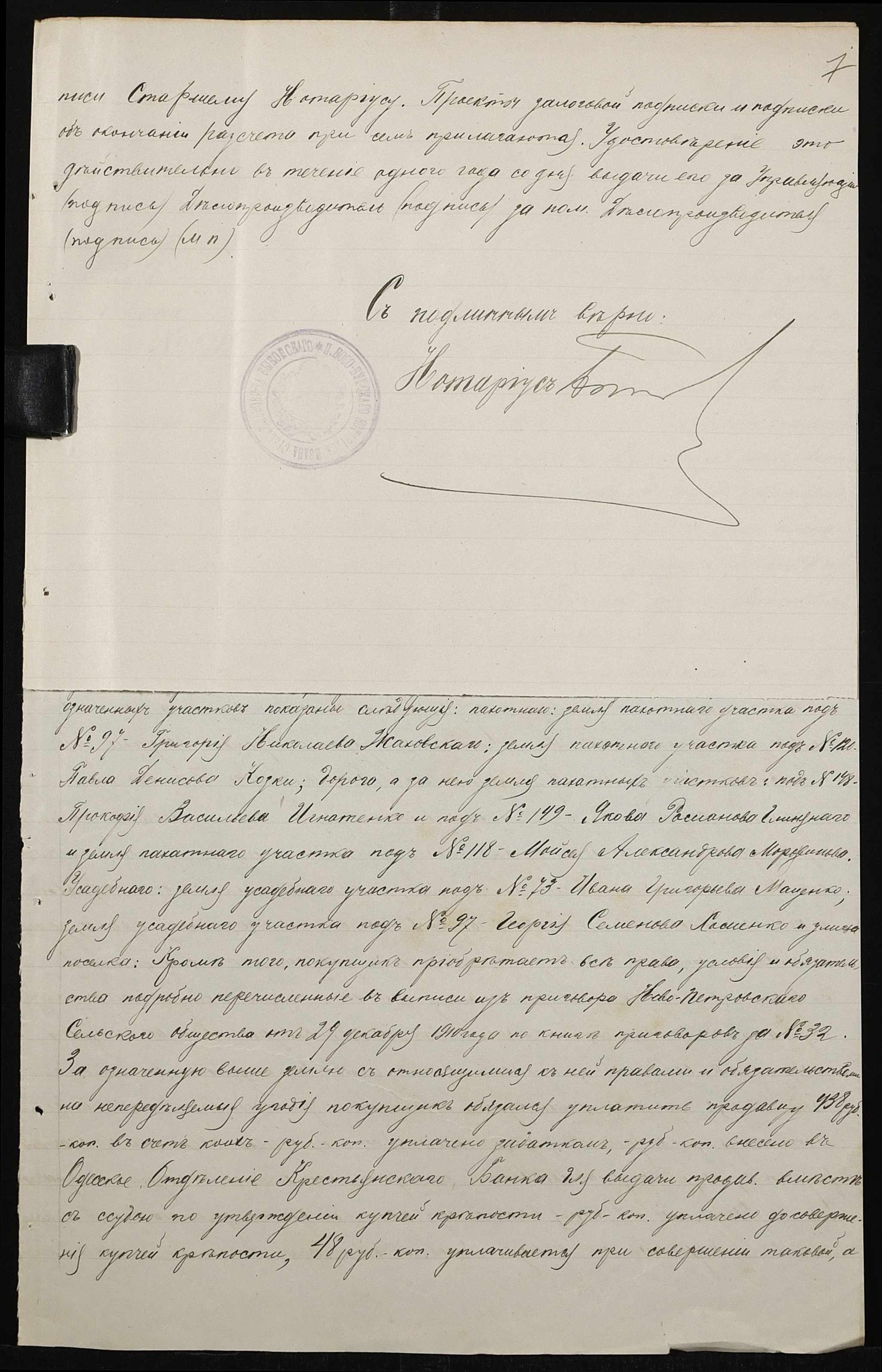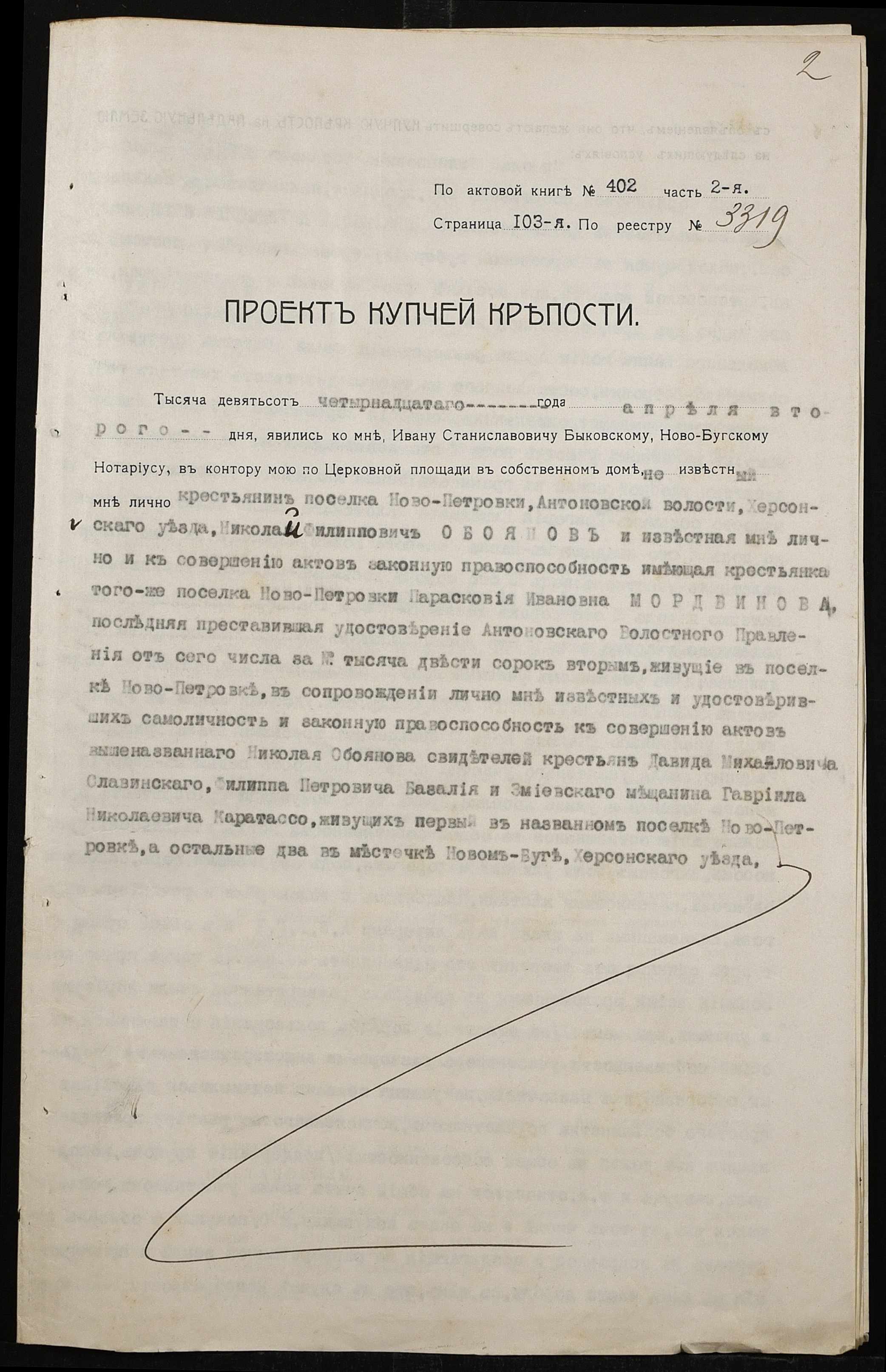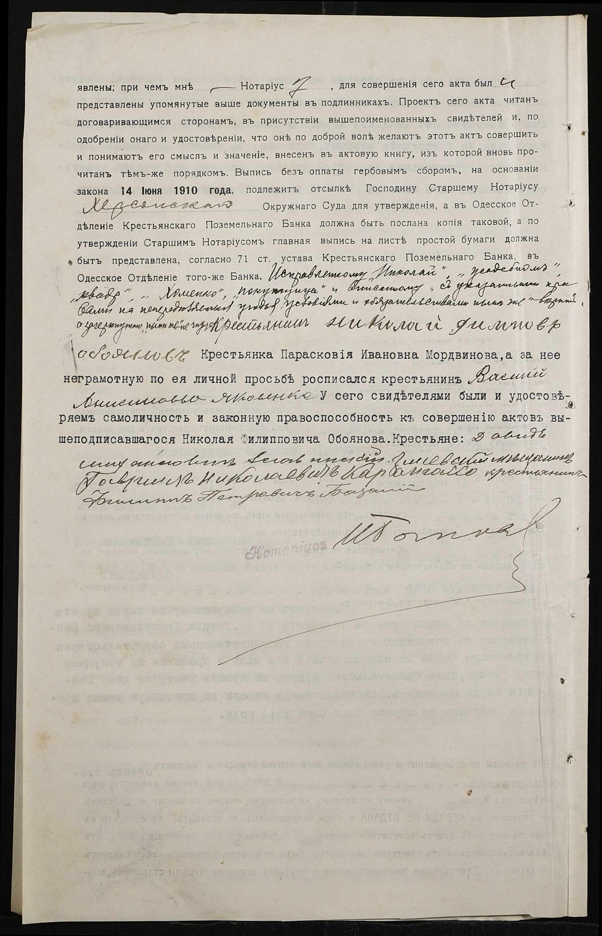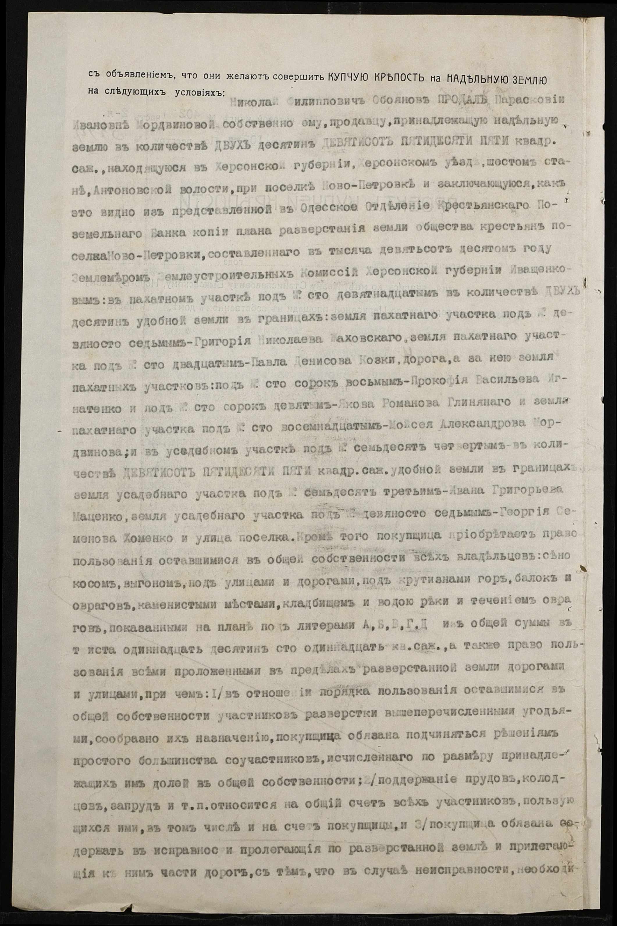 • • • • Справа № 167 “Справа про вчинення купчої про продаж землі селянином Обояновим Миколою Пилиповичем (Обояновым Николаем Филипповичем) на користь селянки Мордвинової Парасковії (Мордвиновой Прасковьи)”
