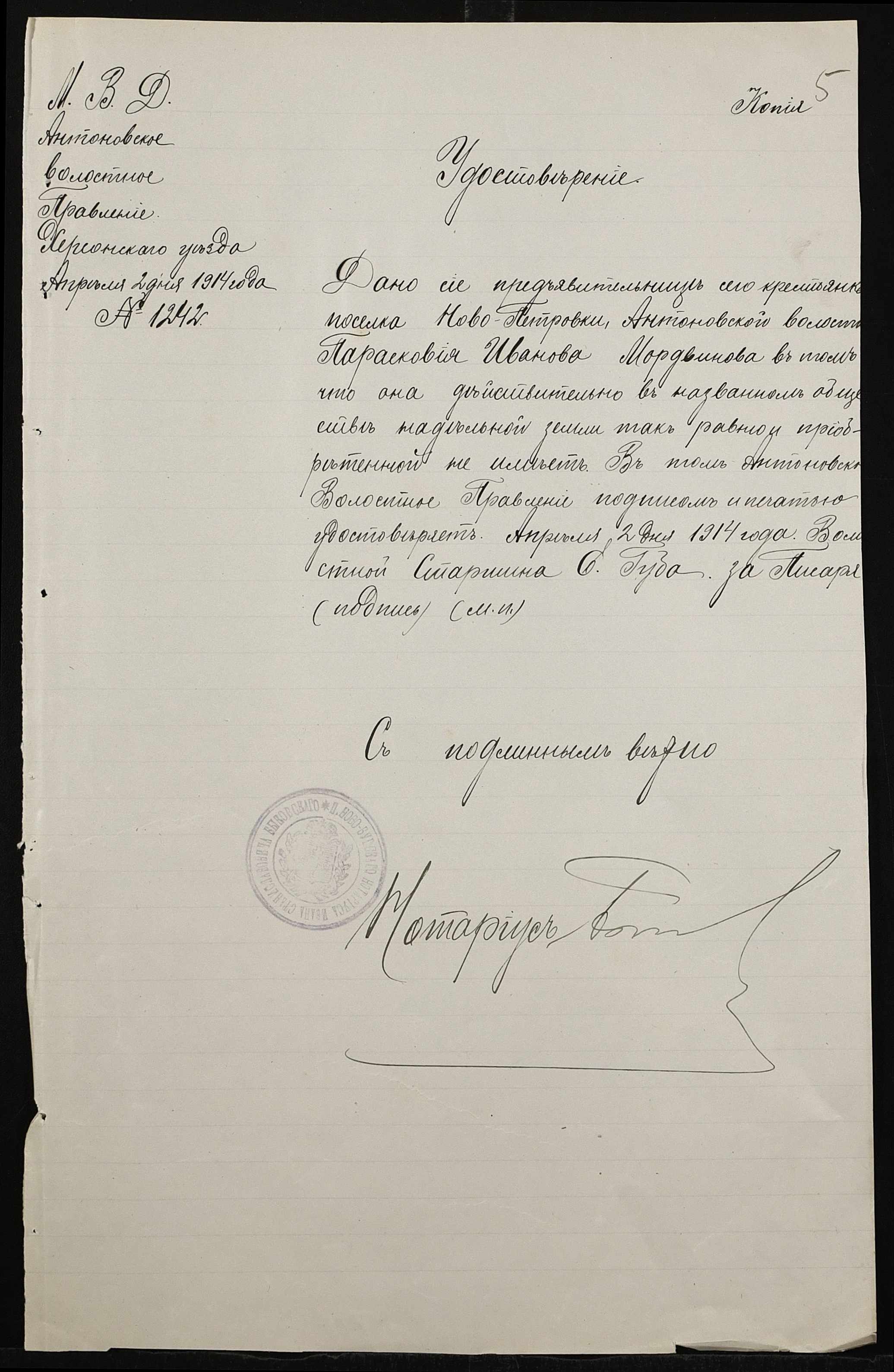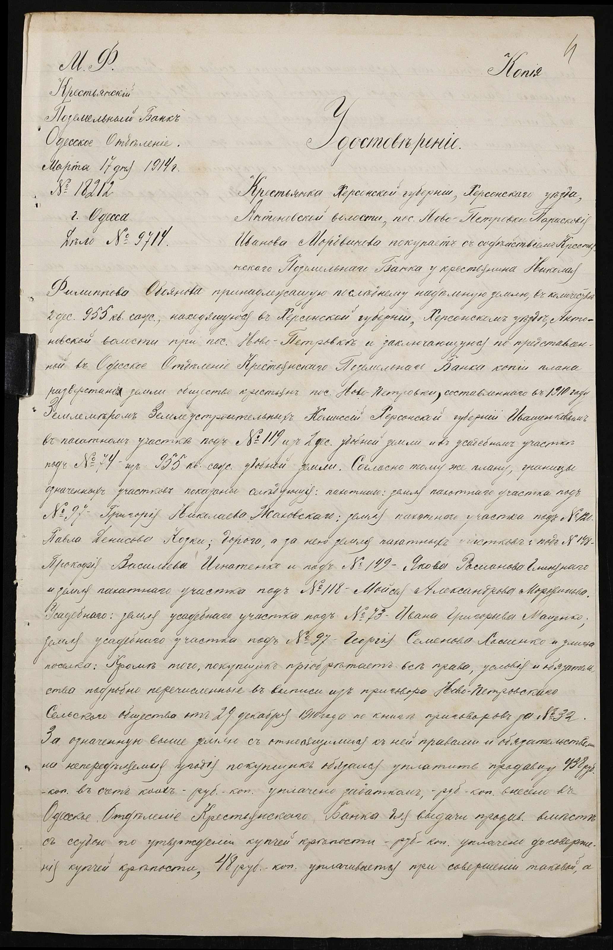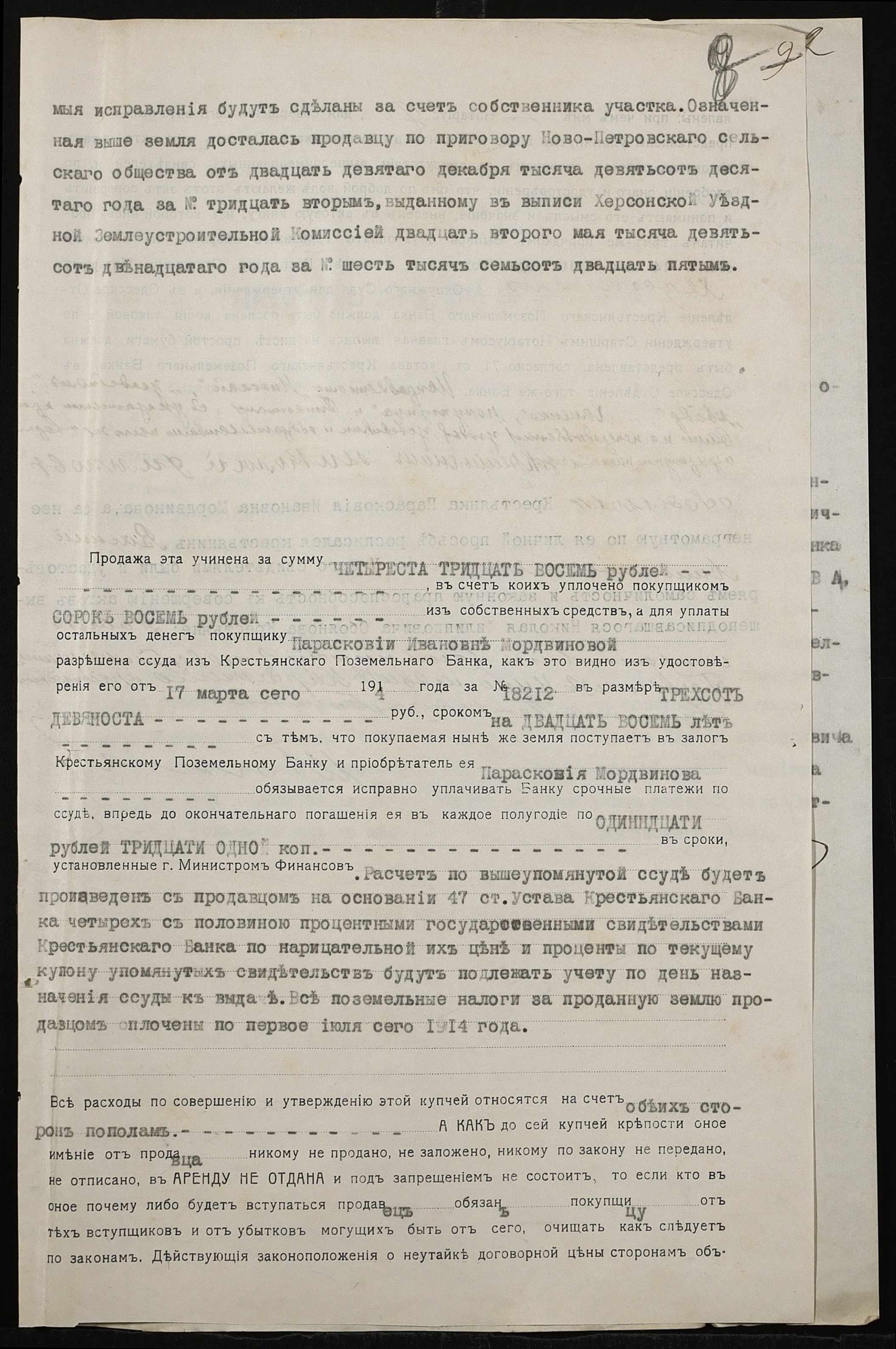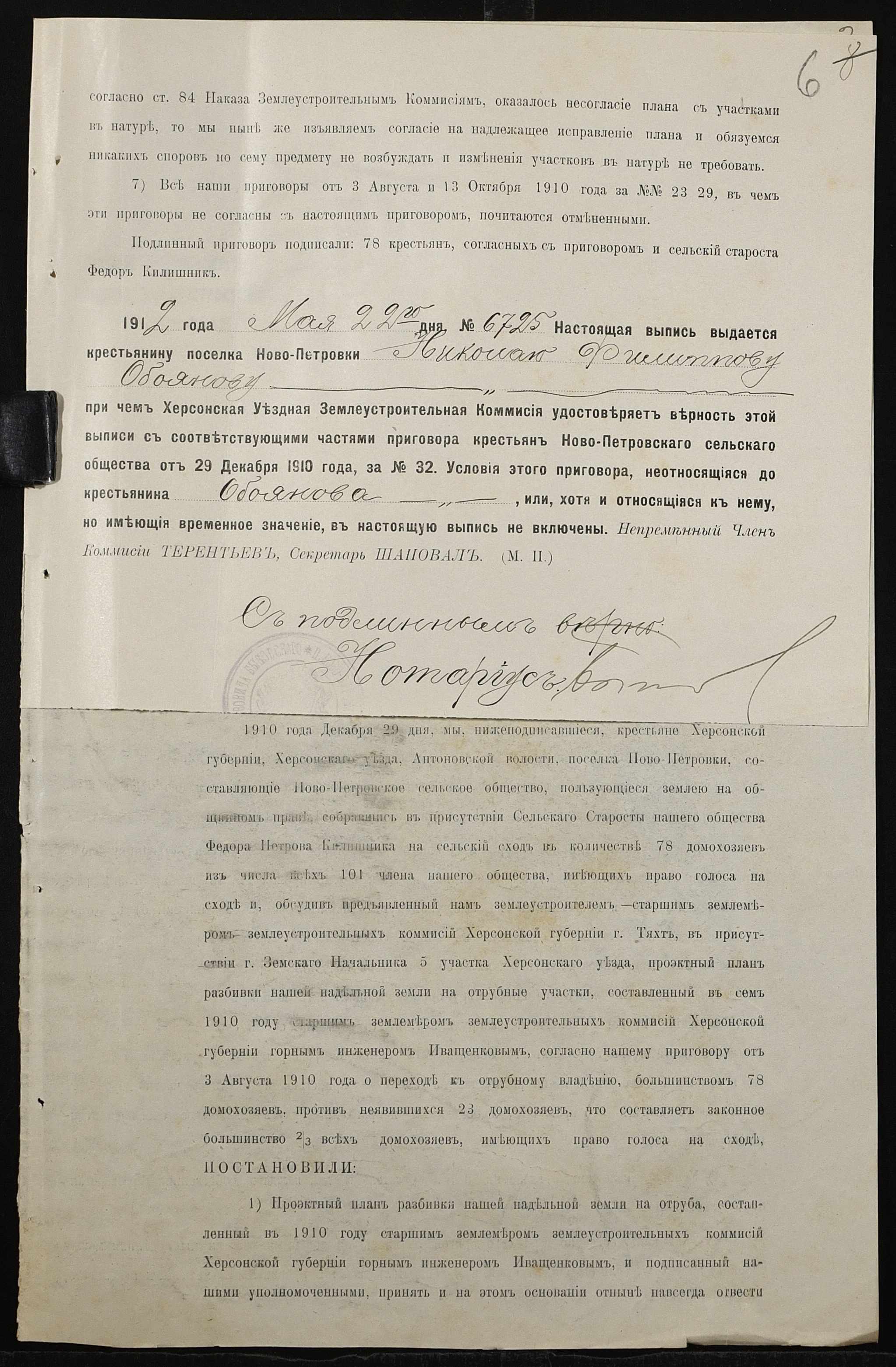 • • • • Справа № 167 “Справа про вчинення купчої про продаж землі селянином Обояновим Миколою Пилиповичем (Обояновым Николаем Филипповичем) на користь селянки Мордвинової Парасковії (Мордвиновой Прасковьи)”
