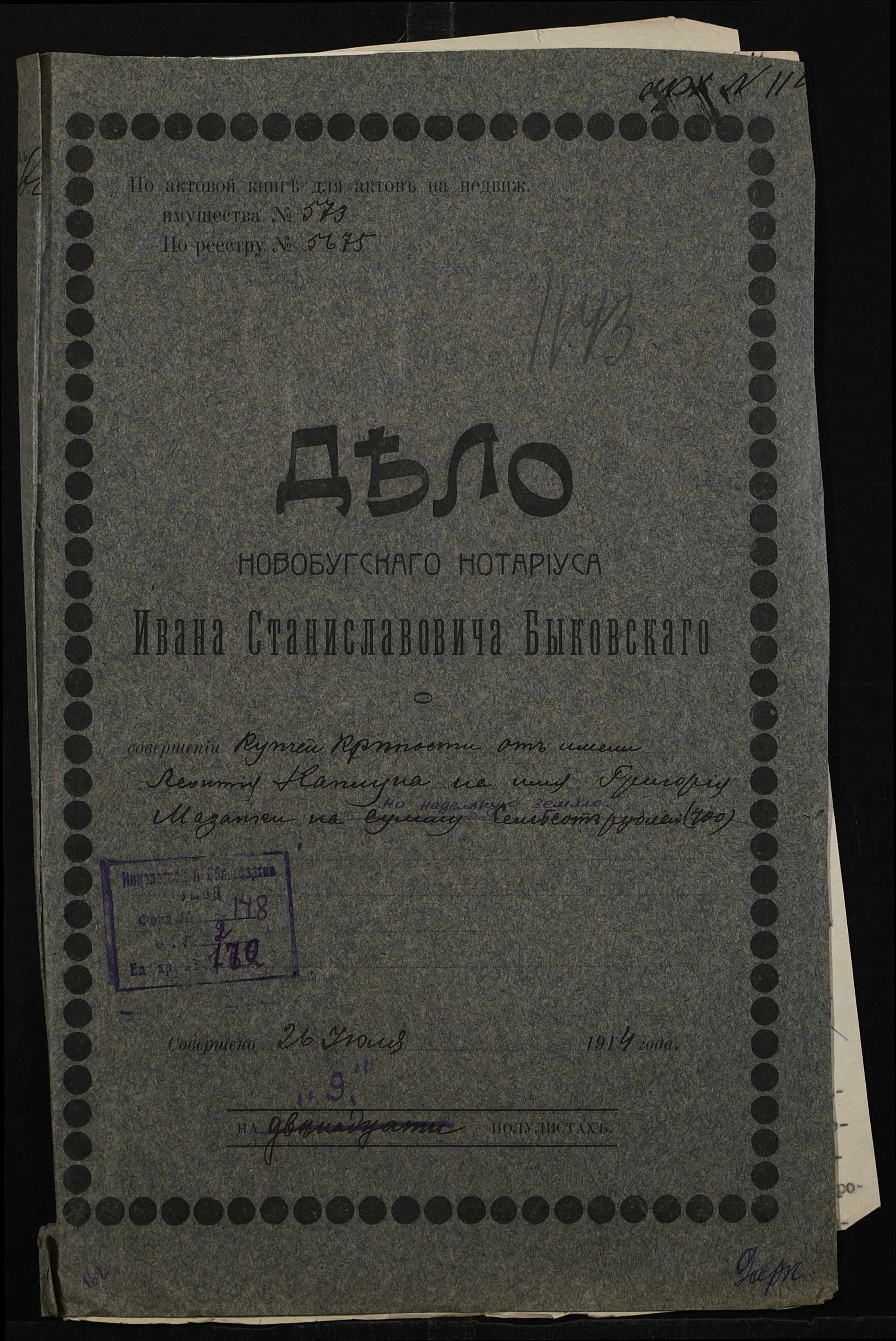 ◦ ◦ Фонд № 148 “Контора новобузького нотаріуса Биковського Івана Станіславовича”