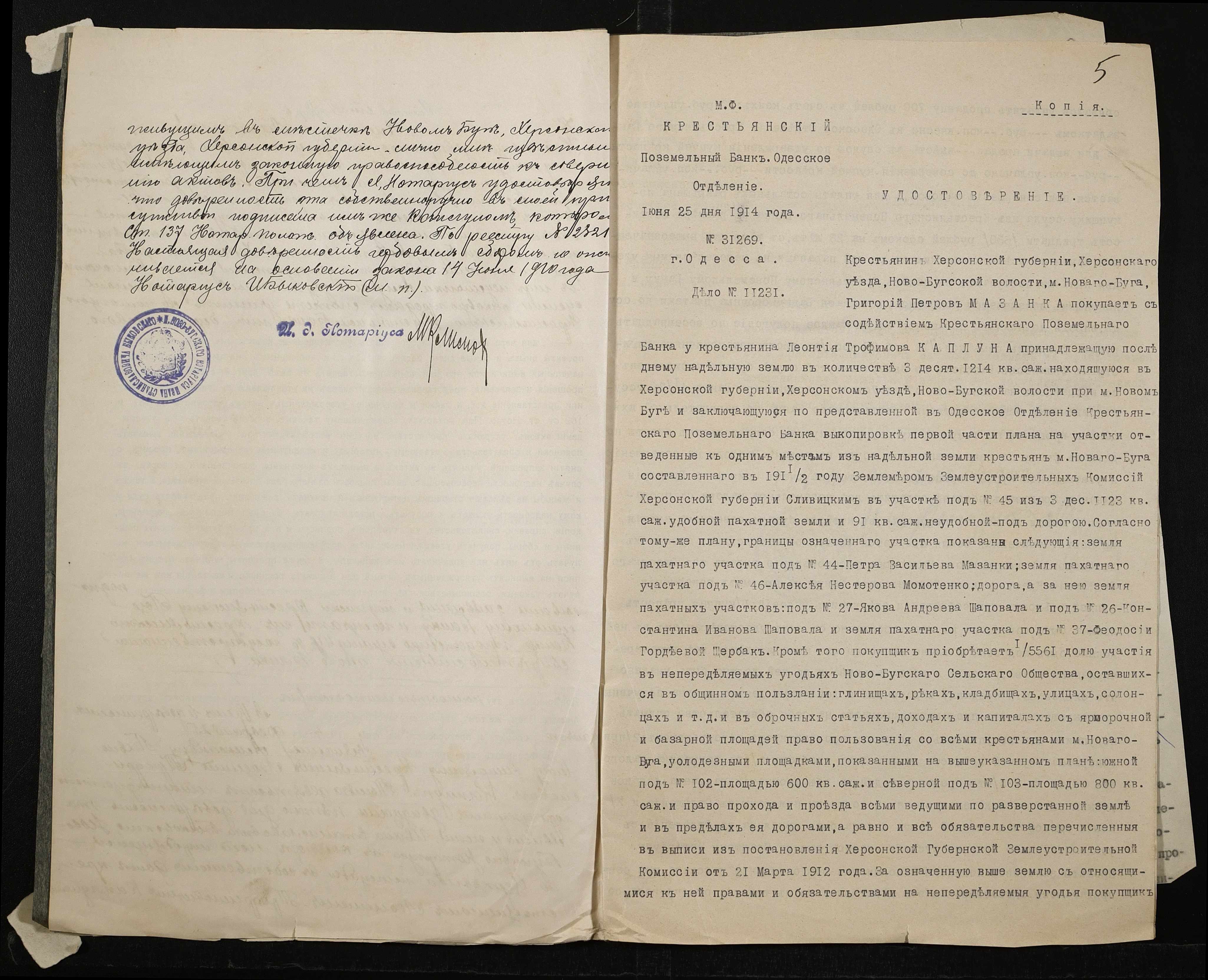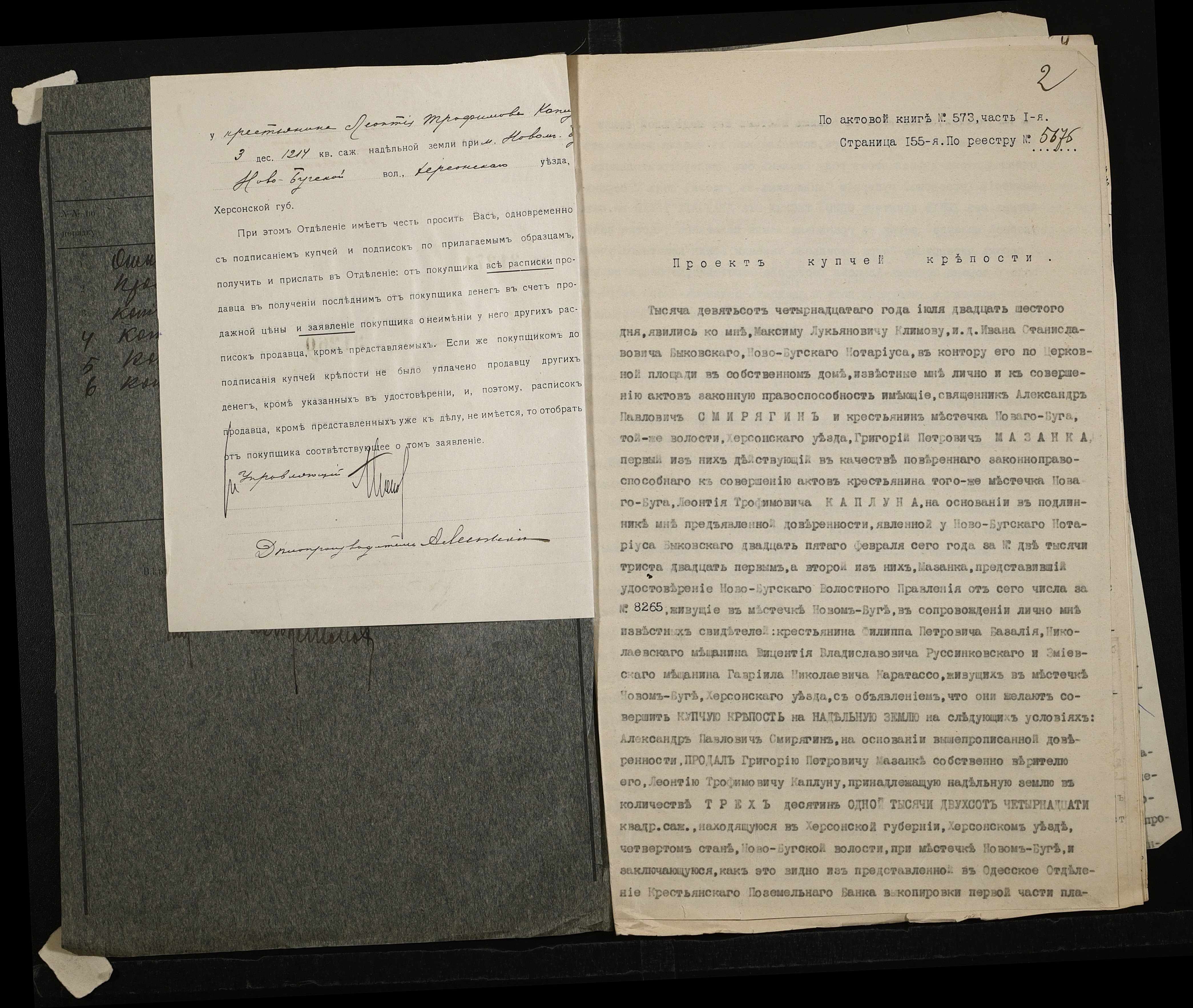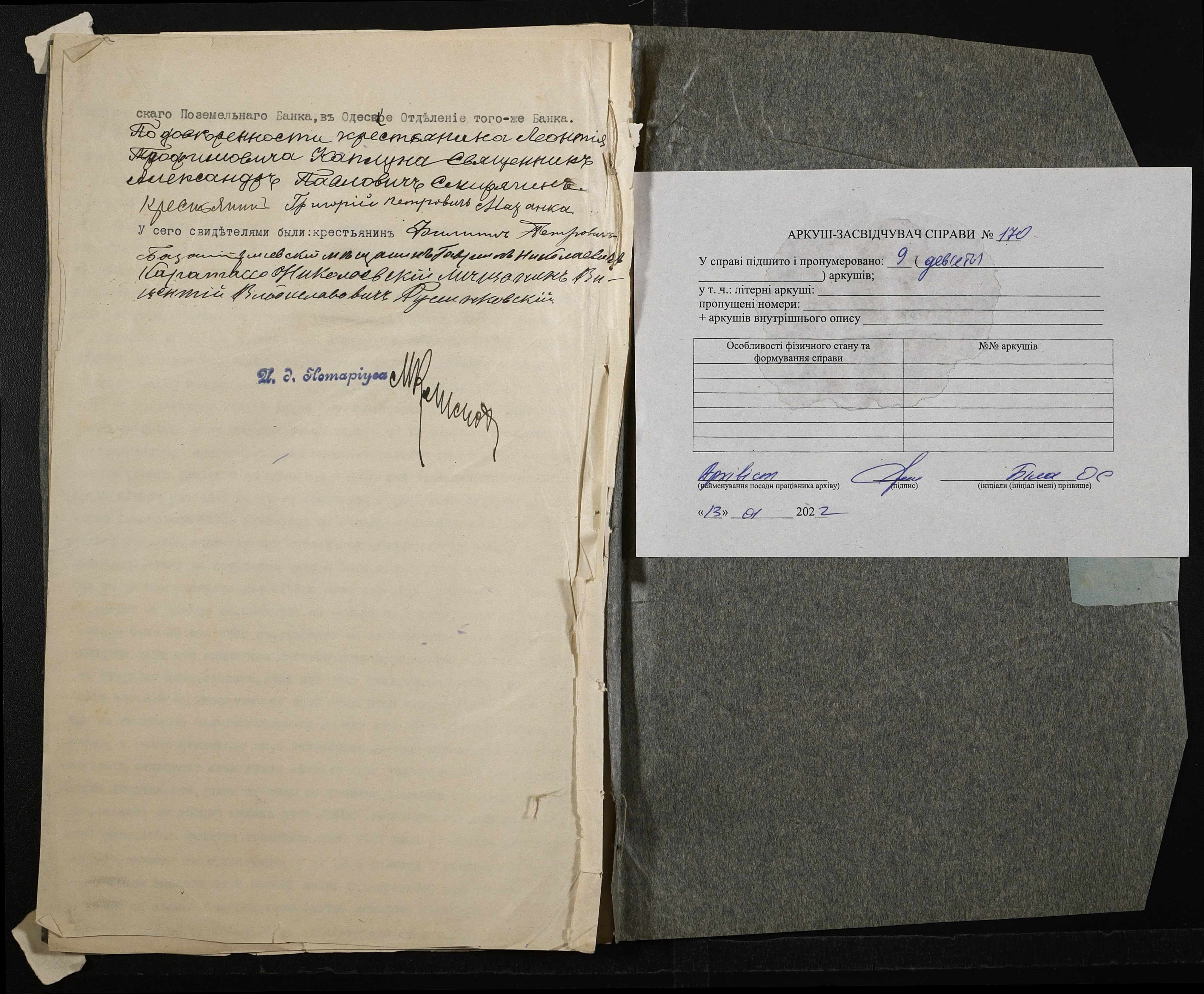 • • • • Справа № 170 “Справа про вчинення купчої про продаж землі селянином Каплуном Леонтієм (Леонтием) на користь селянина Мазанки Григорія (Григория)”