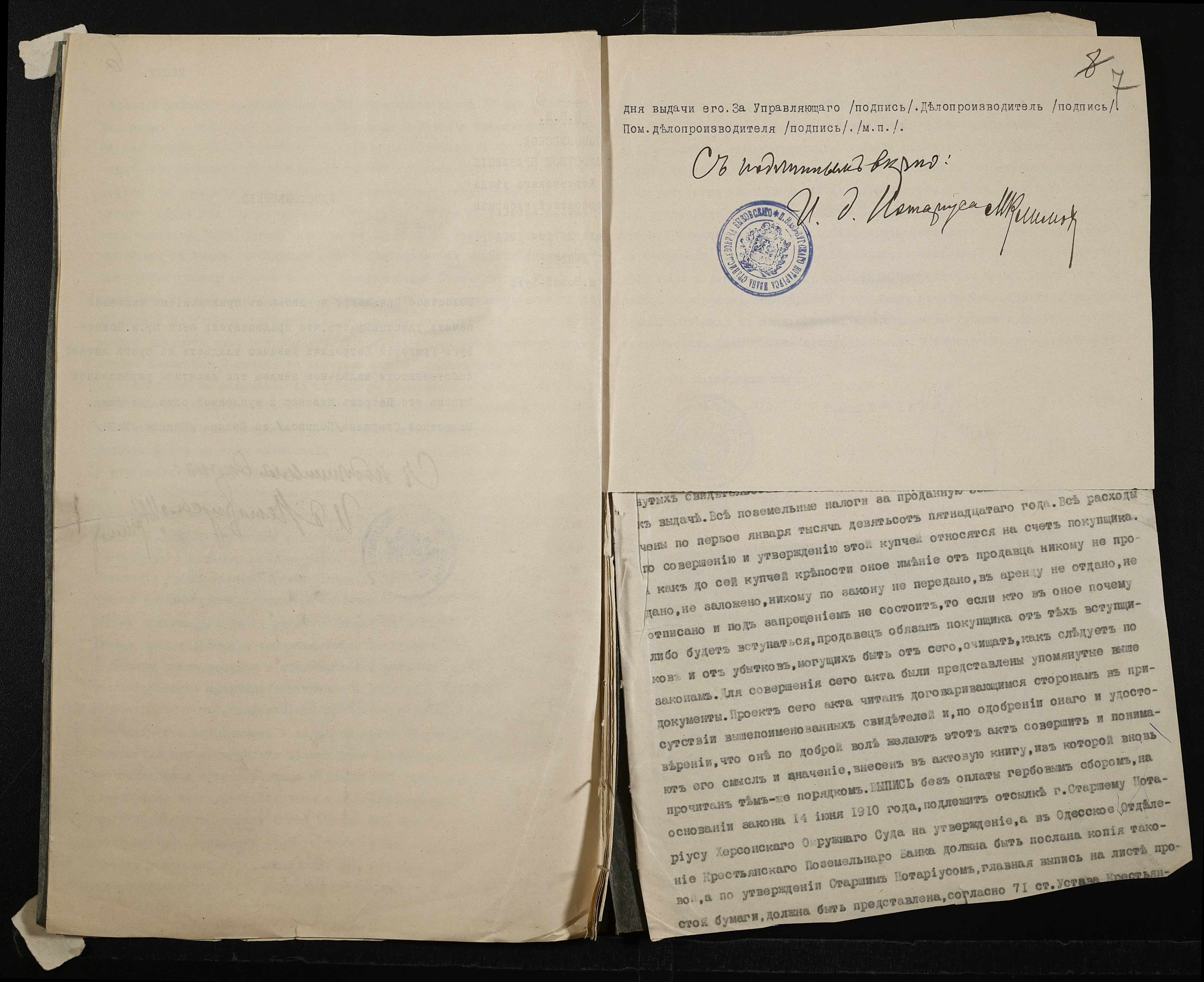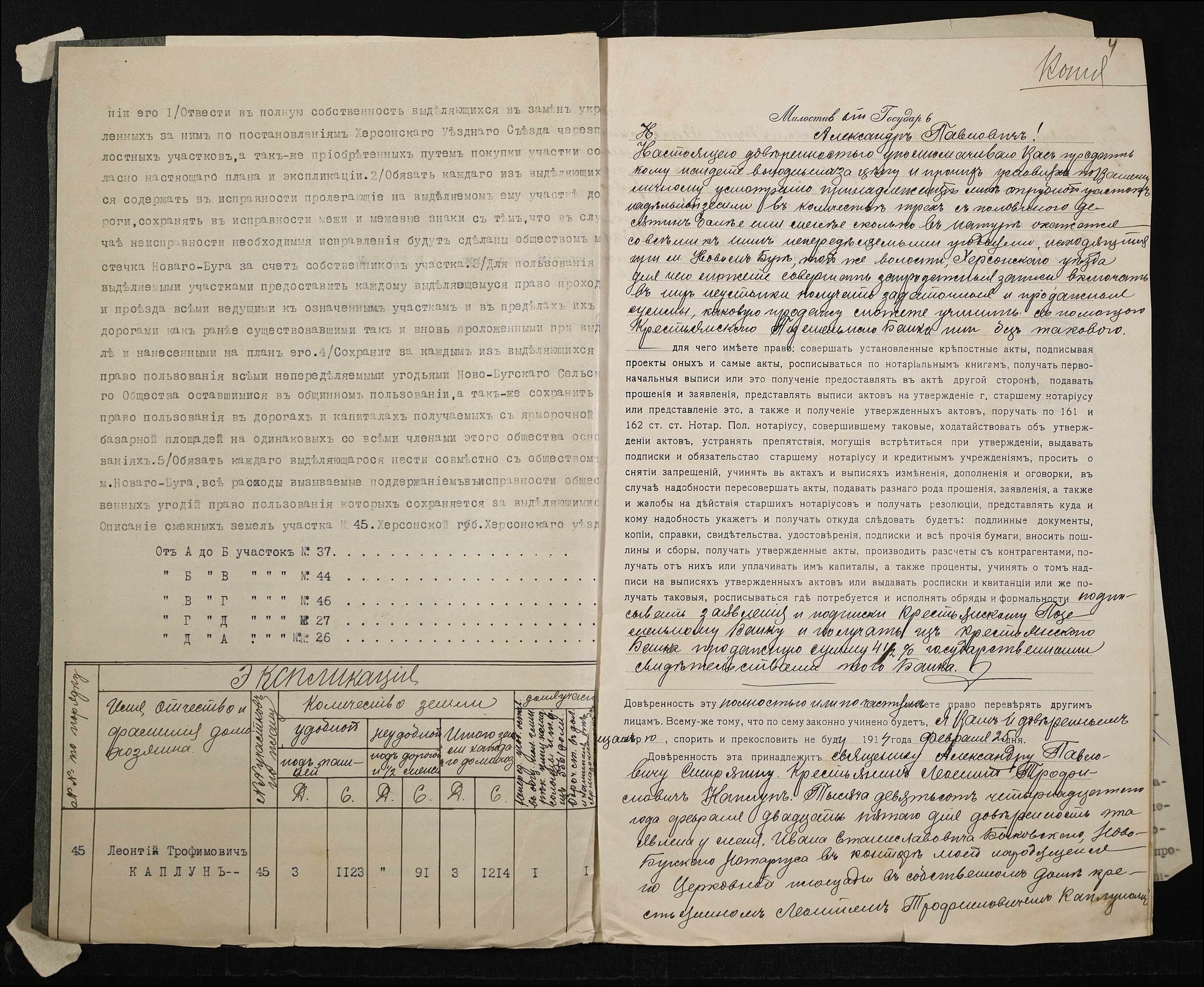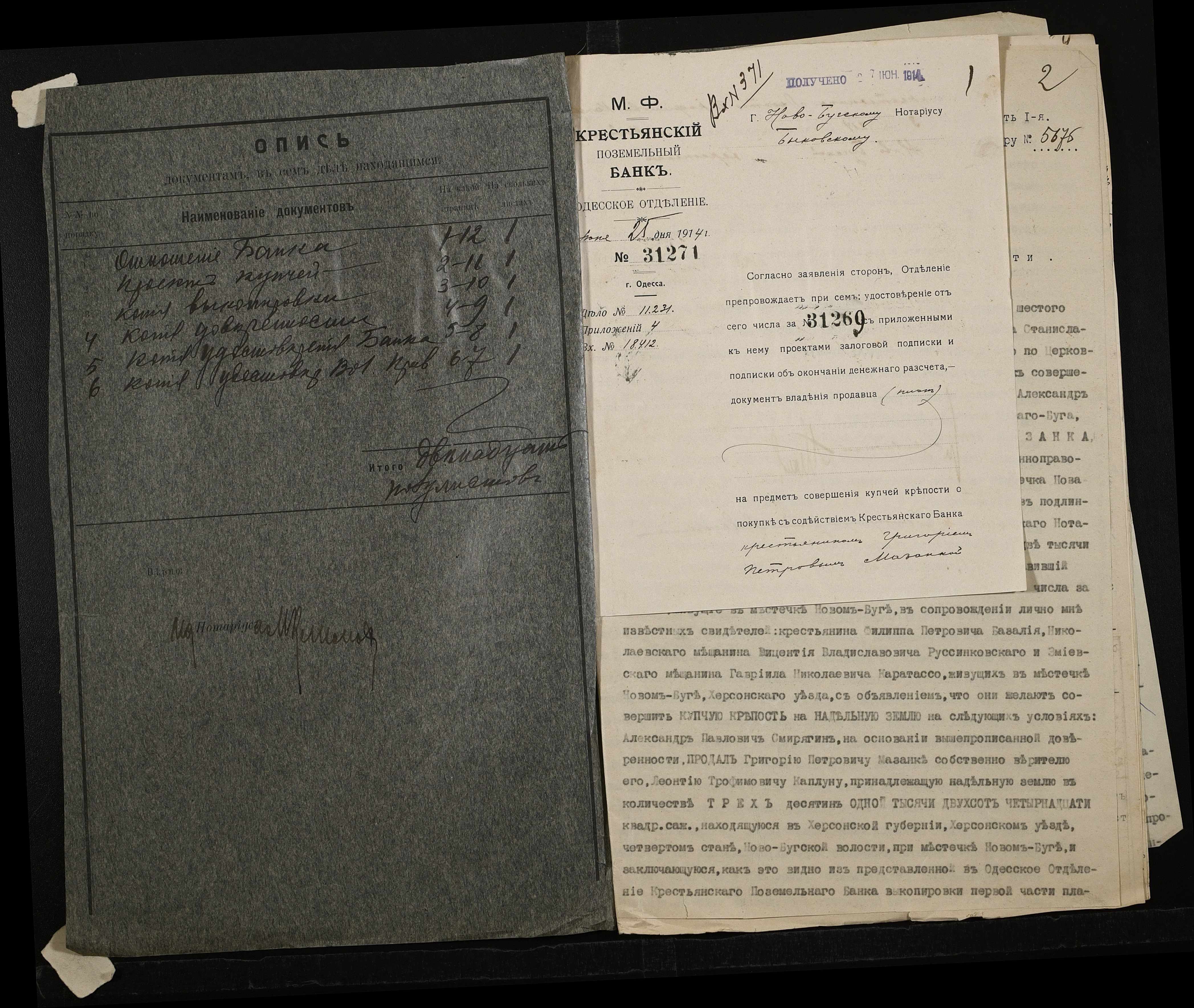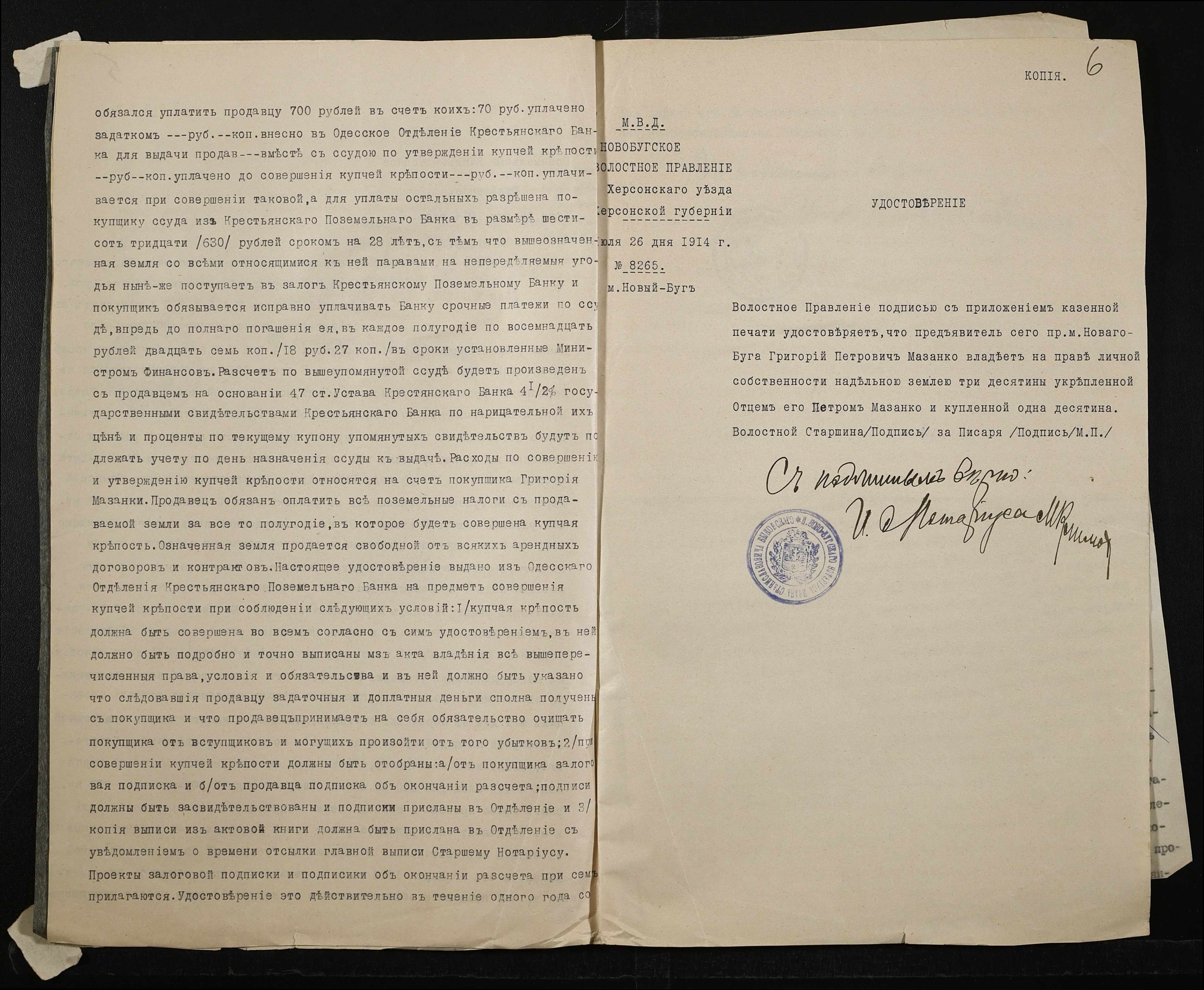 • • • • Справа № 170 “Справа про вчинення купчої про продаж землі селянином Каплуном Леонтієм (Леонтием) на користь селянина Мазанки Григорія (Григория)”