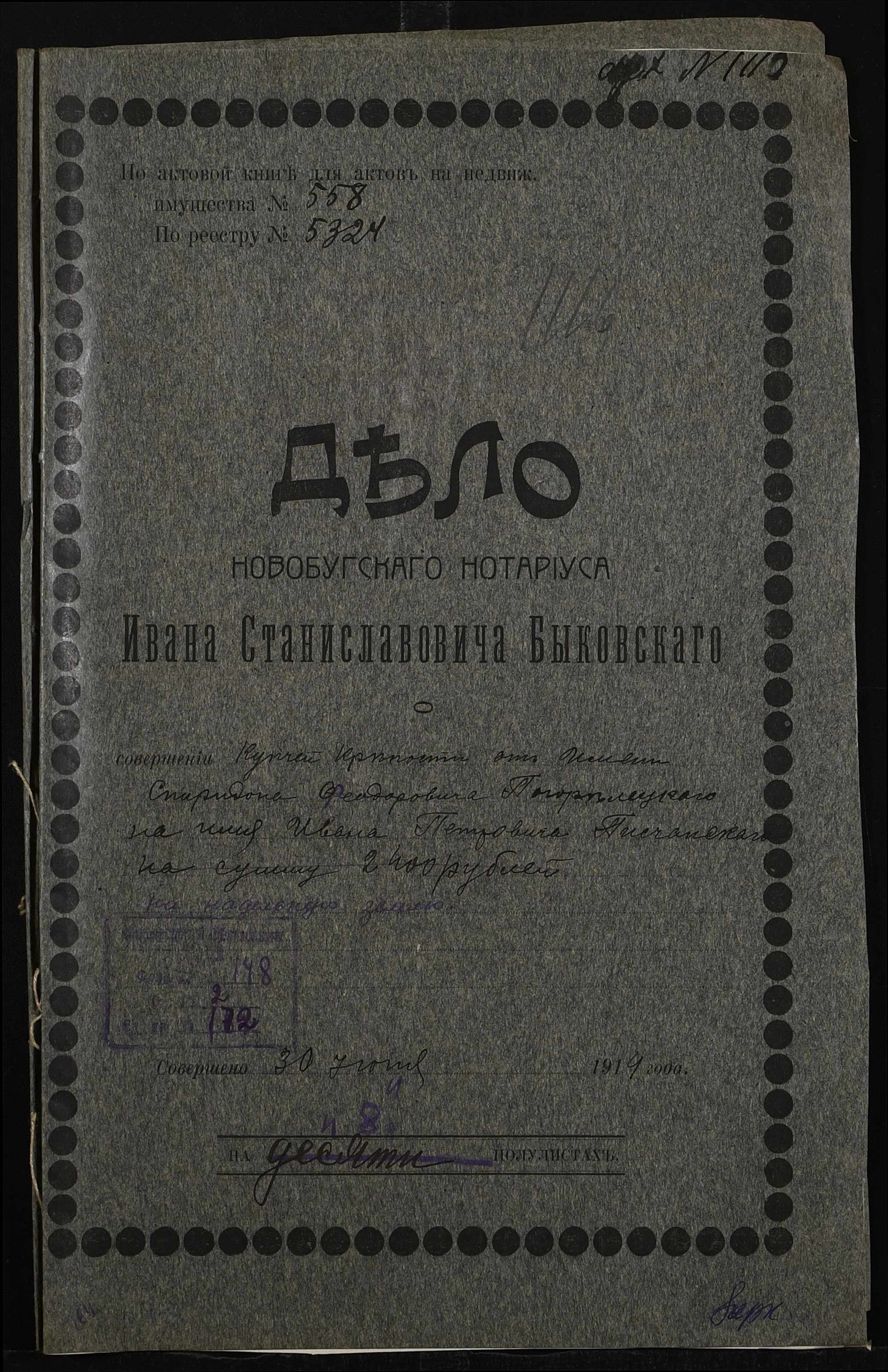 ◦ ◦ Фонд № 148 “Контора новобузького нотаріуса Биковського Івана Станіславовича”