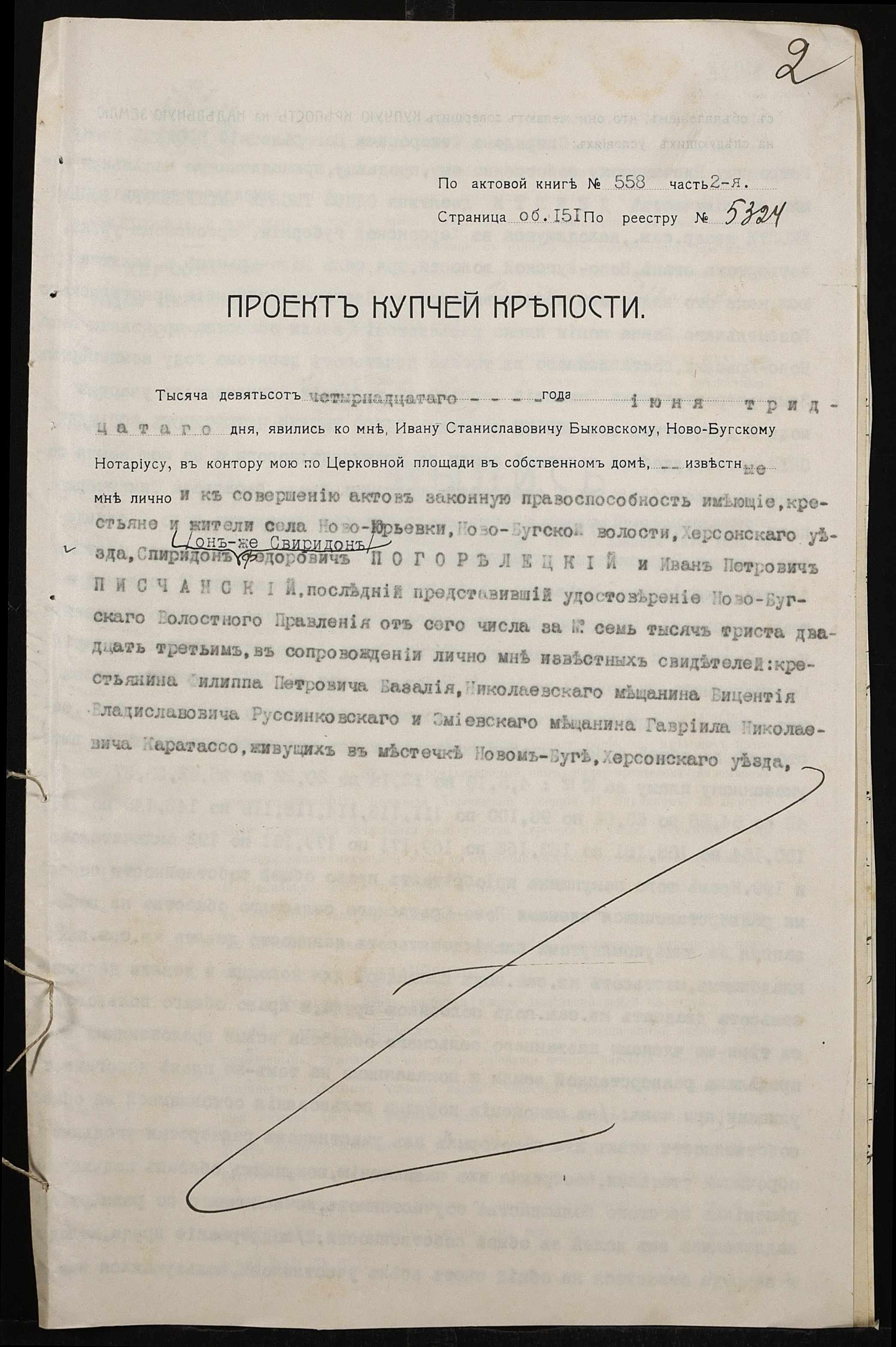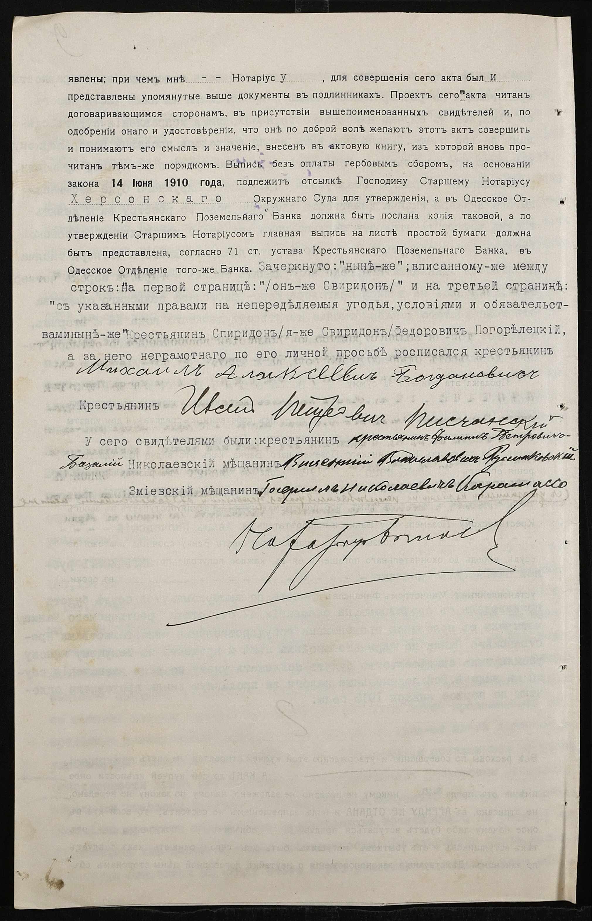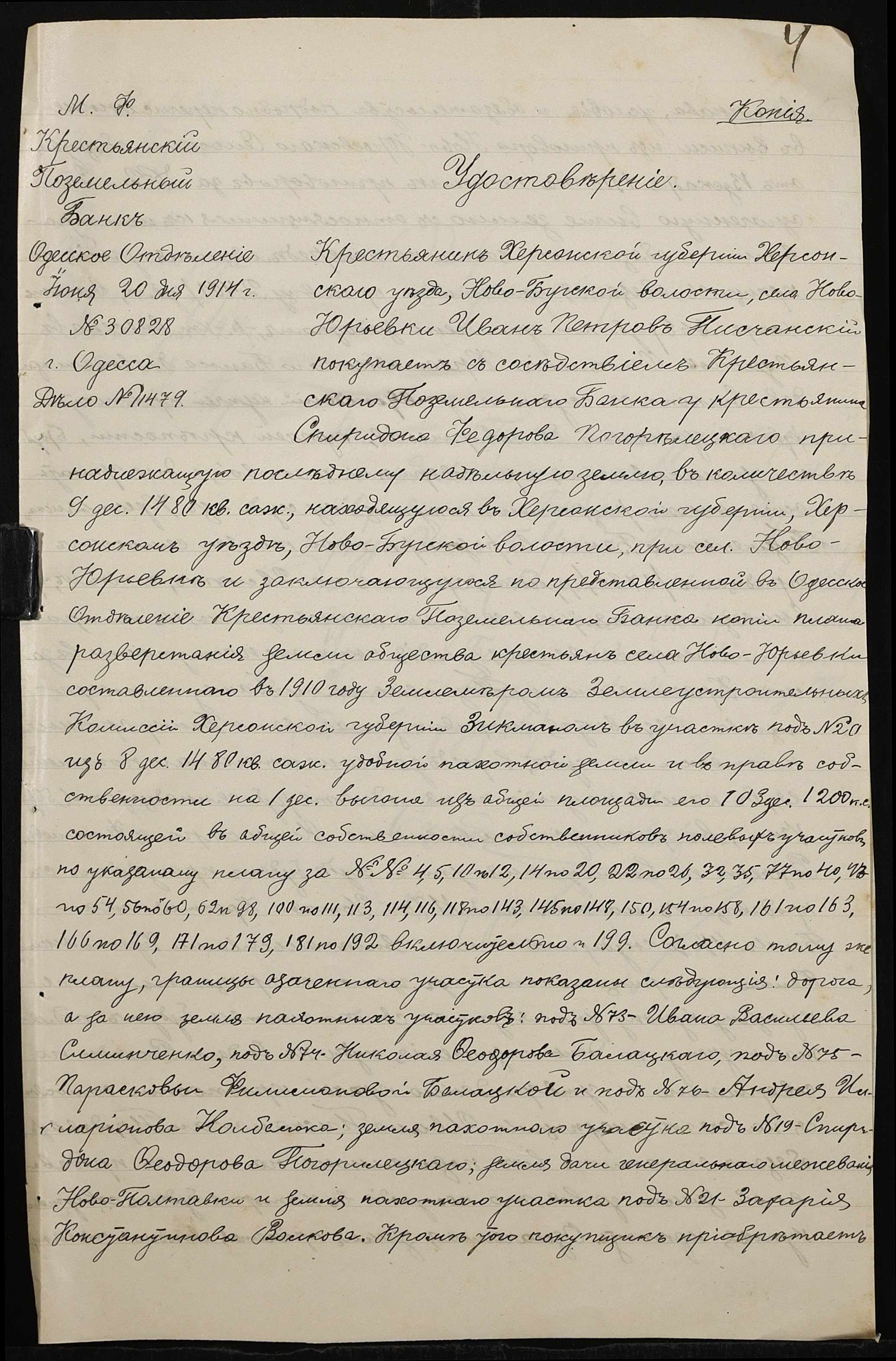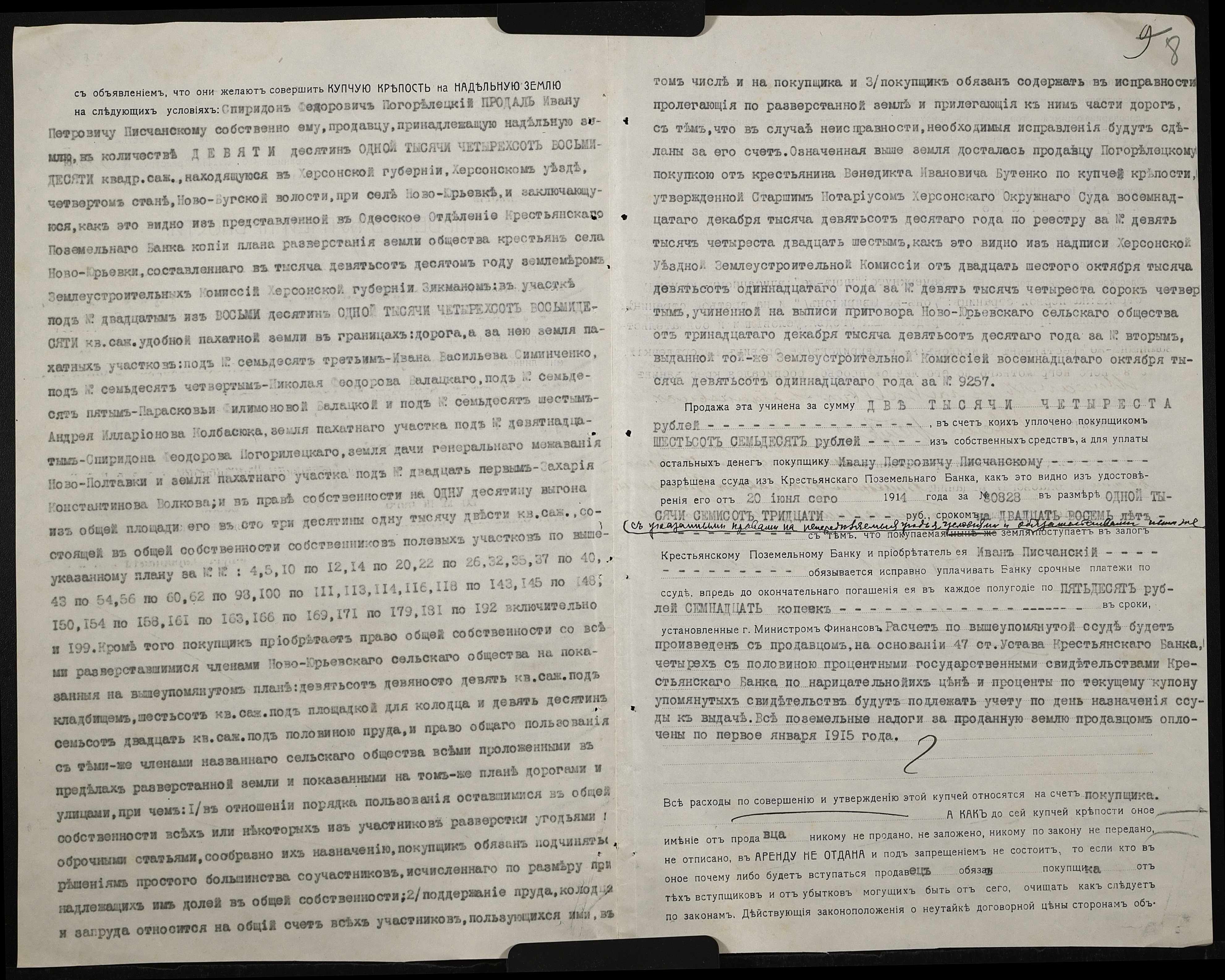 • • • • Справа № 172 “Справа про вчинення купчої про продаж землі селянином Погорелецьким (Погорелецким) Спиридоном Федоровичем на користь селянина Пісчанського Івана (Писчанского Ивана)Петровича”