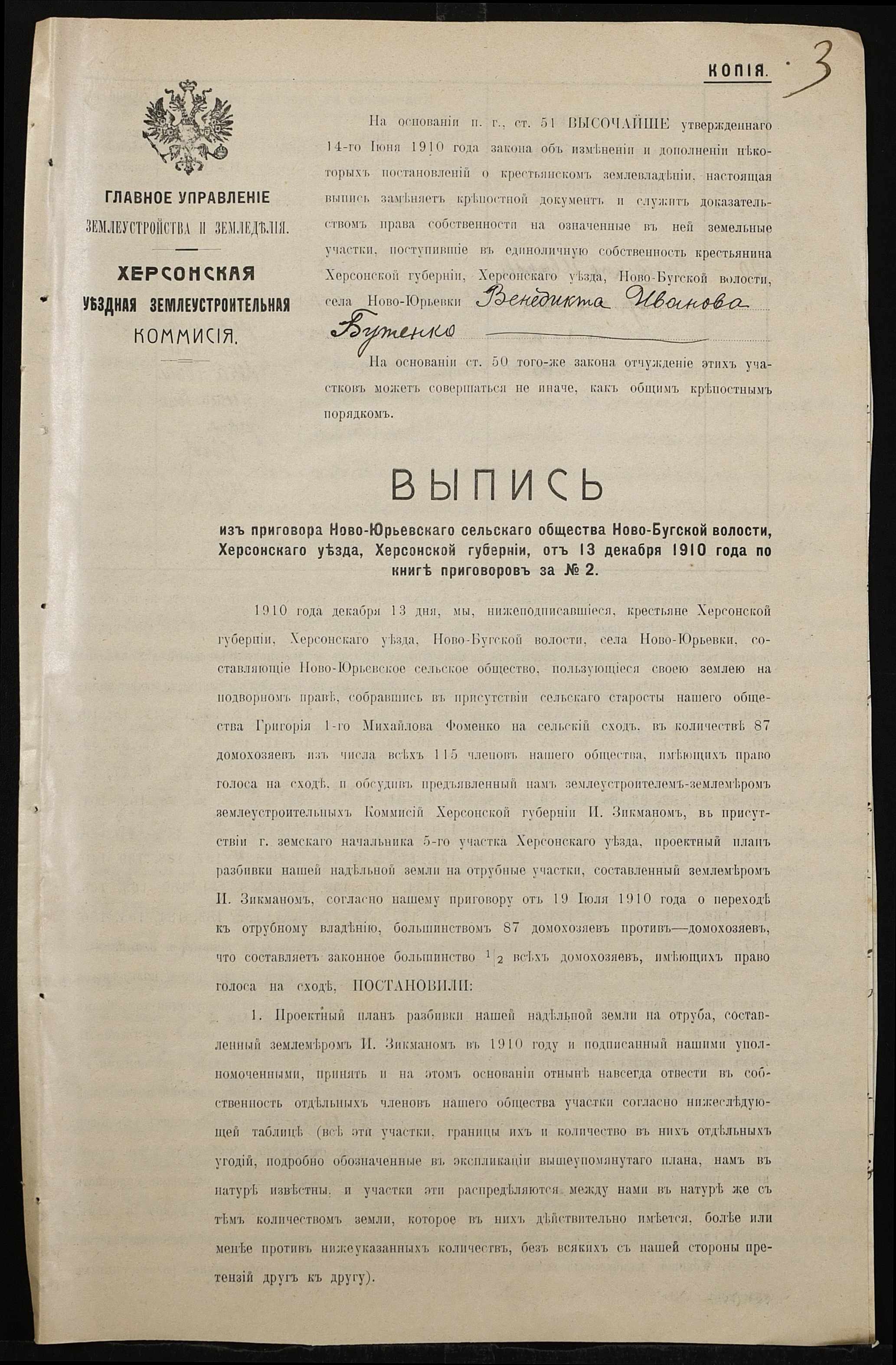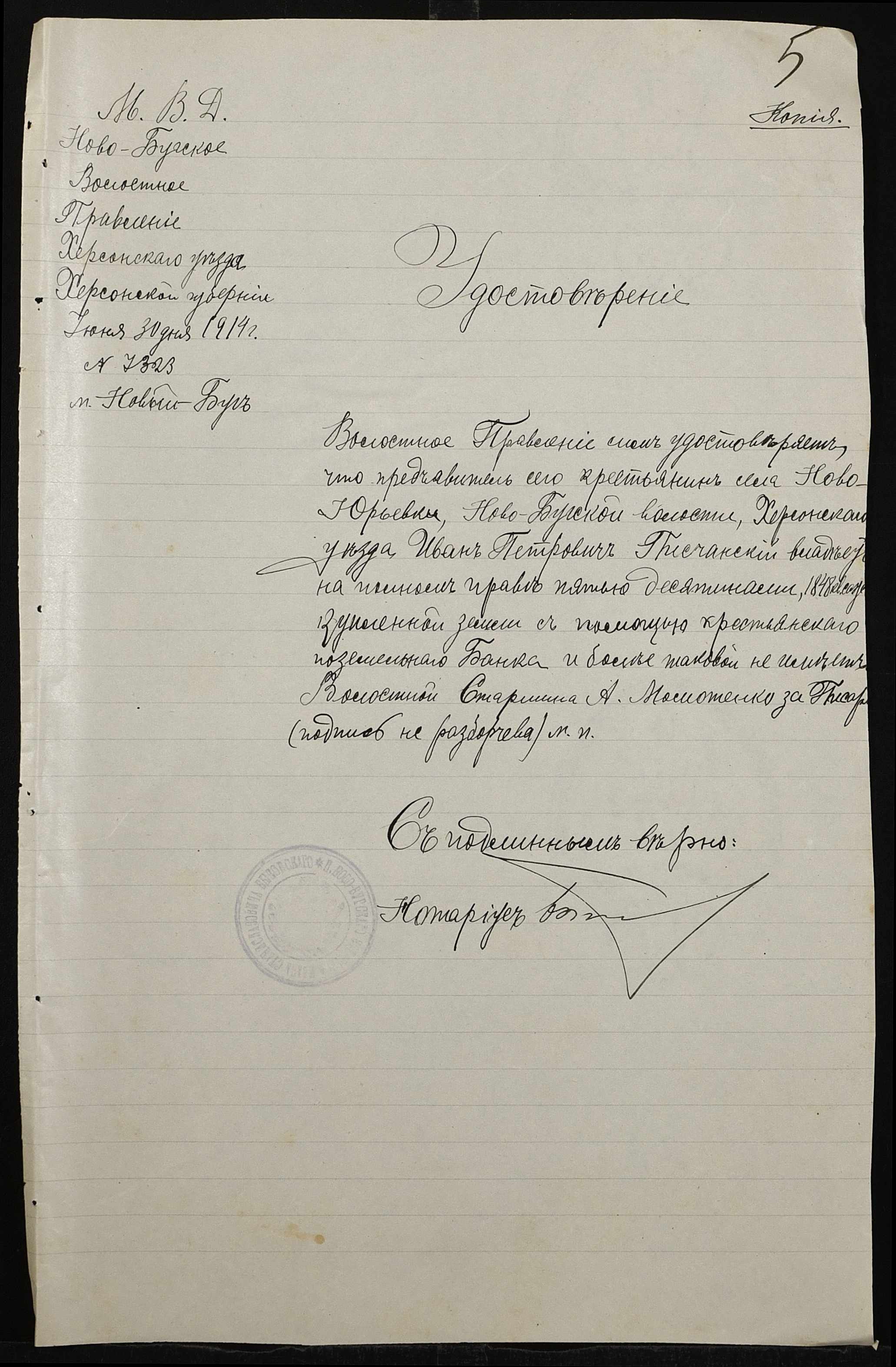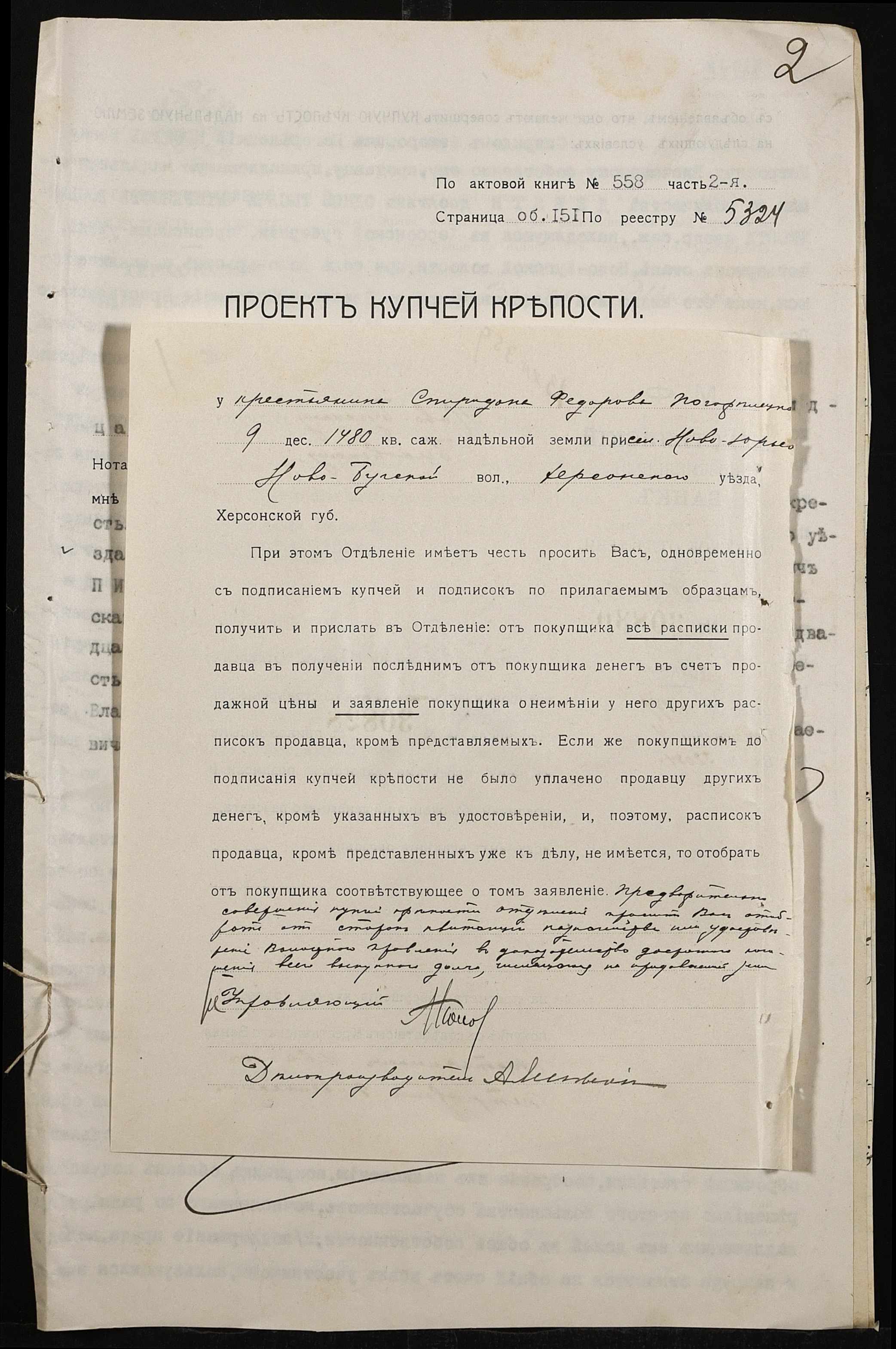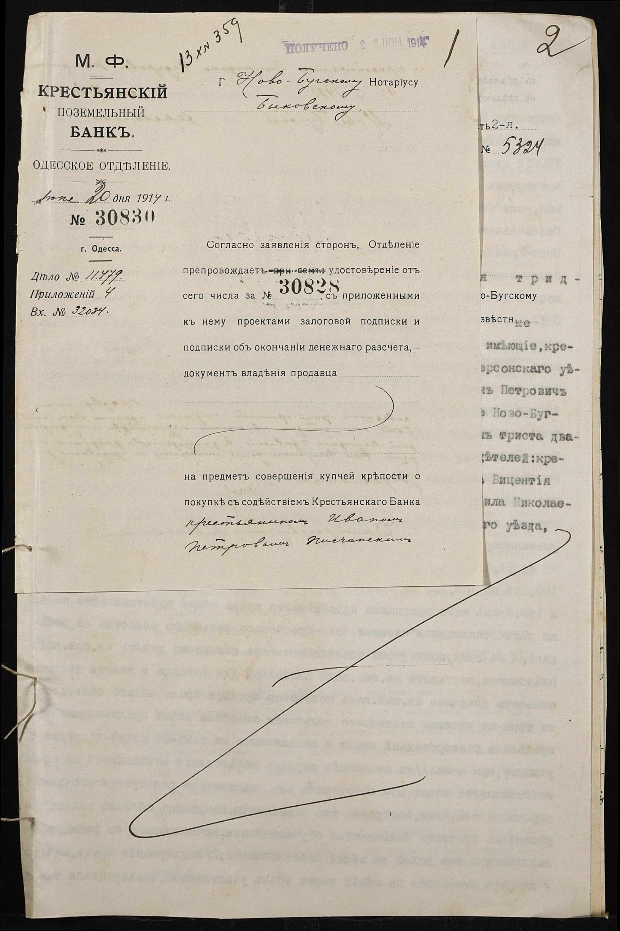 • • • • Справа № 172 “Справа про вчинення купчої про продаж землі селянином Погорелецьким (Погорелецким) Спиридоном Федоровичем на користь селянина Пісчанського Івана (Писчанского Ивана)Петровича”