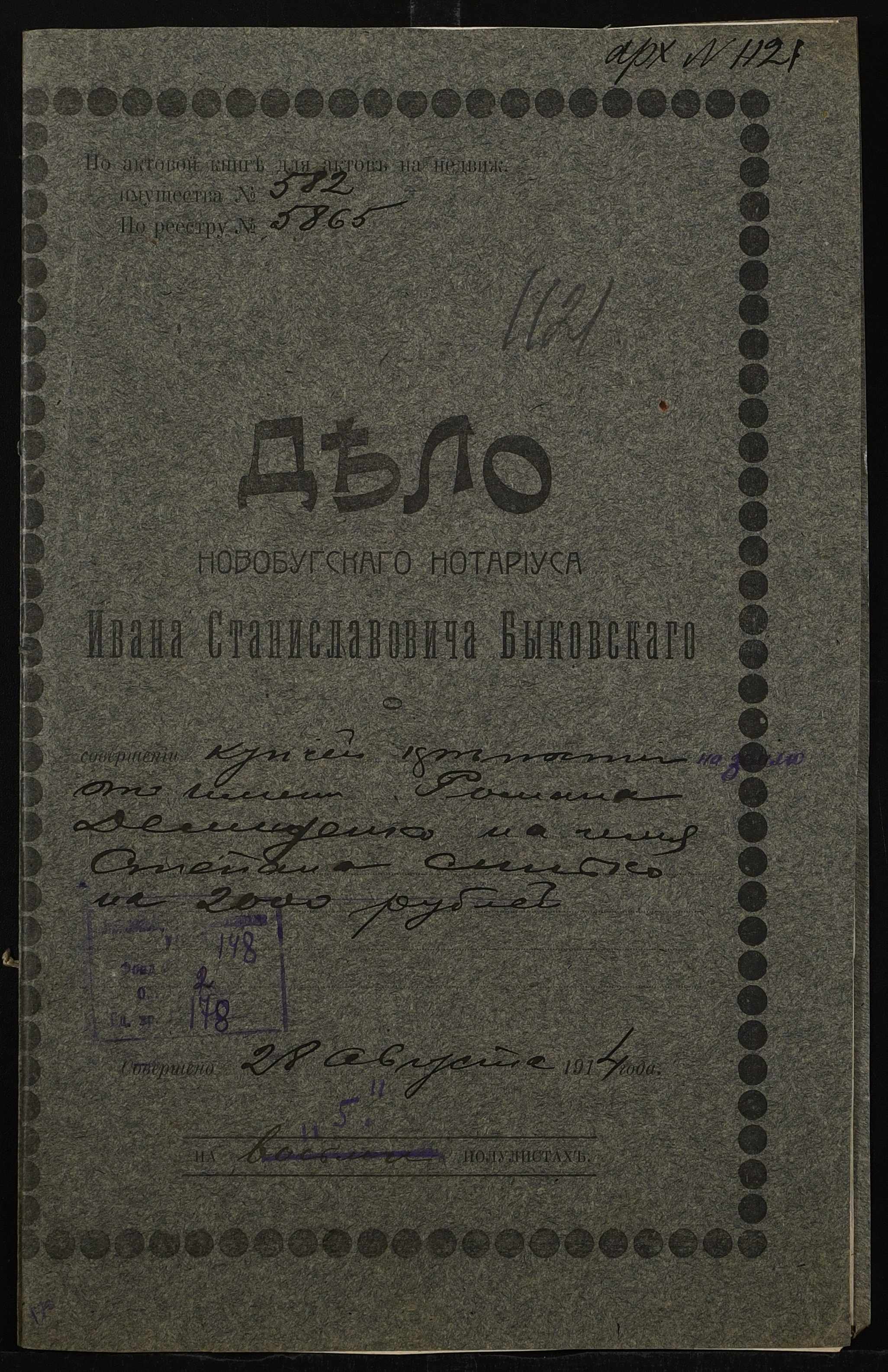 ◦ ◦ Фонд № 148 “Контора новобузького нотаріуса Биковського Івана Станіславовича”