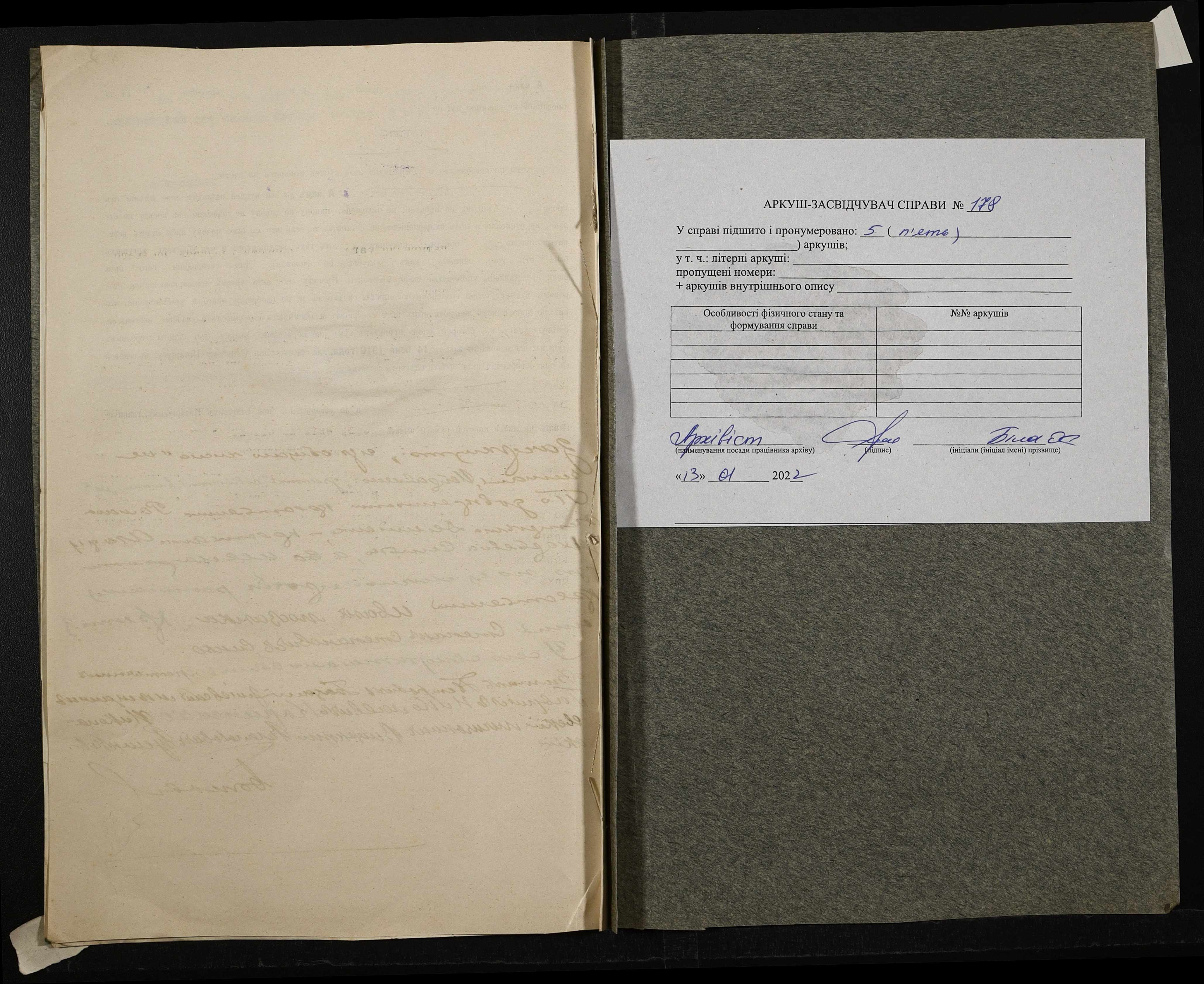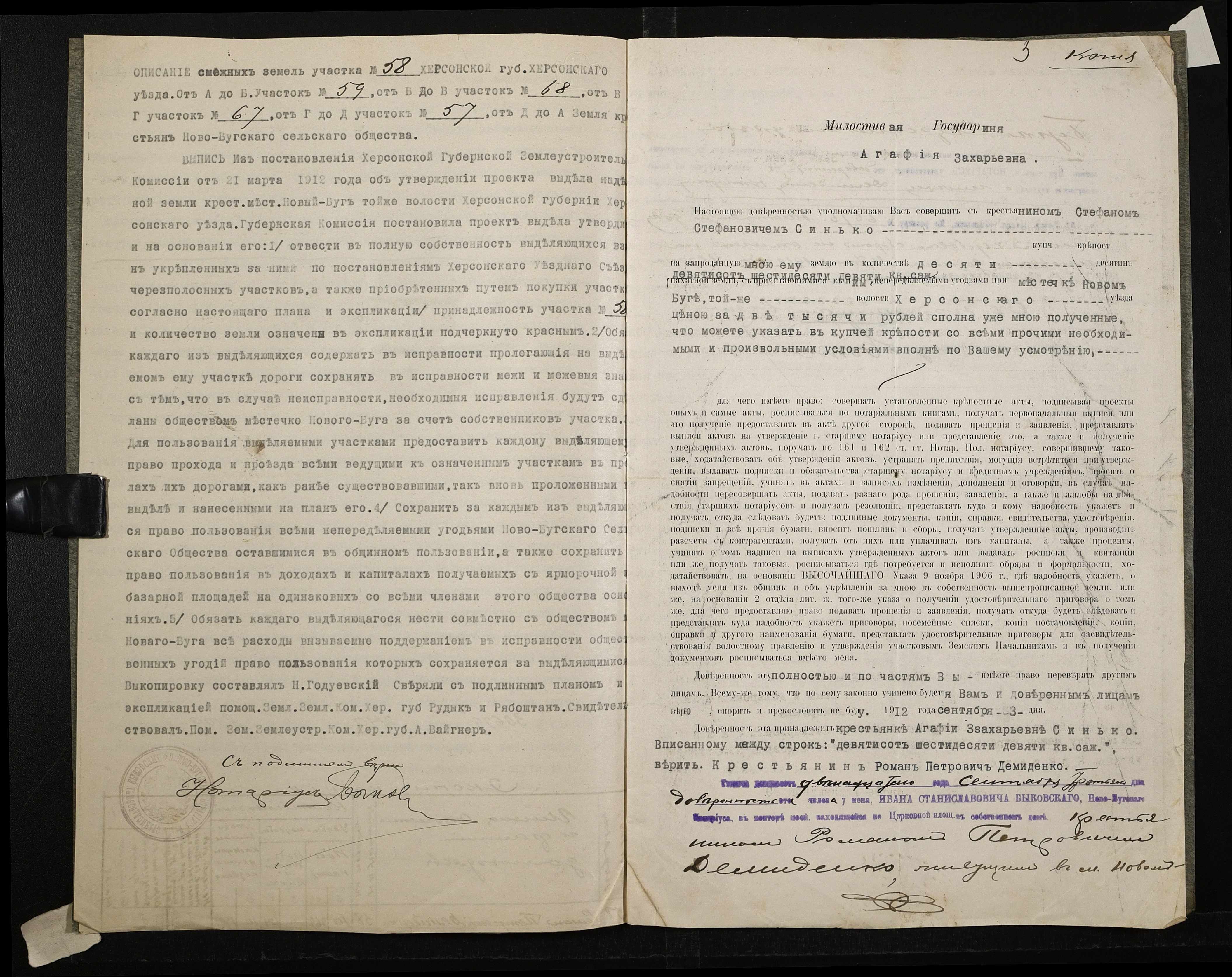 • • • • Справа № 178 “Справа про вчинення купчої про продаж землі селянином Демиденком (Демиденко) Романом на користь селянина Сінька (Синько) Степана”