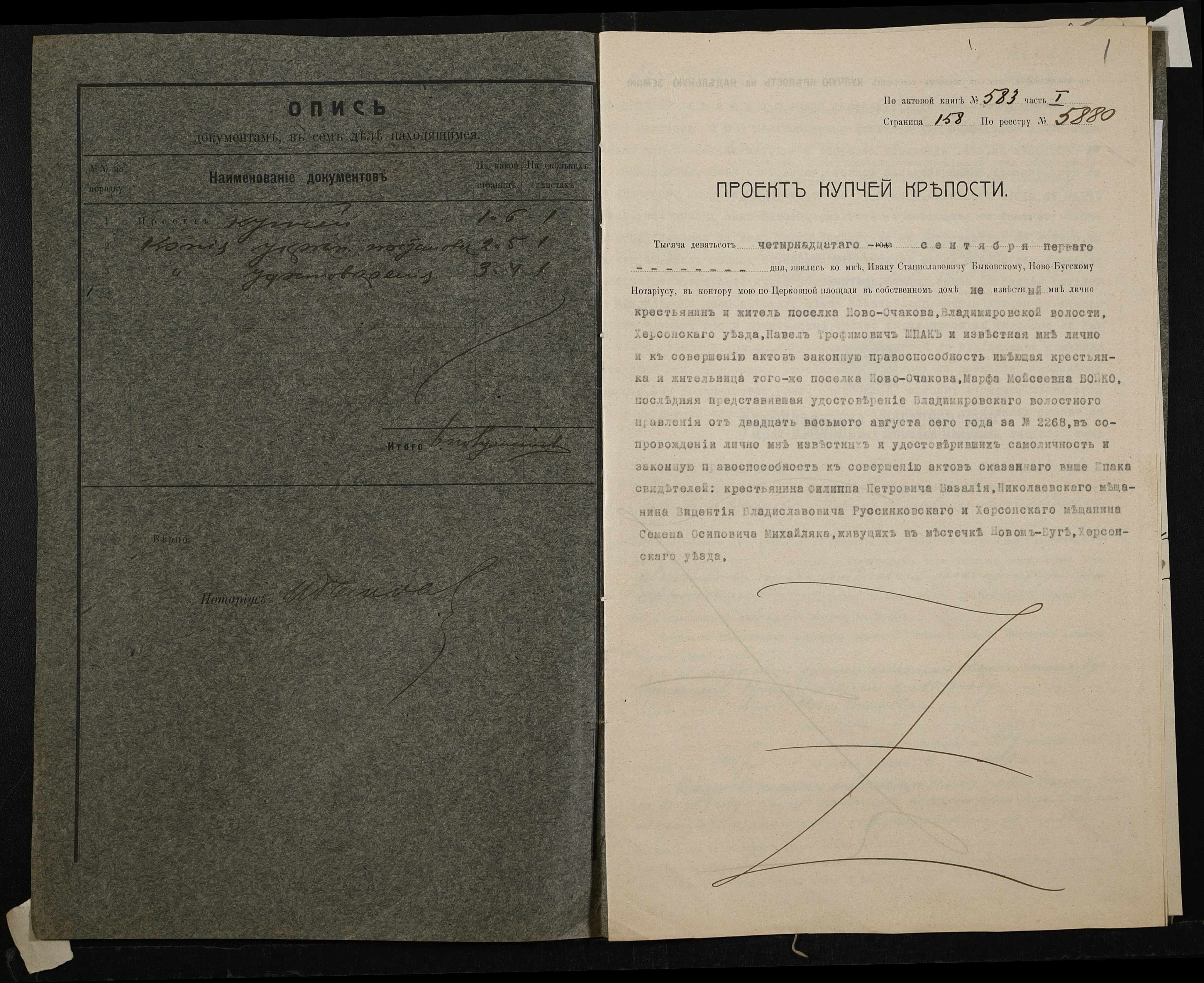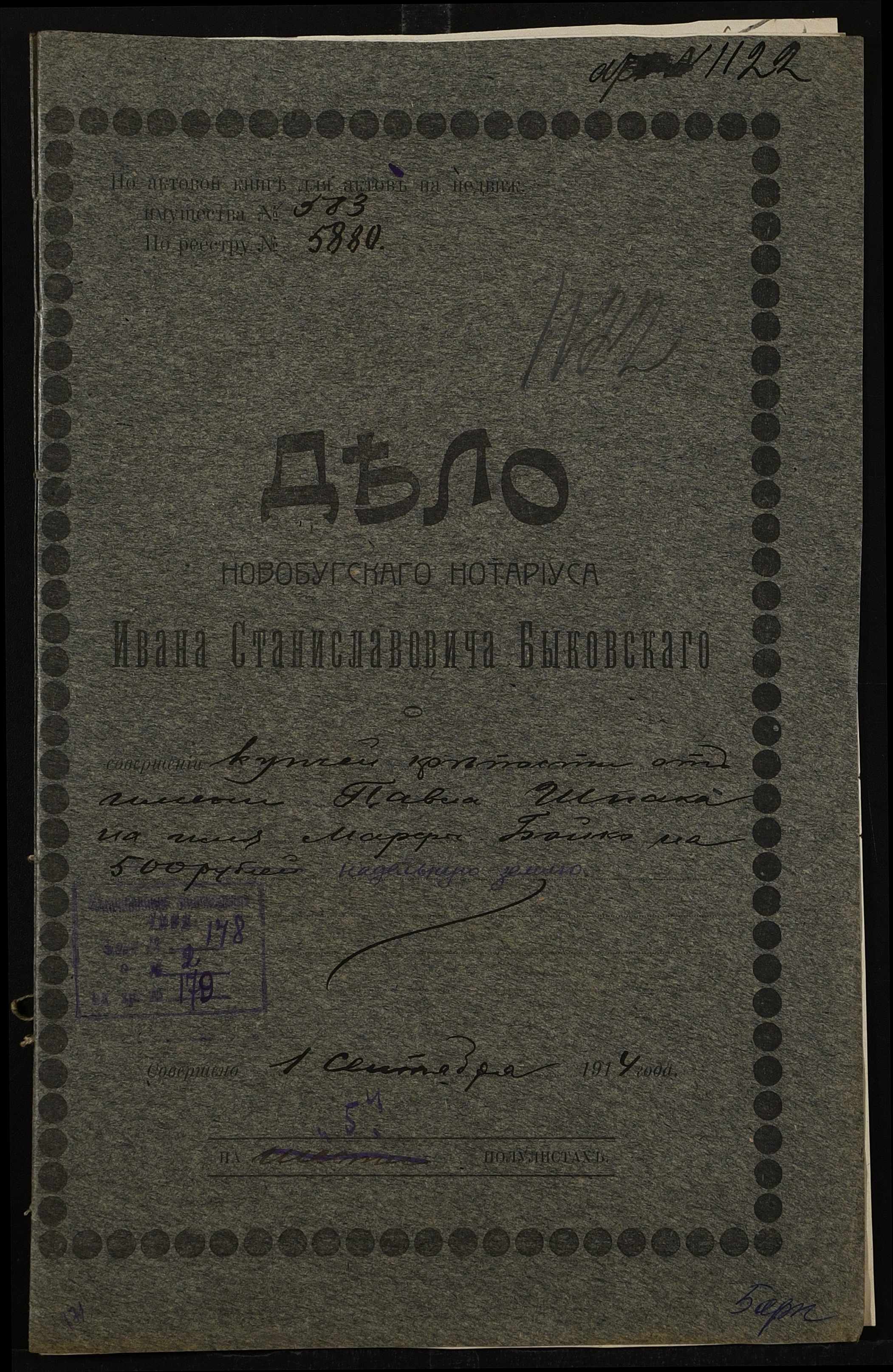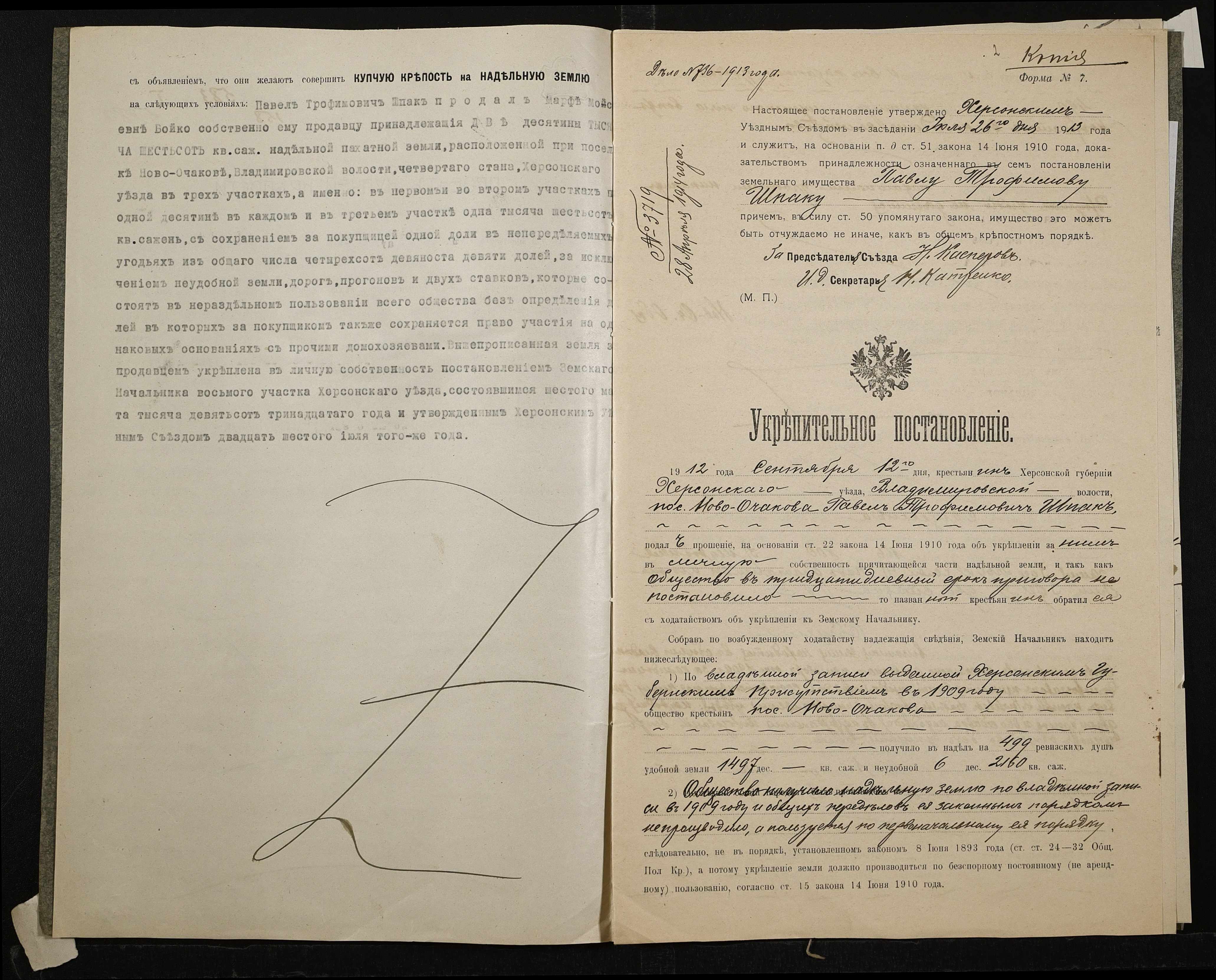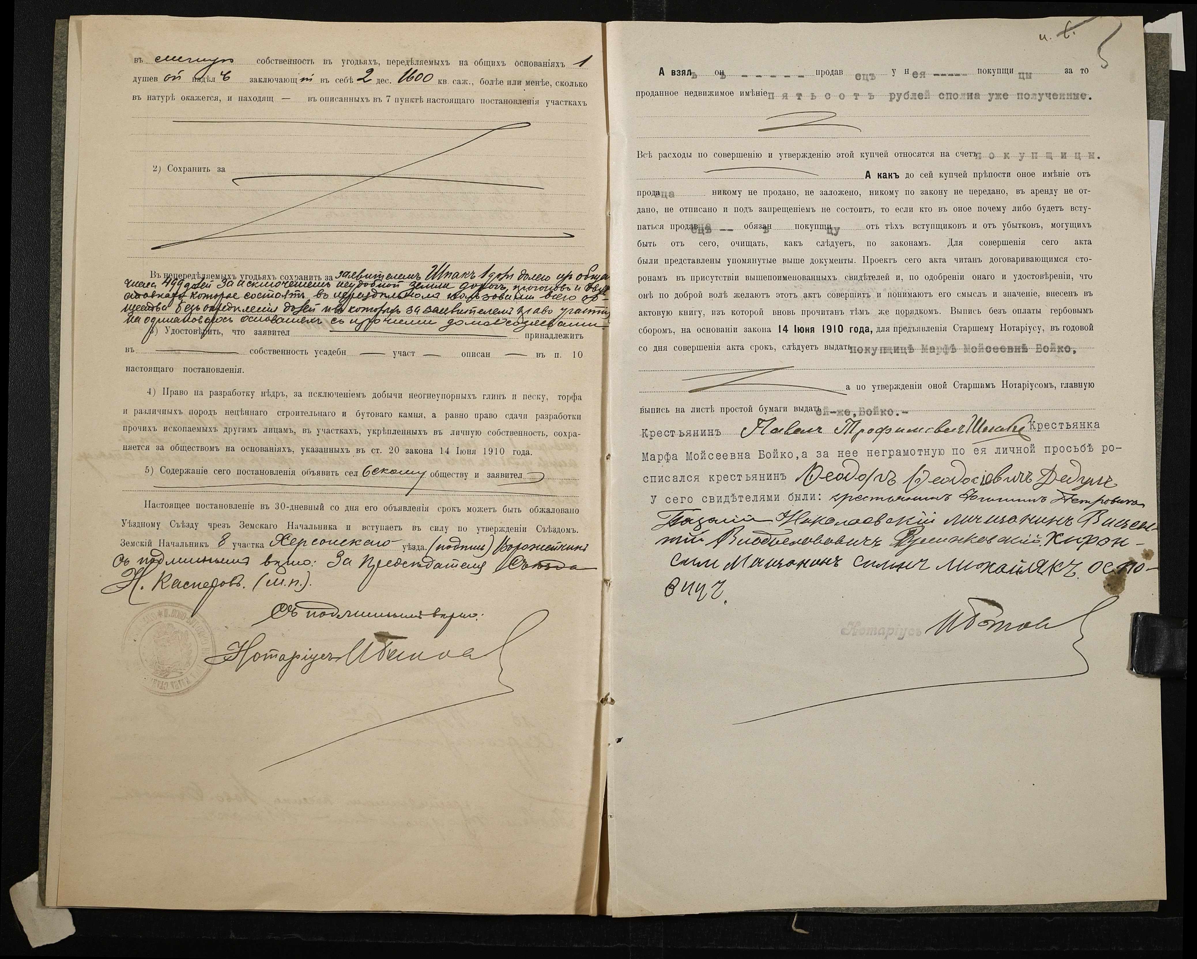 • • • • Справа № 179 “Справа про вчинення купчої про продаж землі селянином Шпаком Павлом на користь селянки Бойко Марфи (Марфы)”