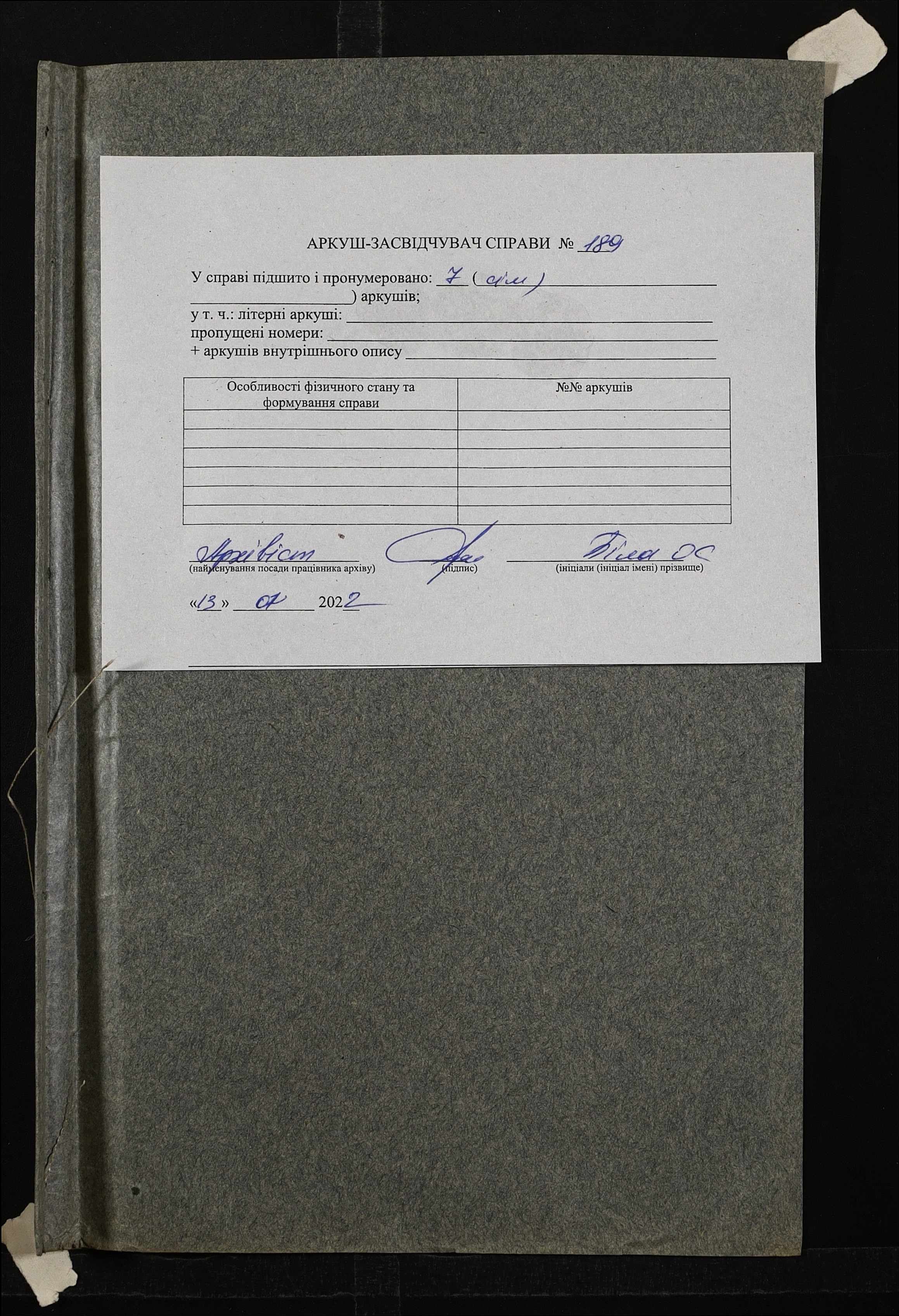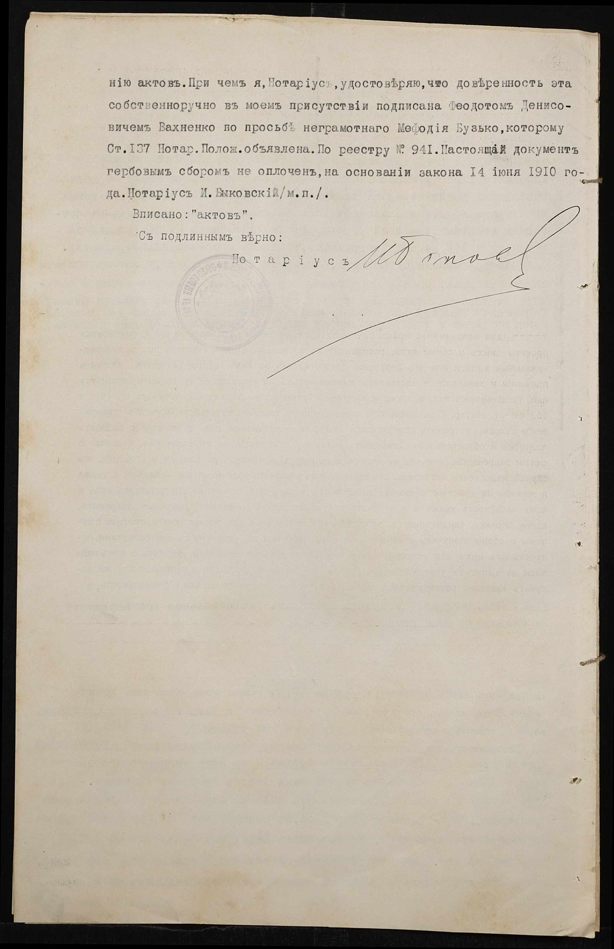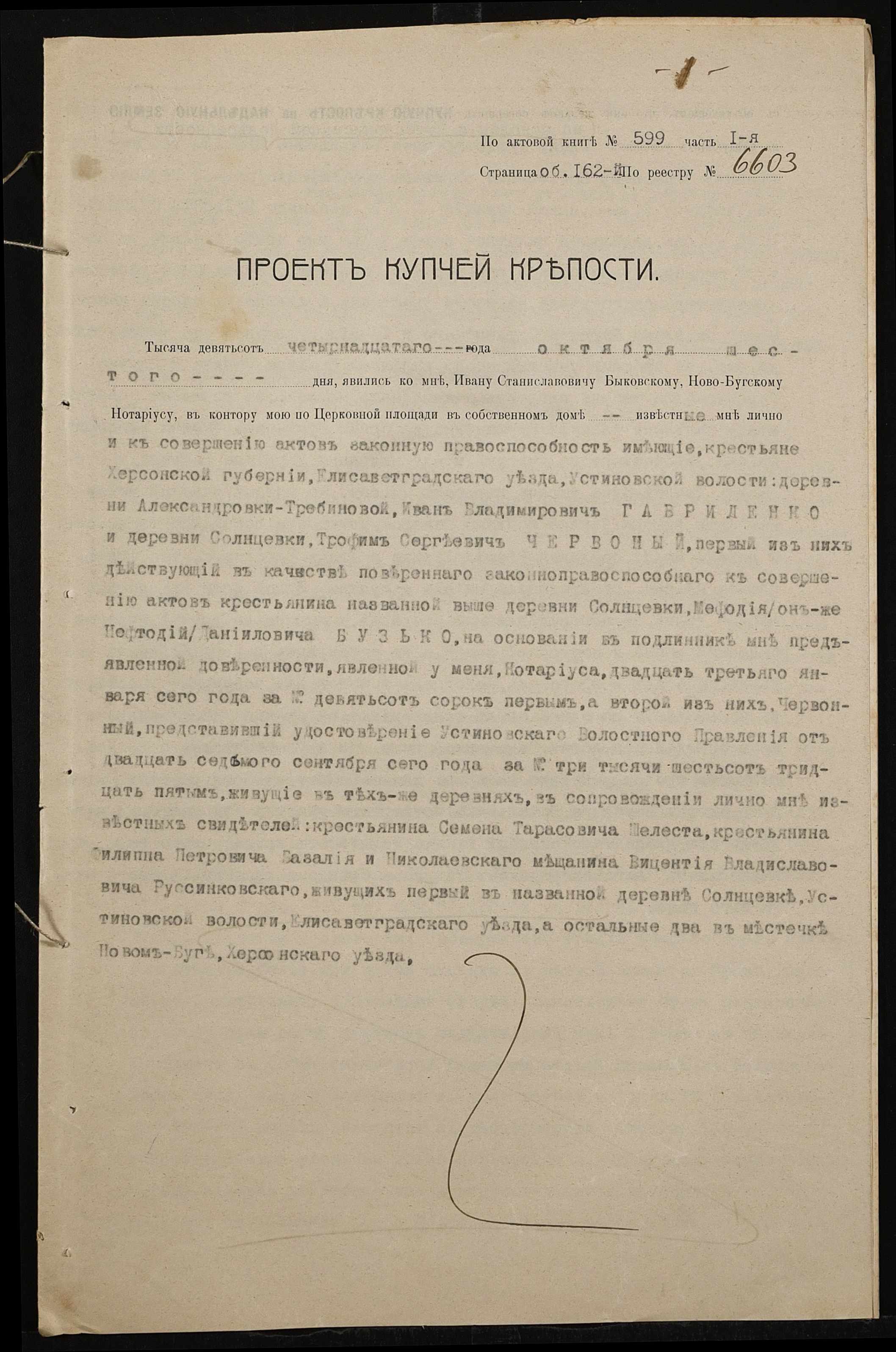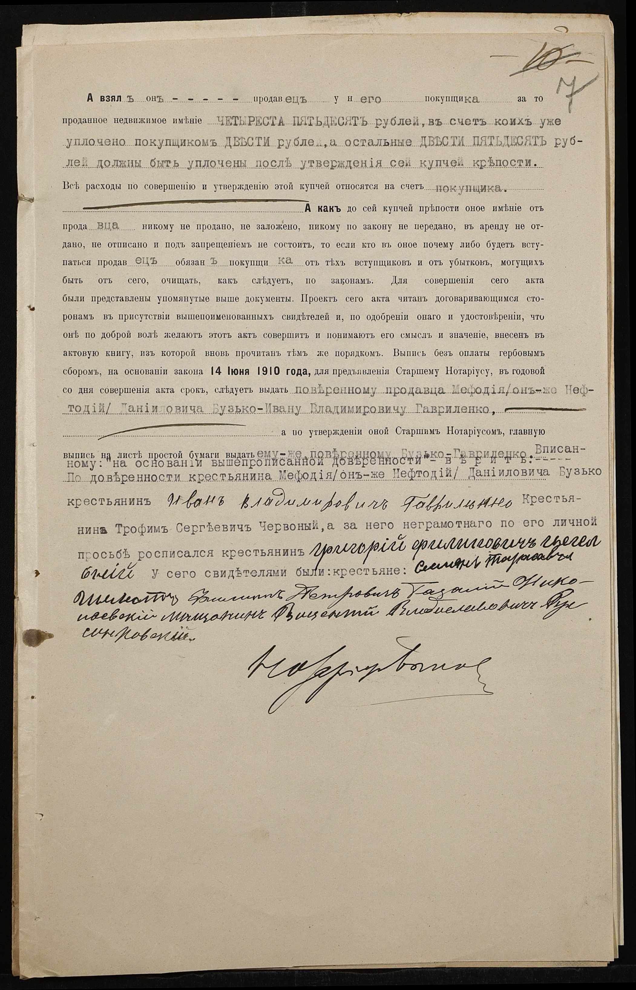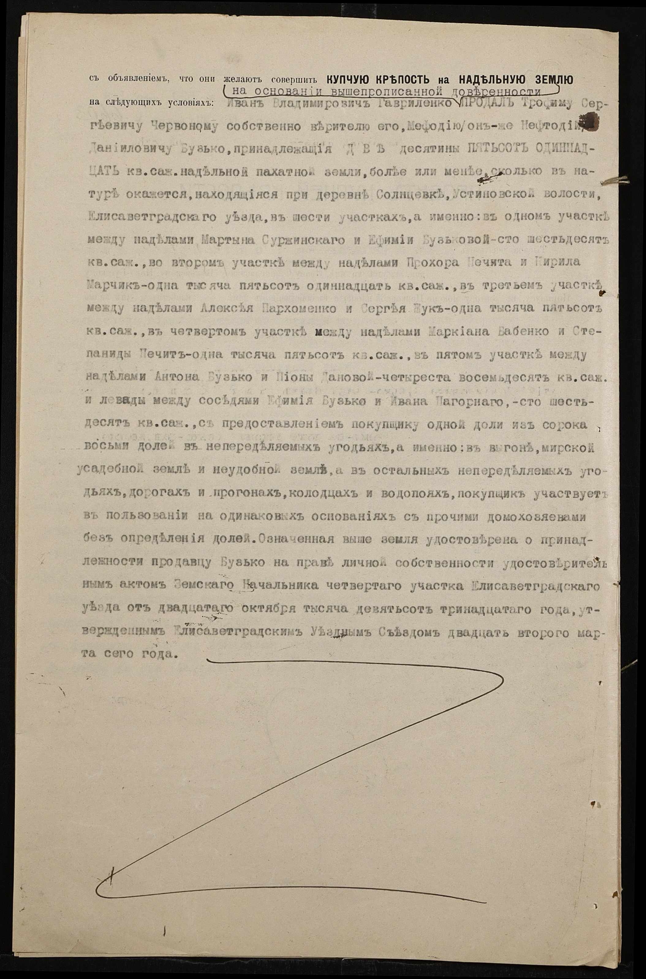 • • • • Справа № 189 “Справа про вчинення купчої про продаж землі селянином Бузьком Мефодієм (Бузько Мефодием) Даниловичем на користь селянина Червоного Трохима Сергійовича (Трофима Сергеевича)”