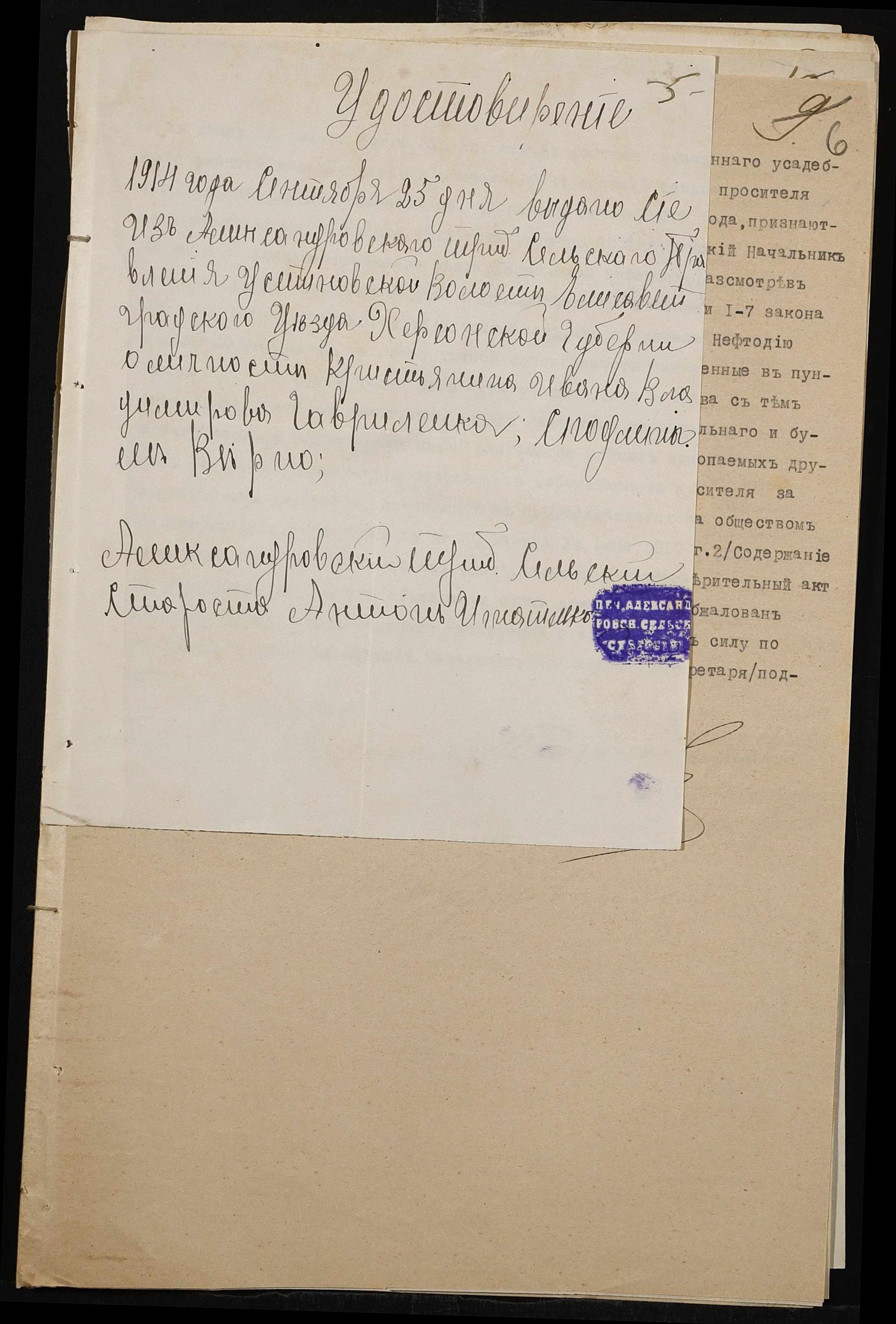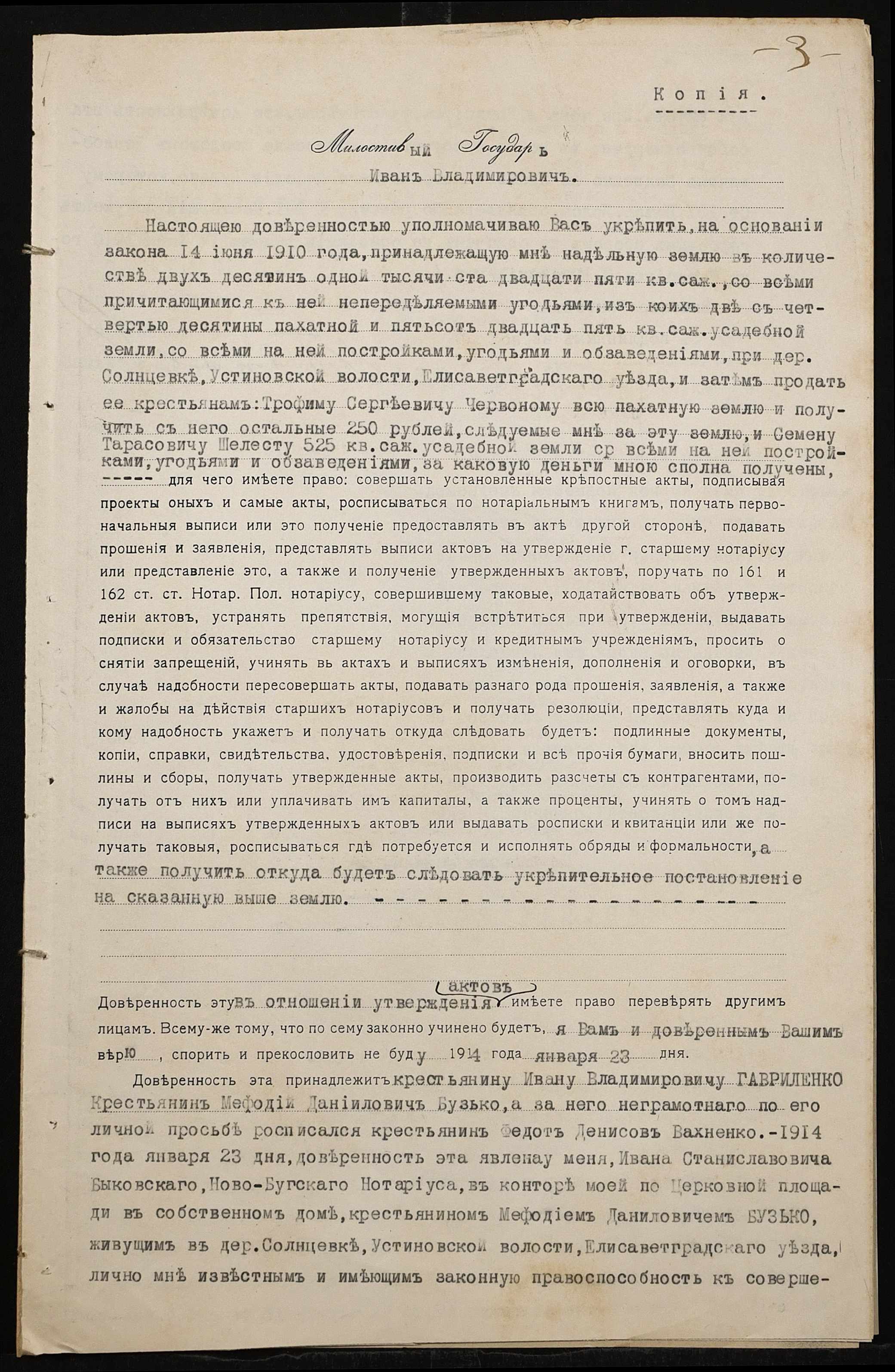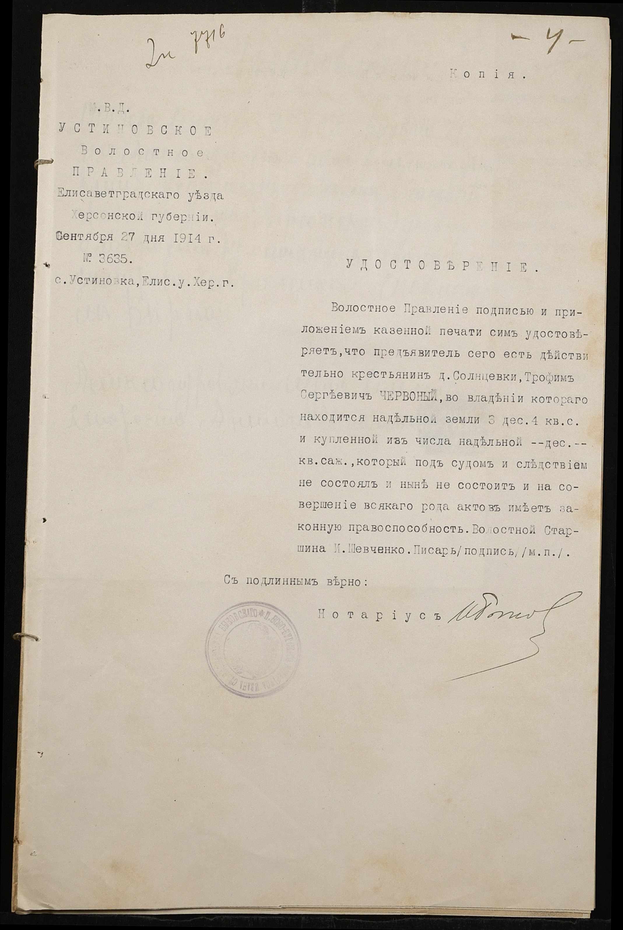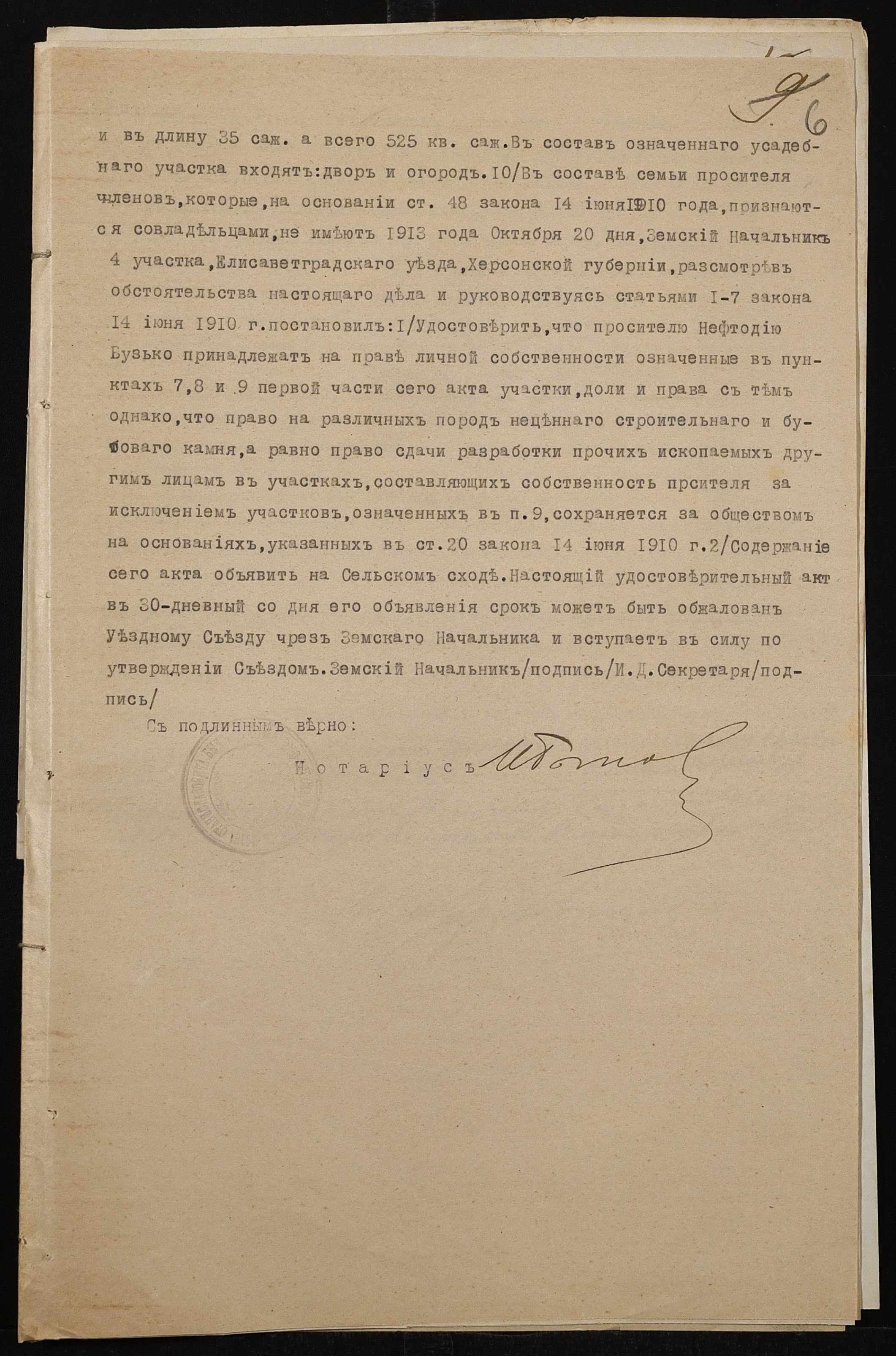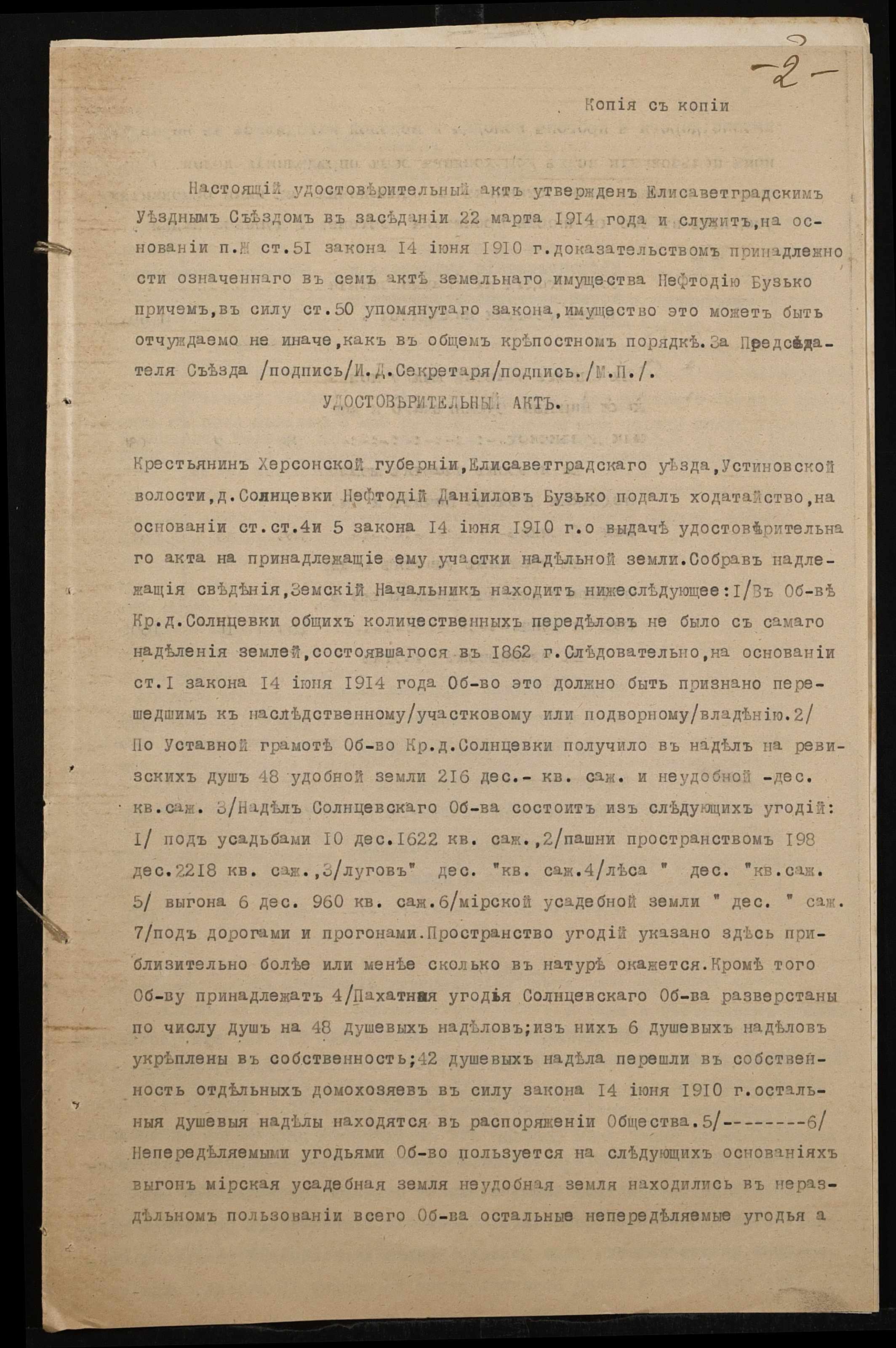• • • • Справа № 189 “Справа про вчинення купчої про продаж землі селянином Бузьком Мефодієм (Бузько Мефодием) Даниловичем на користь селянина Червоного Трохима Сергійовича (Трофима Сергеевича)”