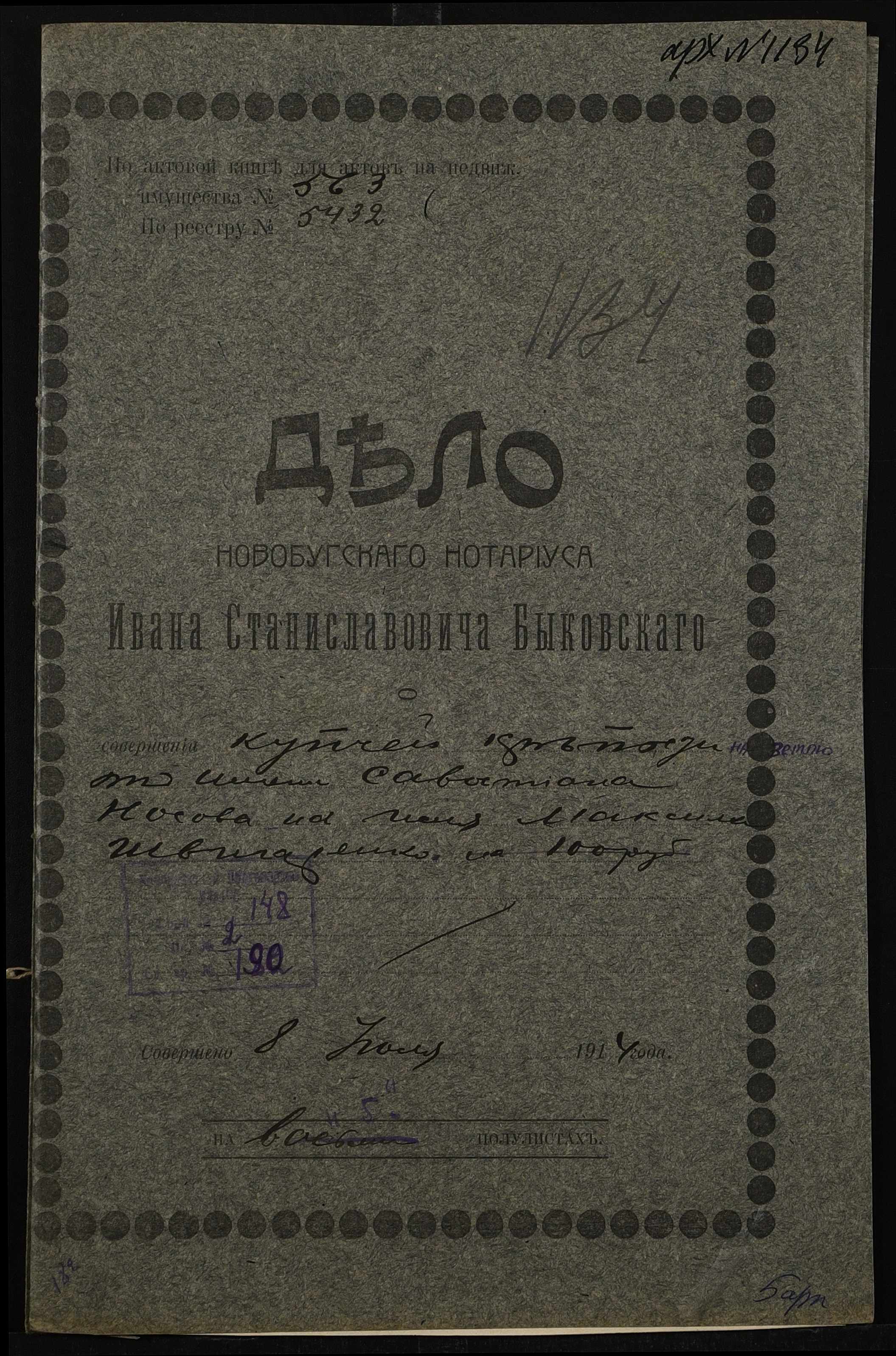 ◦ ◦ Фонд № 148 “Контора новобузького нотаріуса Биковського Івана Станіславовича”