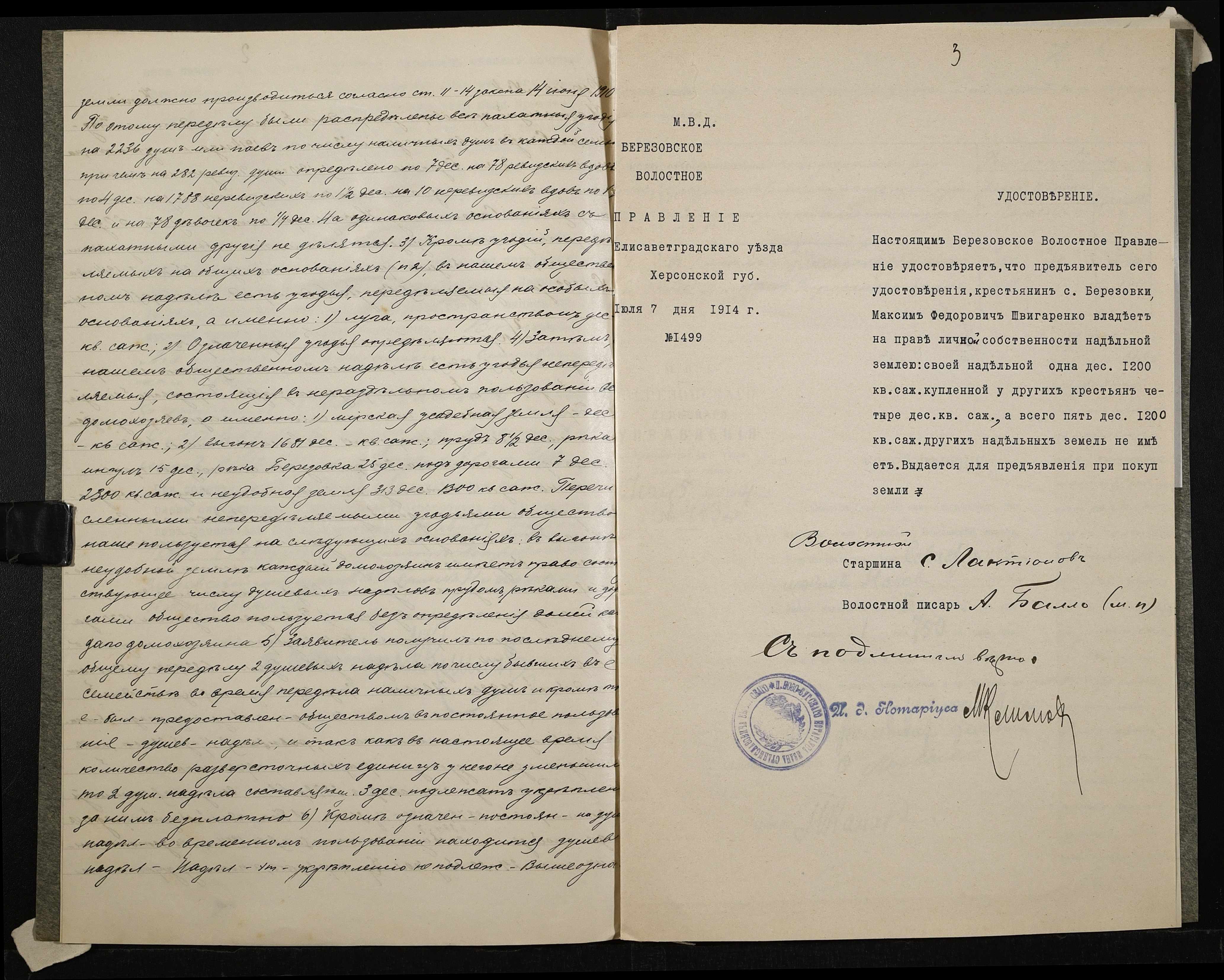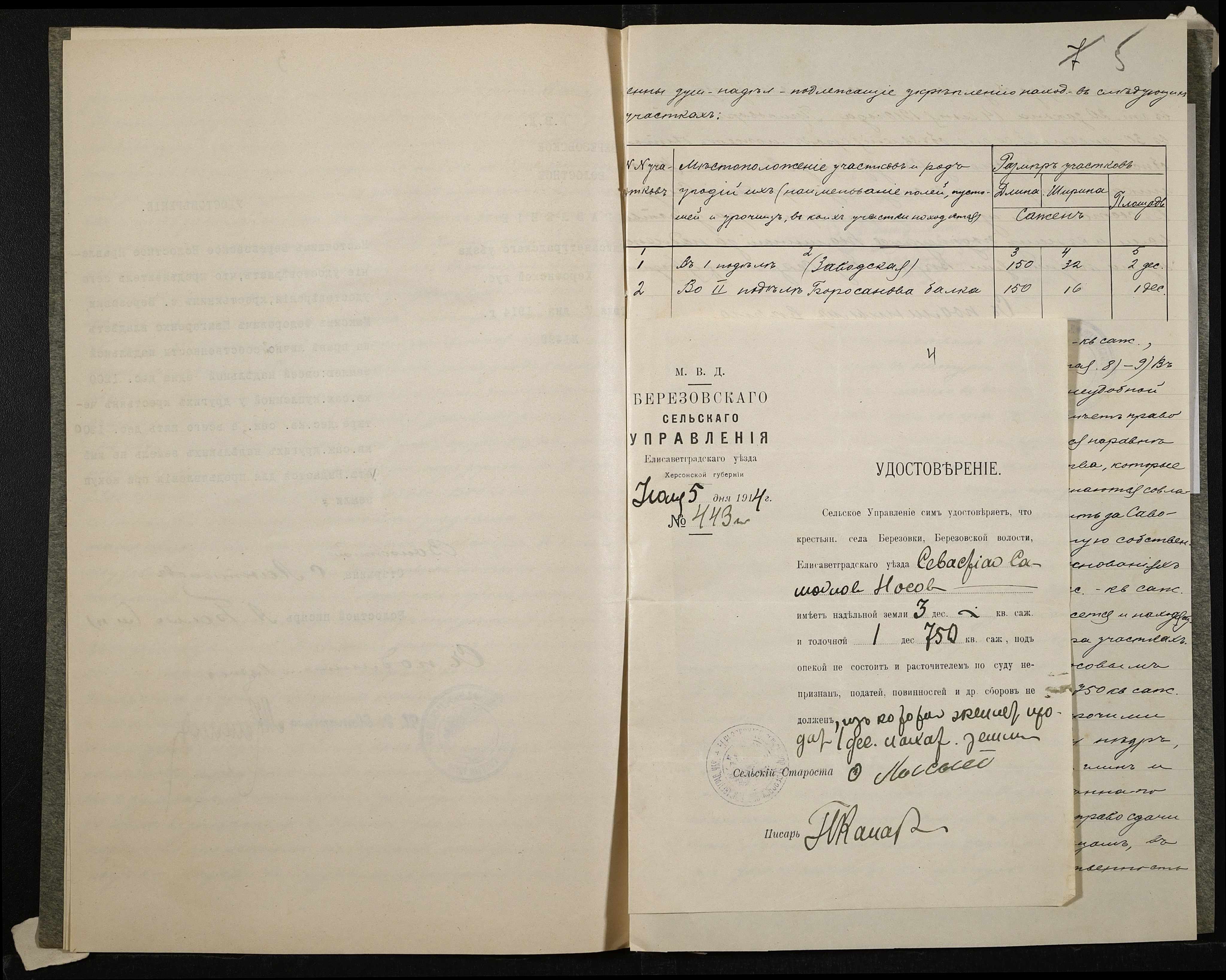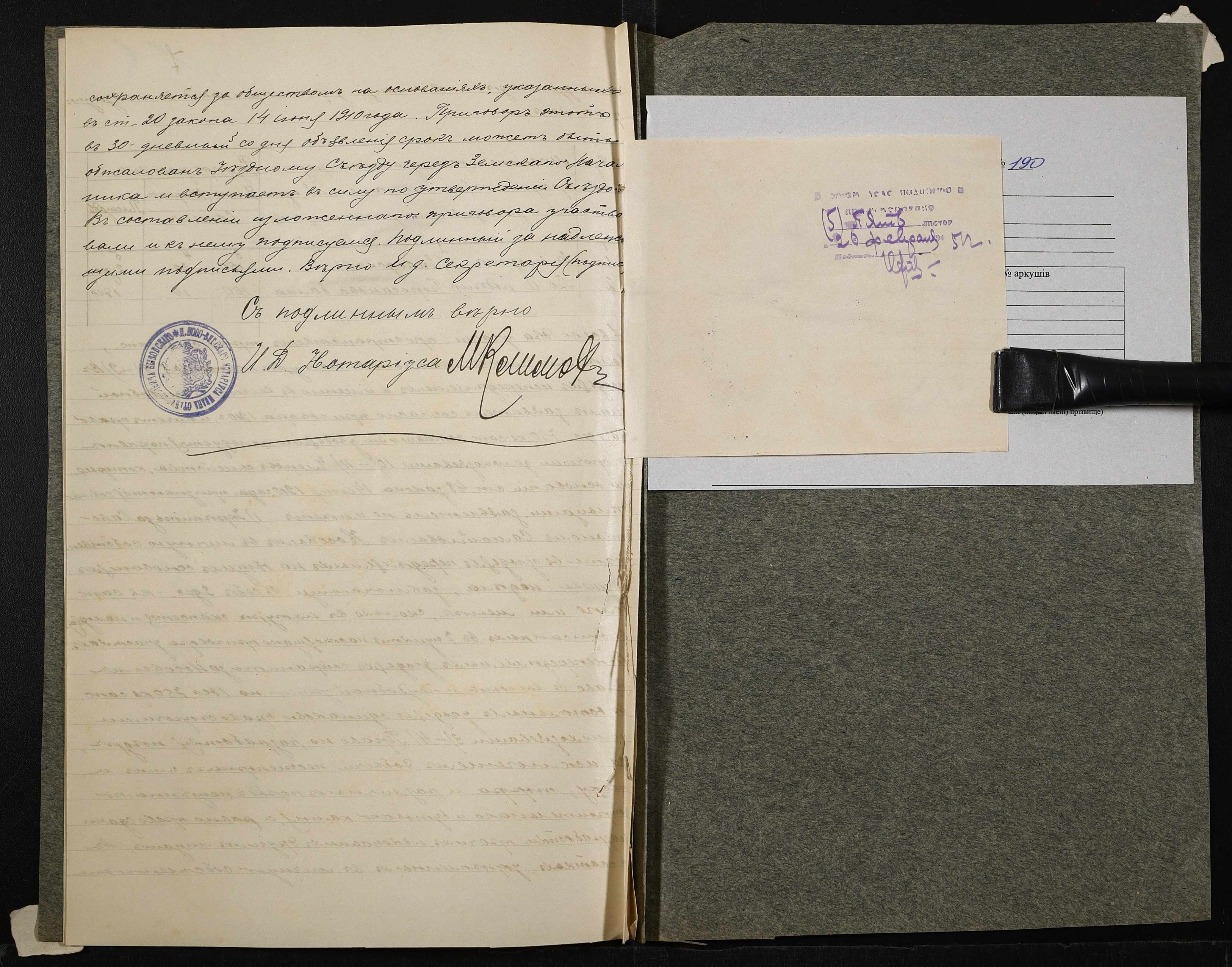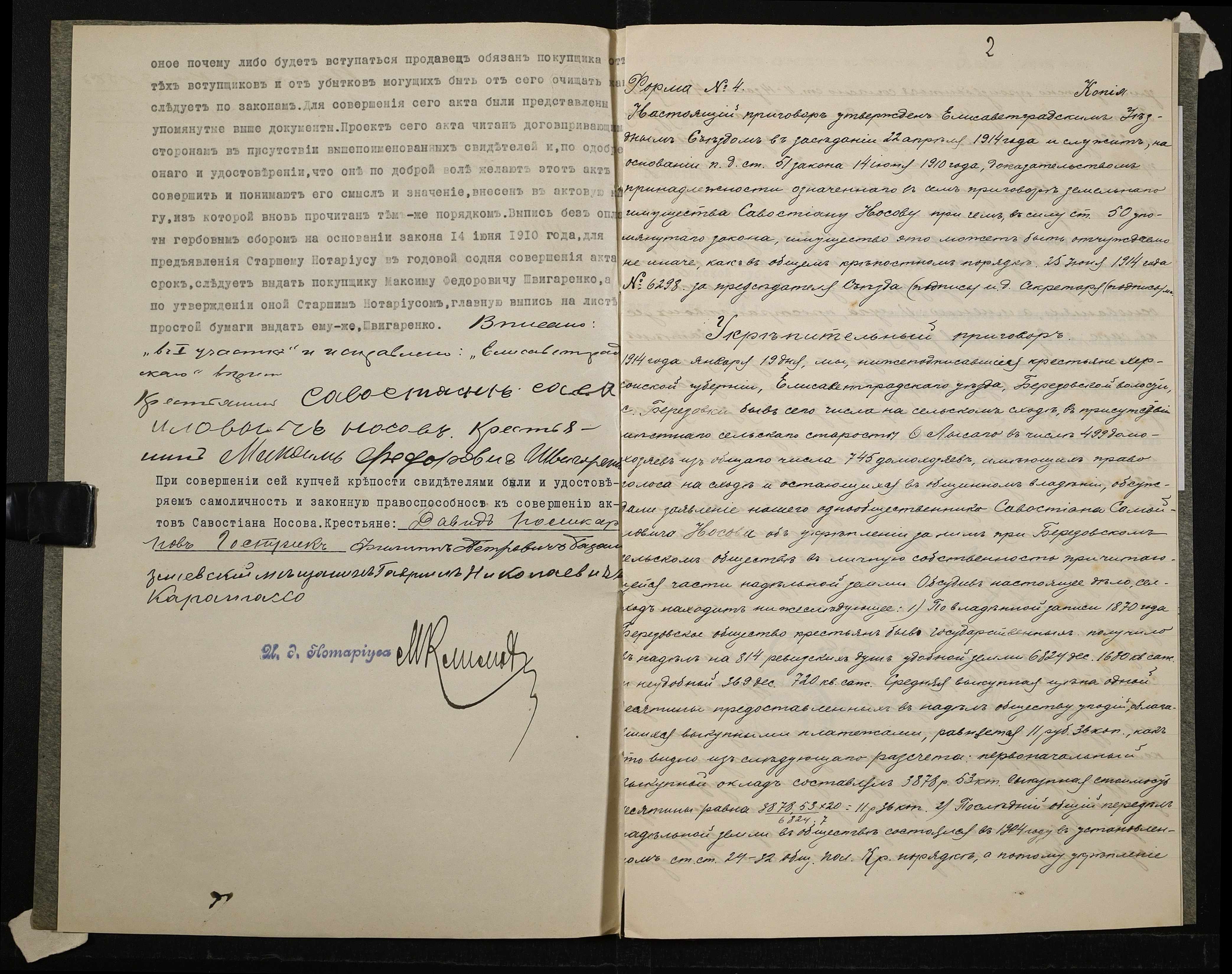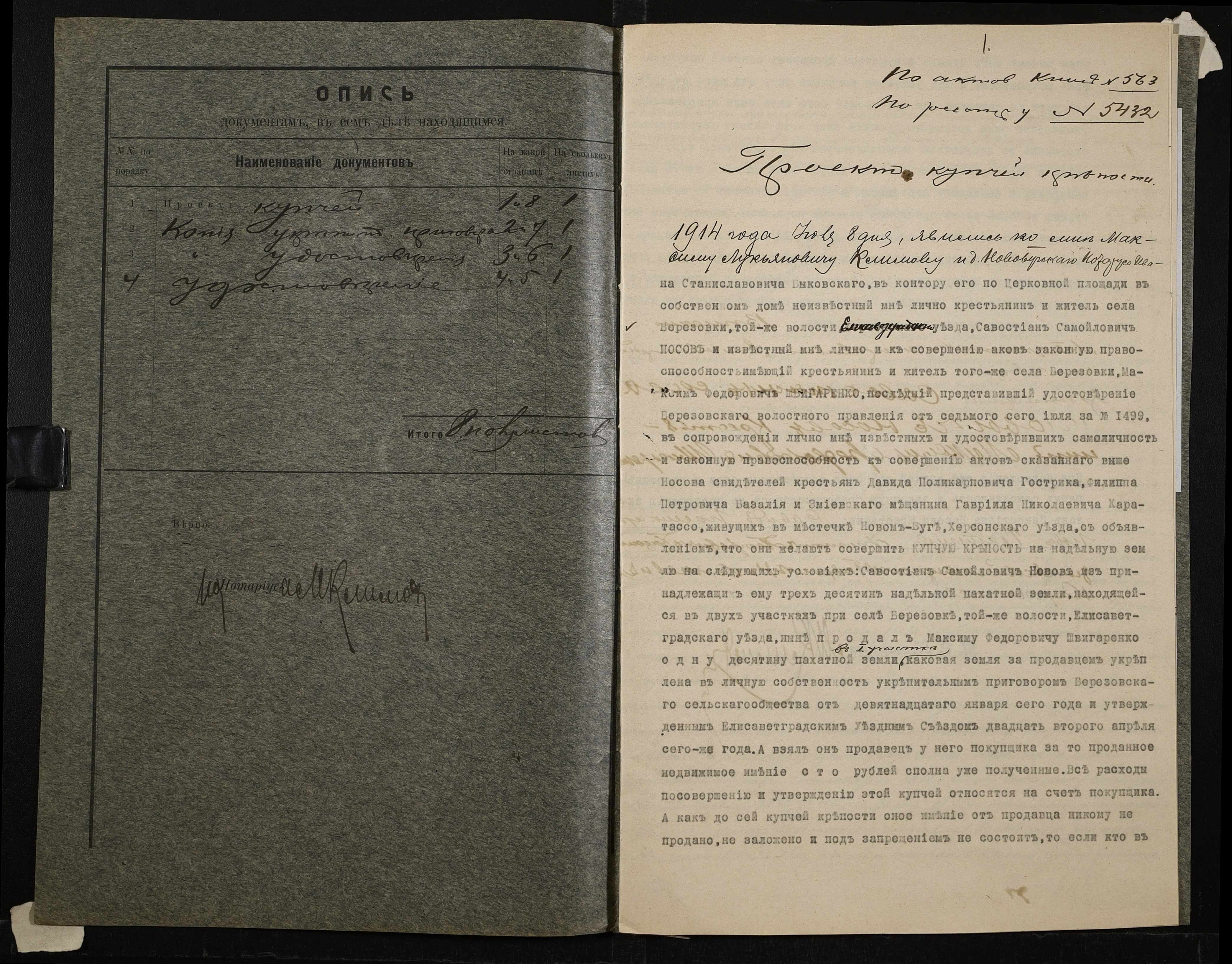 • • • • Справа № 190 “Справа про вчинення купчої про продаж землі селянином Носовим Севастяном (Носовым Севастьяном) на користь селянина Швигаренка (Швигаренко) Максима”