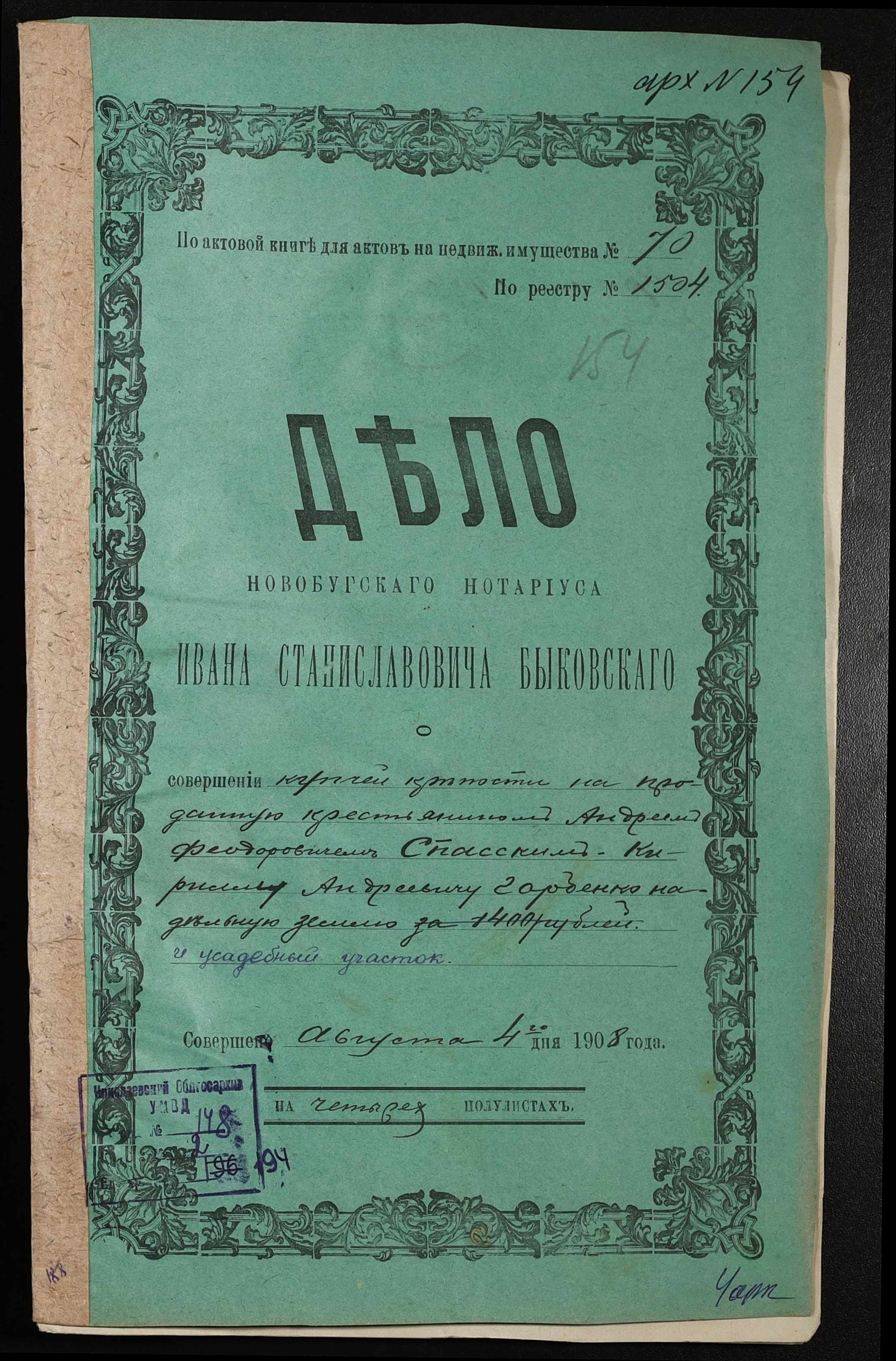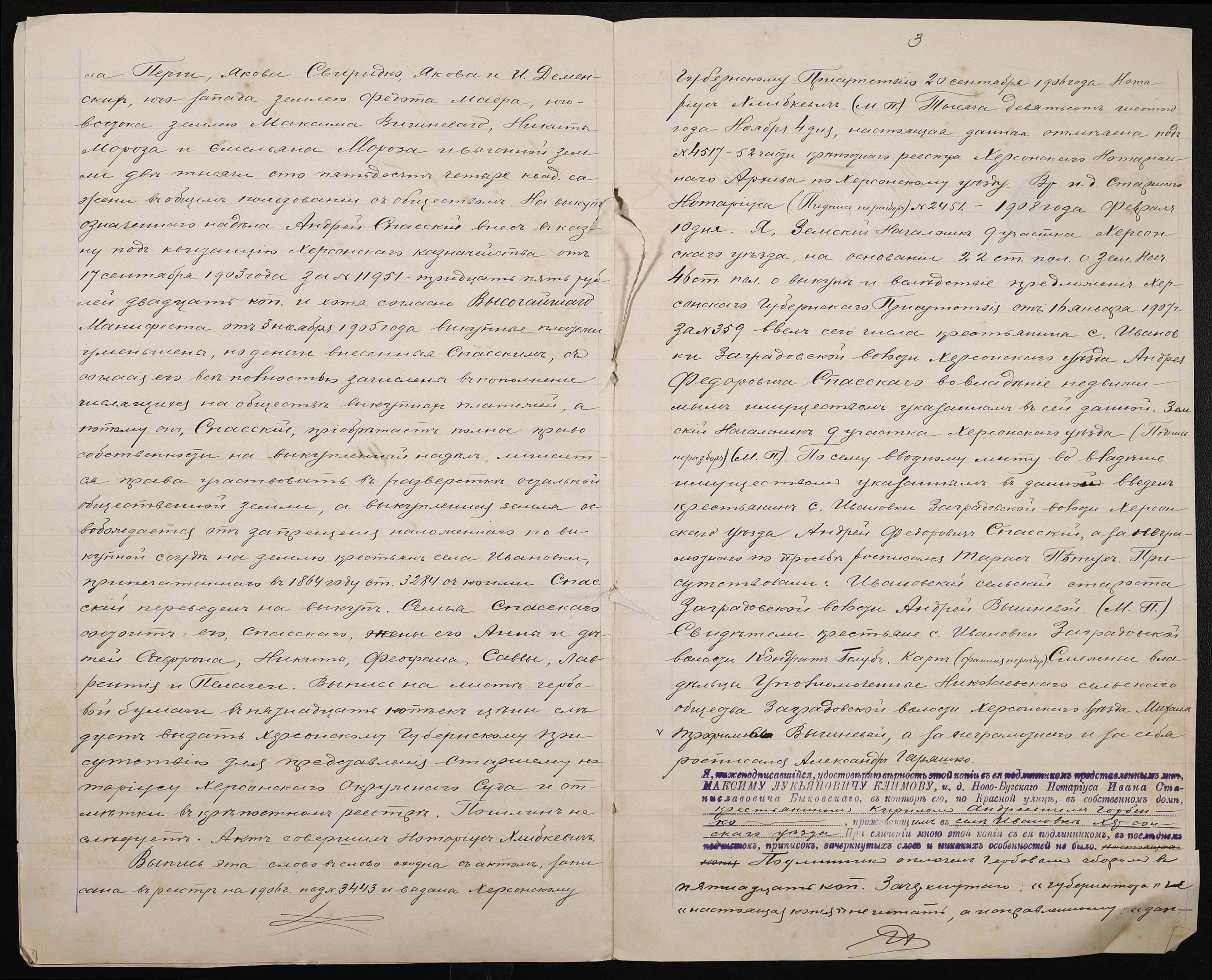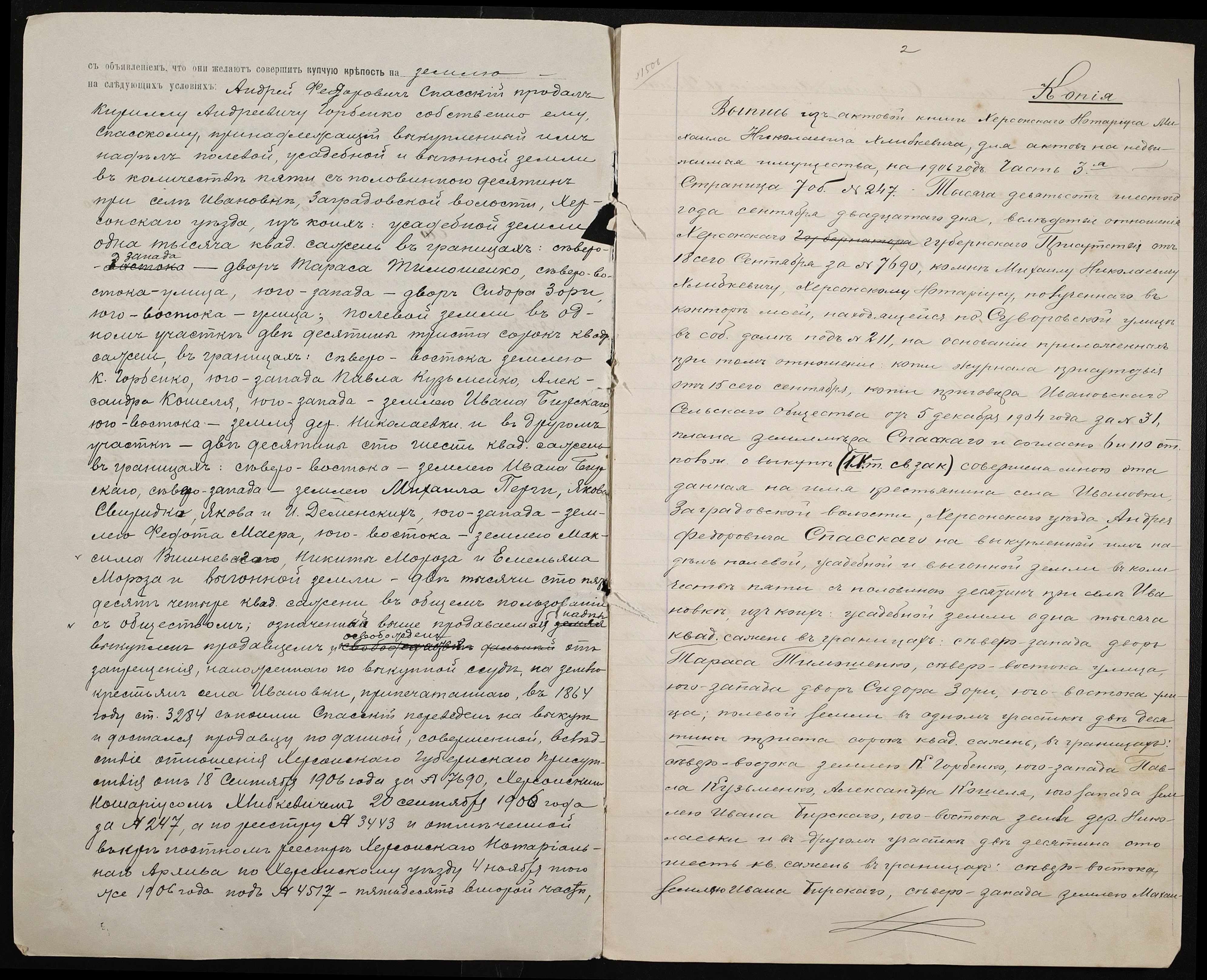 • • • • Справа № 194 “Справа про вчинення купчої про продаж землі селянином Спаським Андрієм (Спасским Андреем) Федоровичем на користь селянина Горбенка Кирила Андрійовича (Горбенко Кирилла Андреевича)”